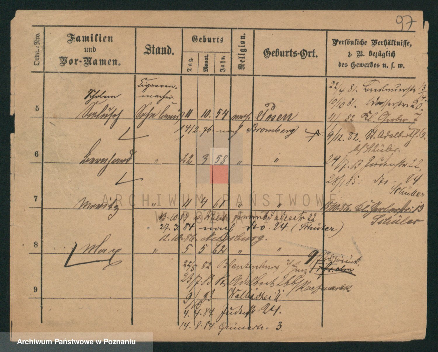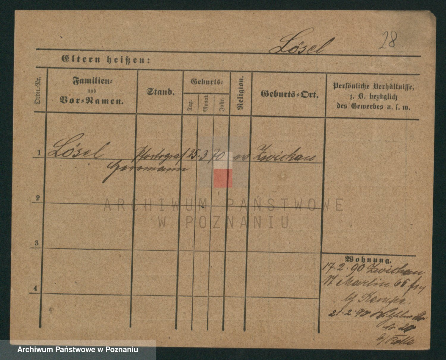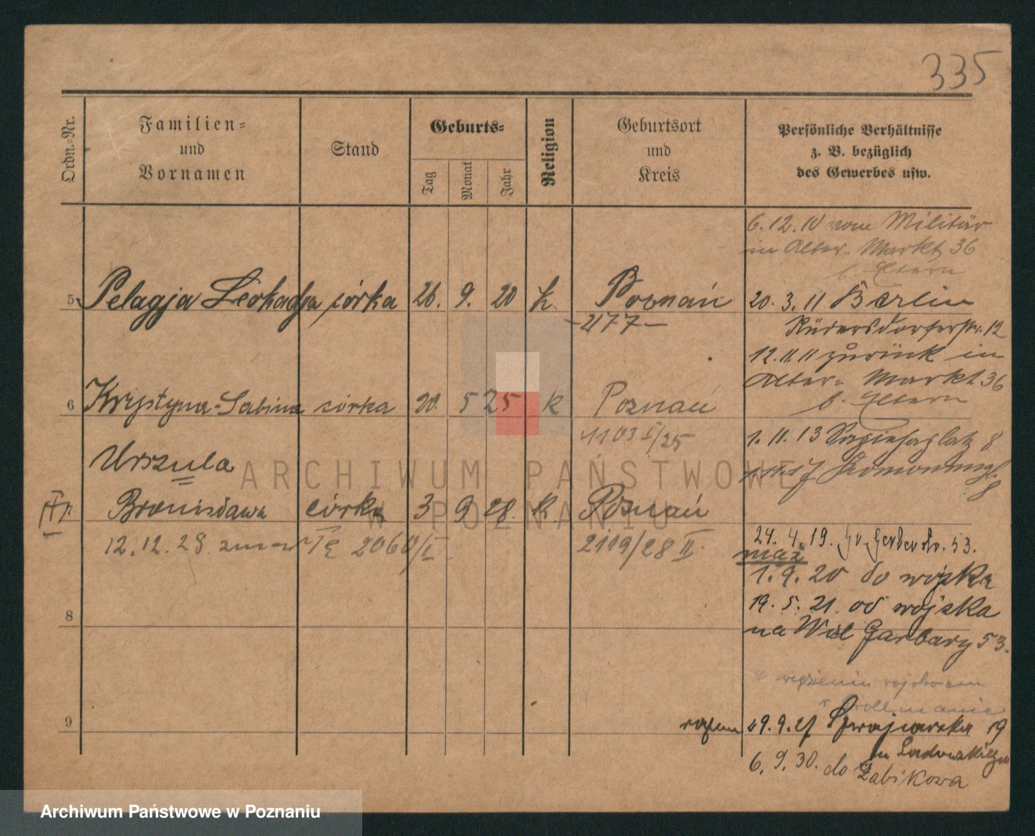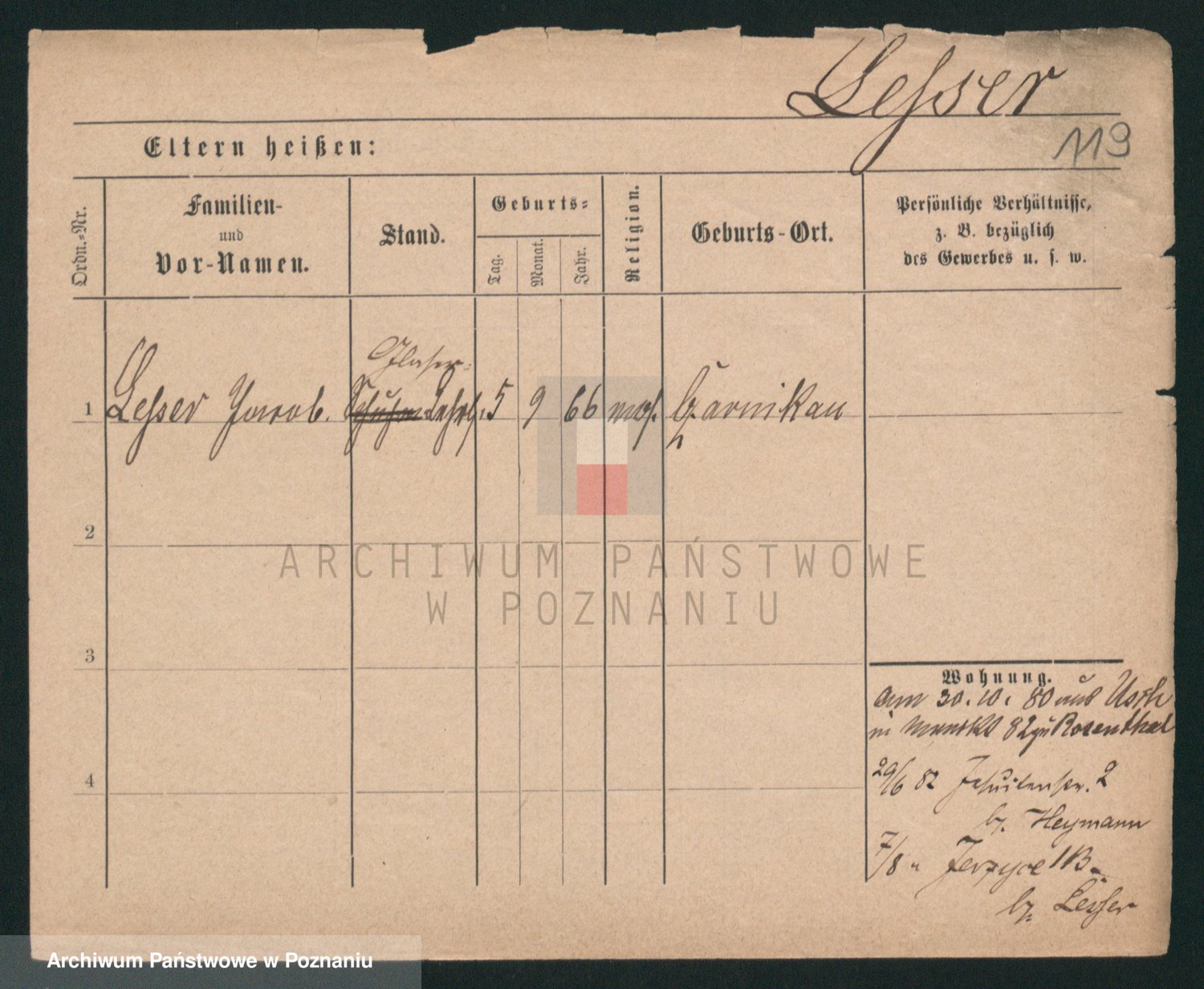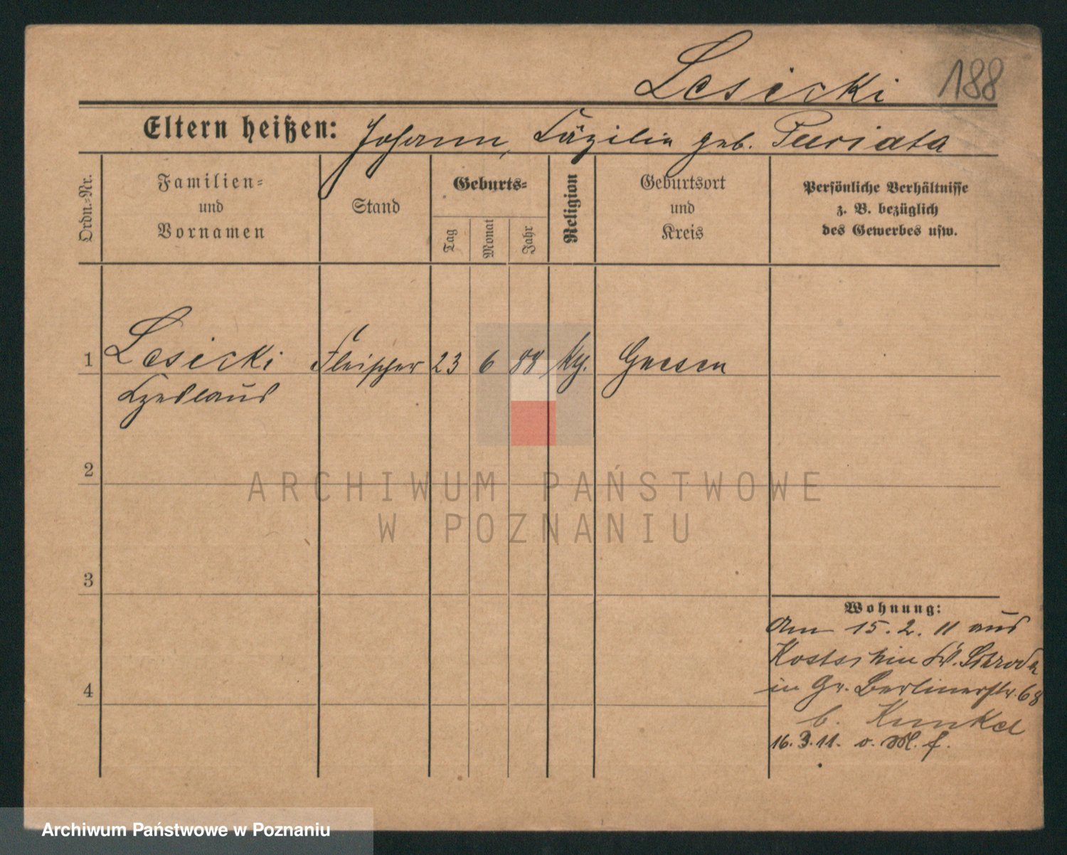 Podgląd karty osobowej dostępny jest po kliknięciu na nazwisko lub ikonkę karty. Można dokonywać powiększenia (ikony na górze) lub przechodzić między kolejnymi skanami (strzałki po bokach).