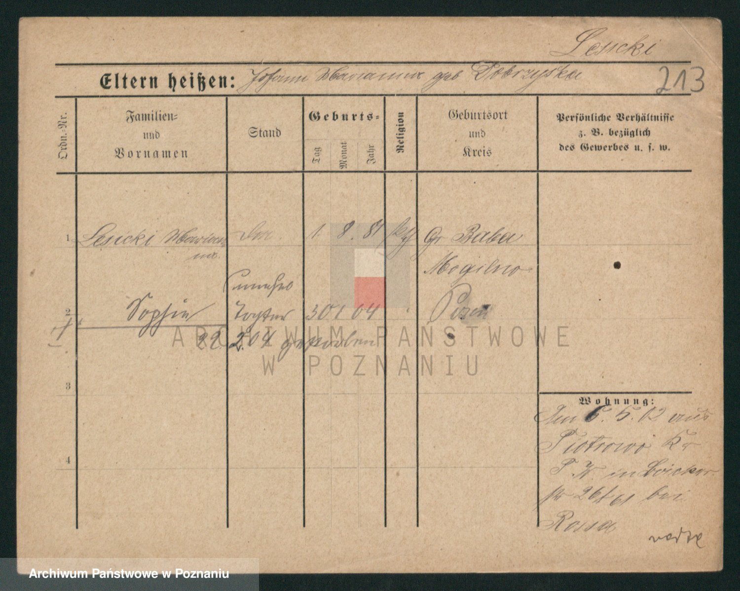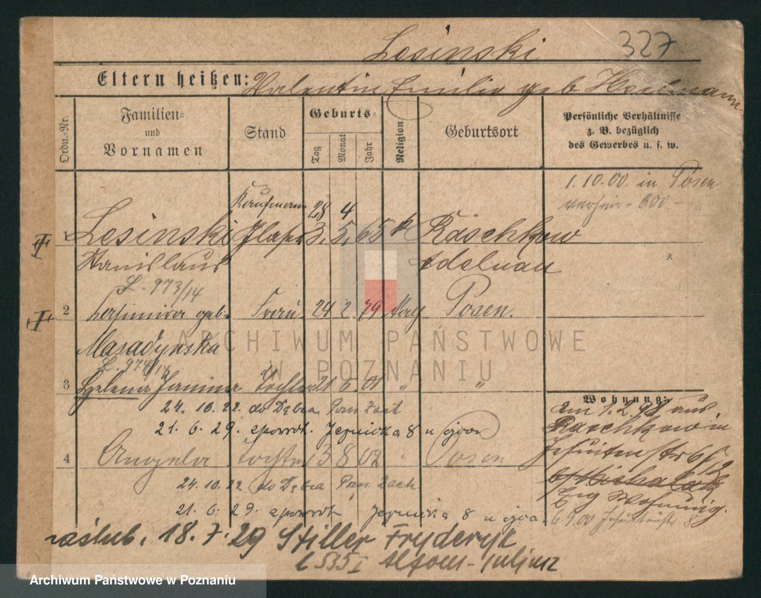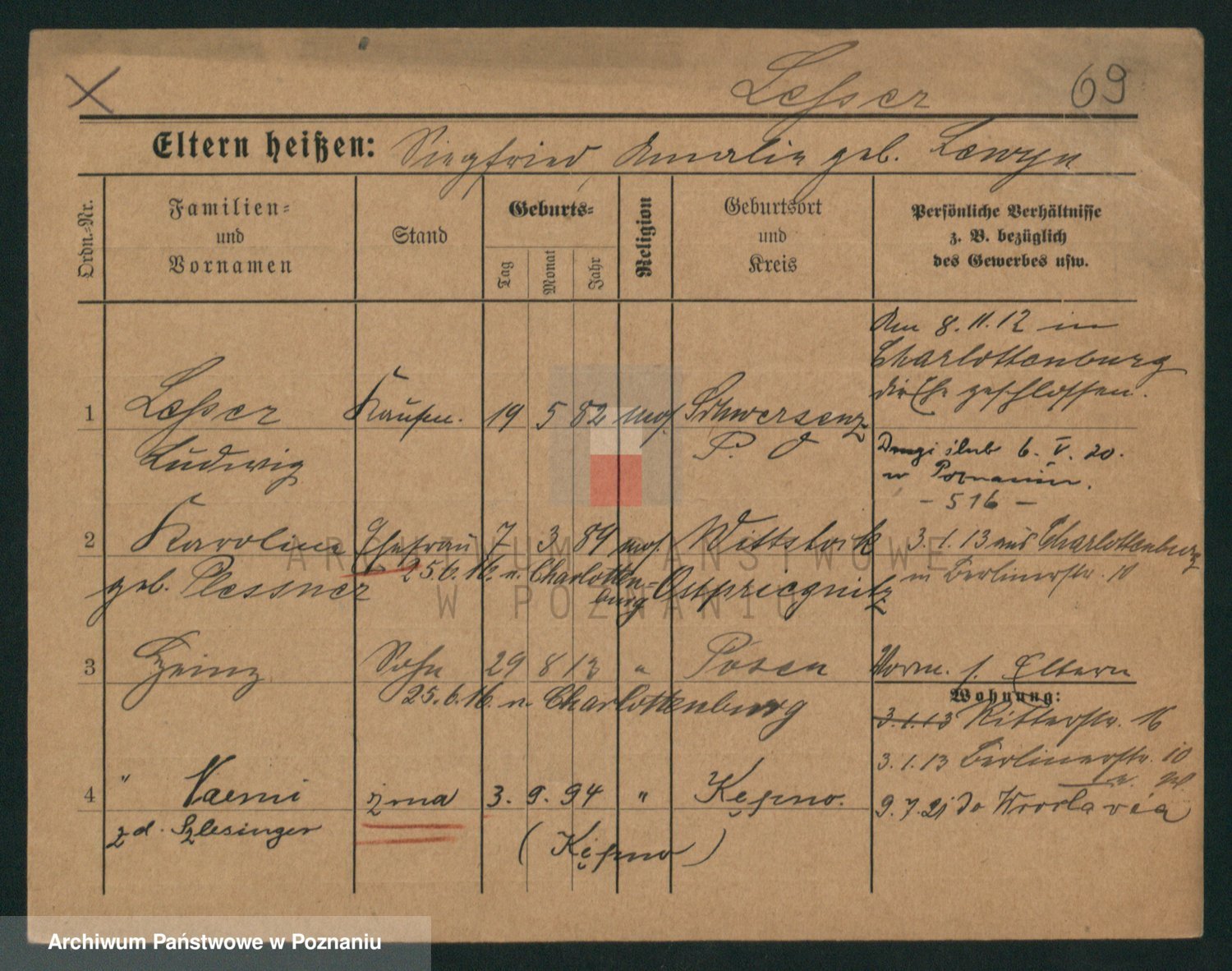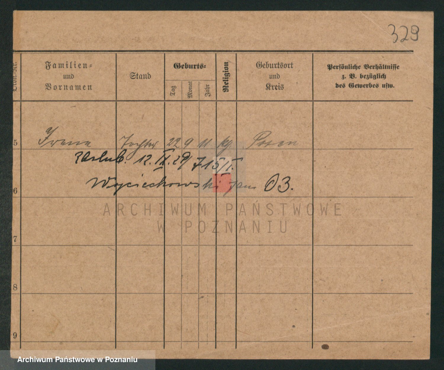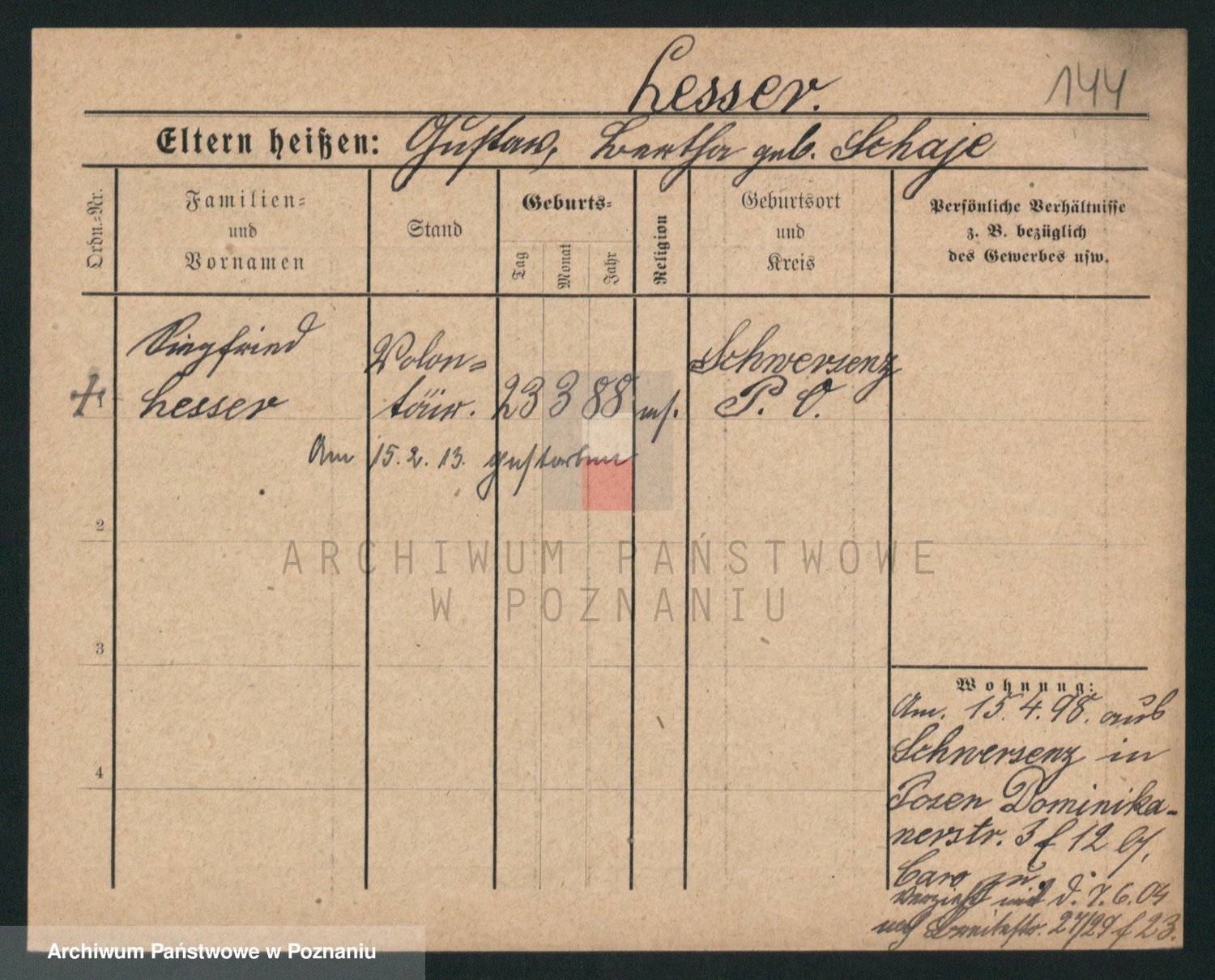 Podgląd karty osobowej dostępny jest po kliknięciu na nazwisko lub ikonkę karty. Można dokonywać powiększenia (ikony na górze) lub przechodzić między kolejnymi skanami (strzałki po bokach).