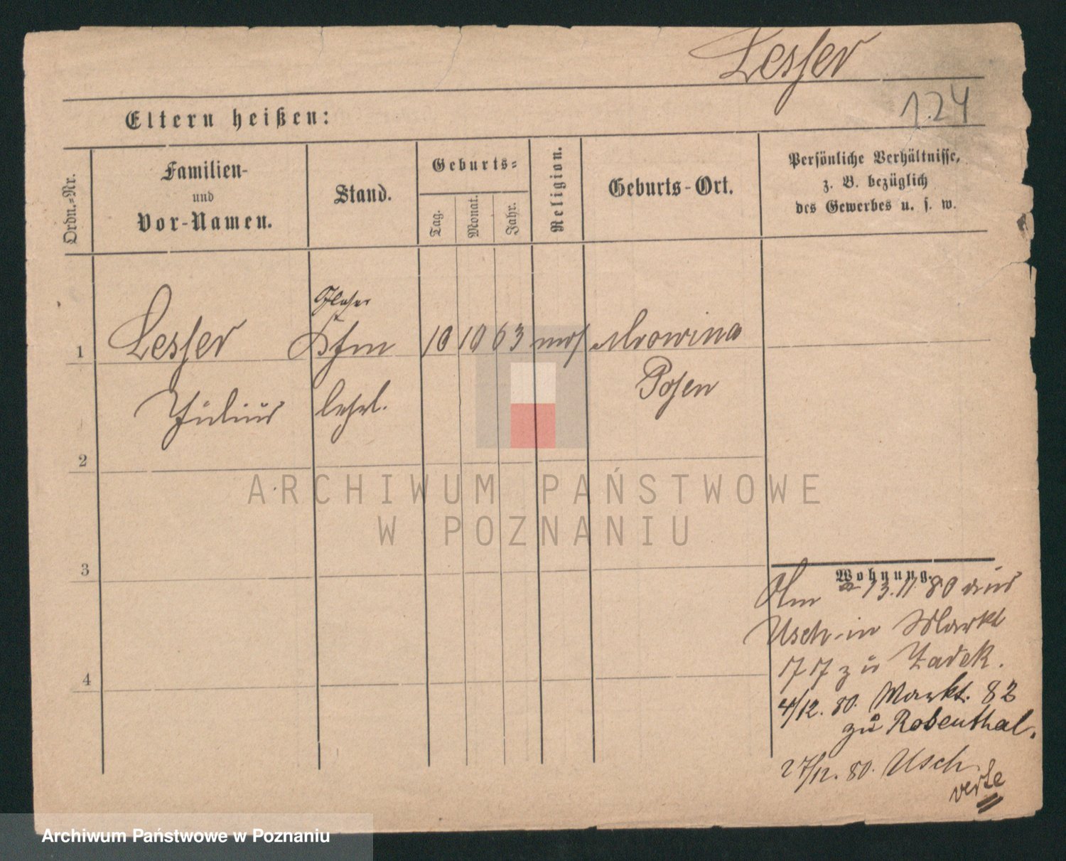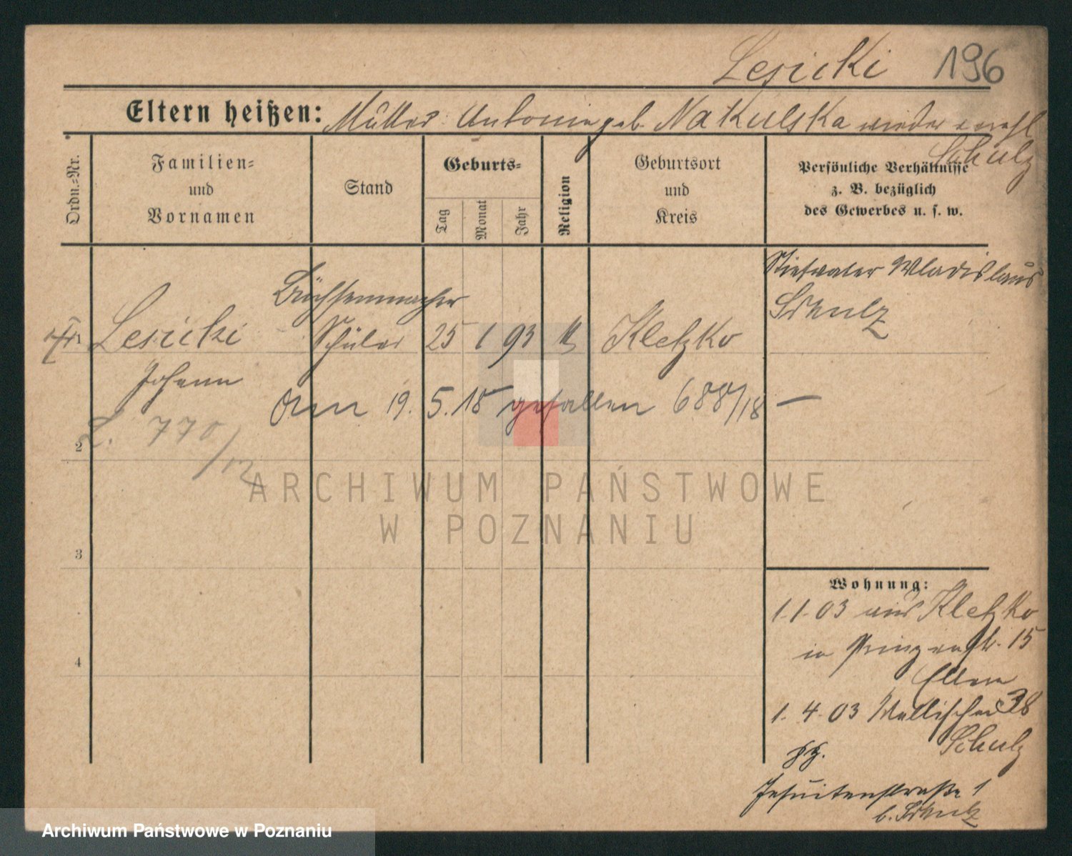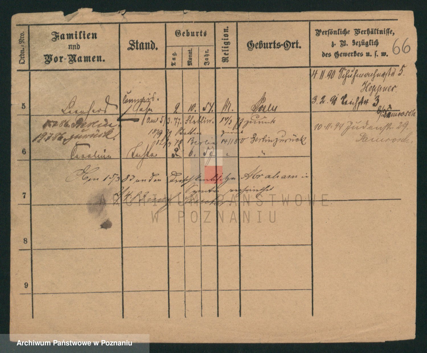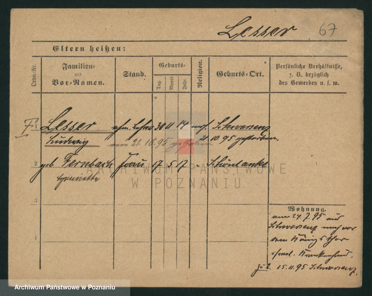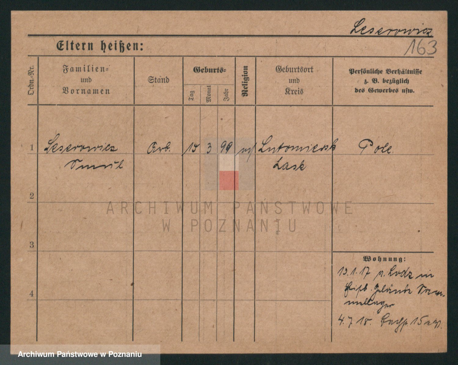 Podgląd karty osobowej dostępny jest po kliknięciu na nazwisko lub ikonkę karty. Można dokonywać powiększenia (ikony na górze) lub przechodzić między kolejnymi skanami (strzałki po bokach).