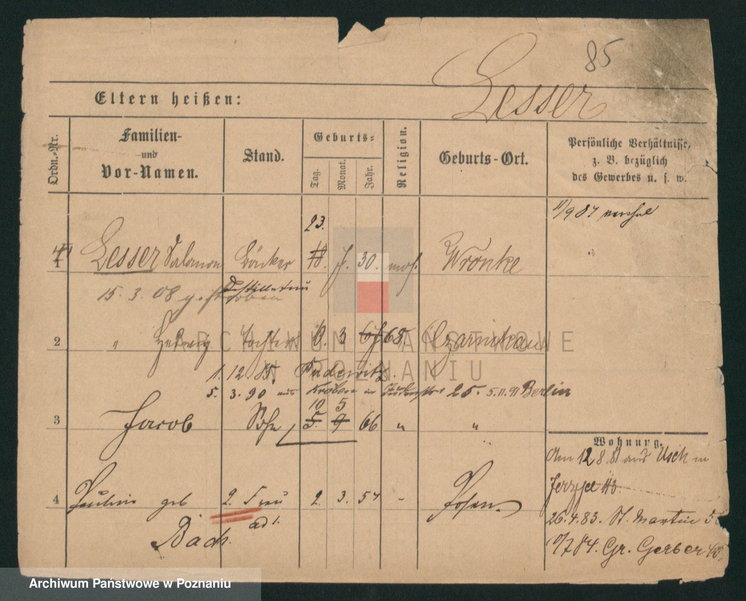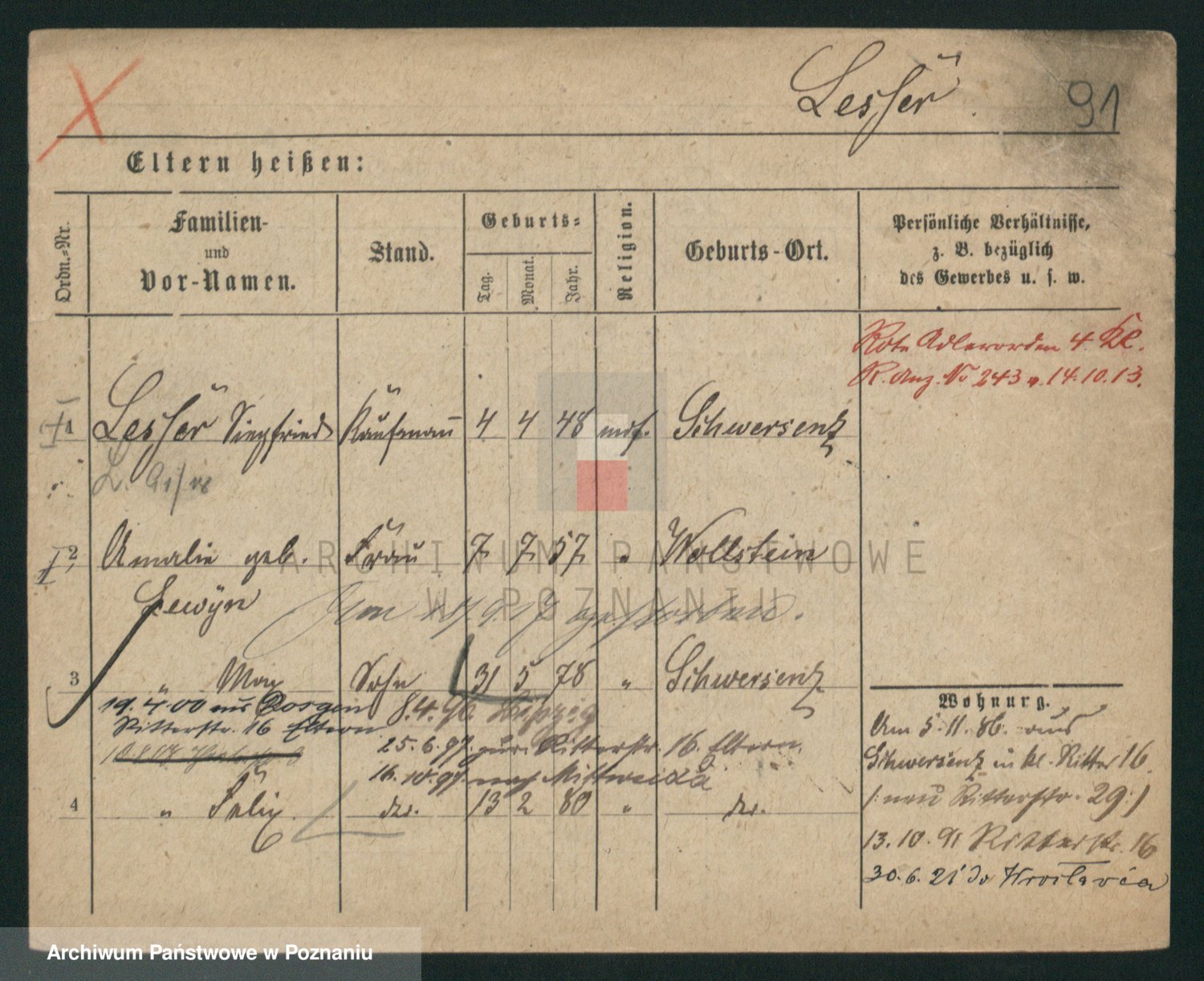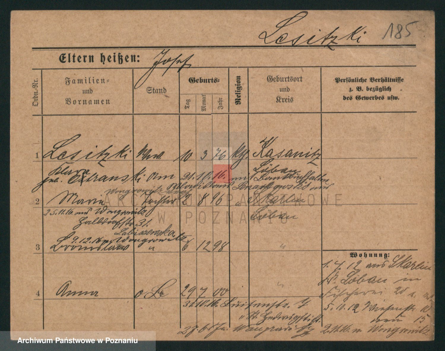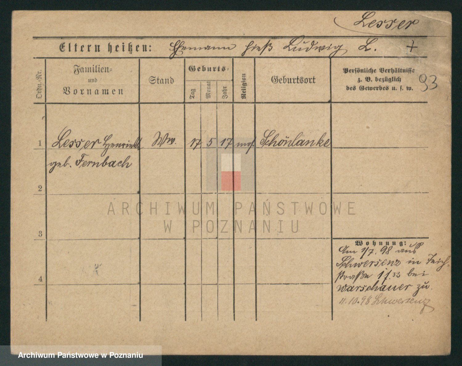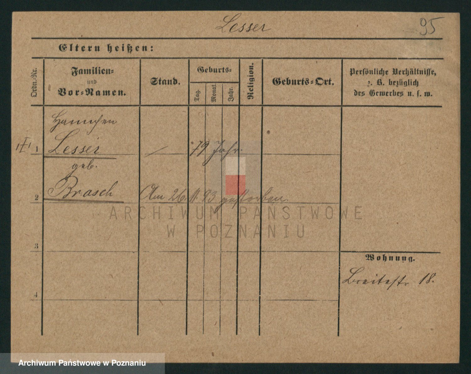 Podgląd karty osobowej dostępny jest po kliknięciu na nazwisko lub ikonkę karty. Można dokonywać powiększenia (ikony na górze) lub przechodzić między kolejnymi skanami (strzałki po bokach).