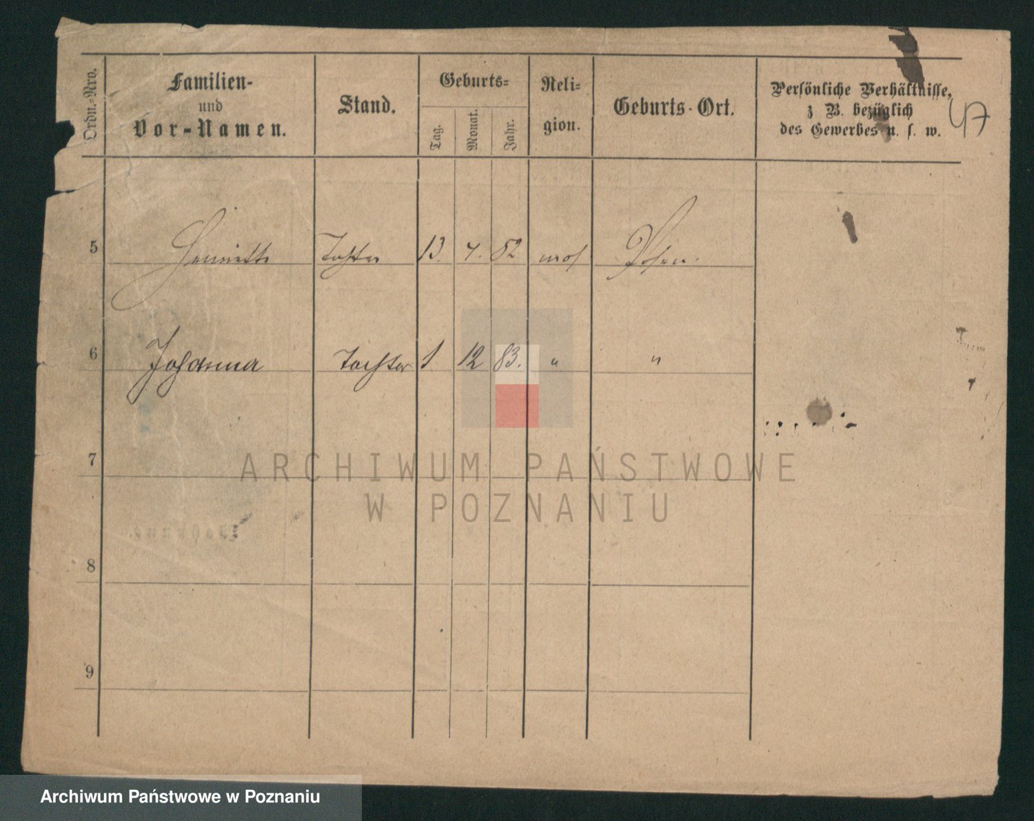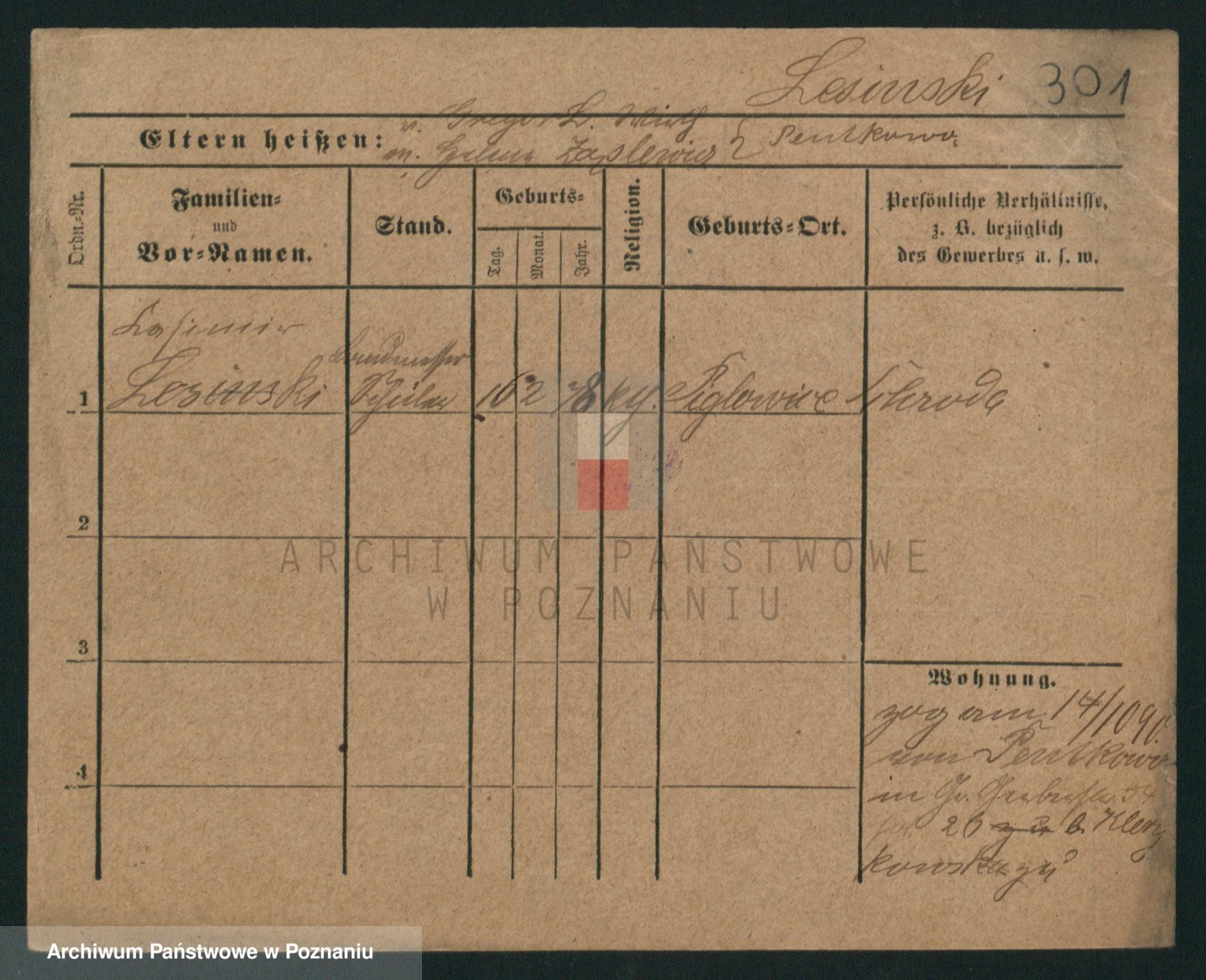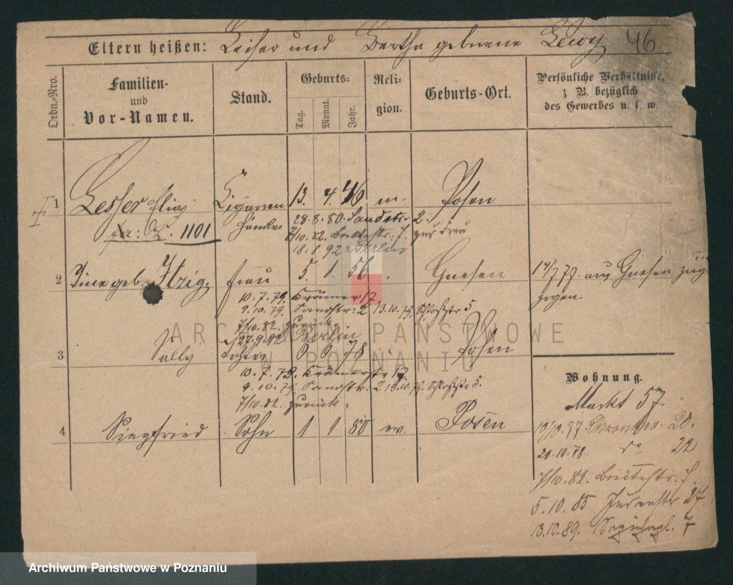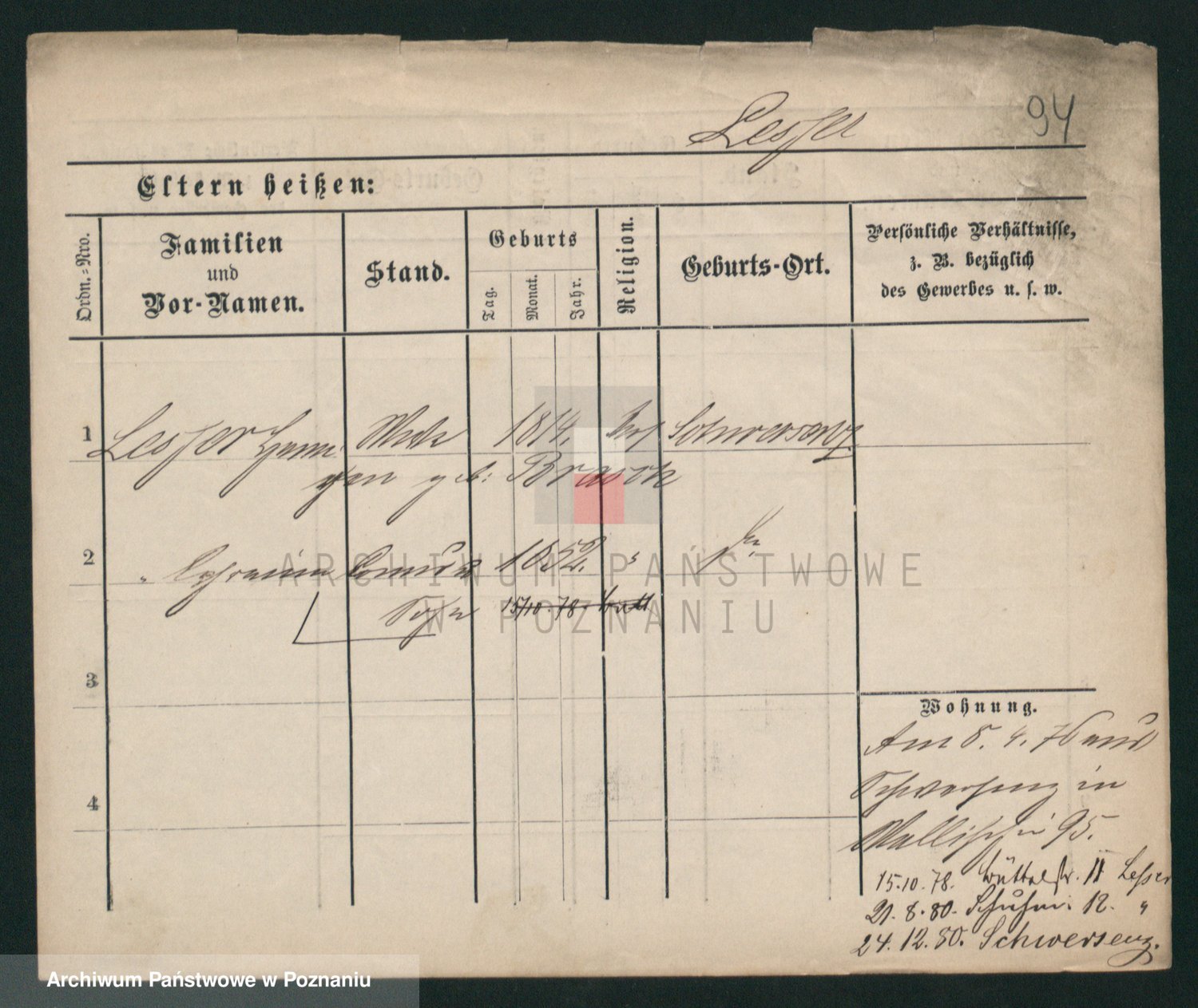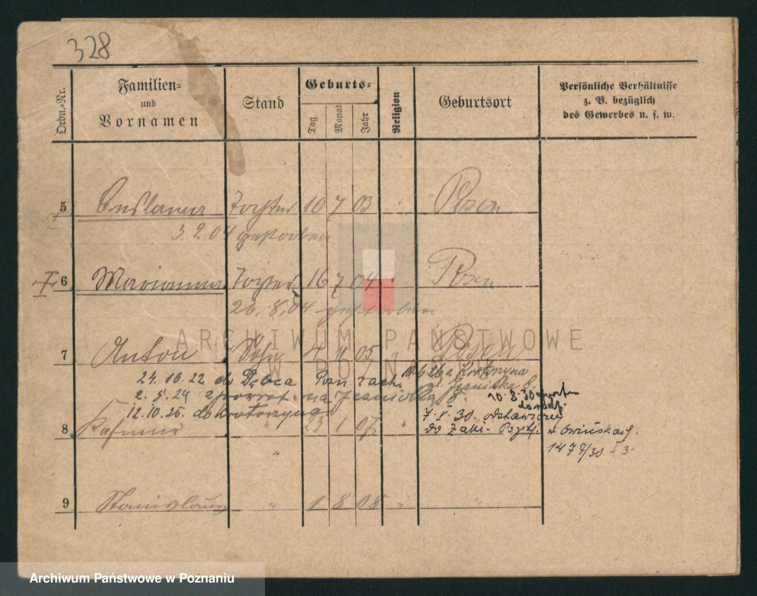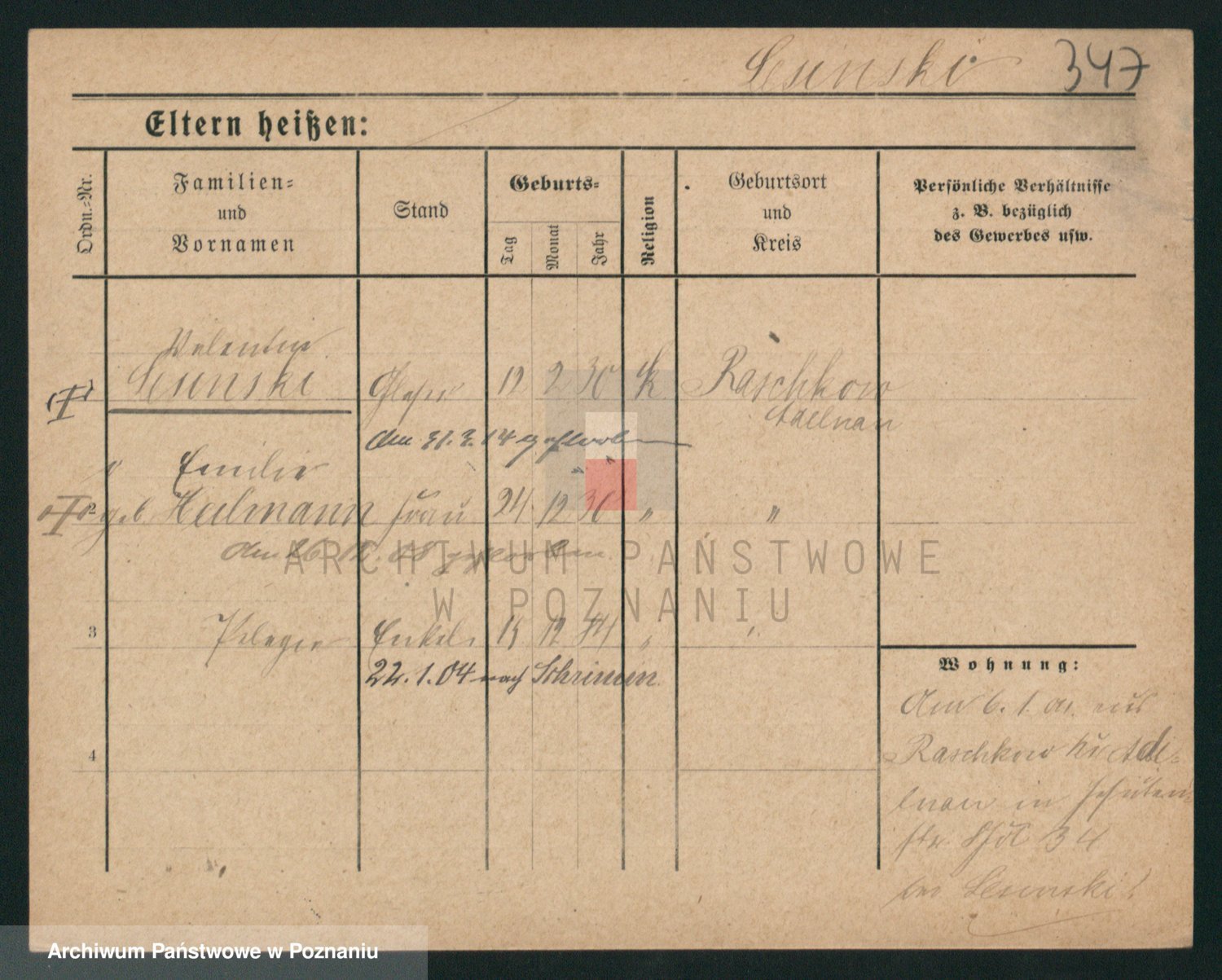 Podgląd karty osobowej dostępny jest po kliknięciu na nazwisko lub ikonkę karty. Można dokonywać powiększenia (ikony na górze) lub przechodzić między kolejnymi skanami (strzałki po bokach).