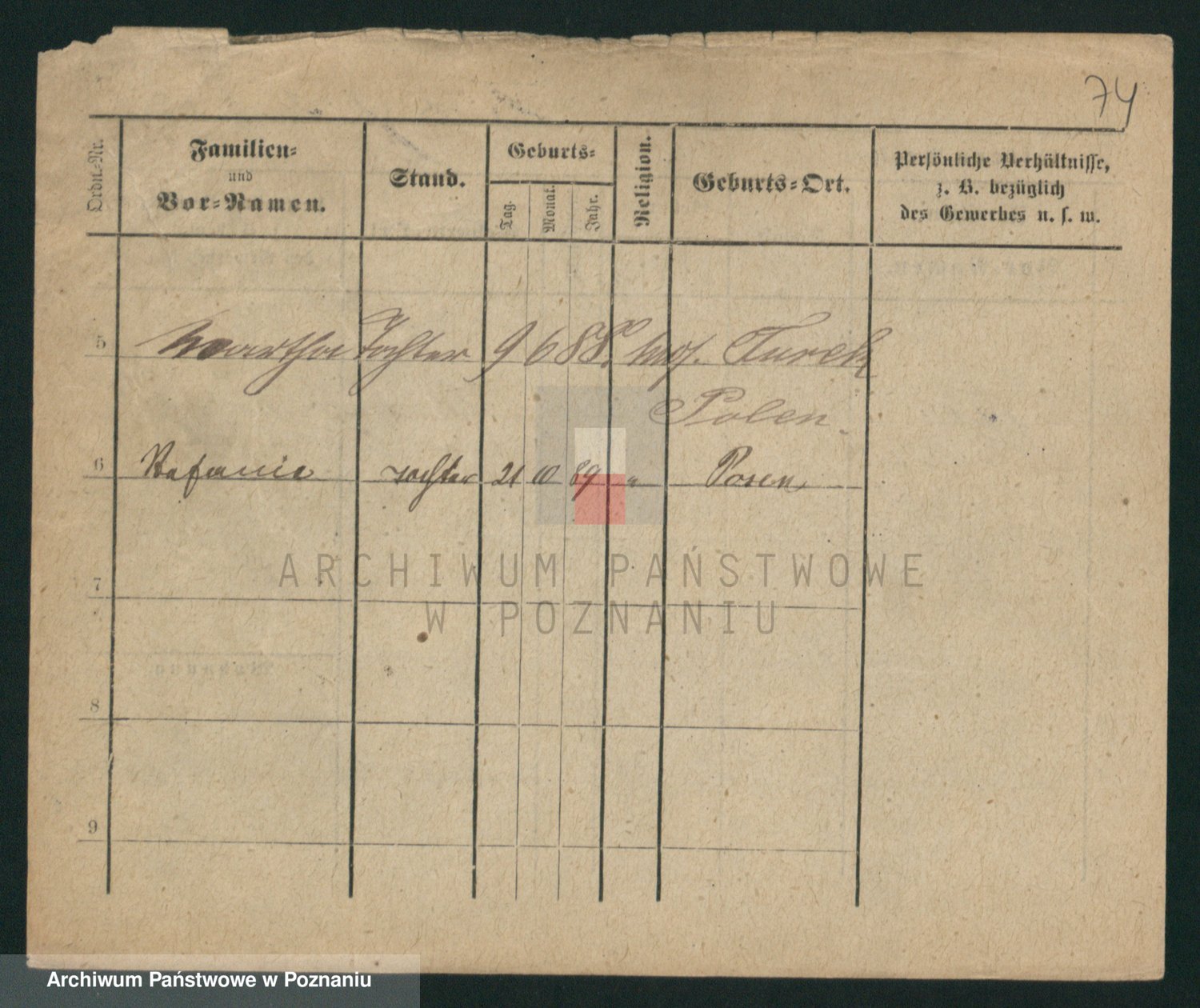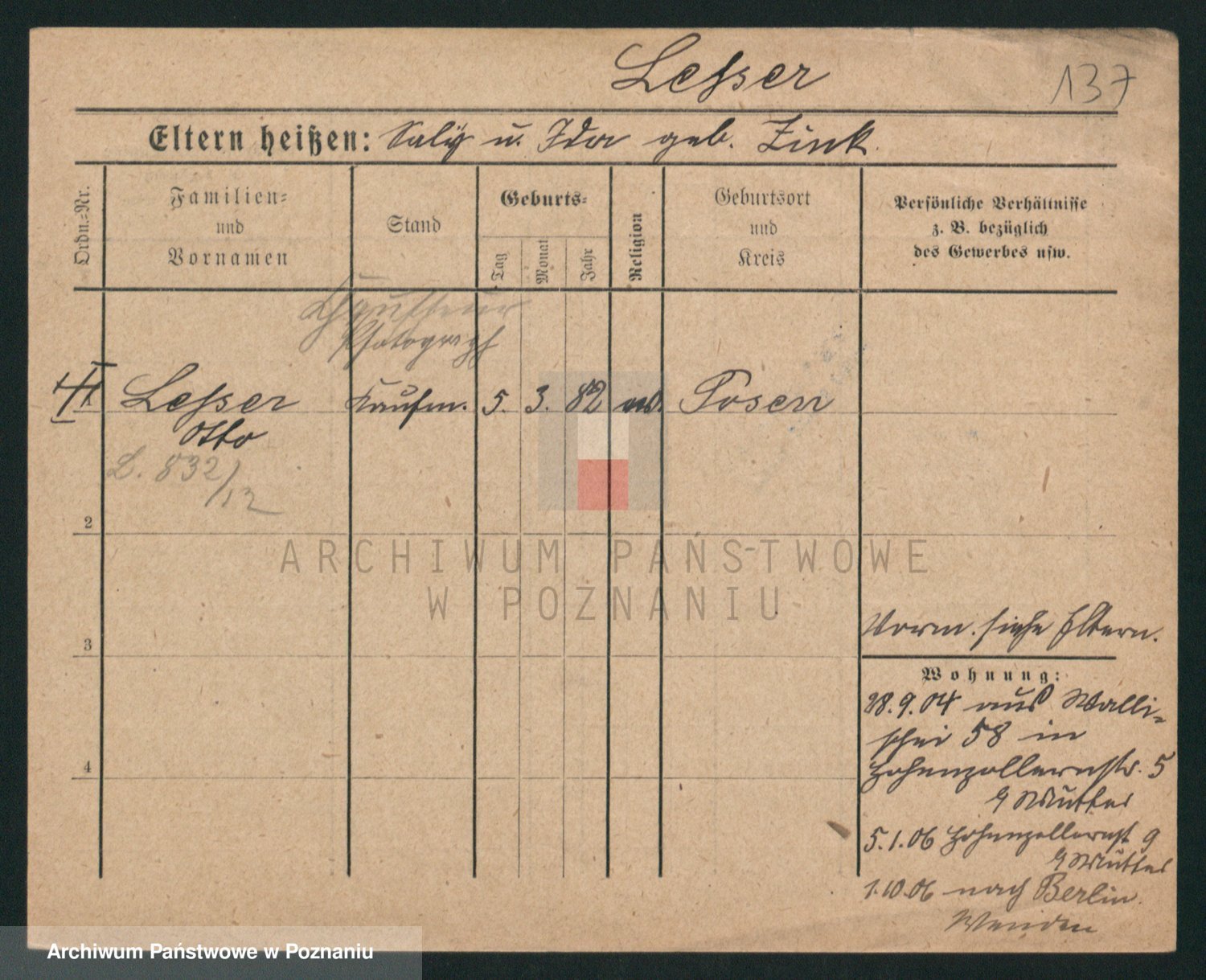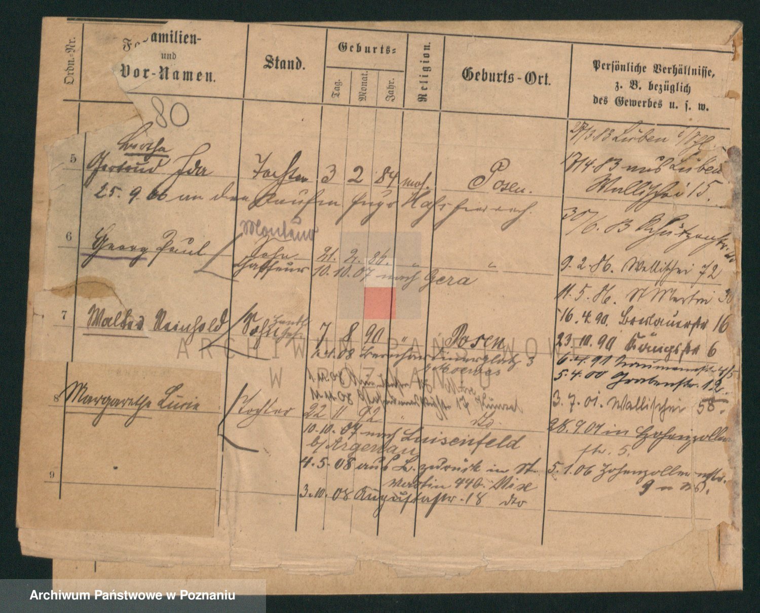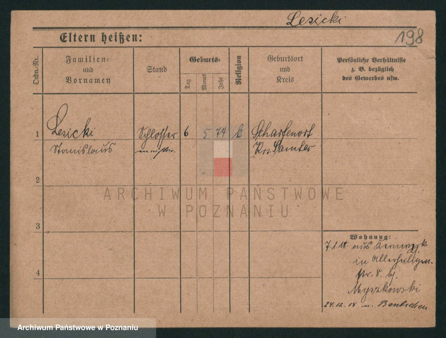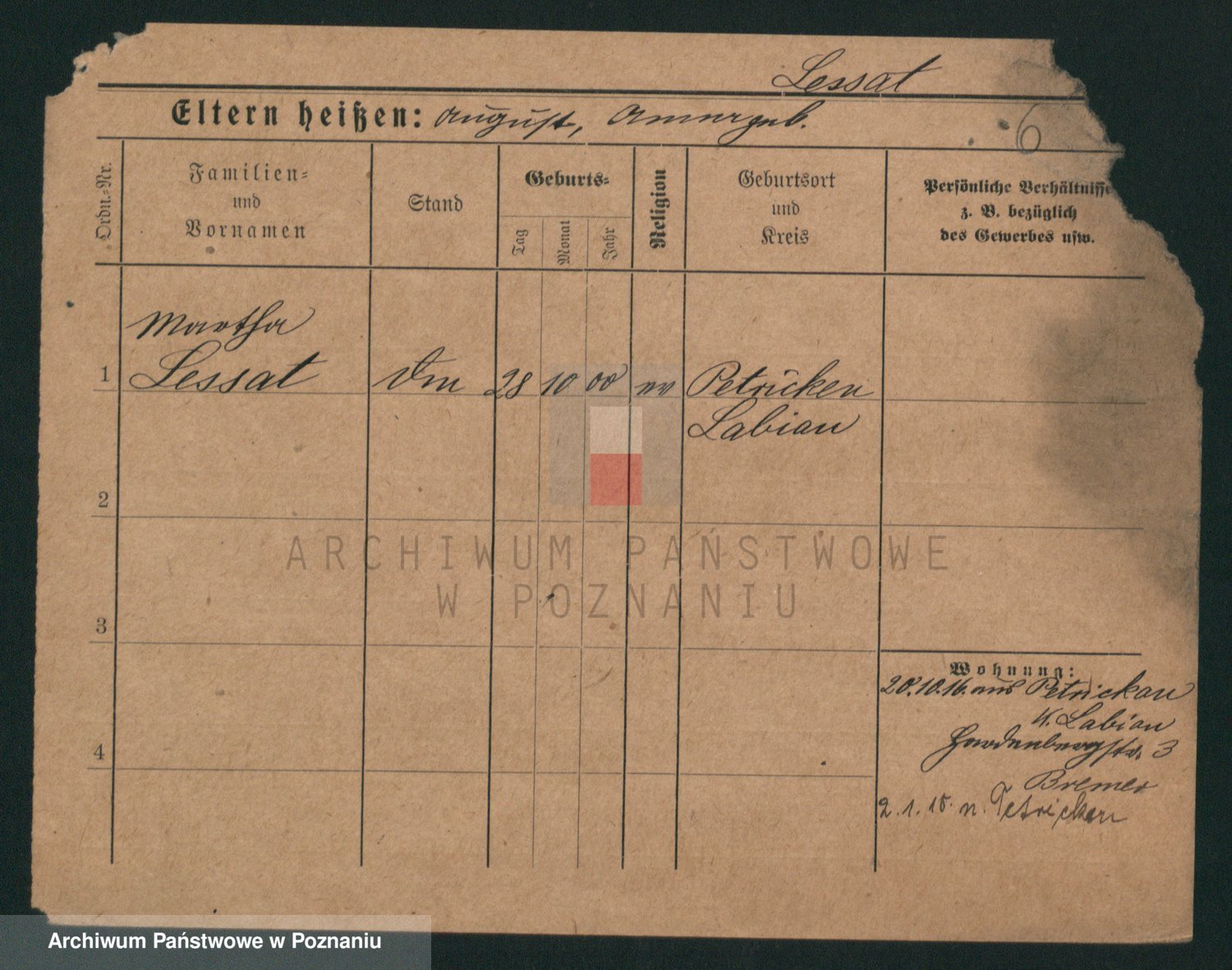 Podgląd karty osobowej dostępny jest po kliknięciu na nazwisko lub ikonkę karty. Można dokonywać powiększenia (ikony na górze) lub przechodzić między kolejnymi skanami (strzałki po bokach).