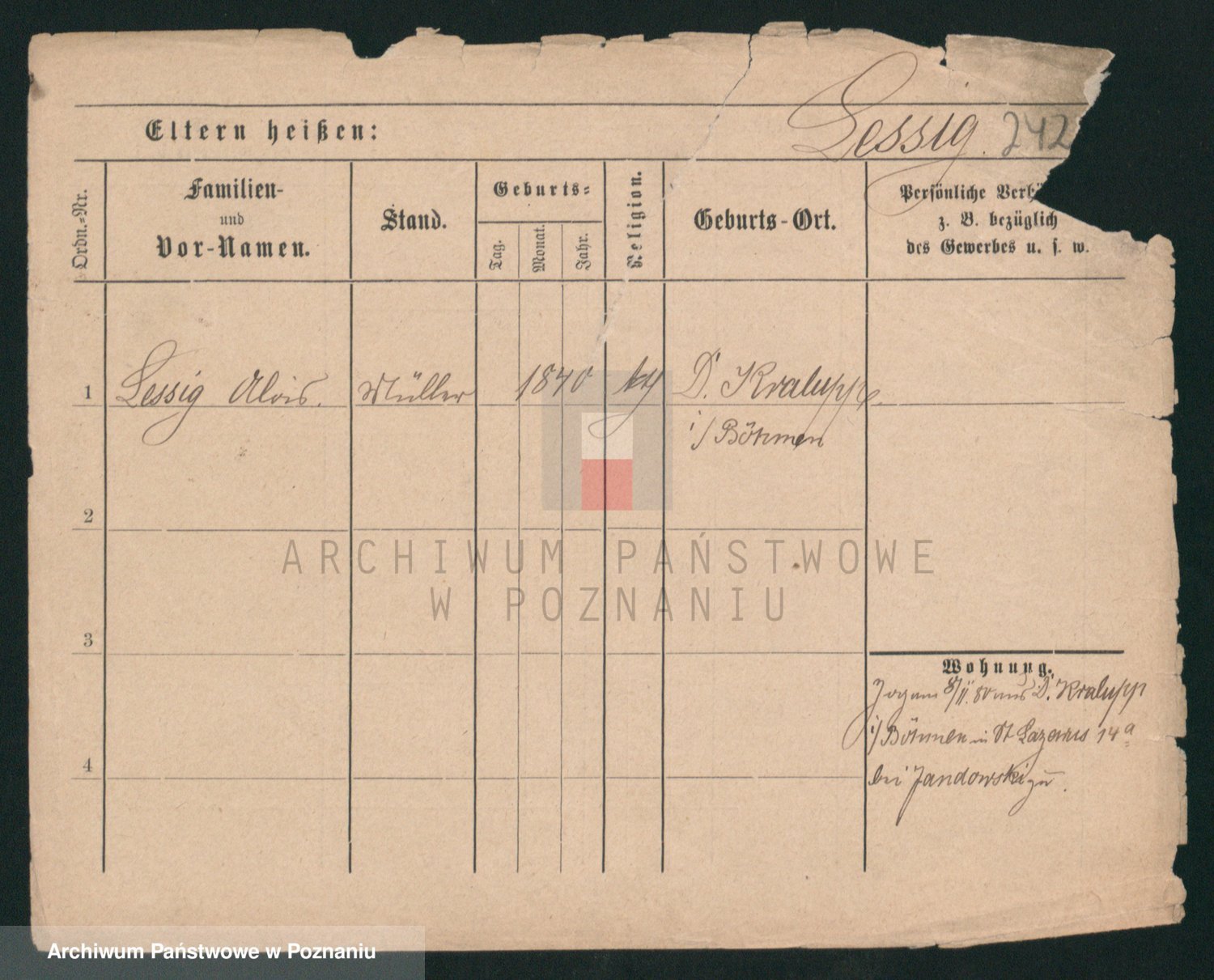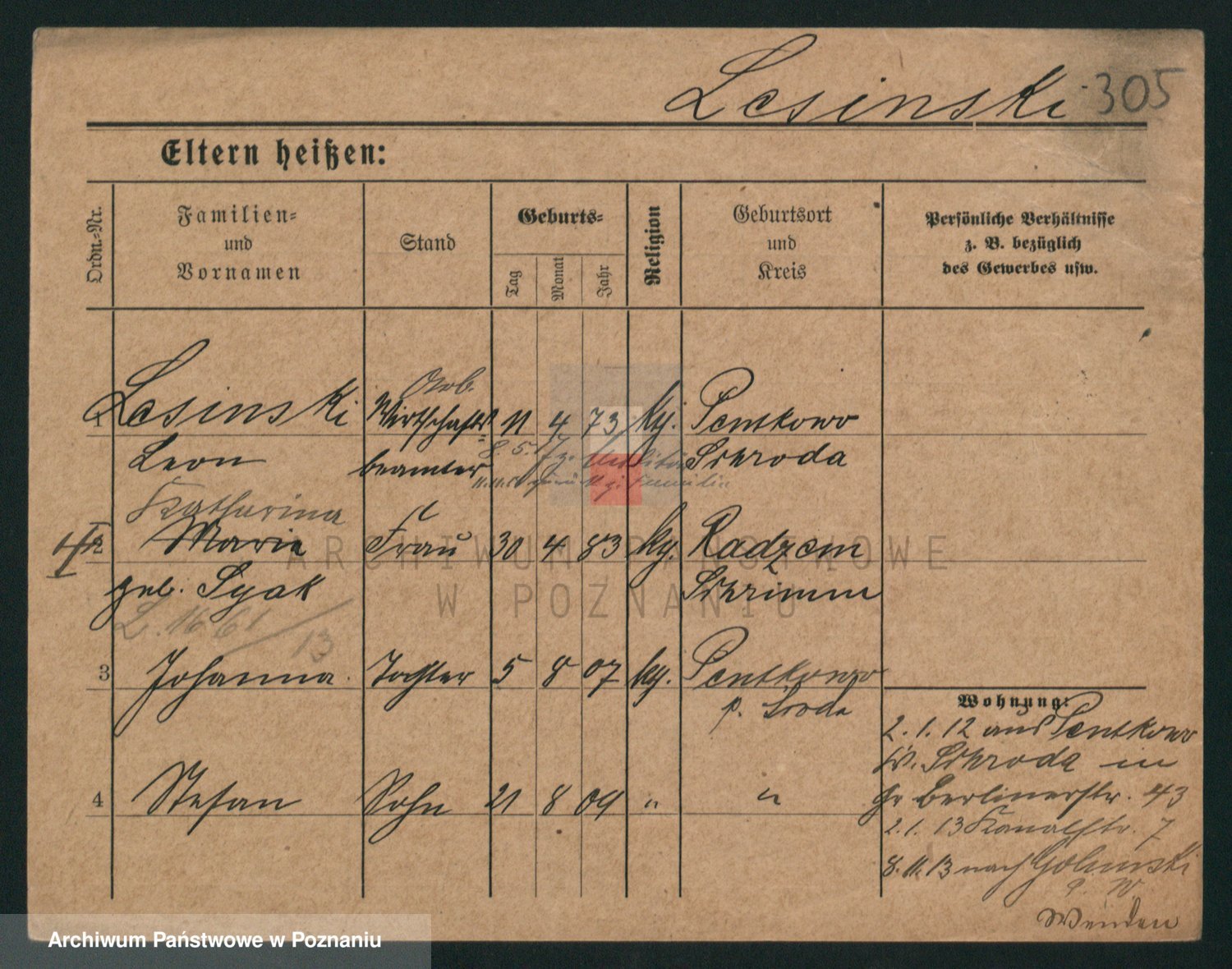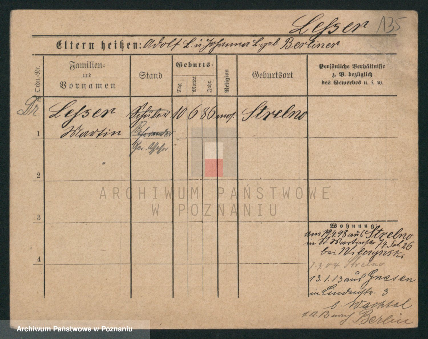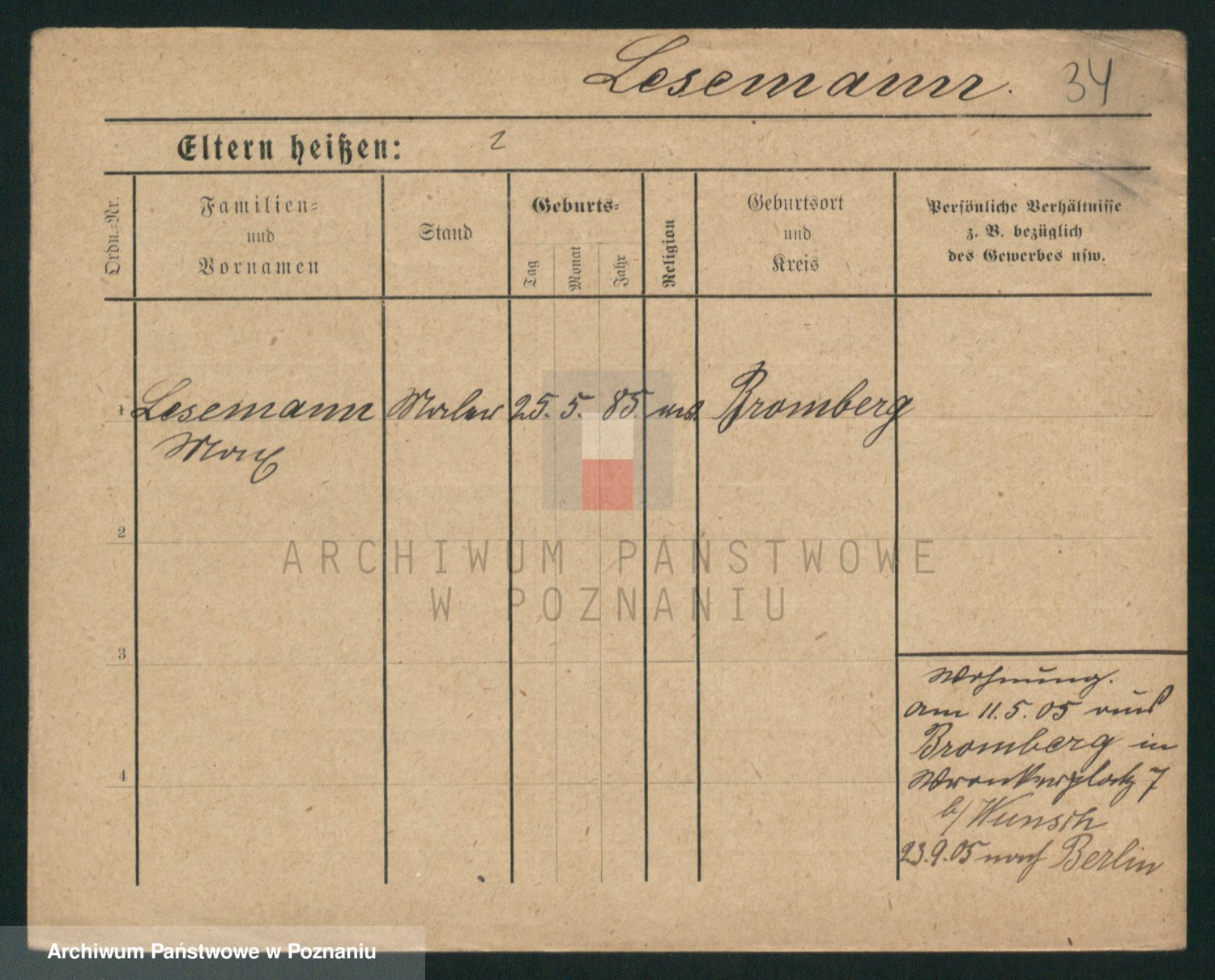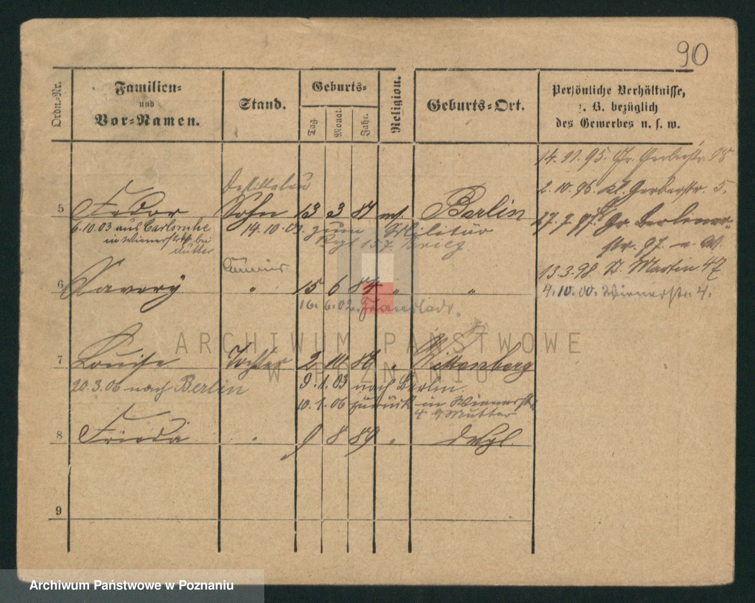 Podgląd karty osobowej dostępny jest po kliknięciu na nazwisko lub ikonkę karty. Można dokonywać powiększenia (ikony na górze) lub przechodzić między kolejnymi skanami (strzałki po bokach).