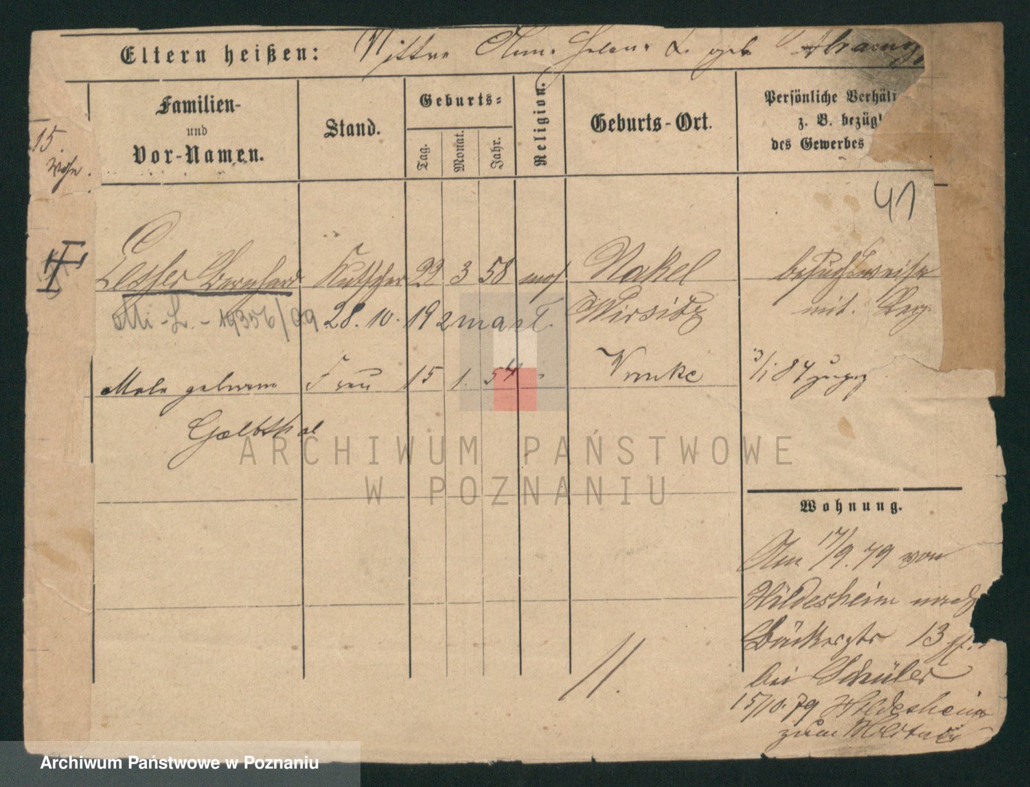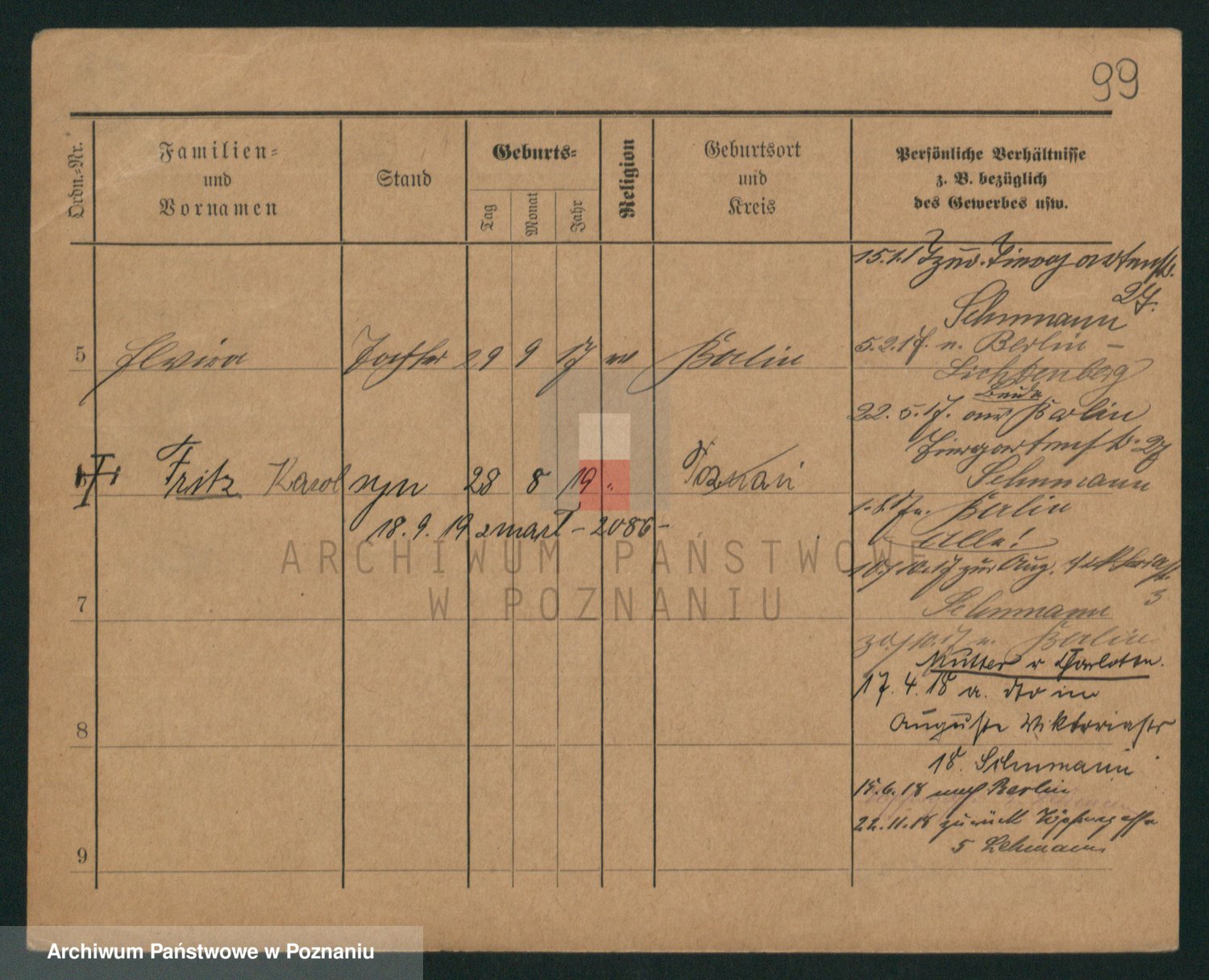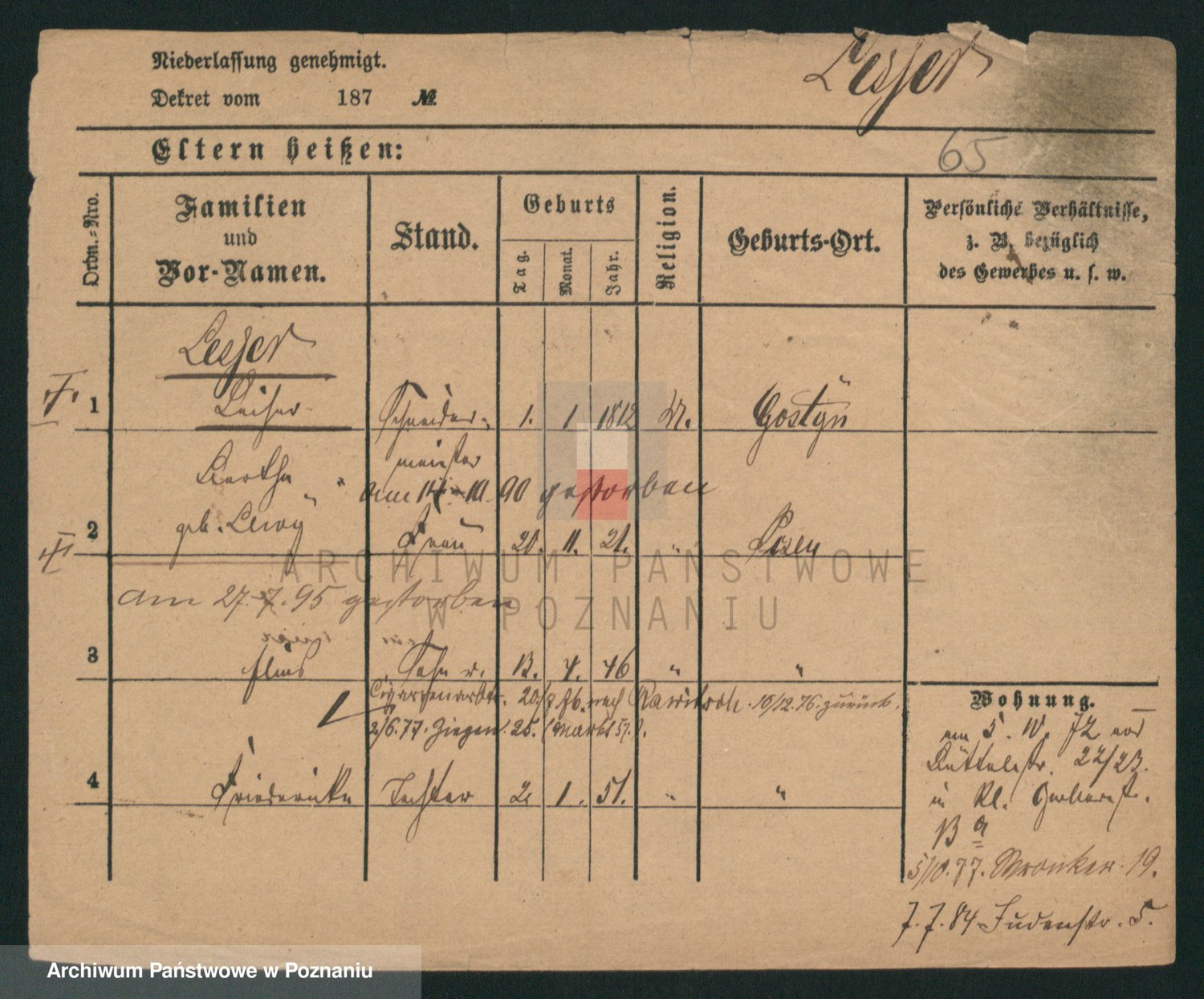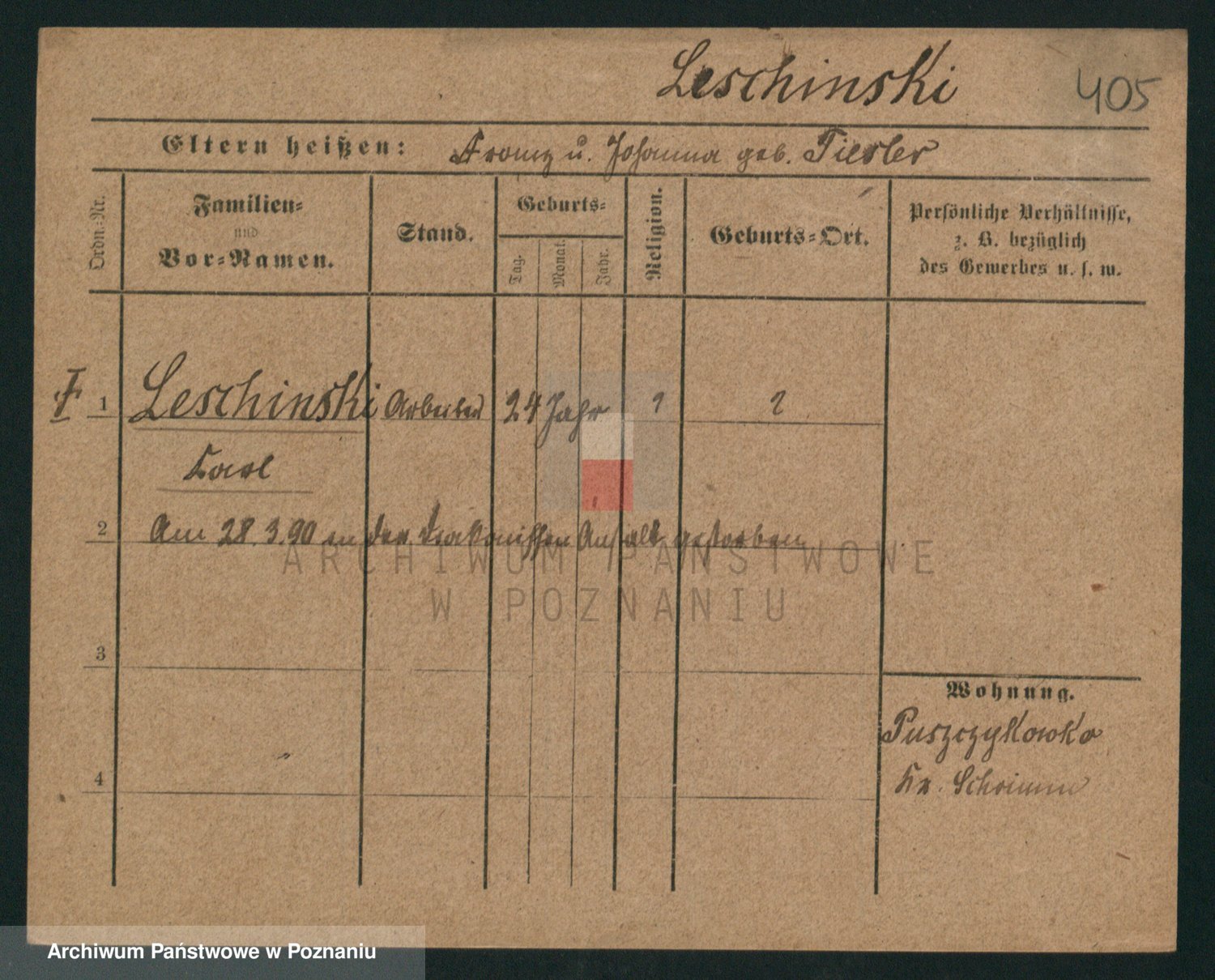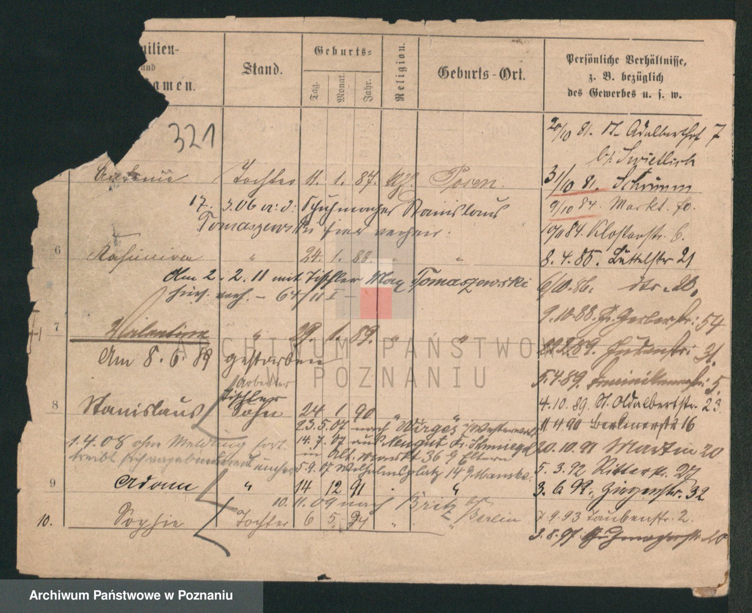 Podgląd karty osobowej dostępny jest po kliknięciu na nazwisko lub ikonkę karty. Można dokonywać powiększenia (ikony na górze) lub przechodzić między kolejnymi skanami (strzałki po bokach).