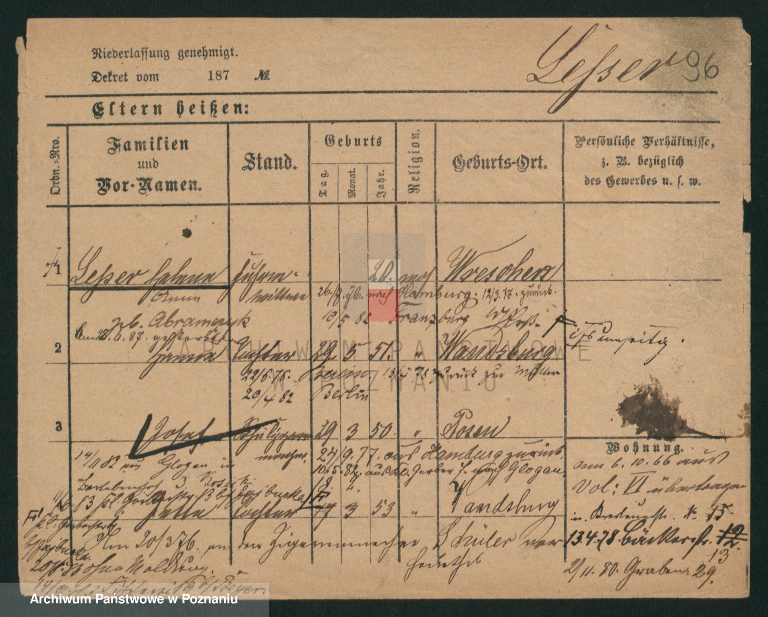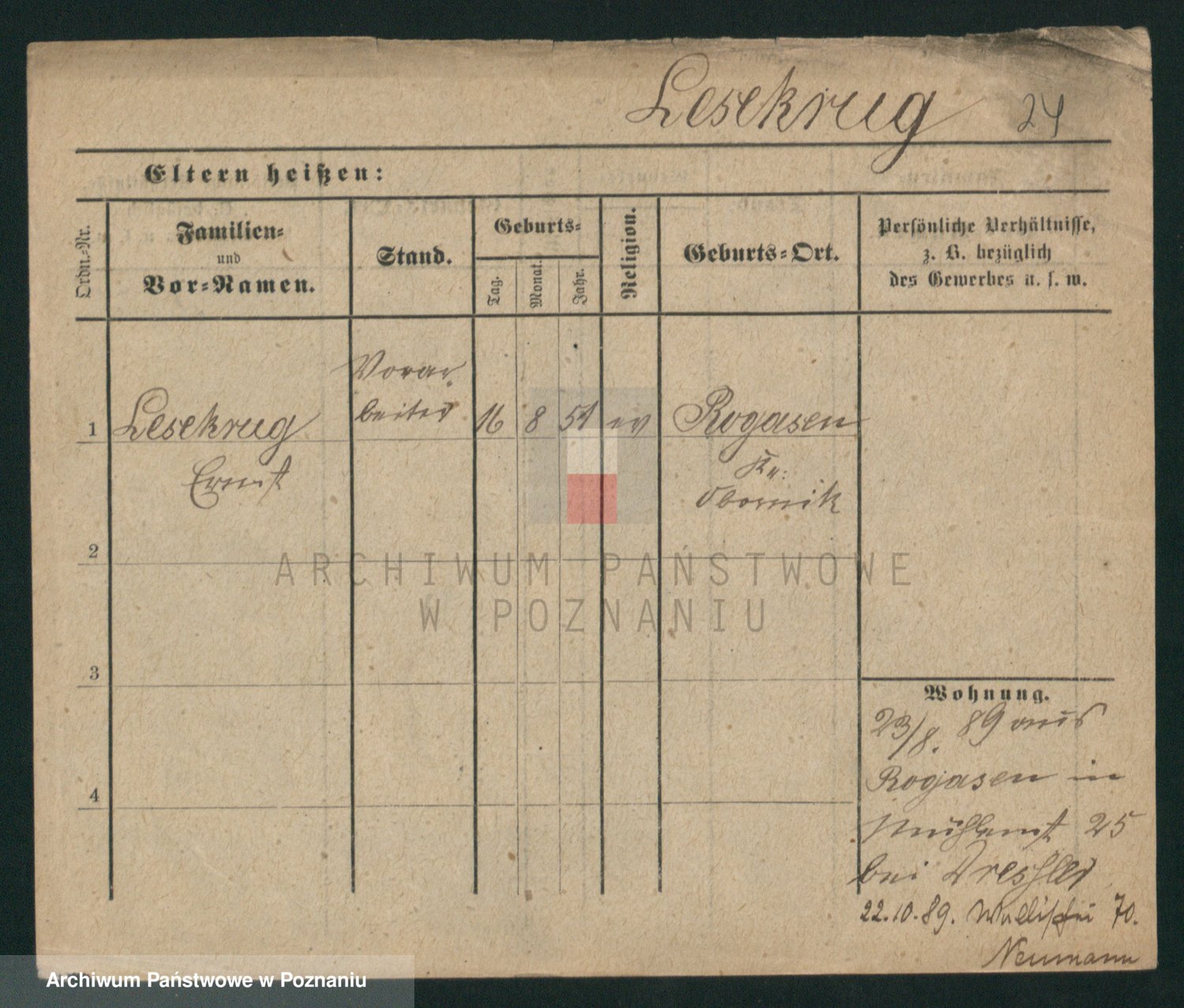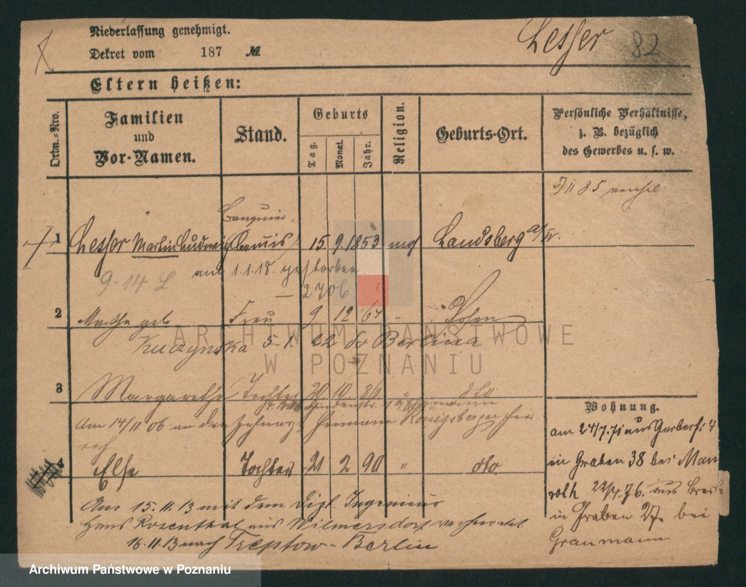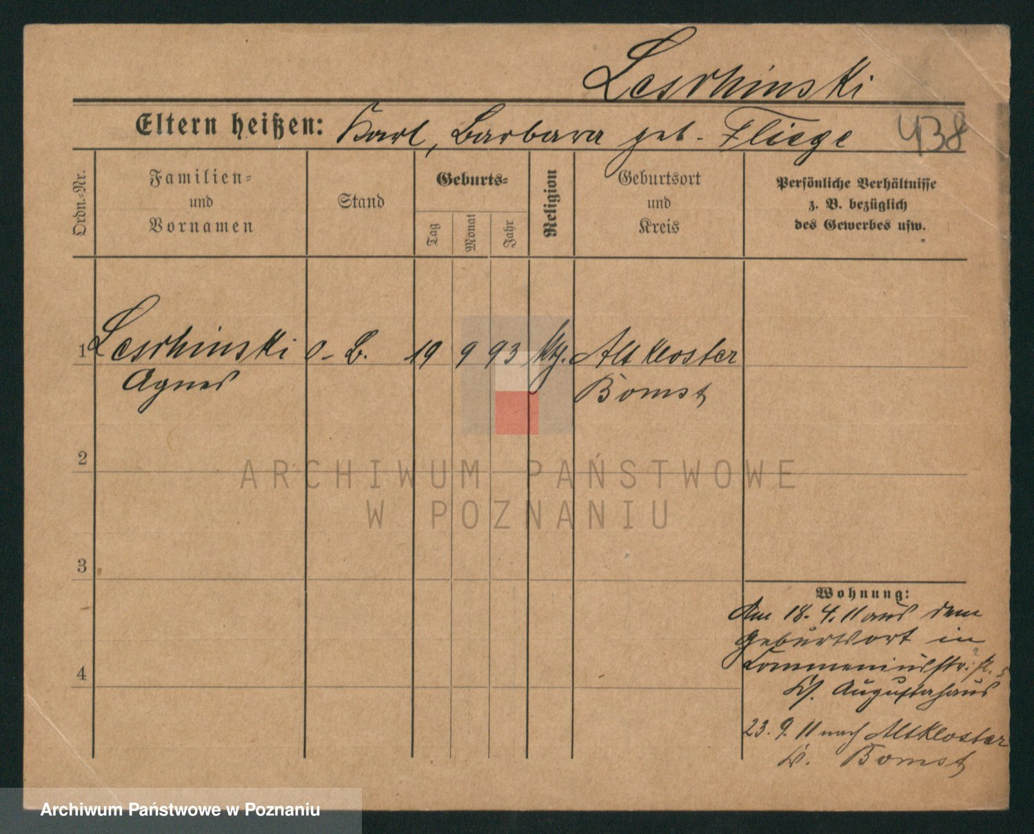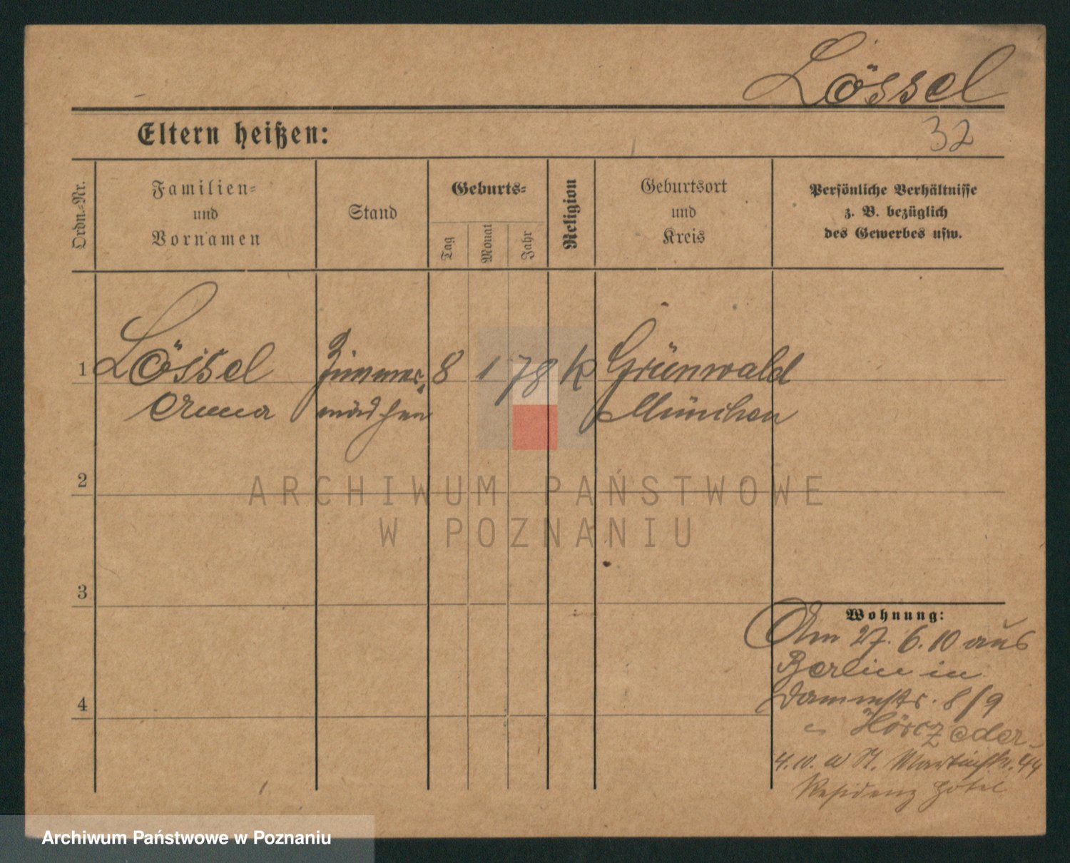 Podgląd karty osobowej dostępny jest po kliknięciu na nazwisko lub ikonkę karty. Można dokonywać powiększenia (ikony na górze) lub przechodzić między kolejnymi skanami (strzałki po bokach).