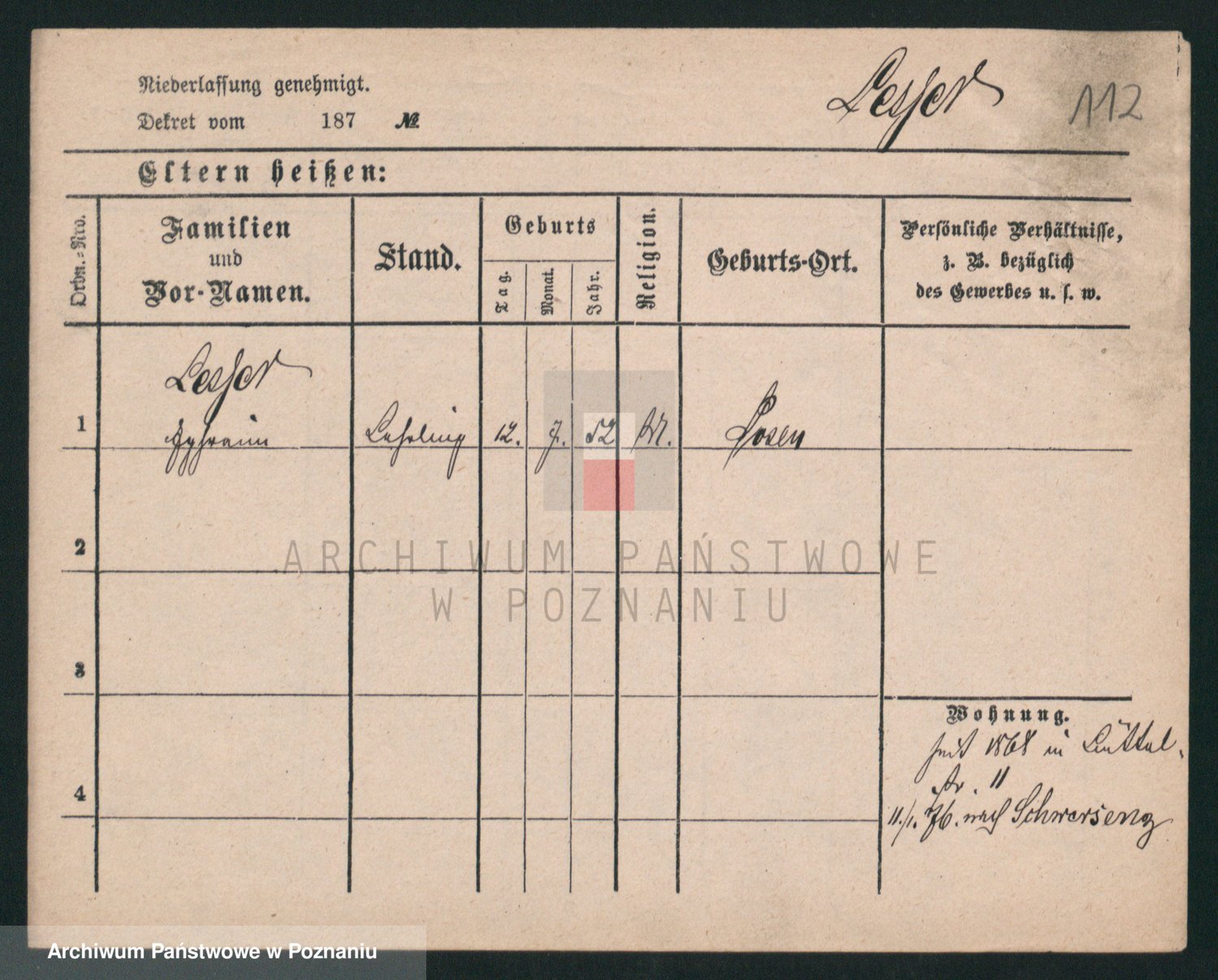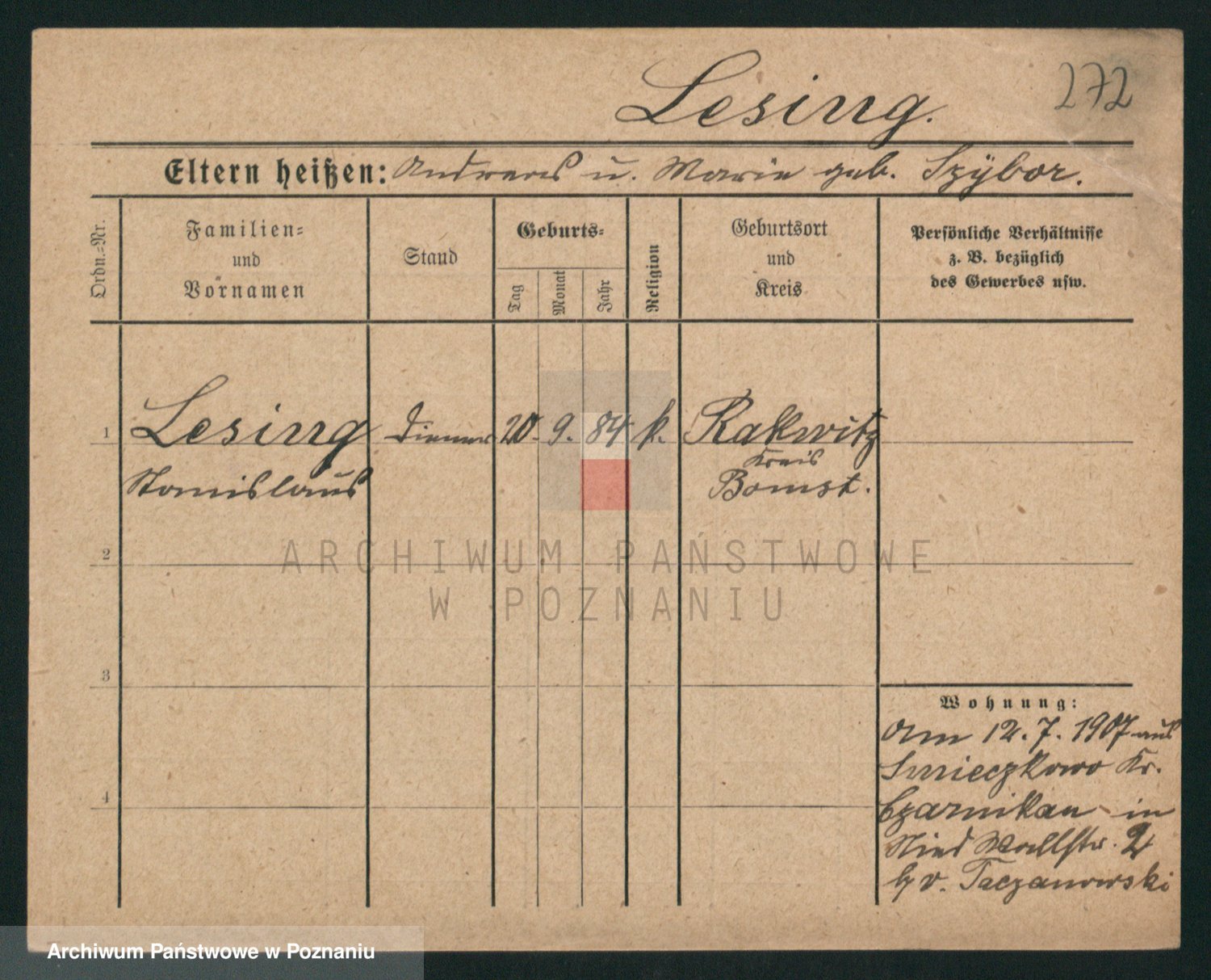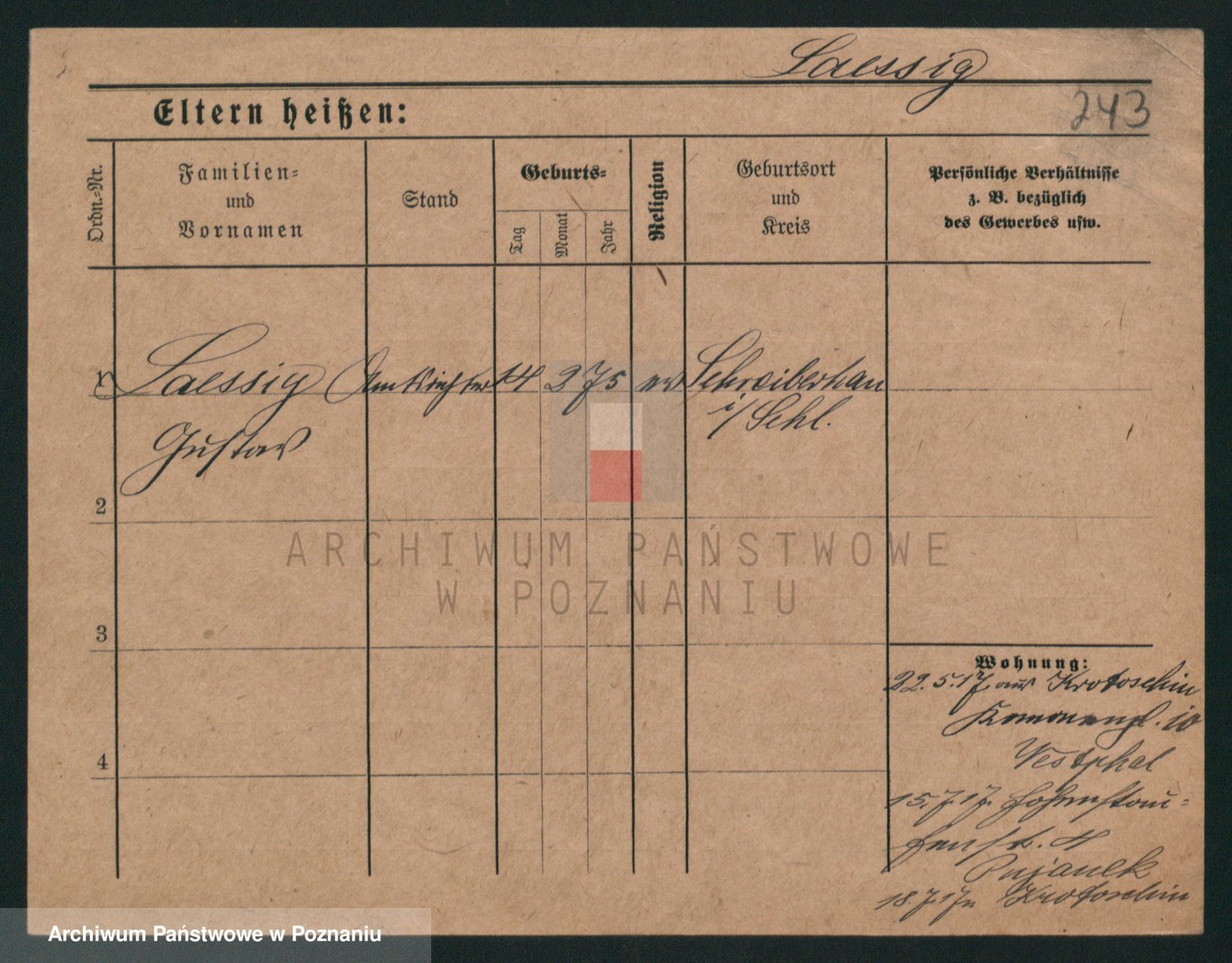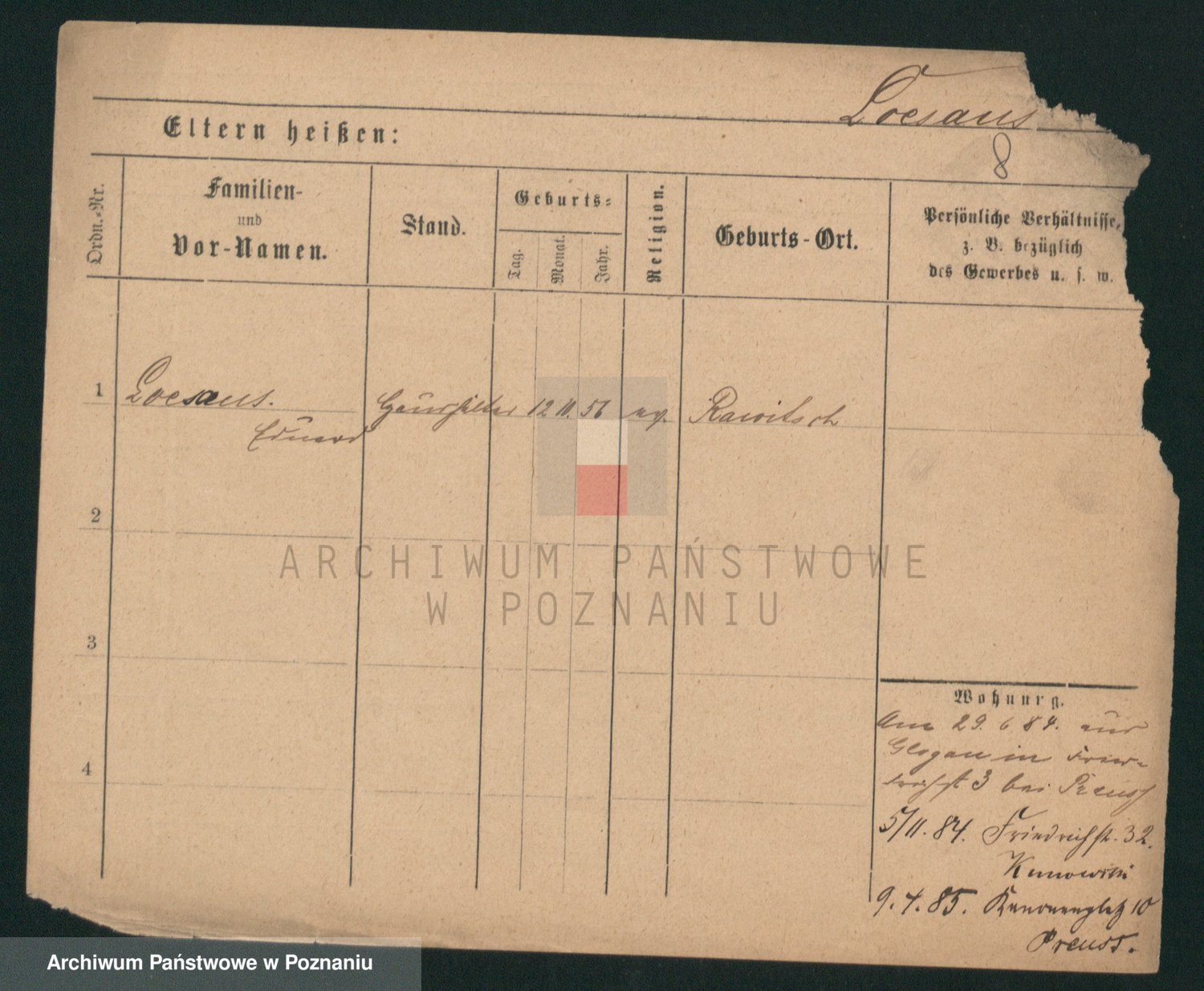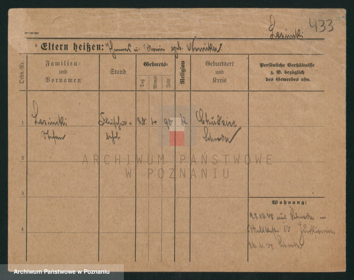 Podgląd karty osobowej dostępny jest po kliknięciu na nazwisko lub ikonkę karty. Można dokonywać powiększenia (ikony na górze) lub przechodzić między kolejnymi skanami (strzałki po bokach).