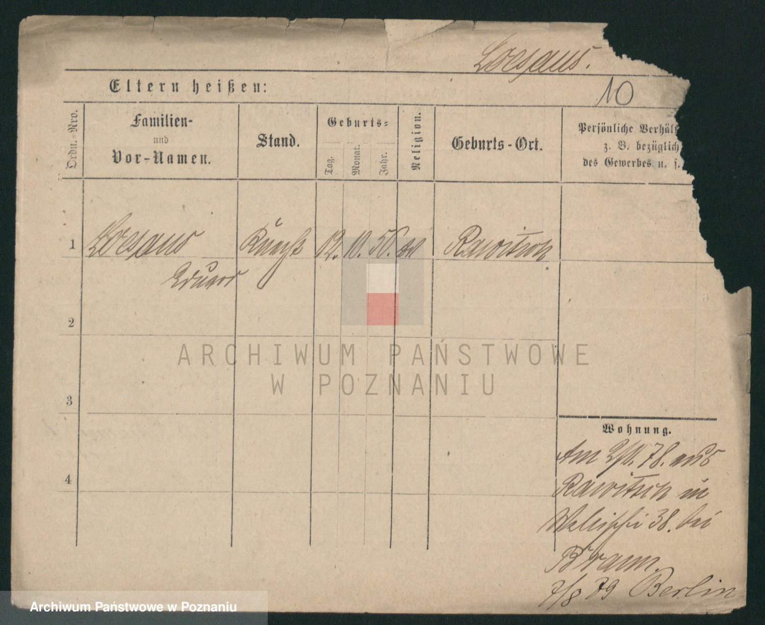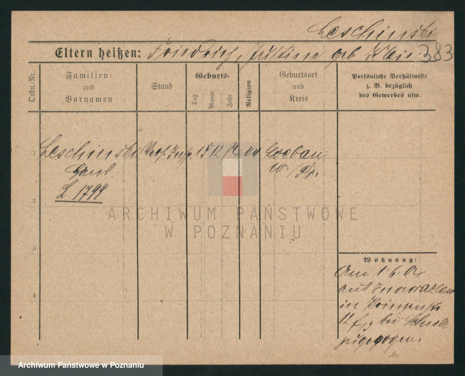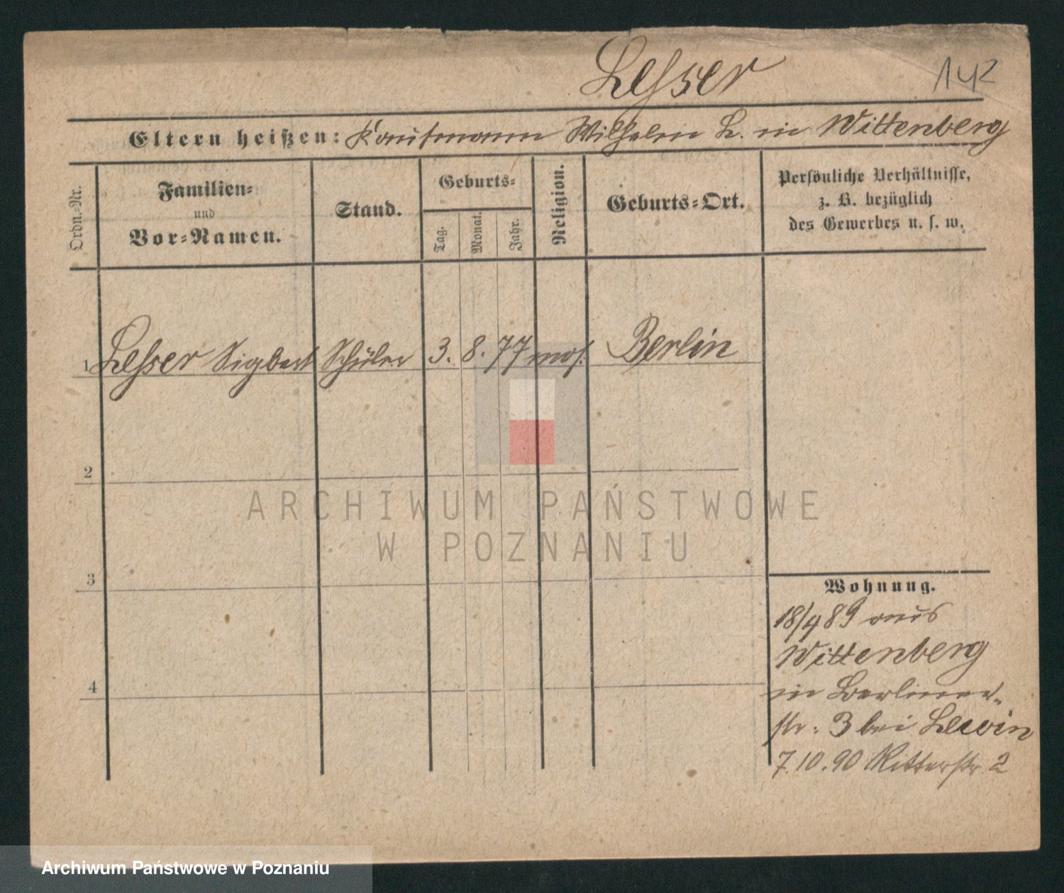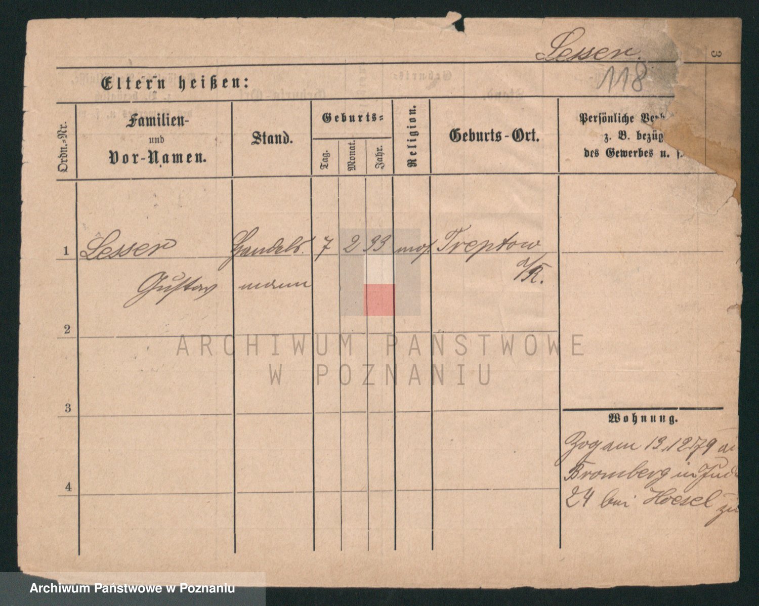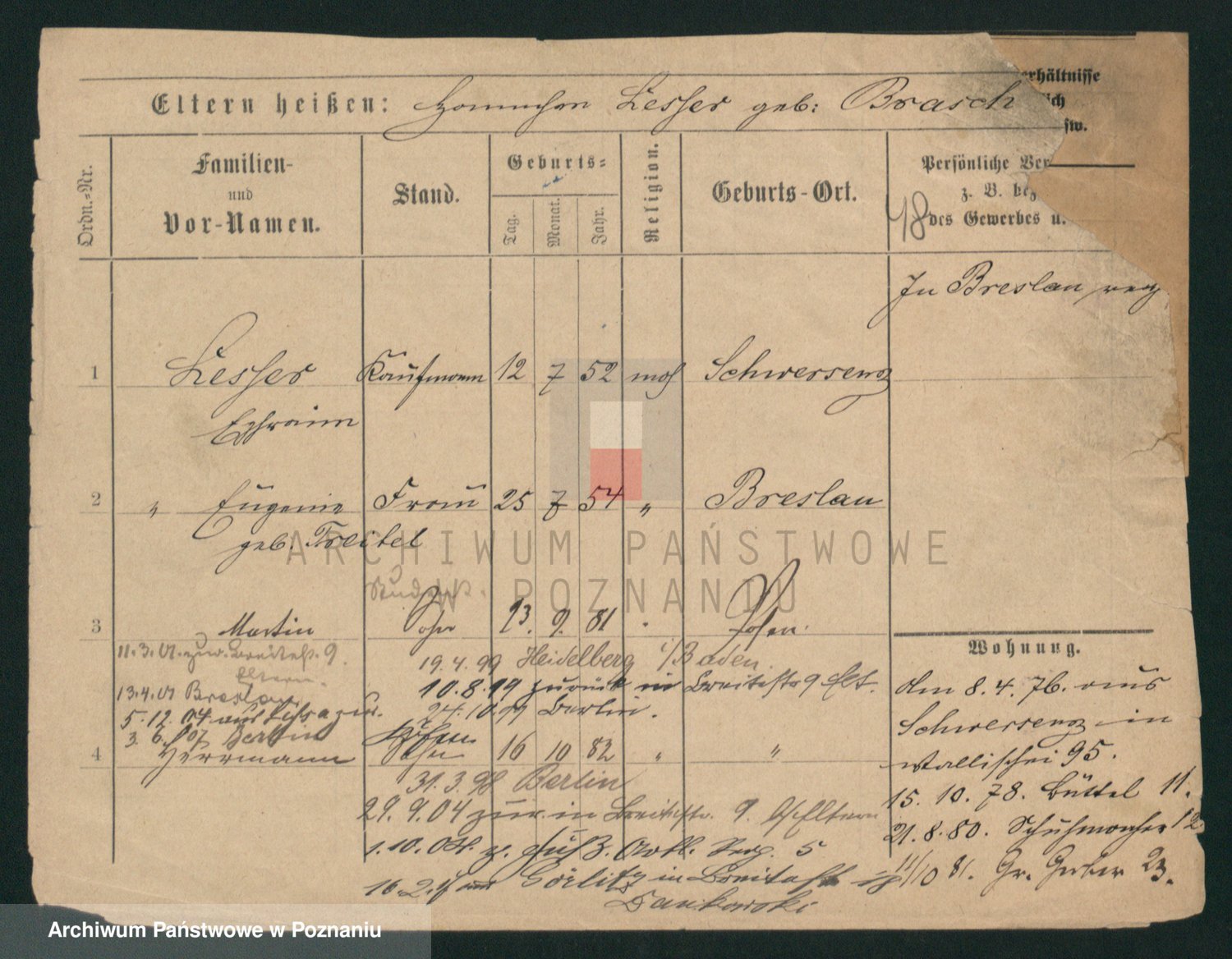 Podgląd karty osobowej dostępny jest po kliknięciu na nazwisko lub ikonkę karty. Można dokonywać powiększenia (ikony na górze) lub przechodzić między kolejnymi skanami (strzałki po bokach).