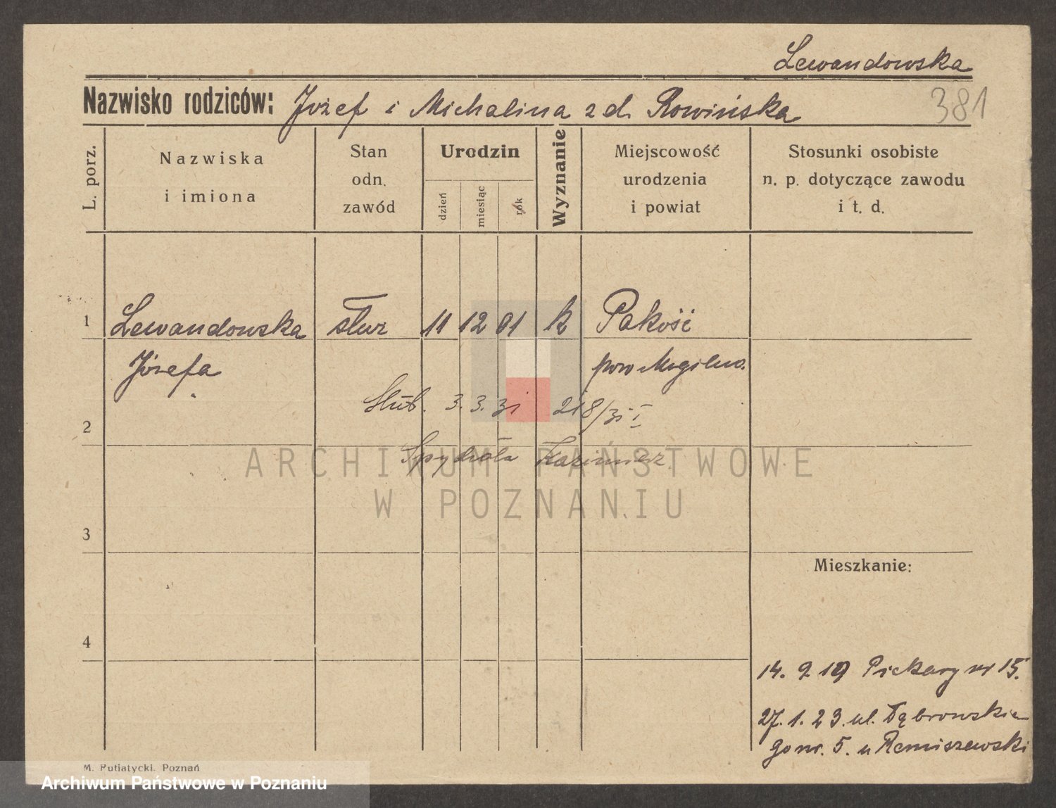 Lewandowski, Zofja Jozefa