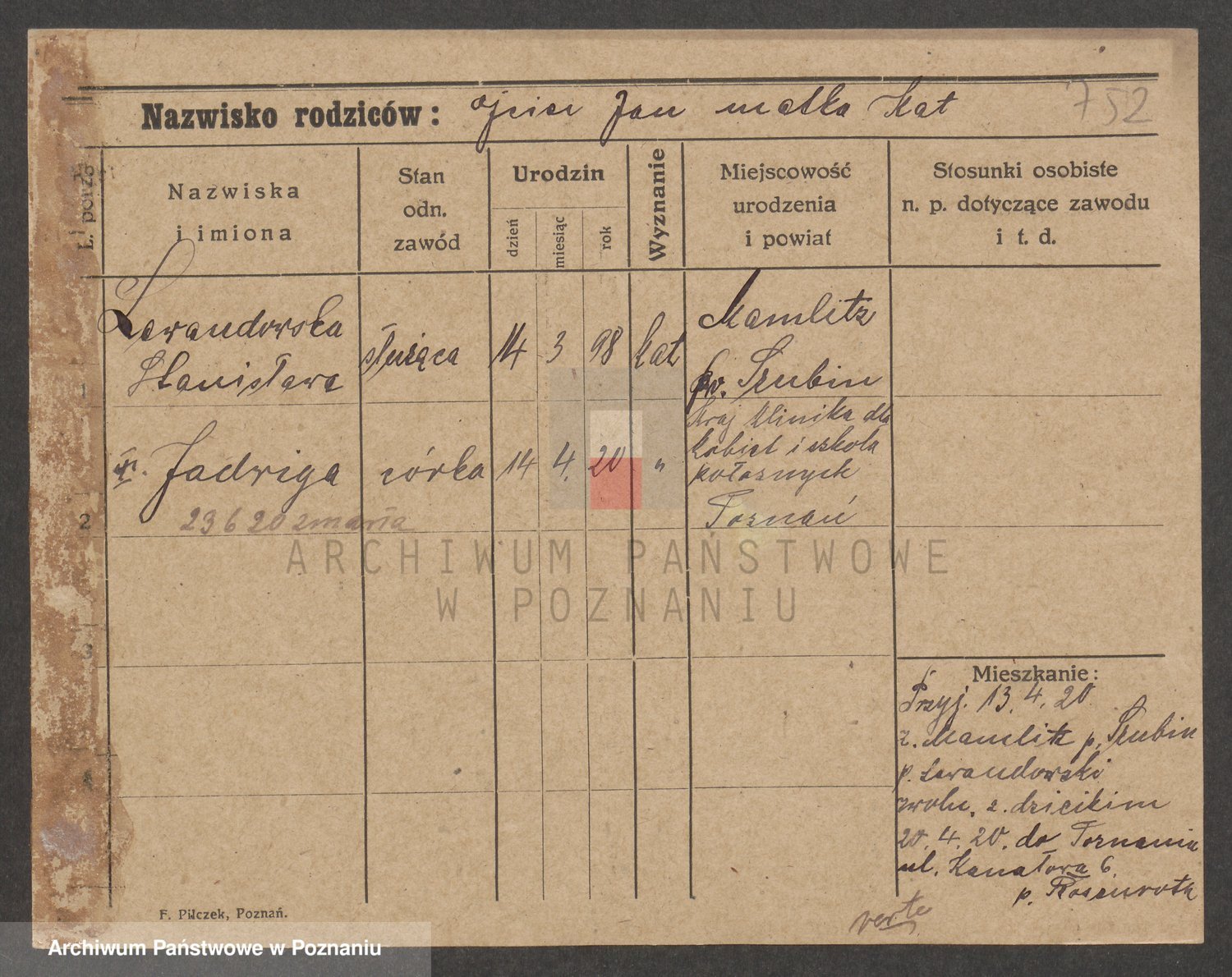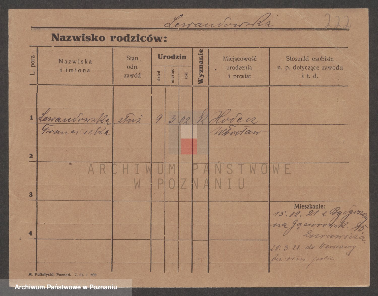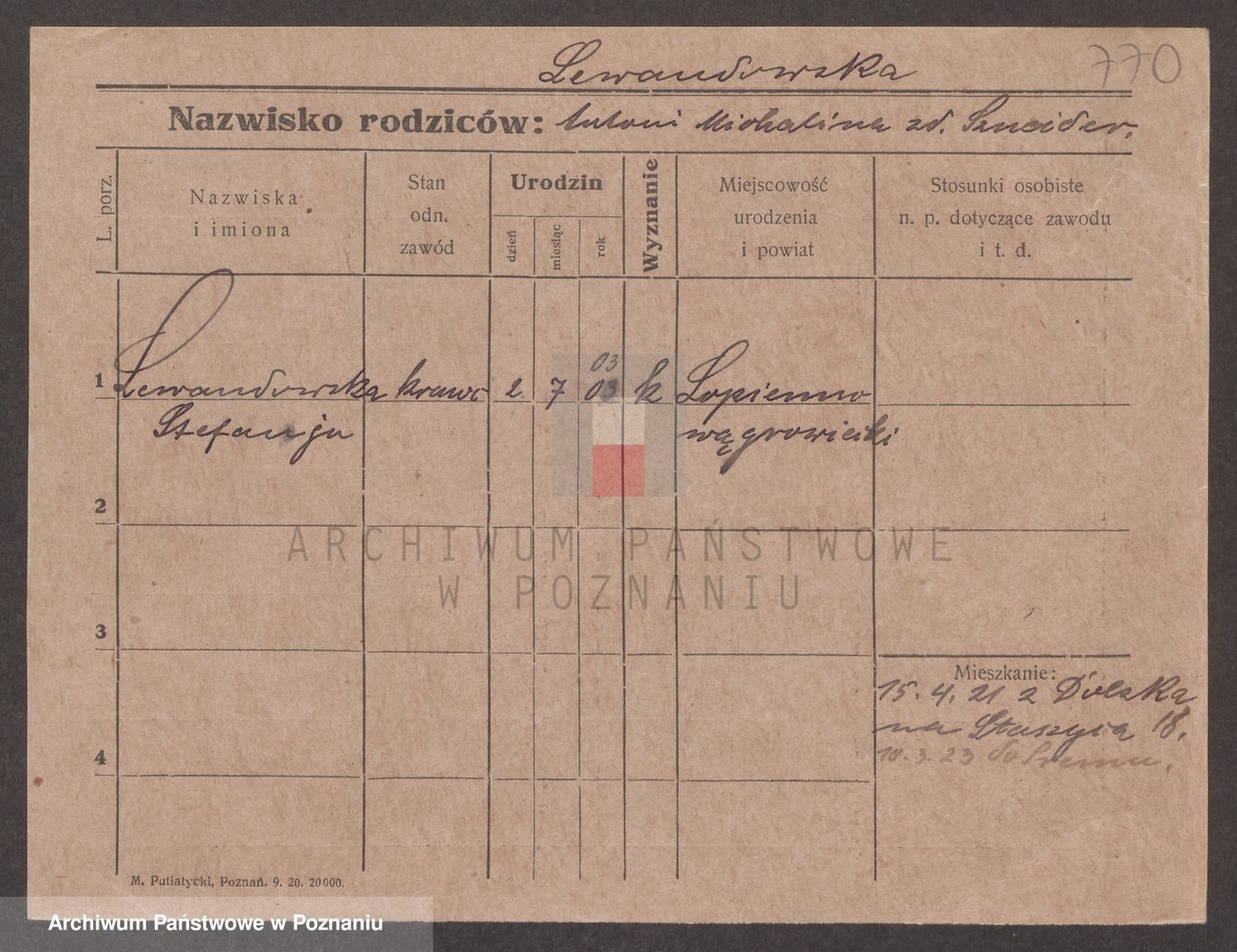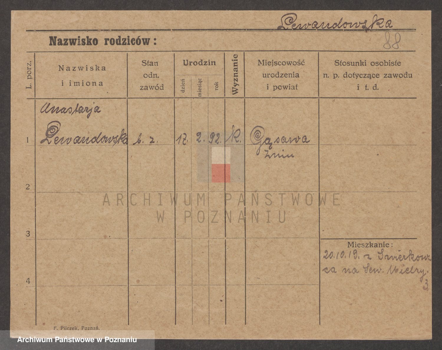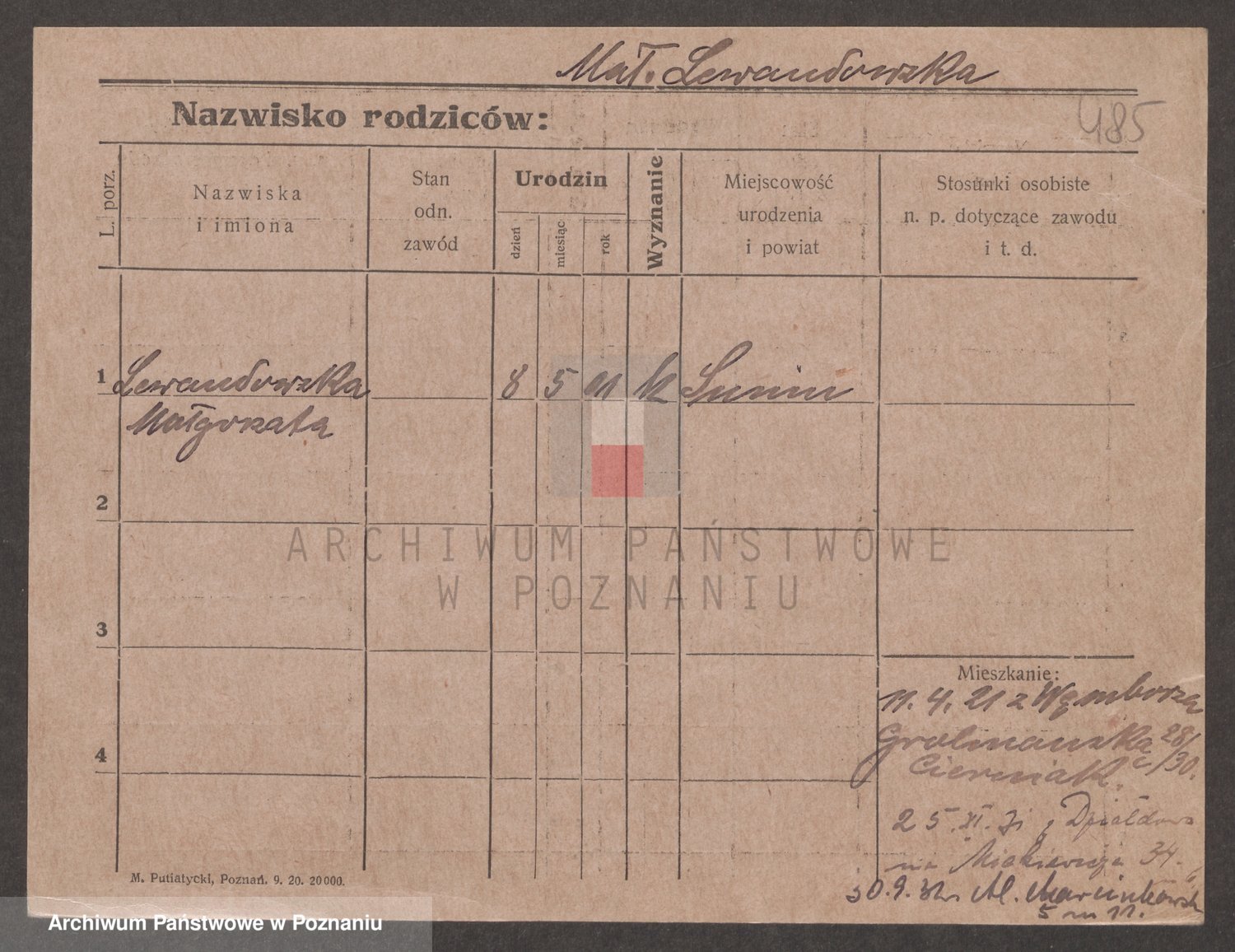 Podgląd karty osobowej dostępny jest po kliknięciu na nazwisko lub ikonkę karty. Można dokonywać powiększenia (ikony na górze) lub przechodzić między kolejnymi skanami (strzałki po bokach).