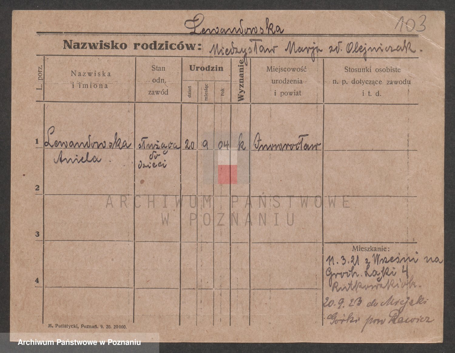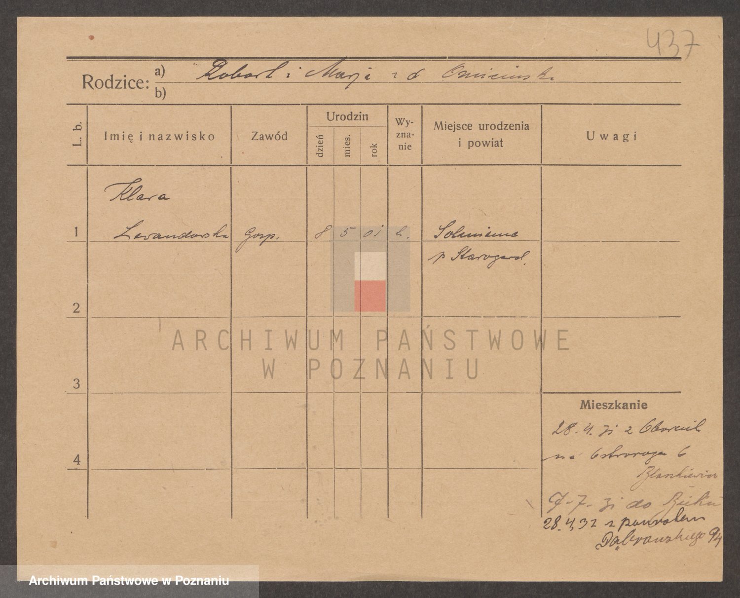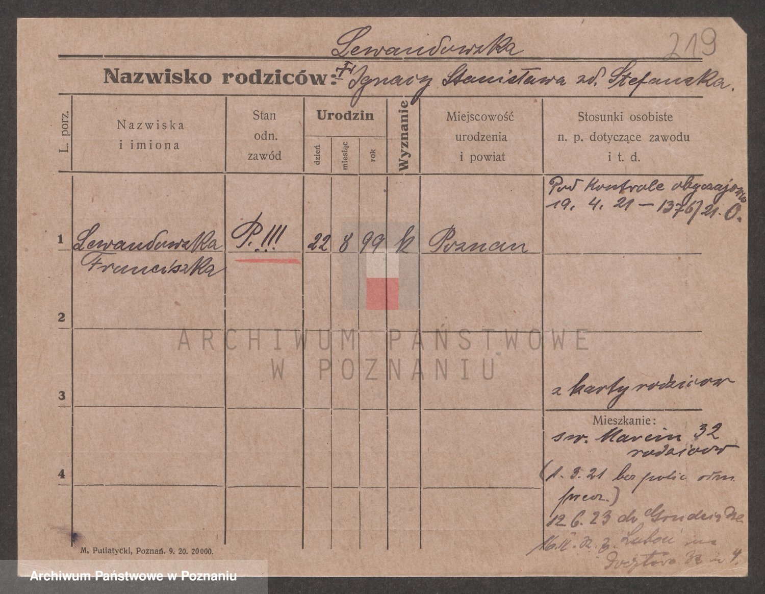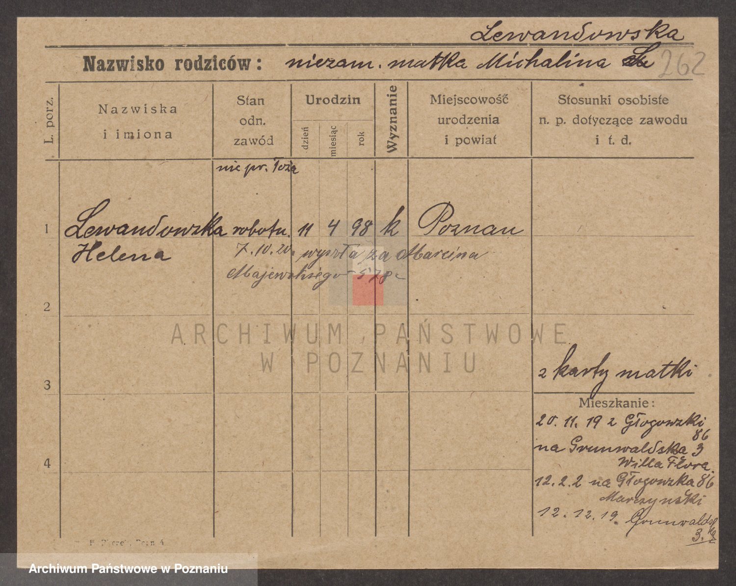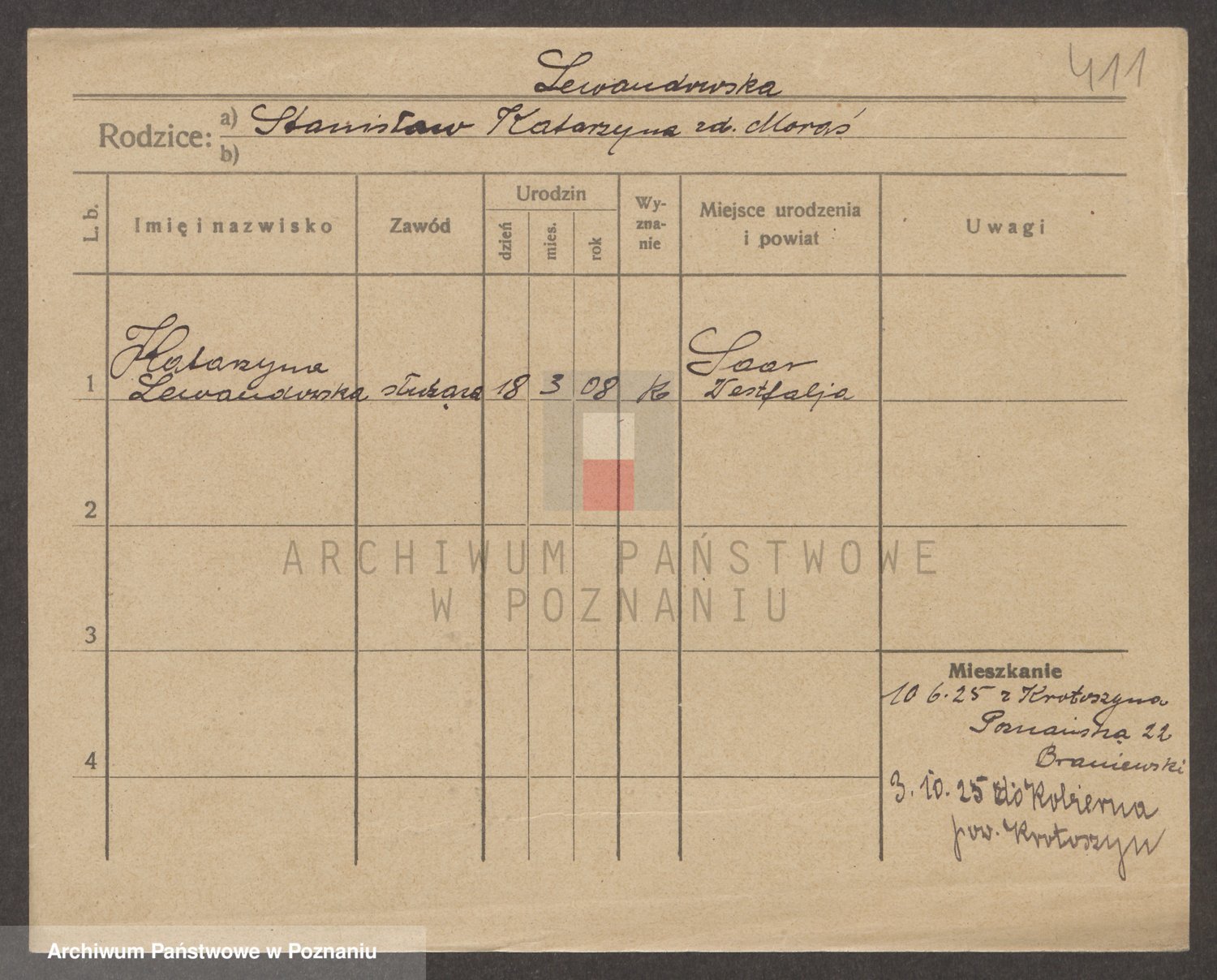 Podgląd karty osobowej dostępny jest po kliknięciu na nazwisko lub ikonkę karty. Można dokonywać powiększenia (ikony na górze) lub przechodzić między kolejnymi skanami (strzałki po bokach).