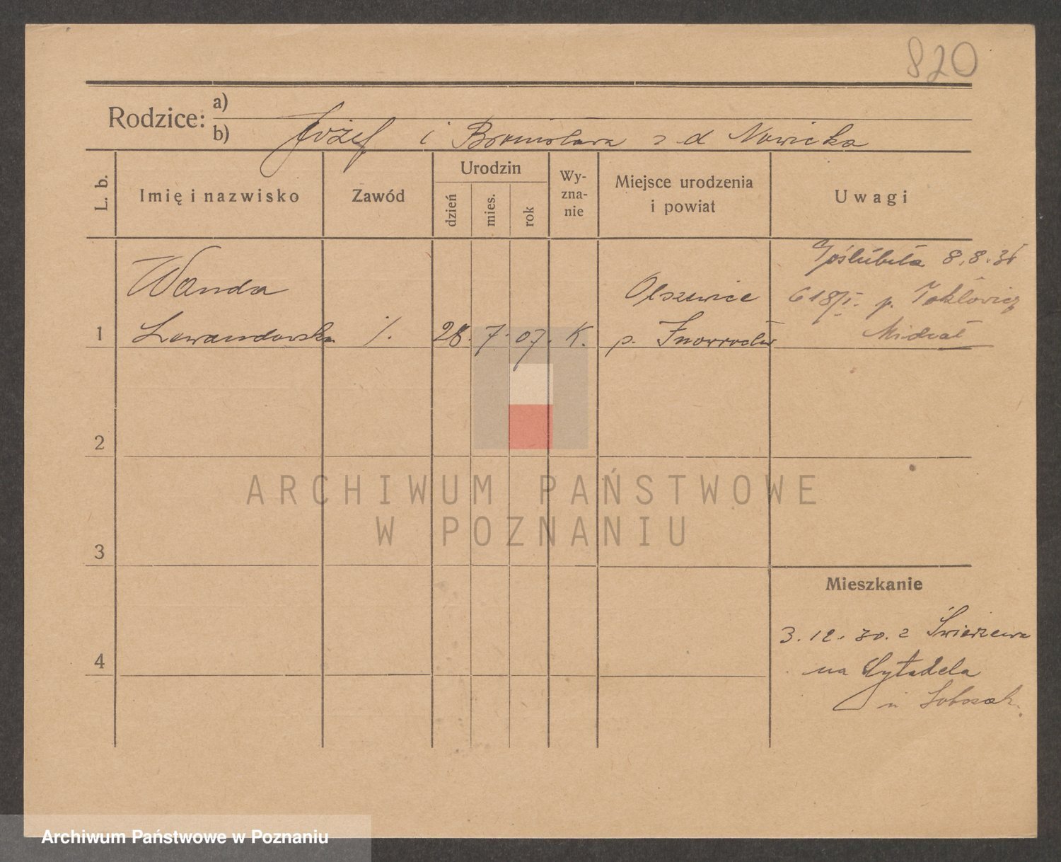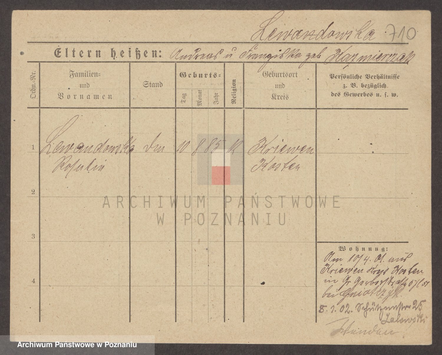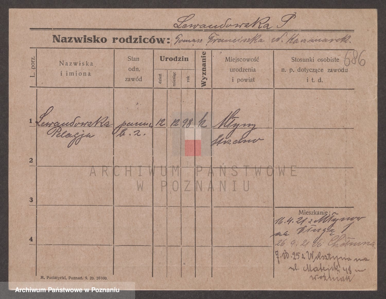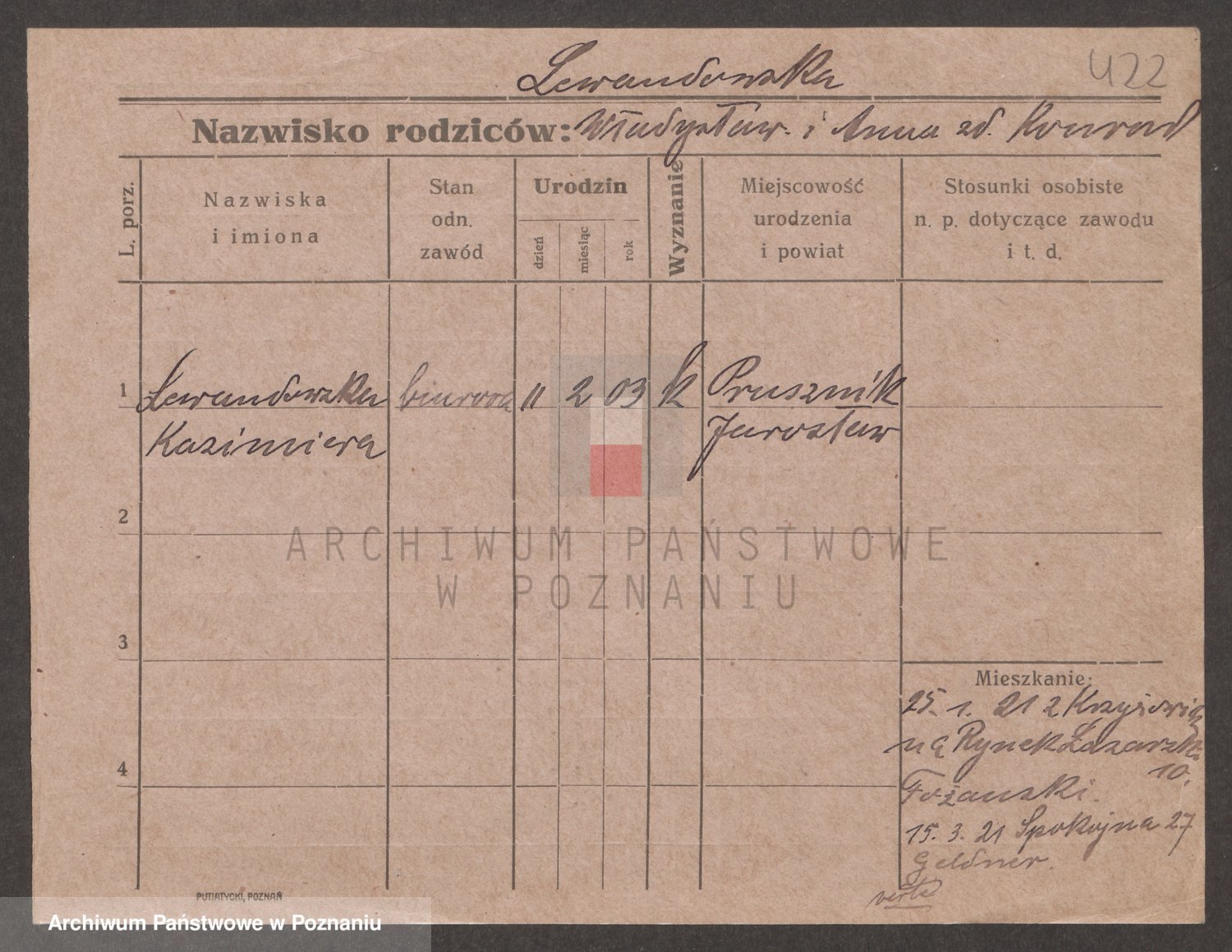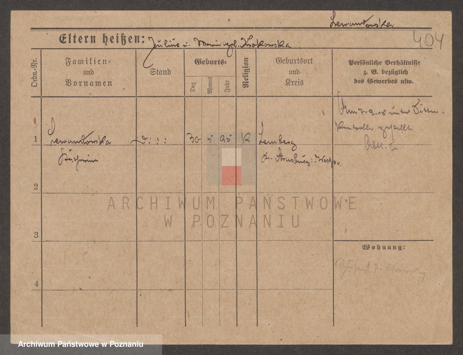 Podgląd karty osobowej dostępny jest po kliknięciu na nazwisko lub ikonkę karty. Można dokonywać powiększenia (ikony na górze) lub przechodzić między kolejnymi skanami (strzałki po bokach).