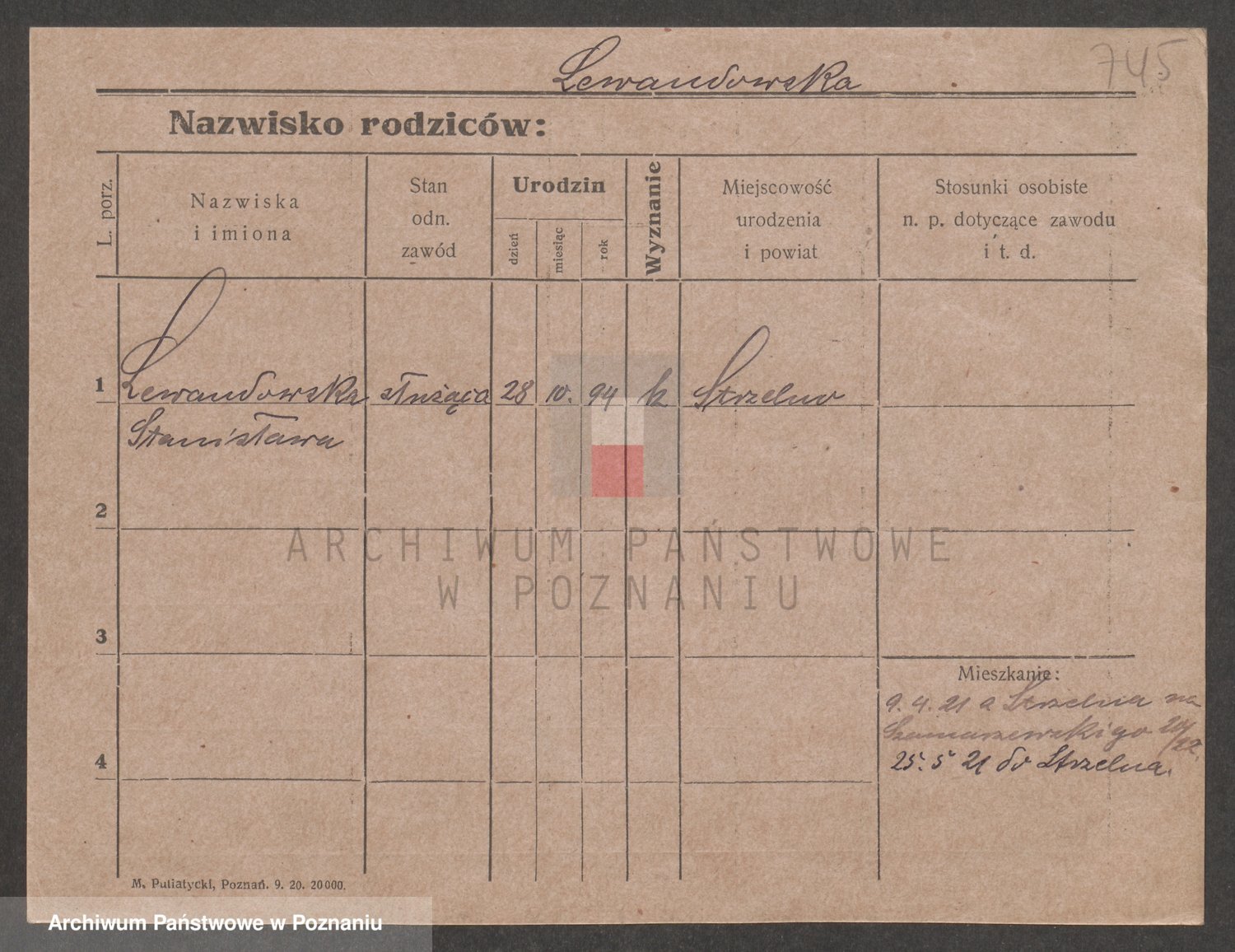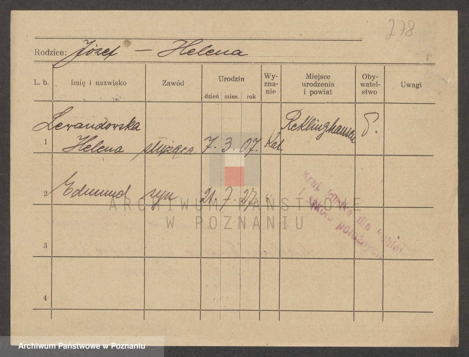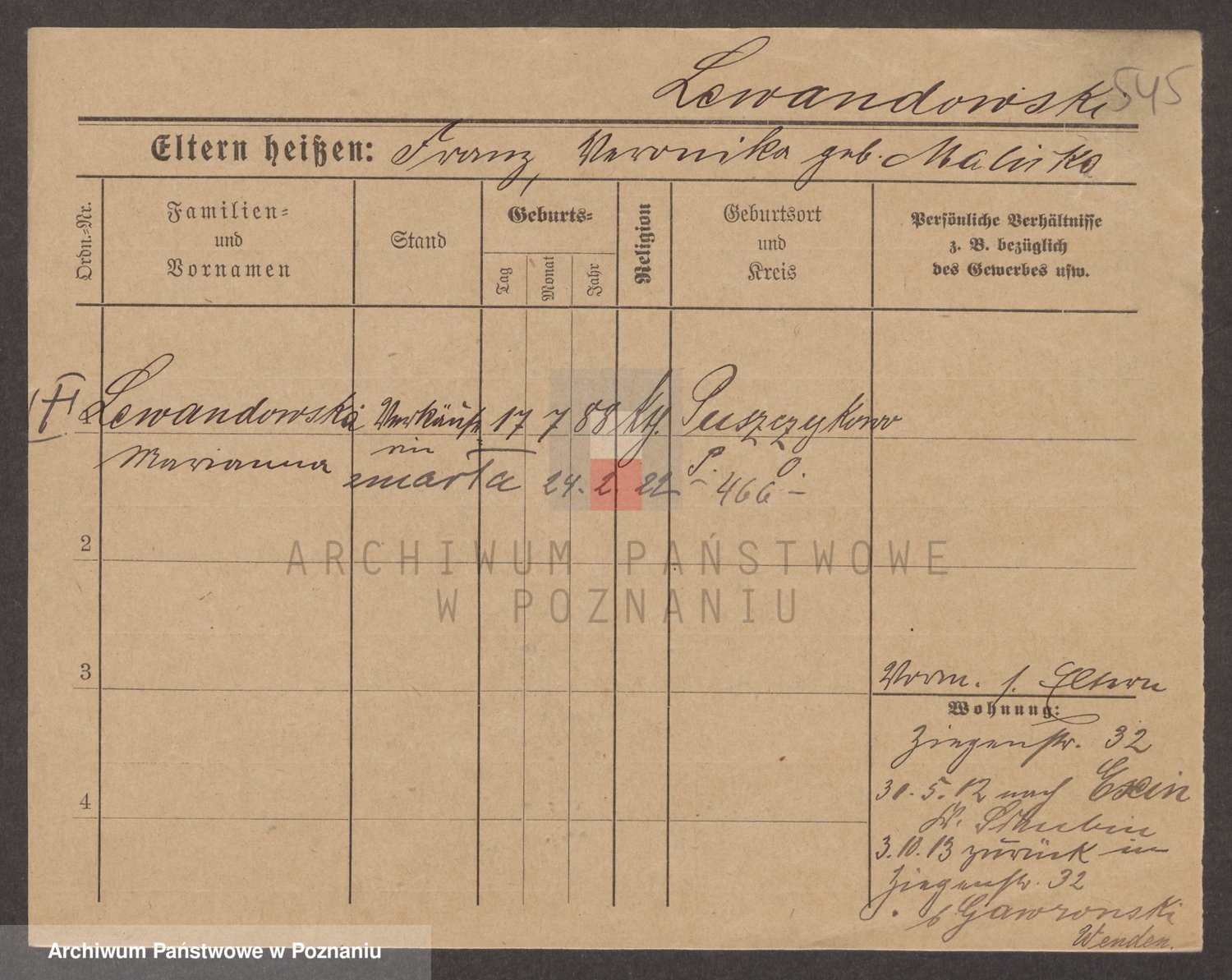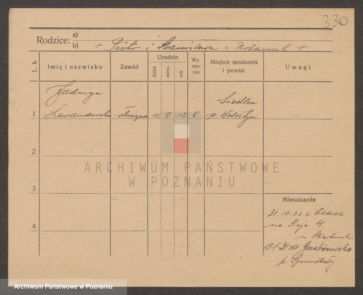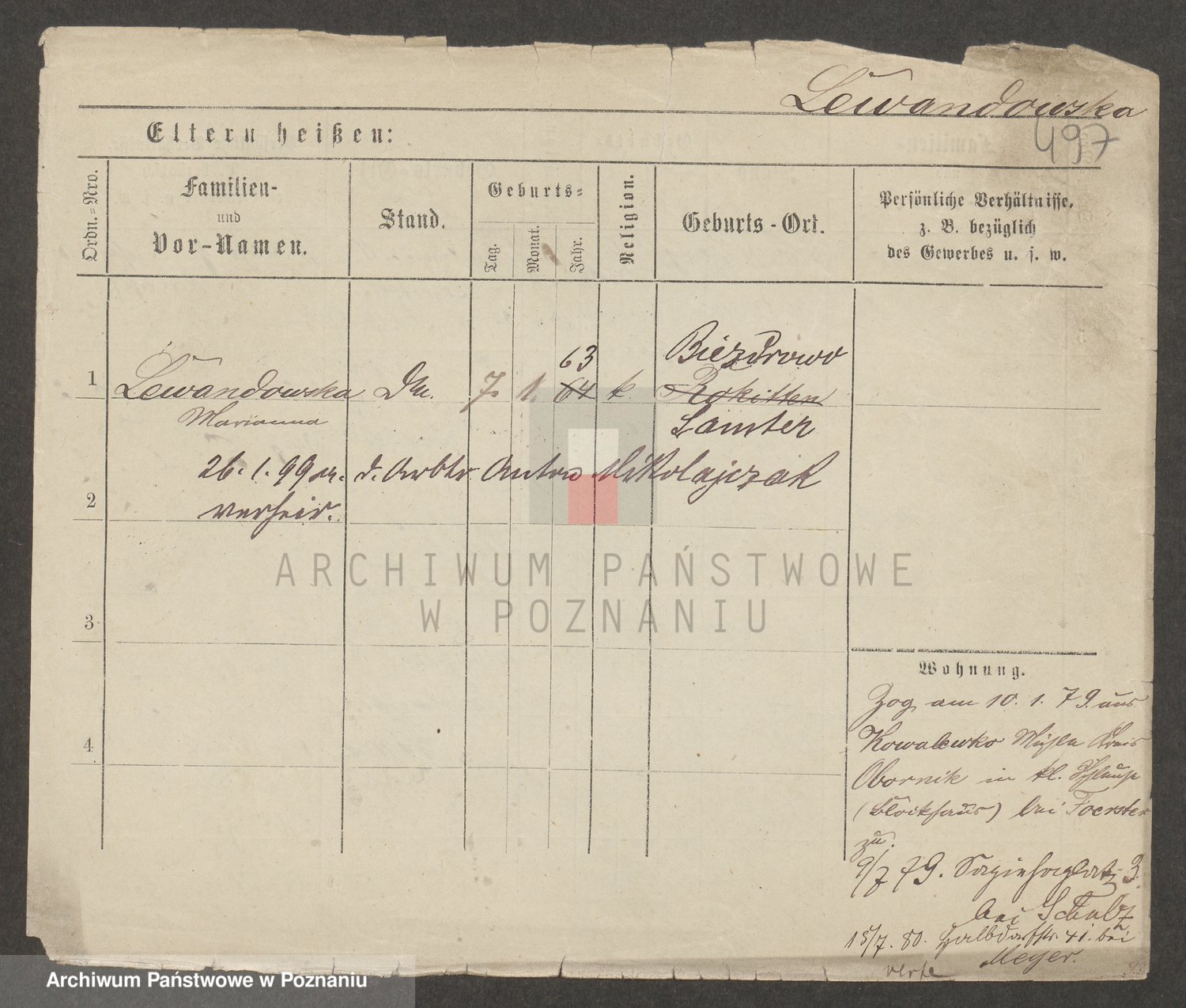 Podgląd karty osobowej dostępny jest po kliknięciu na nazwisko lub ikonkę karty. Można dokonywać powiększenia (ikony na górze) lub przechodzić między kolejnymi skanami (strzałki po bokach).