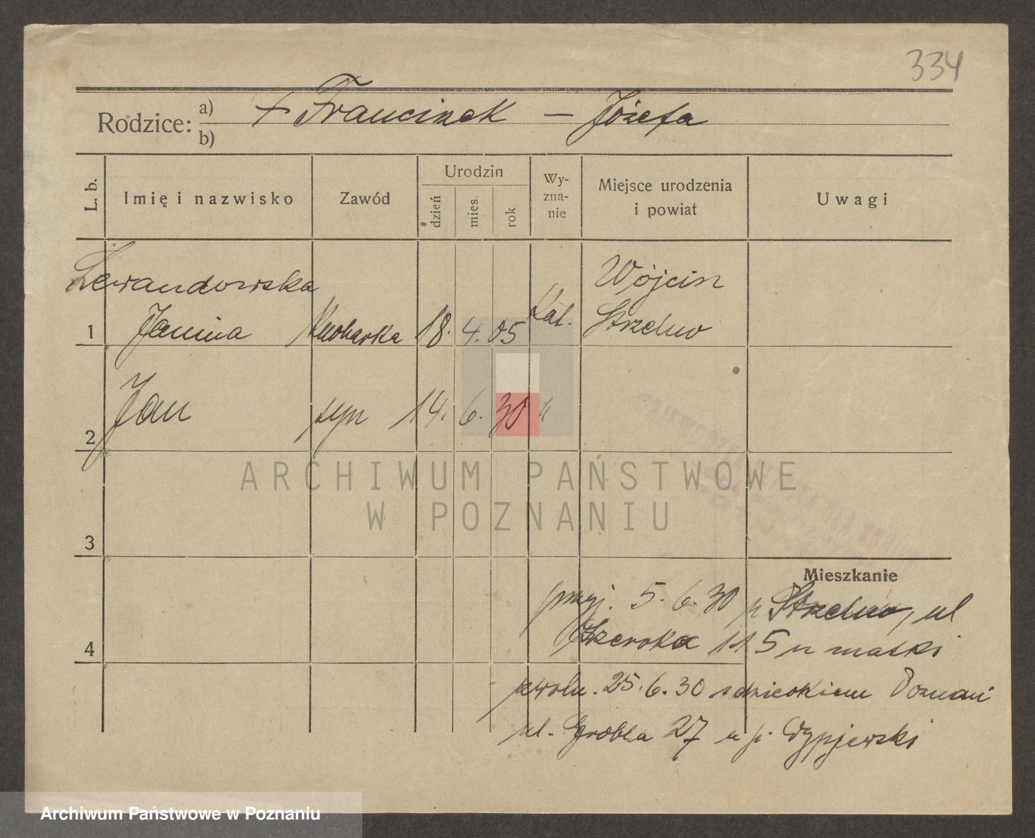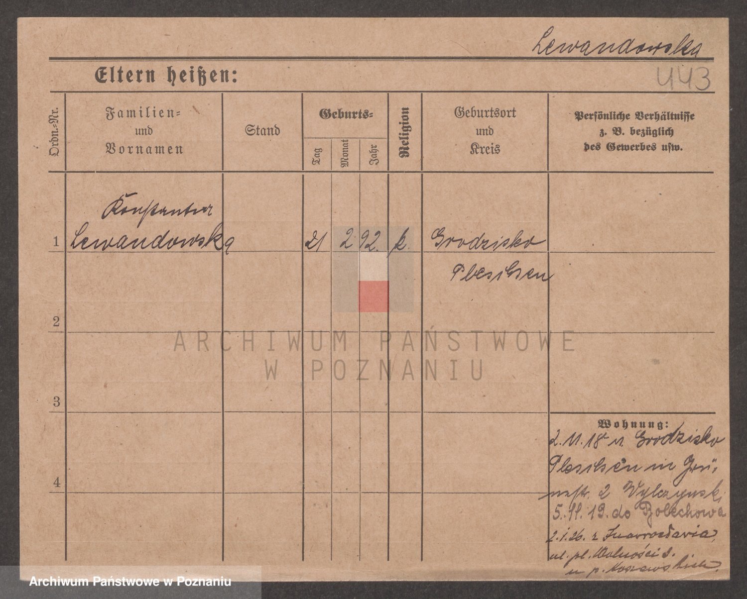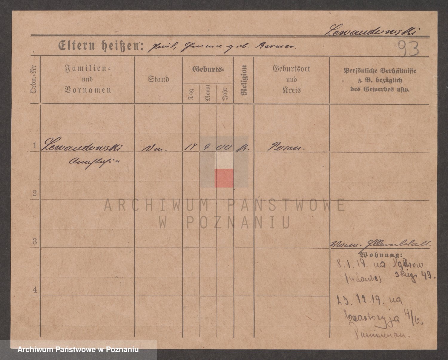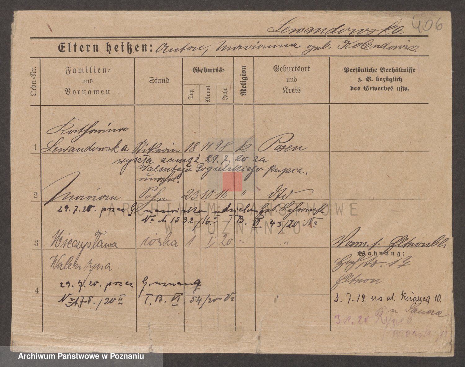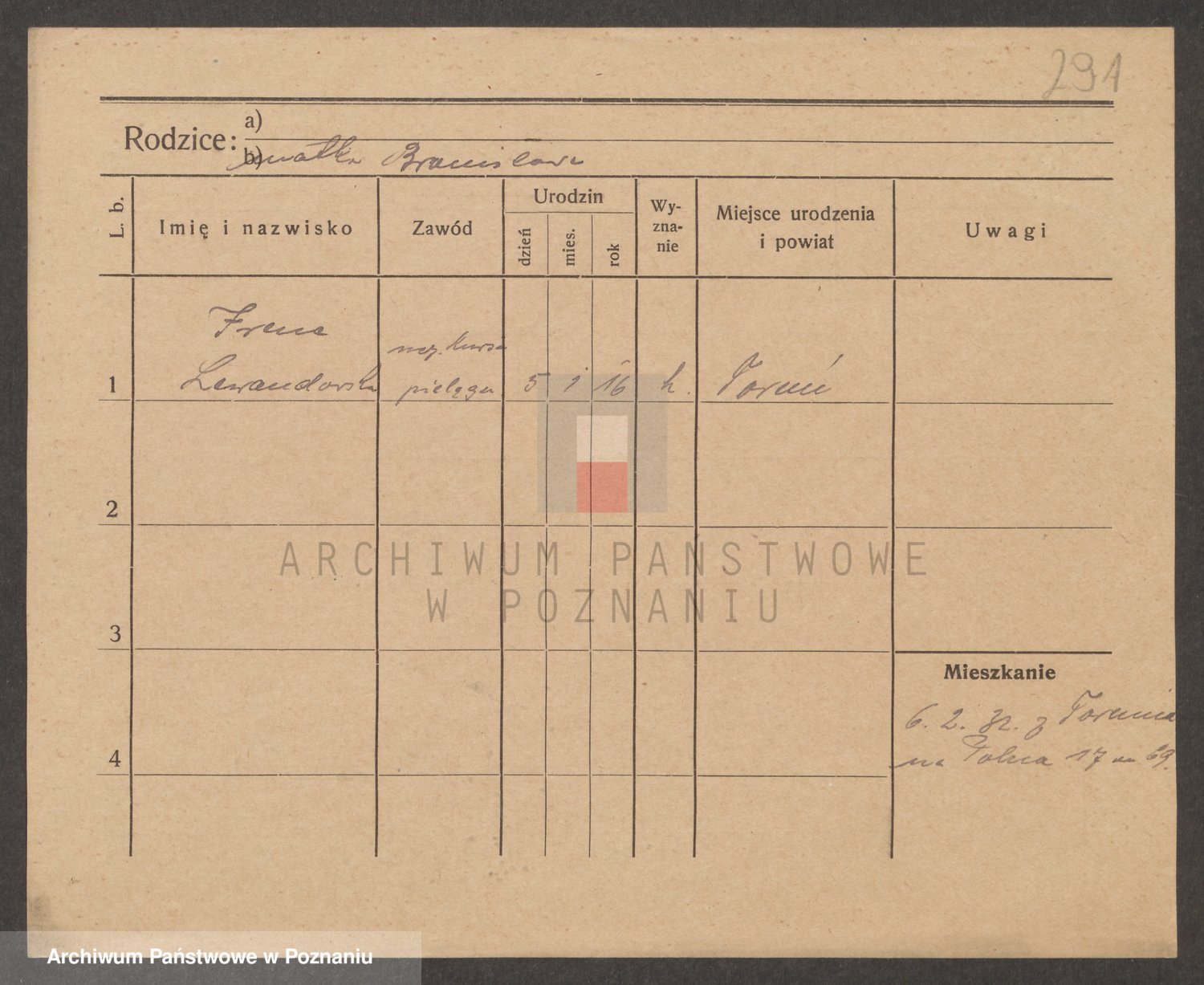 Podgląd karty osobowej dostępny jest po kliknięciu na nazwisko lub ikonkę karty. Można dokonywać powiększenia (ikony na górze) lub przechodzić między kolejnymi skanami (strzałki po bokach).