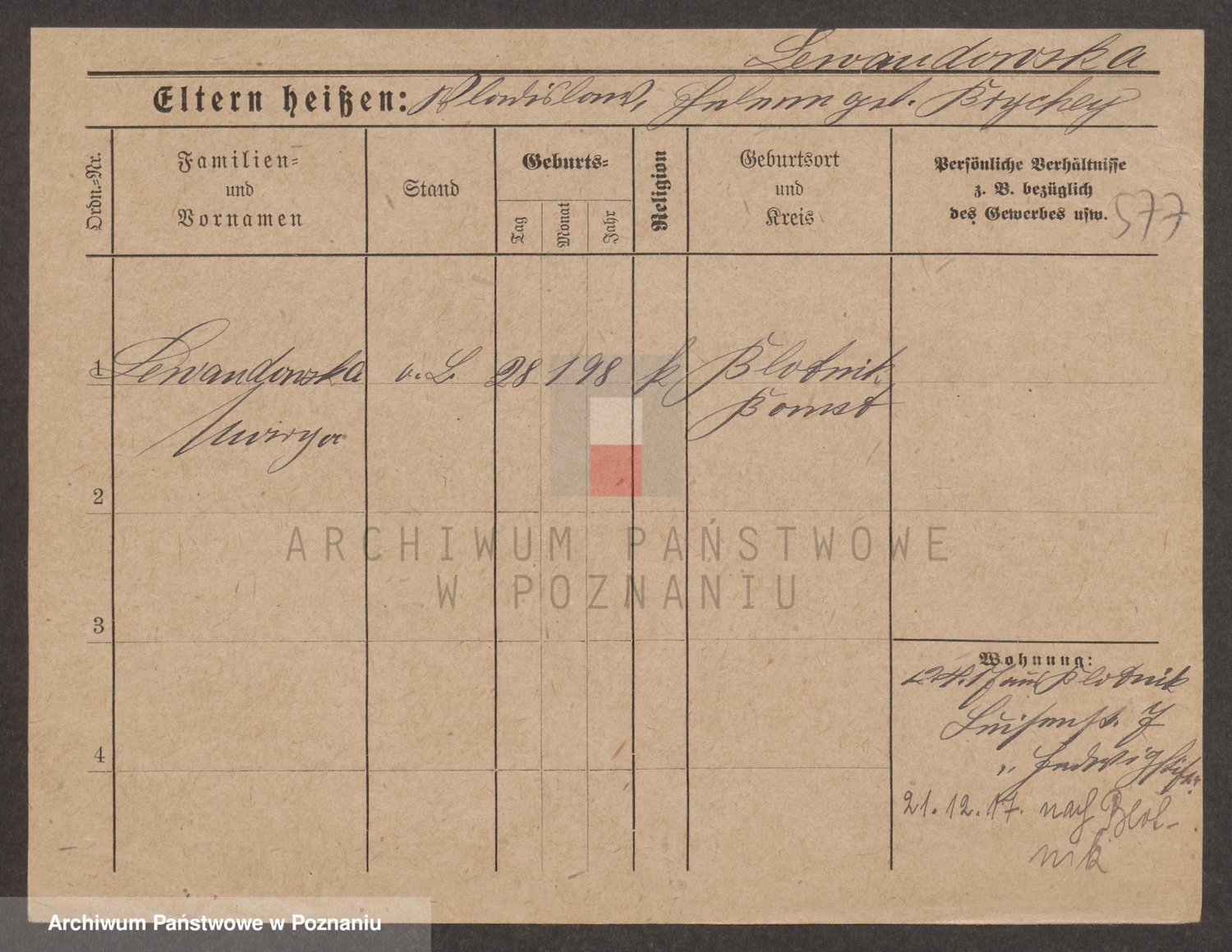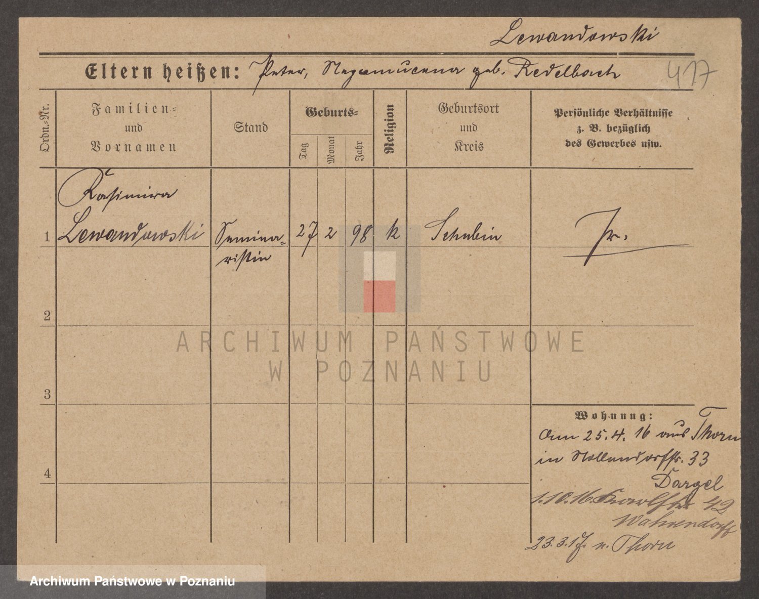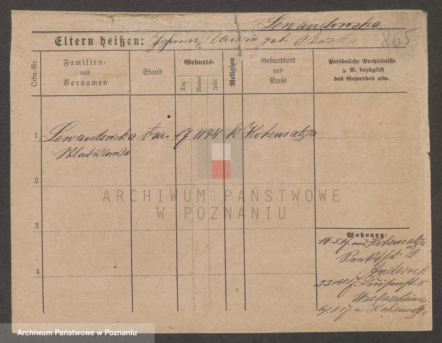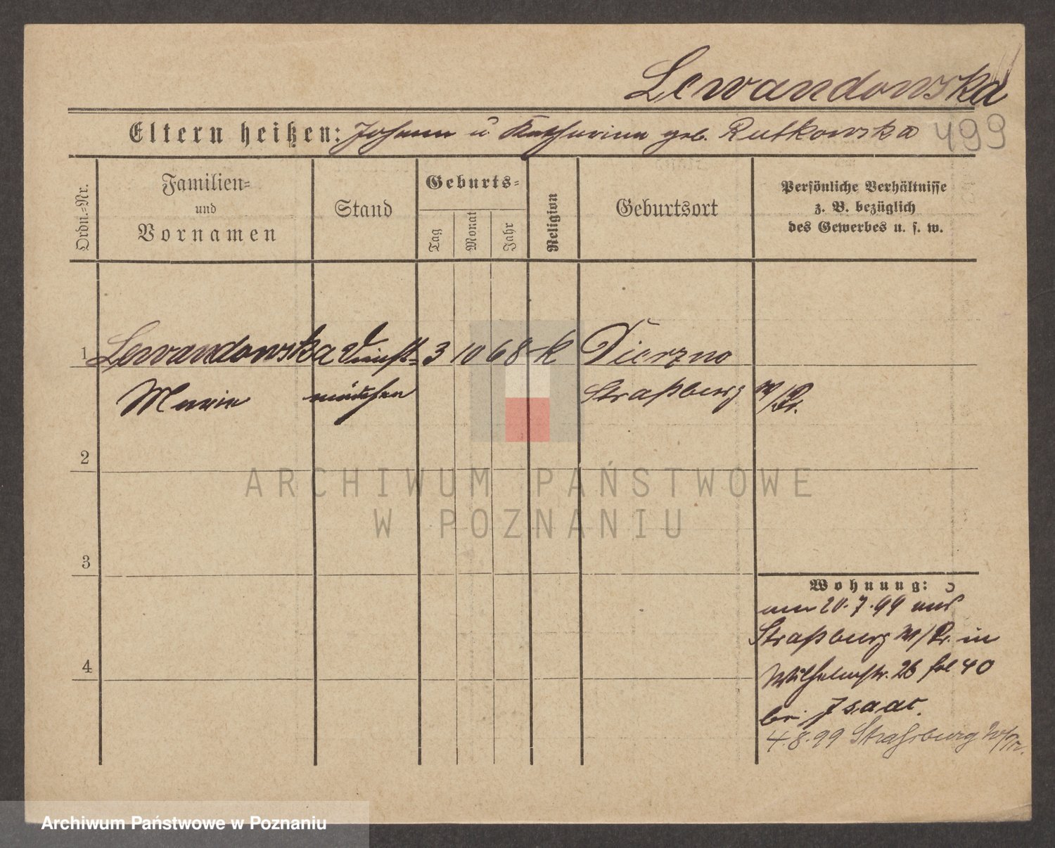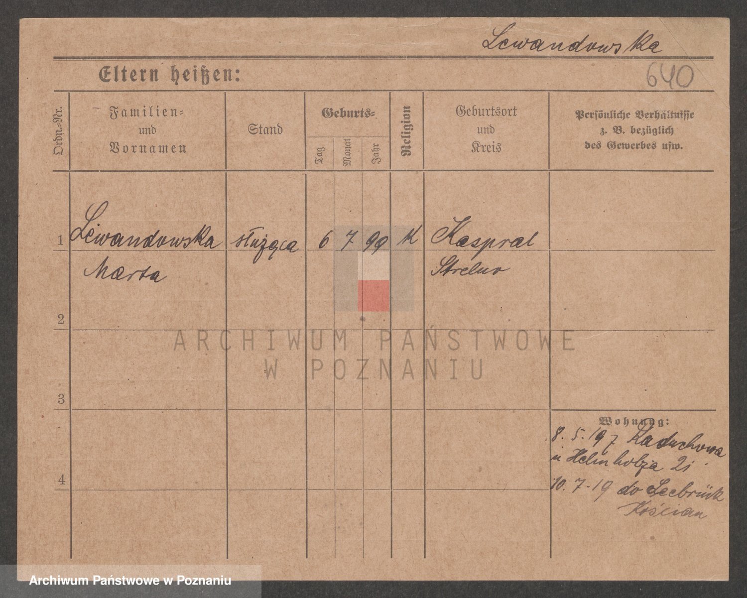 Podgląd karty osobowej dostępny jest po kliknięciu na nazwisko lub ikonkę karty. Można dokonywać powiększenia (ikony na górze) lub przechodzić między kolejnymi skanami (strzałki po bokach).