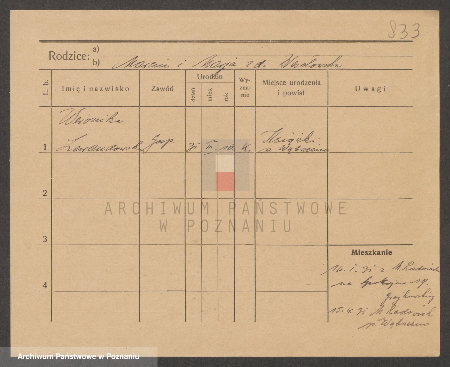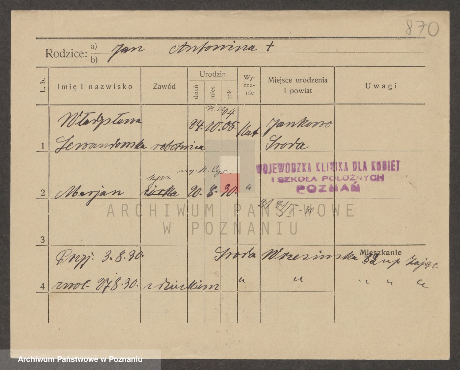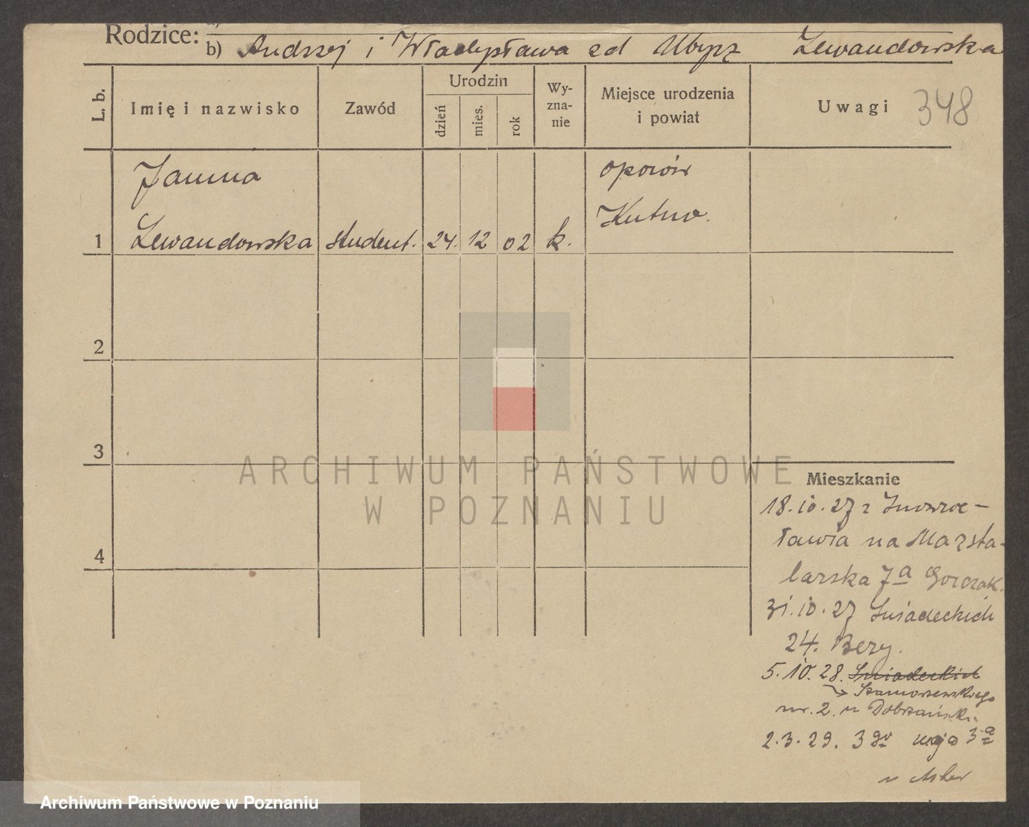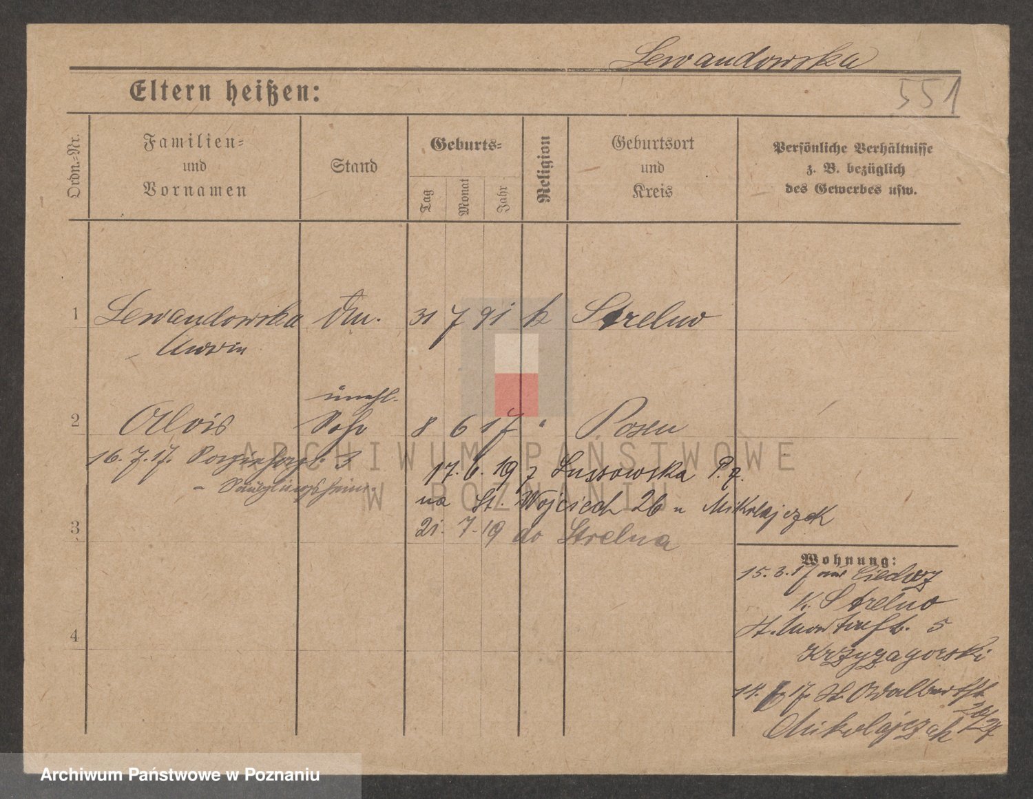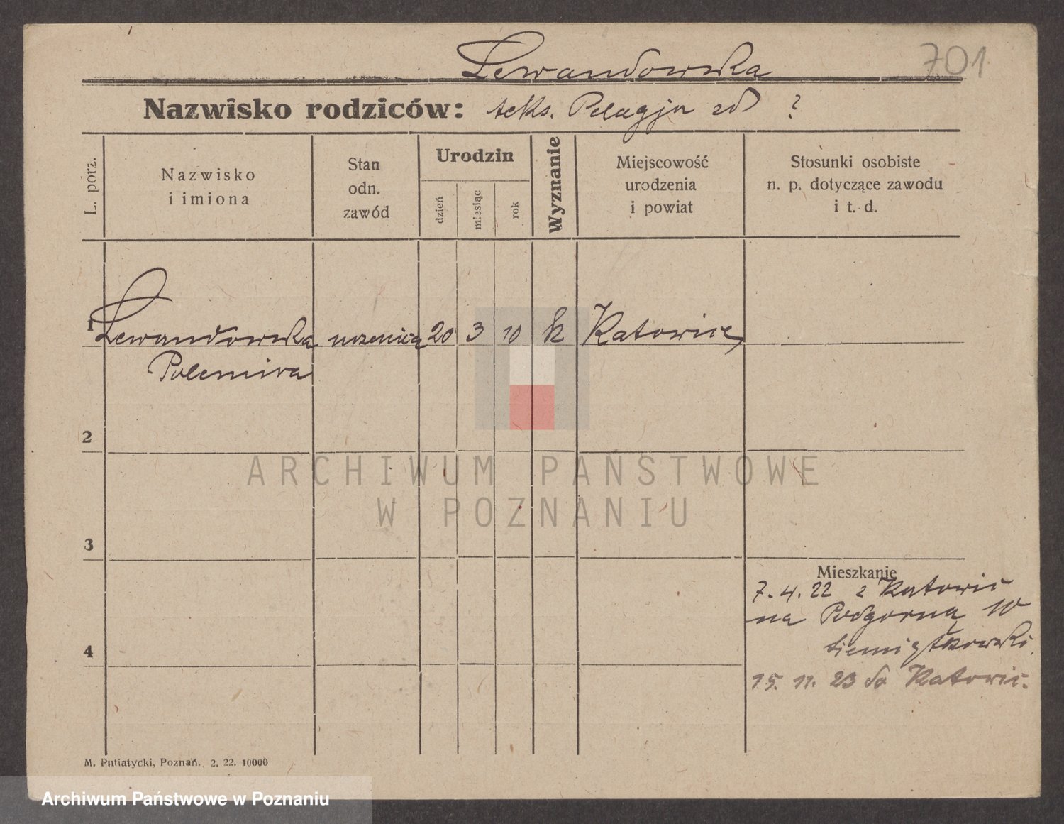 Podgląd karty osobowej dostępny jest po kliknięciu na nazwisko lub ikonkę karty. Można dokonywać powiększenia (ikony na górze) lub przechodzić między kolejnymi skanami (strzałki po bokach).