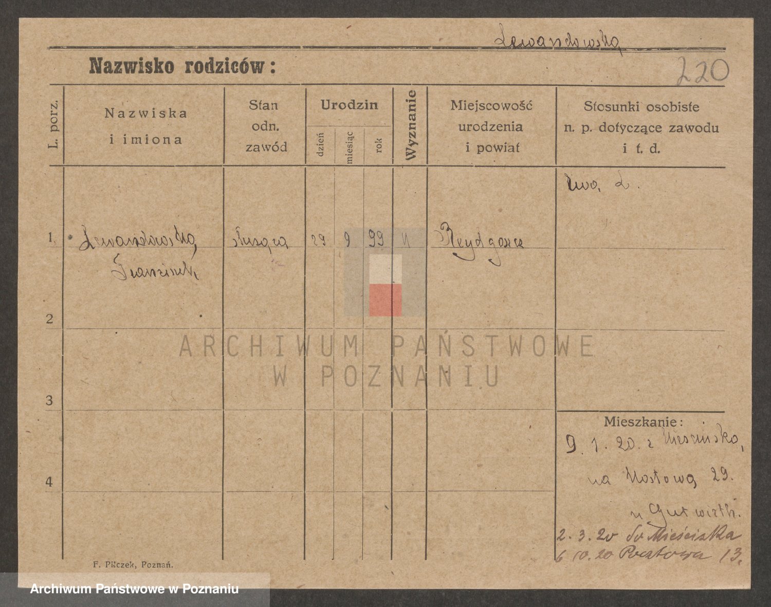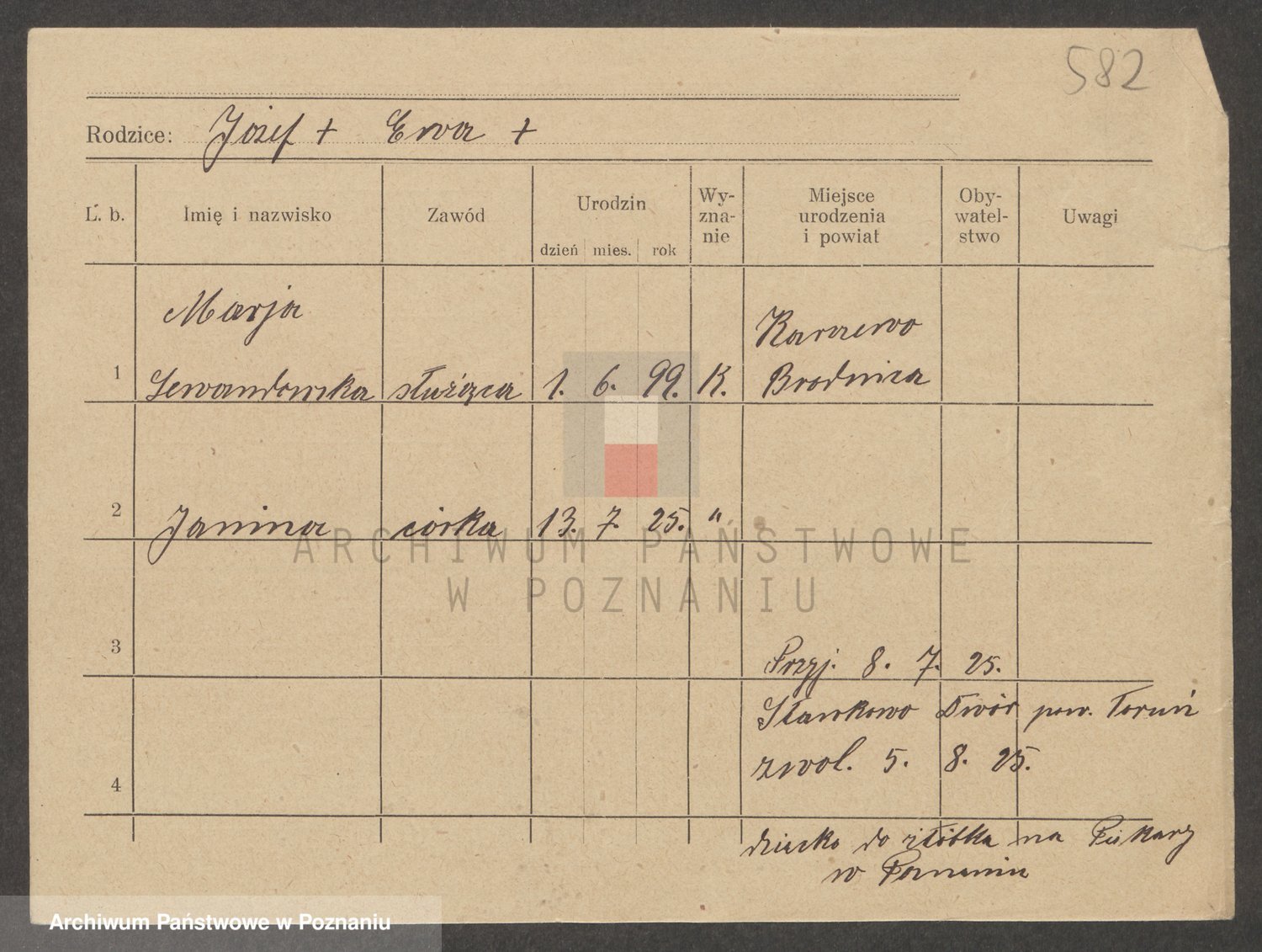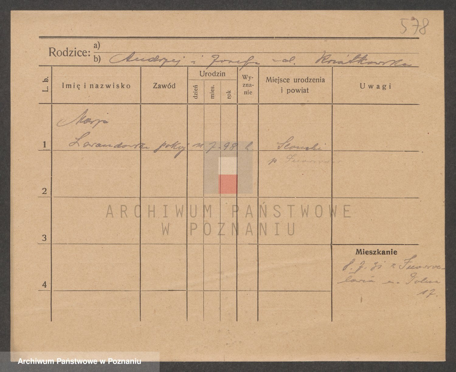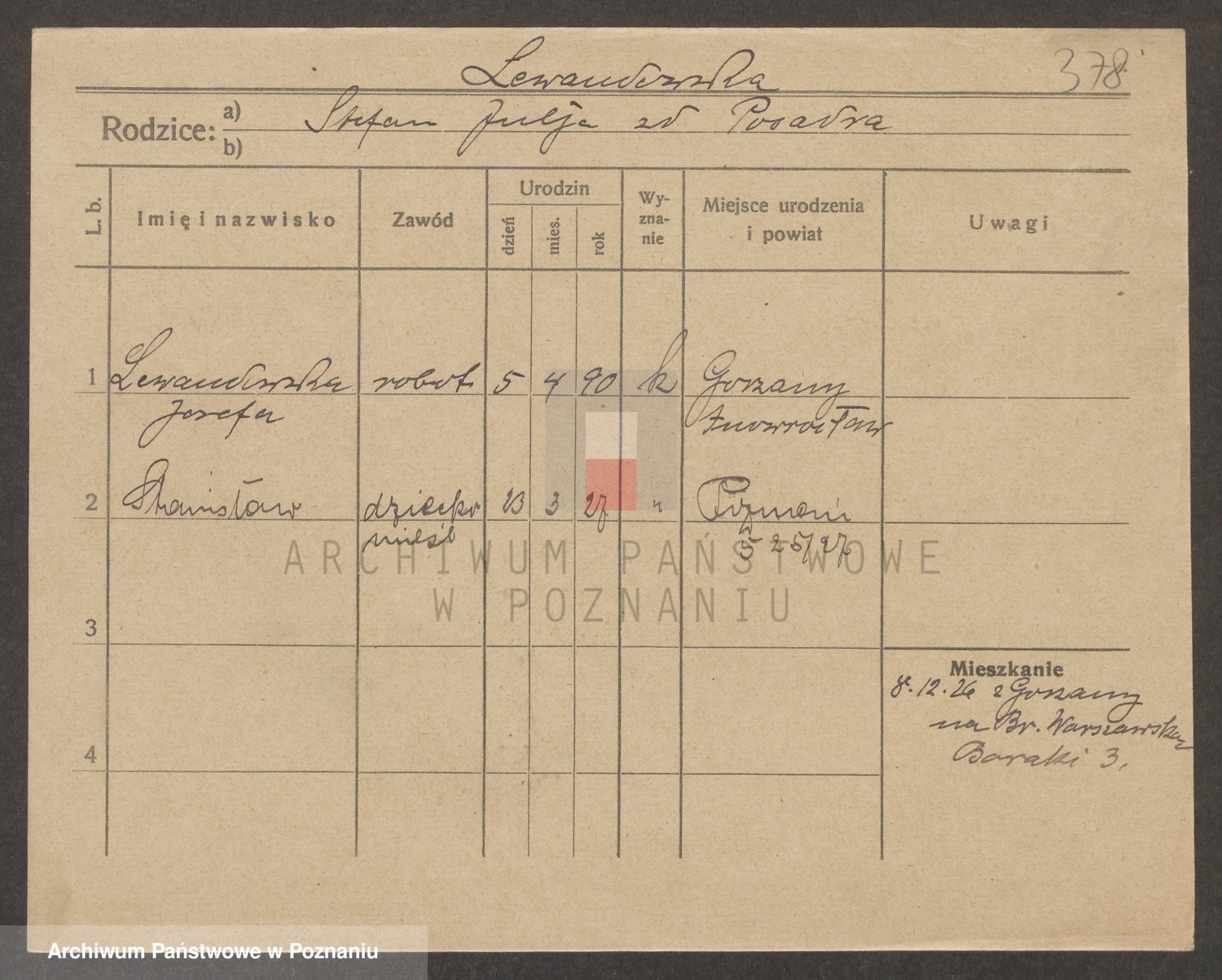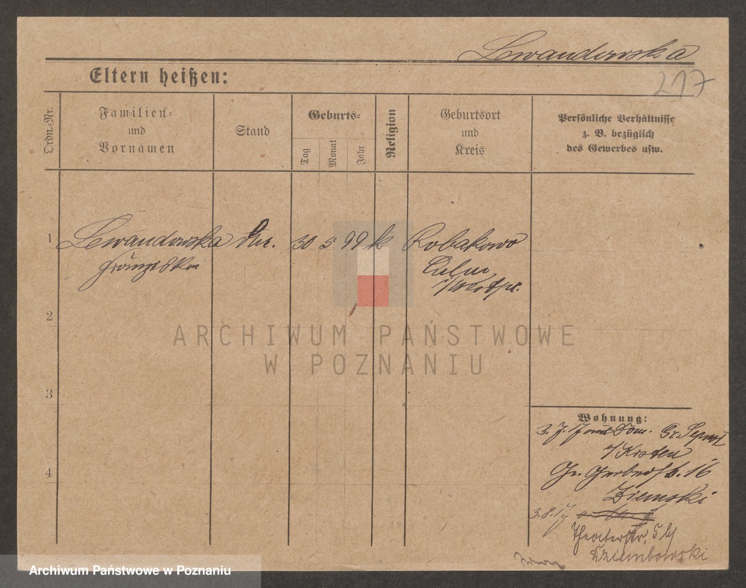 Podgląd karty osobowej dostępny jest po kliknięciu na nazwisko lub ikonkę karty. Można dokonywać powiększenia (ikony na górze) lub przechodzić między kolejnymi skanami (strzałki po bokach).