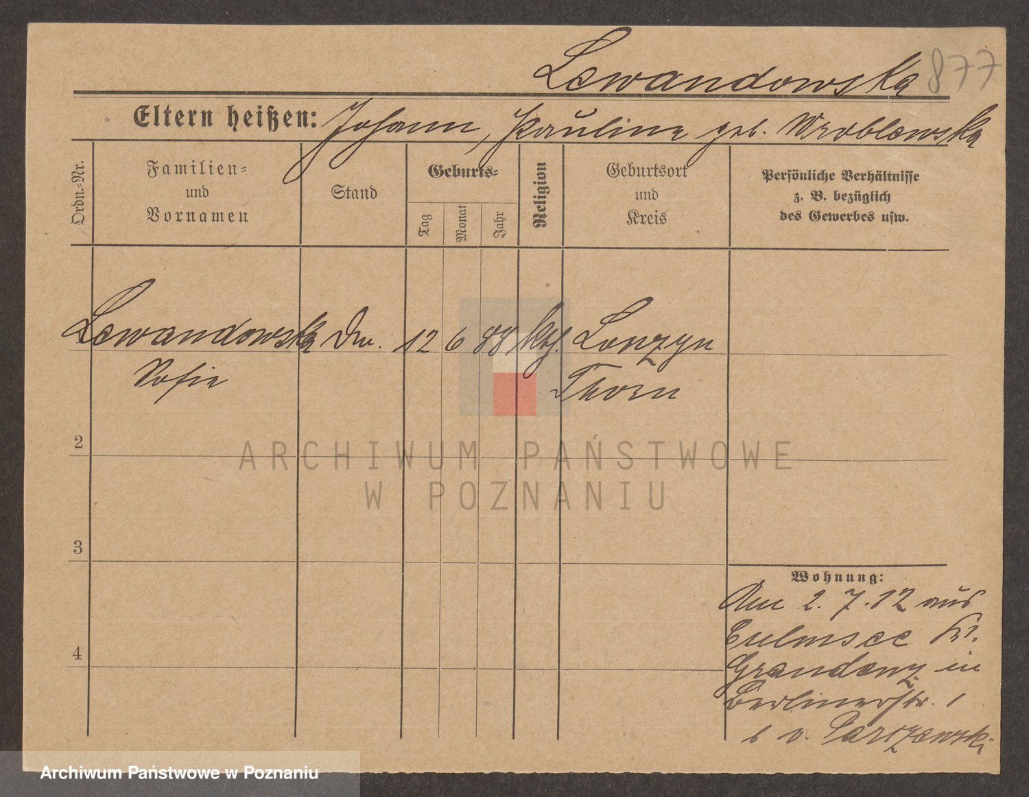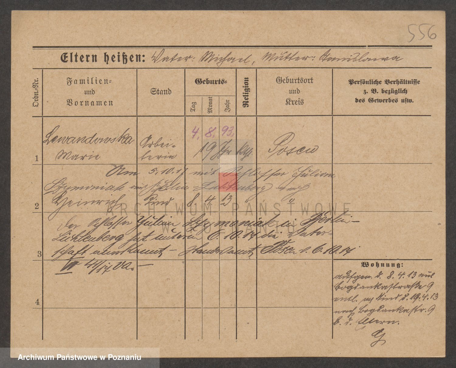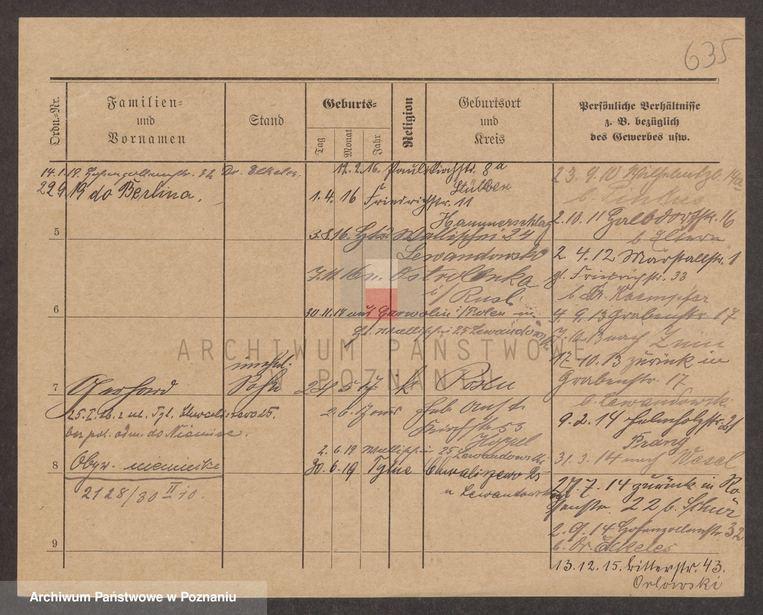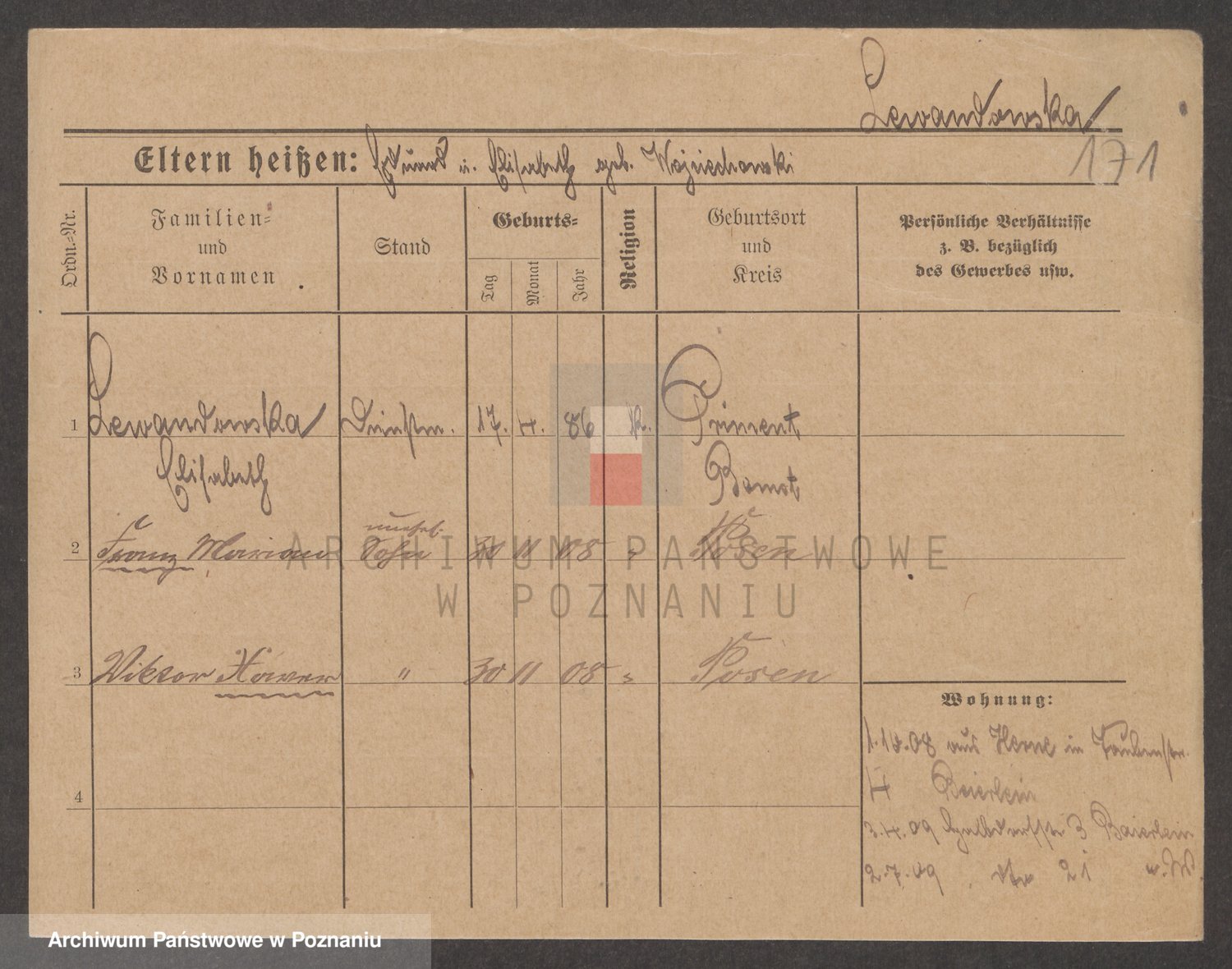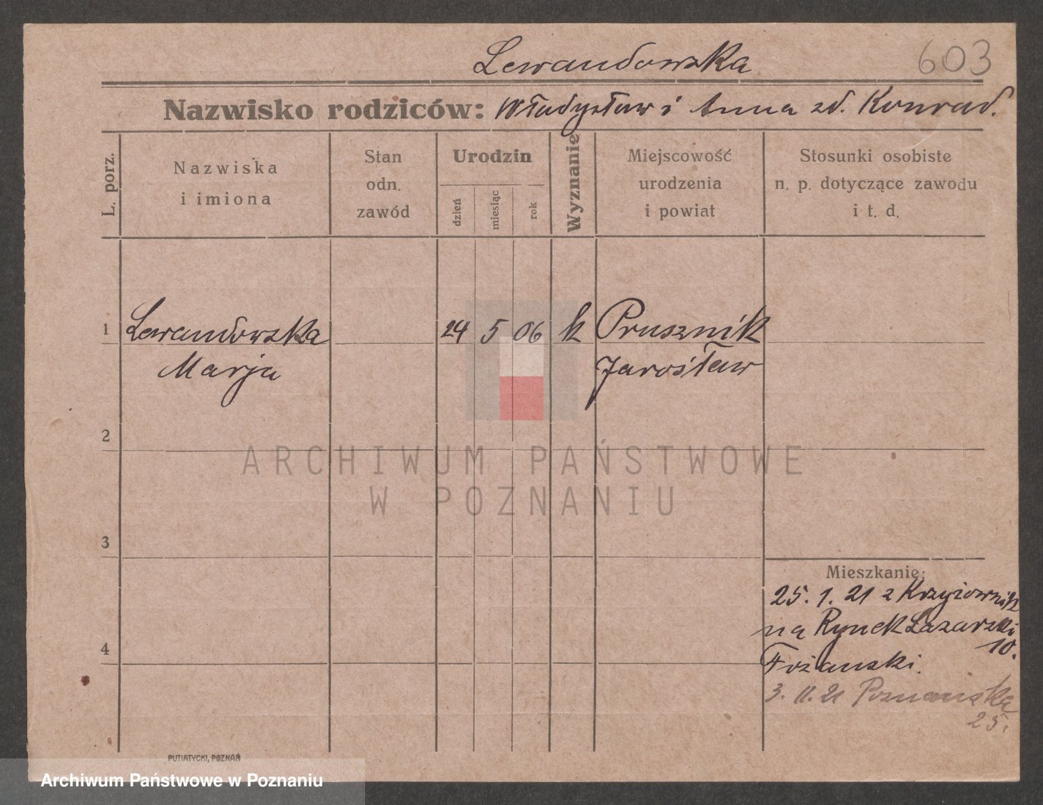 Podgląd karty osobowej dostępny jest po kliknięciu na nazwisko lub ikonkę karty. Można dokonywać powiększenia (ikony na górze) lub przechodzić między kolejnymi skanami (strzałki po bokach).