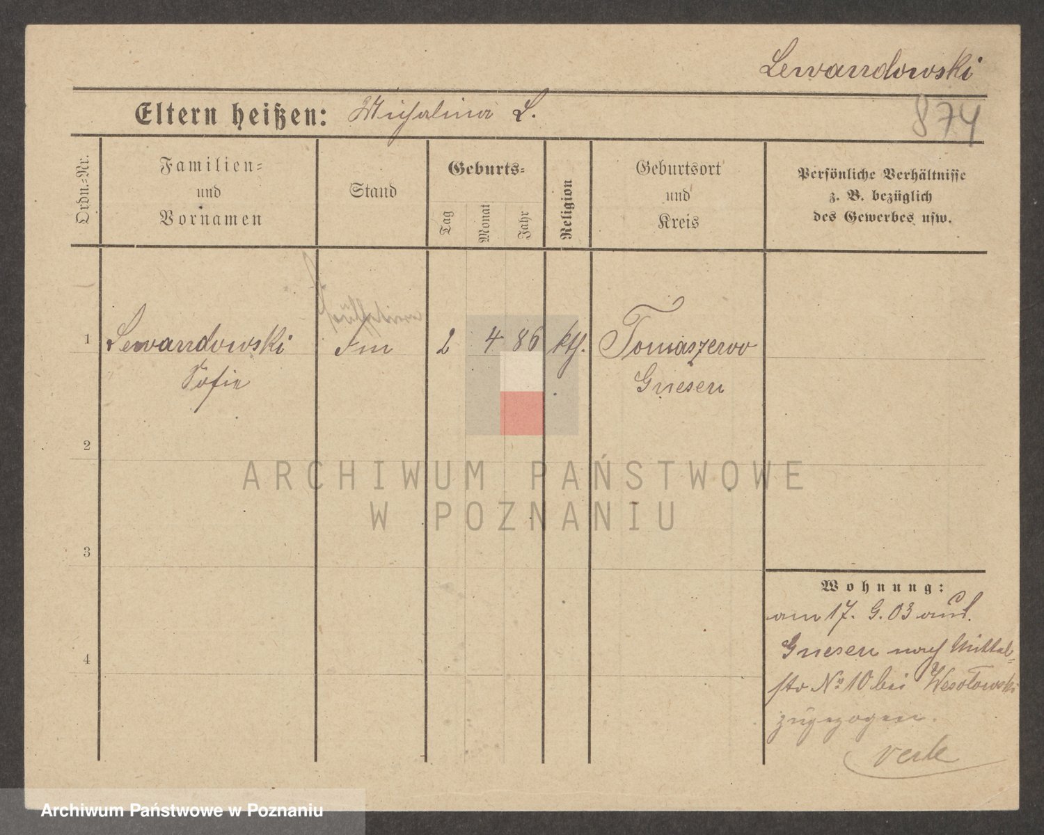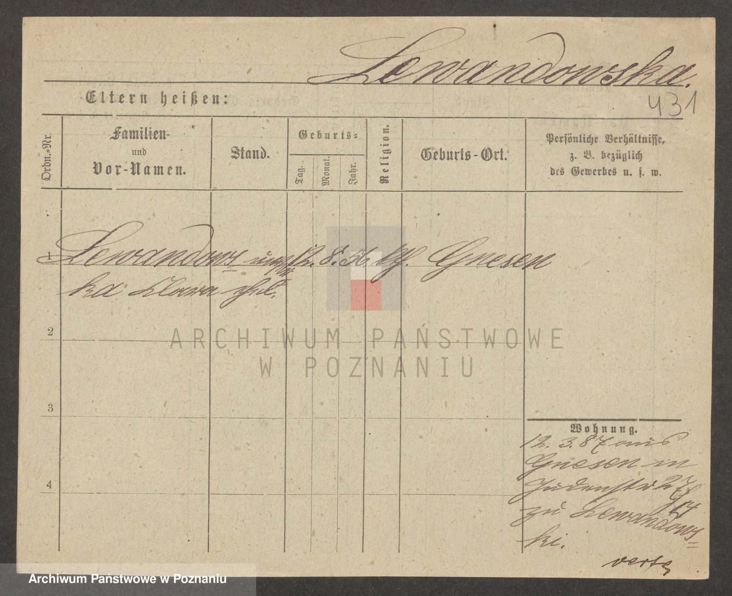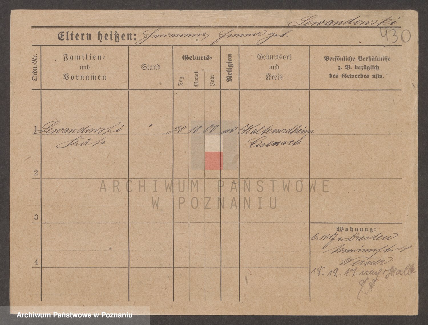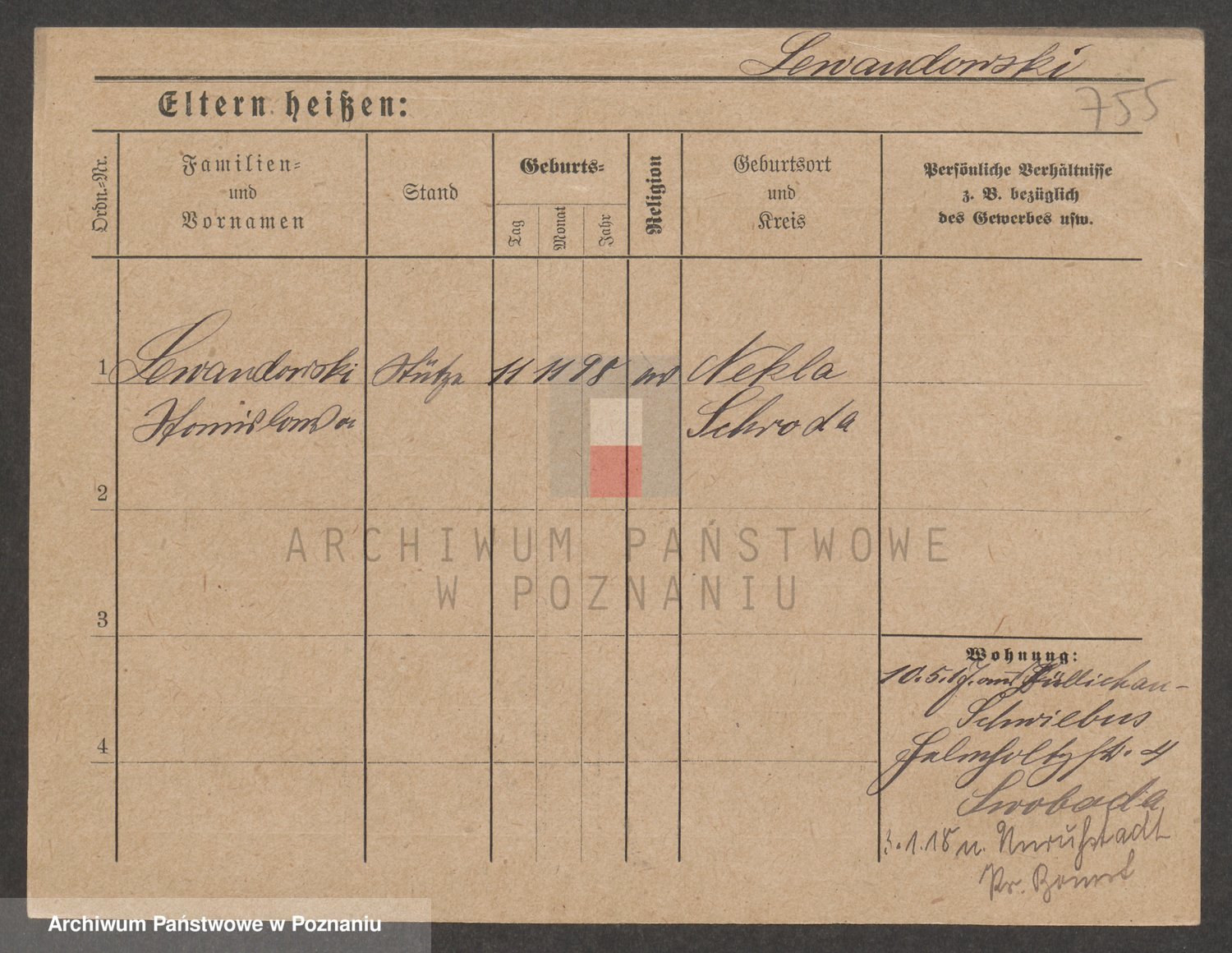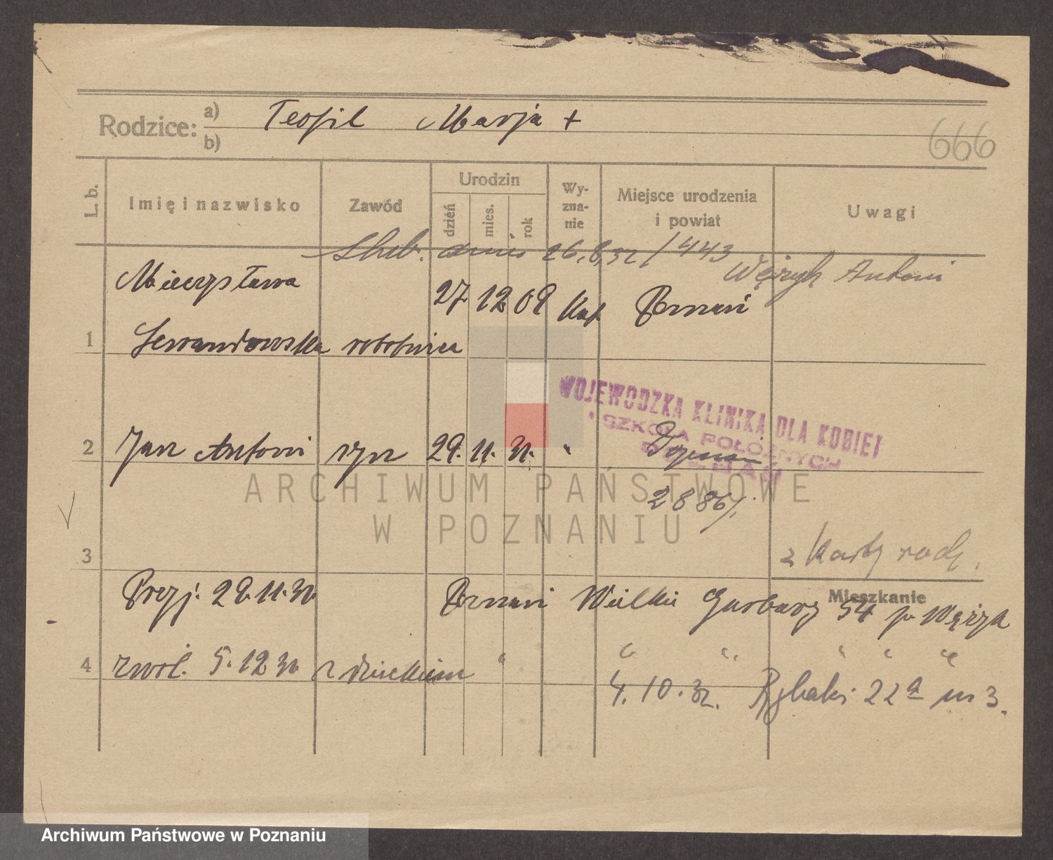 Podgląd karty osobowej dostępny jest po kliknięciu na nazwisko lub ikonkę karty. Można dokonywać powiększenia (ikony na górze) lub przechodzić między kolejnymi skanami (strzałki po bokach).