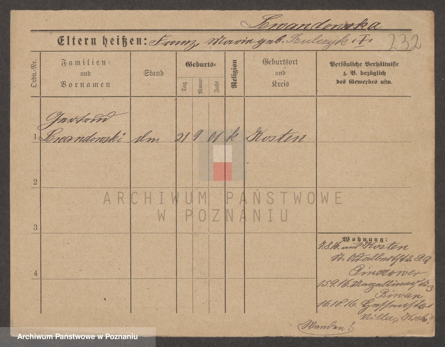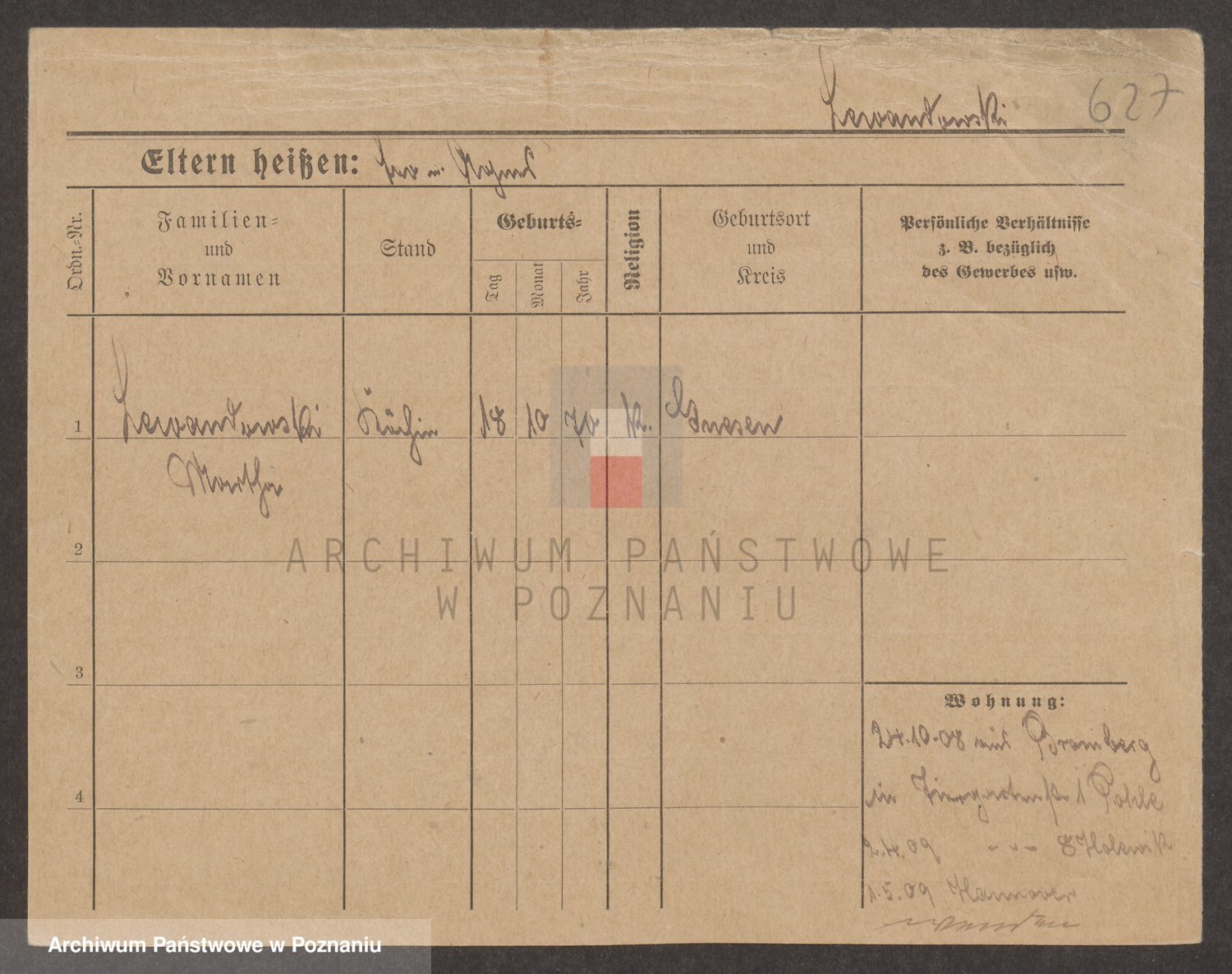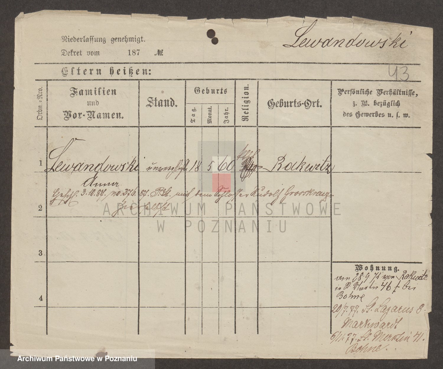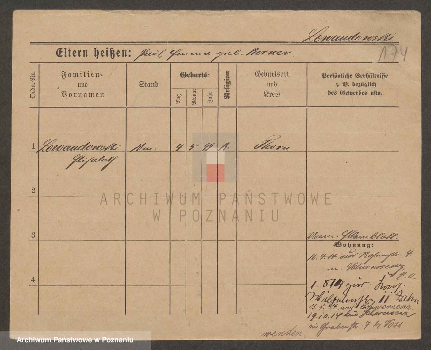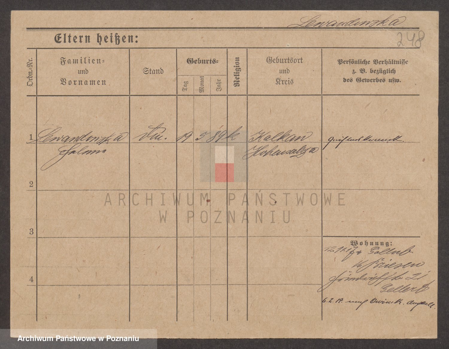 Podgląd karty osobowej dostępny jest po kliknięciu na nazwisko lub ikonkę karty. Można dokonywać powiększenia (ikony na górze) lub przechodzić między kolejnymi skanami (strzałki po bokach).