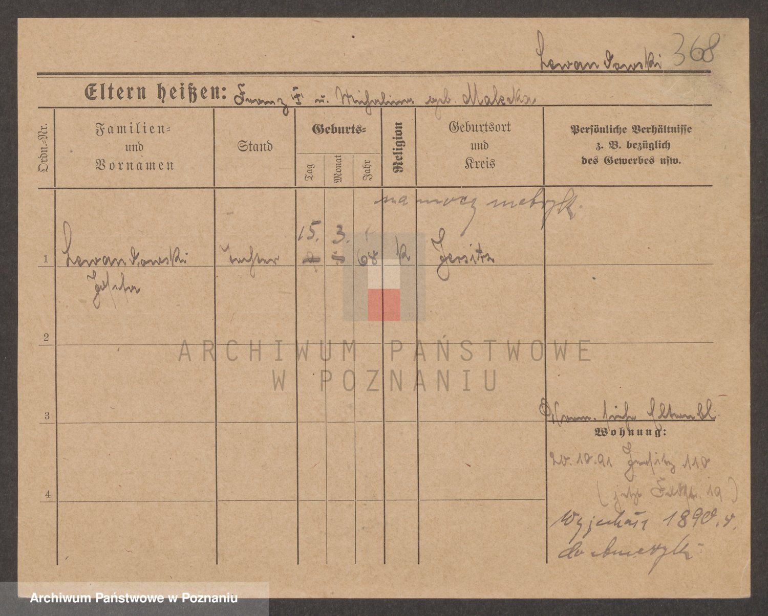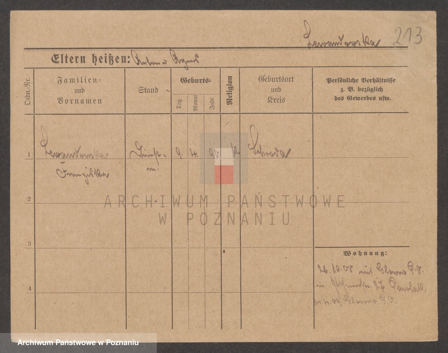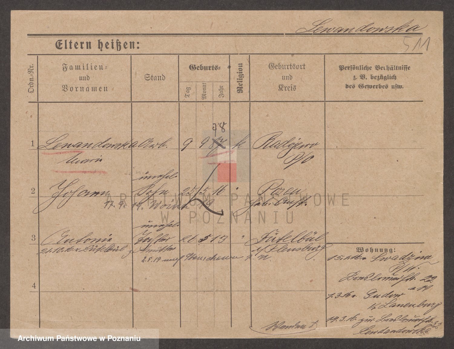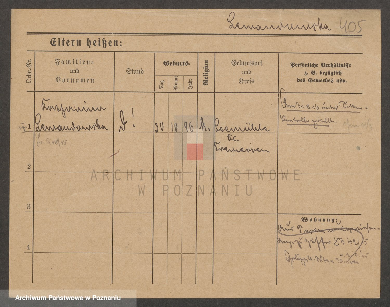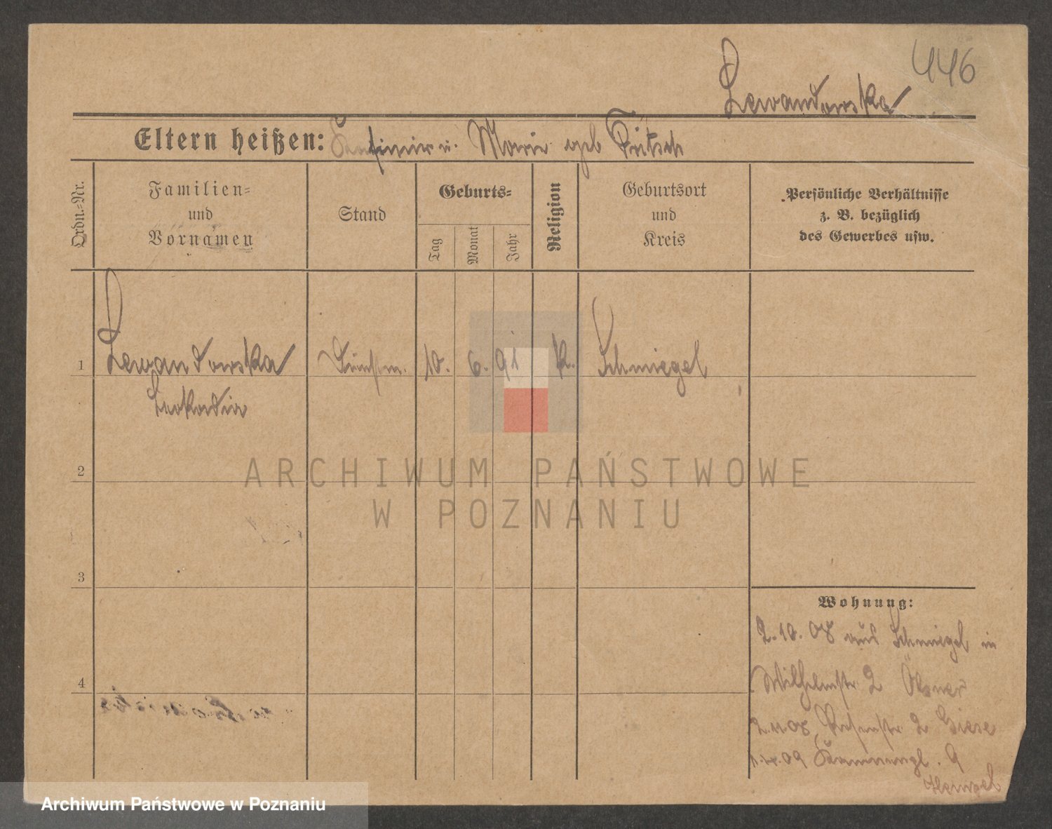 Podgląd karty osobowej dostępny jest po kliknięciu na nazwisko lub ikonkę karty. Można dokonywać powiększenia (ikony na górze) lub przechodzić między kolejnymi skanami (strzałki po bokach).