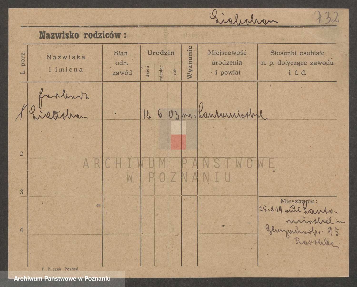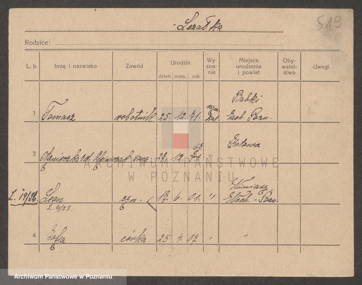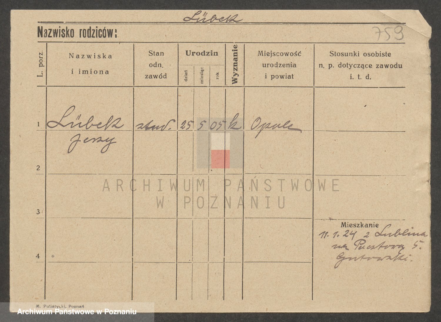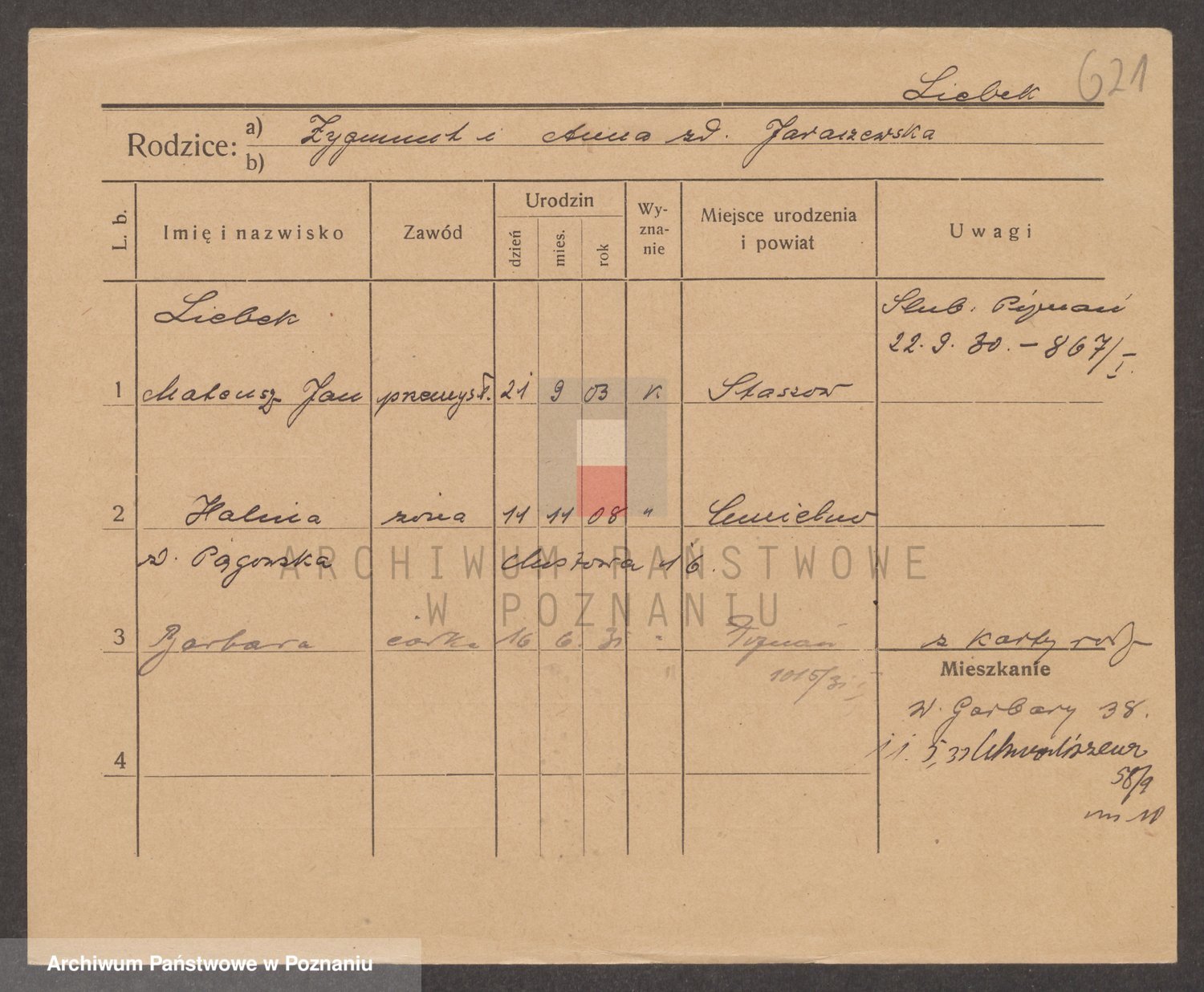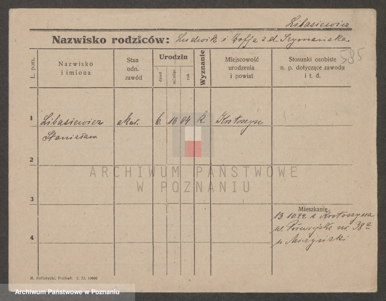 Podgląd karty osobowej dostępny jest po kliknięciu na nazwisko lub ikonkę karty. Można dokonywać powiększenia (ikony na górze) lub przechodzić między kolejnymi skanami (strzałki po bokach).