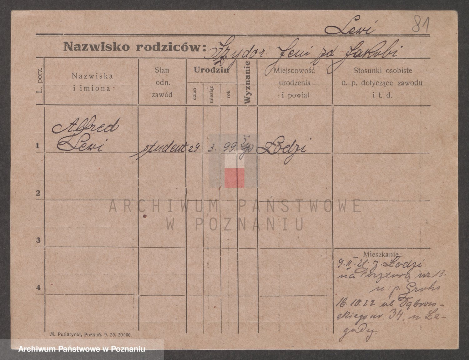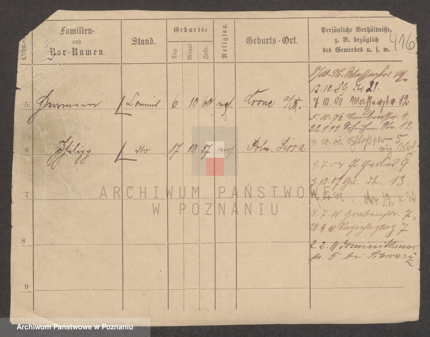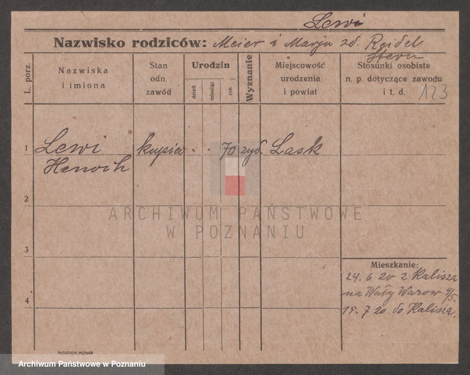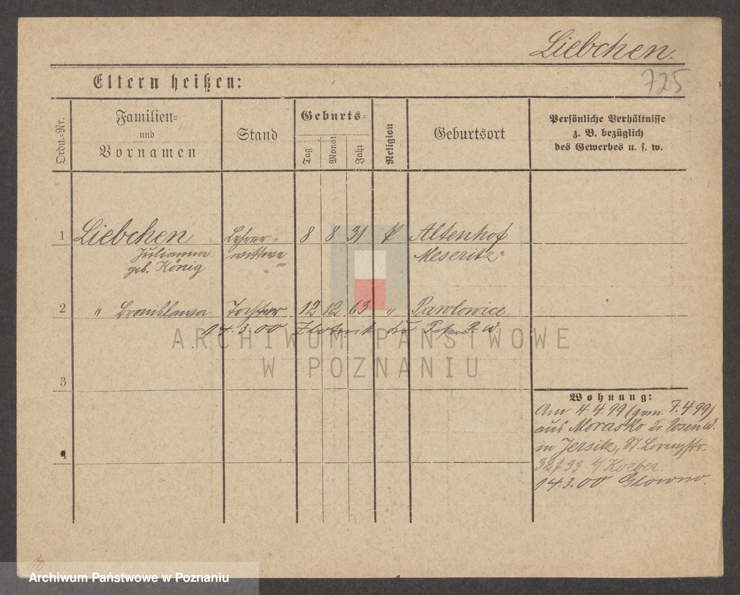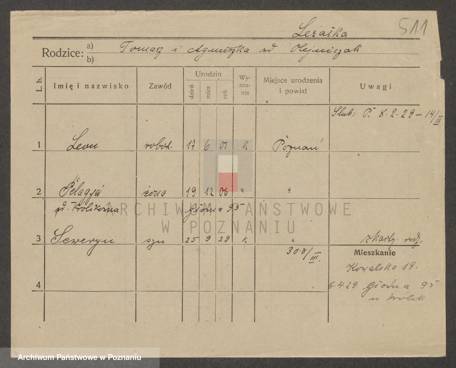 Podgląd karty osobowej dostępny jest po kliknięciu na nazwisko lub ikonkę karty. Można dokonywać powiększenia (ikony na górze) lub przechodzić między kolejnymi skanami (strzałki po bokach).