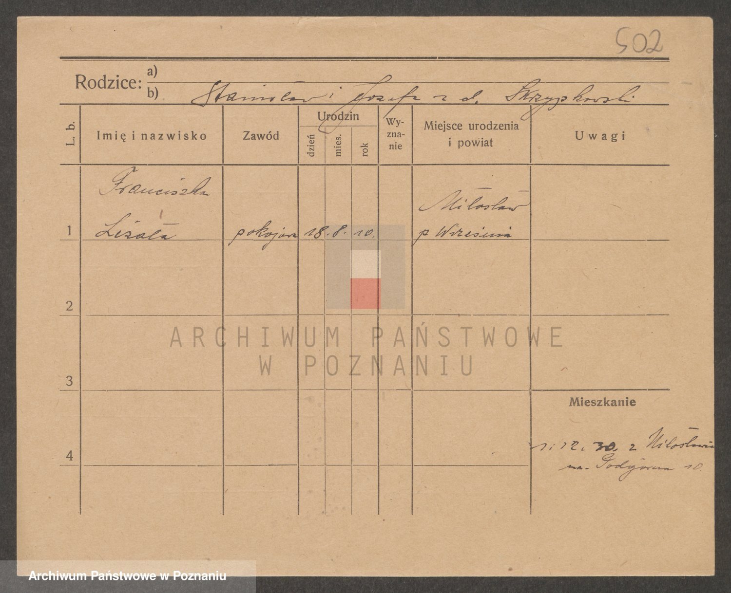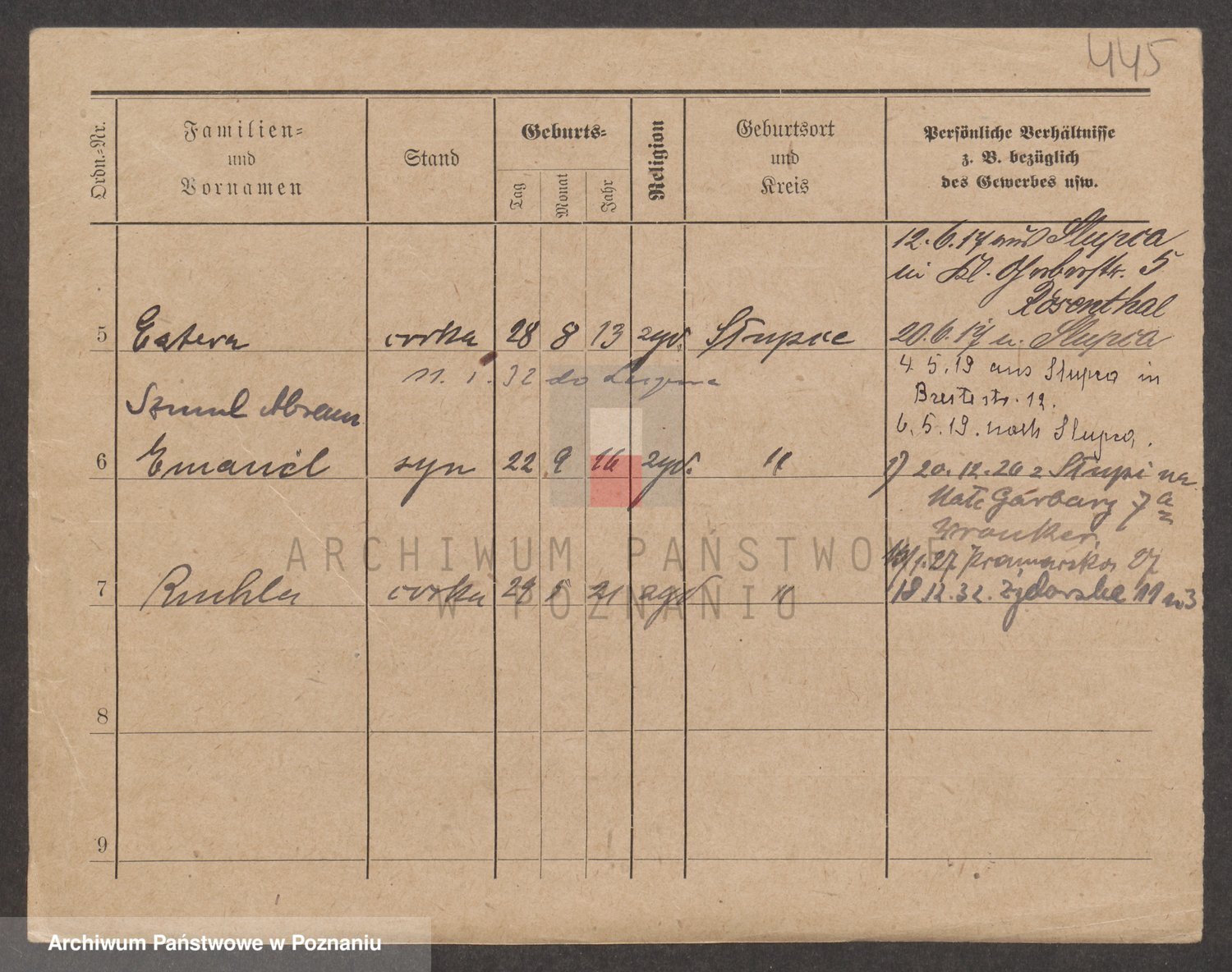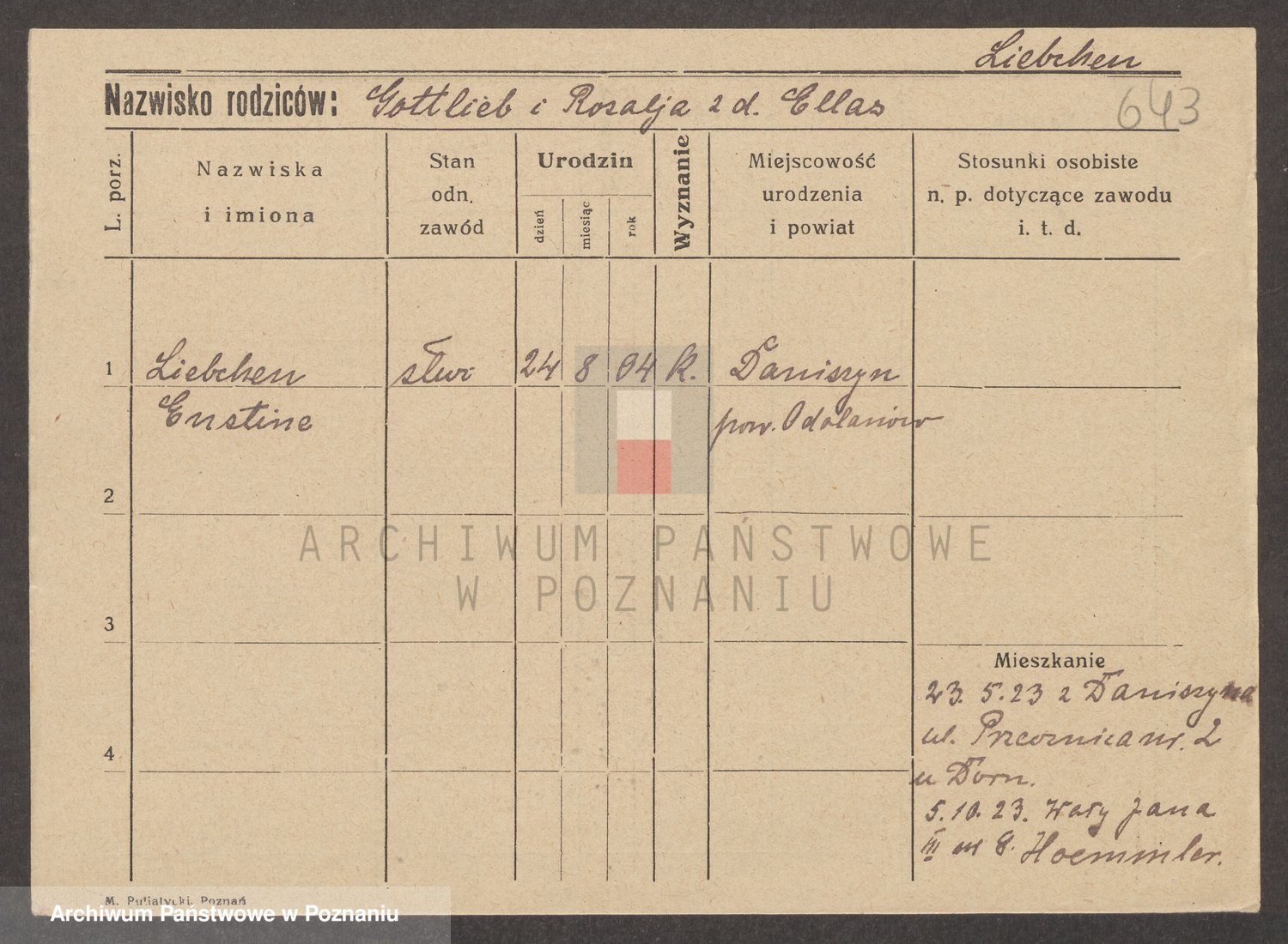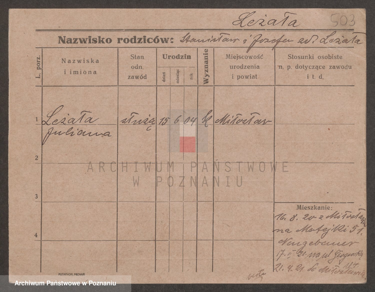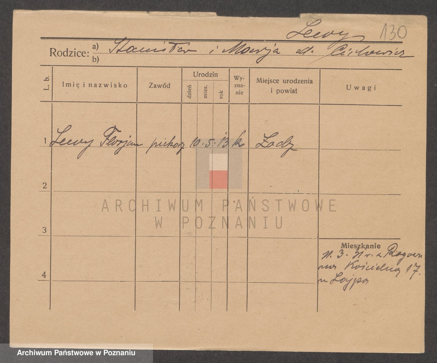 Podgląd karty osobowej dostępny jest po kliknięciu na nazwisko lub ikonkę karty. Można dokonywać powiększenia (ikony na górze) lub przechodzić między kolejnymi skanami (strzałki po bokach).