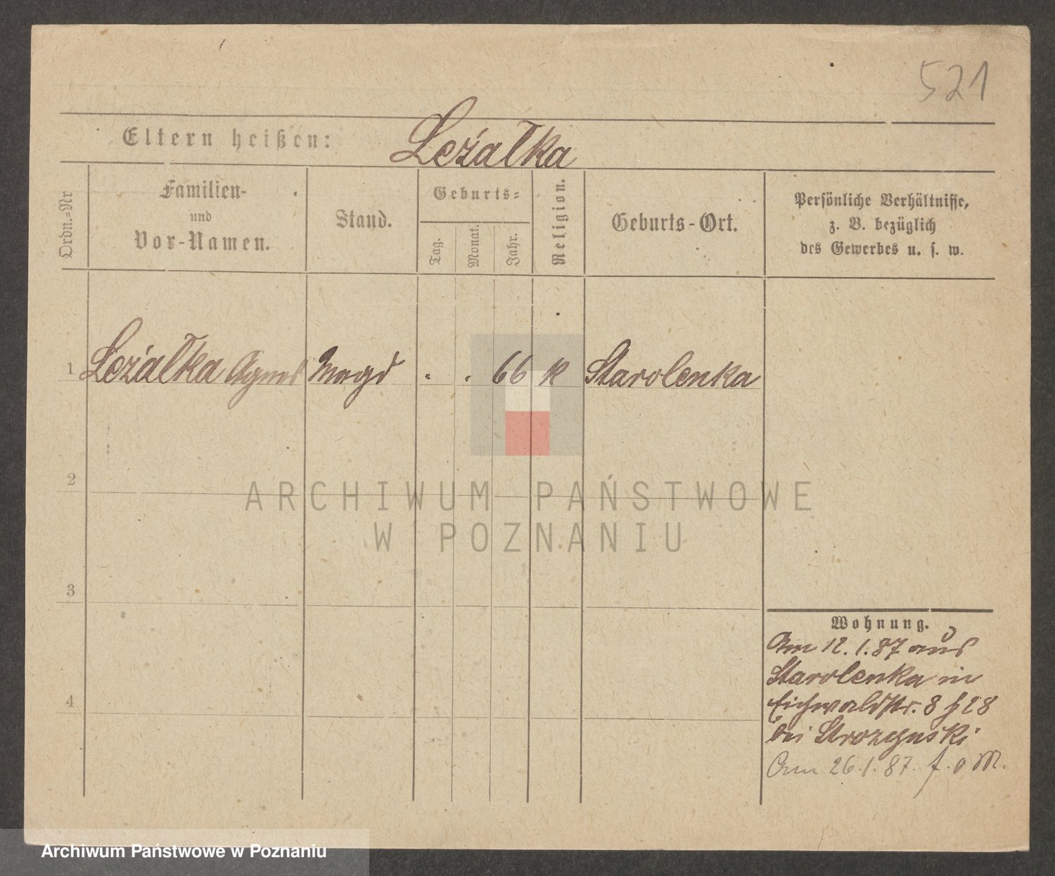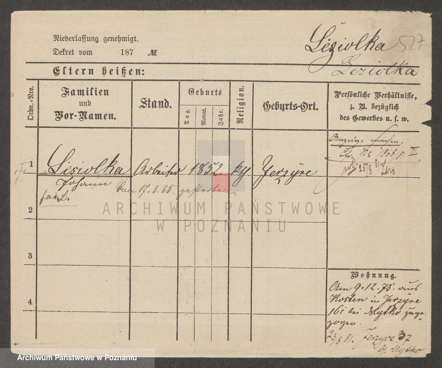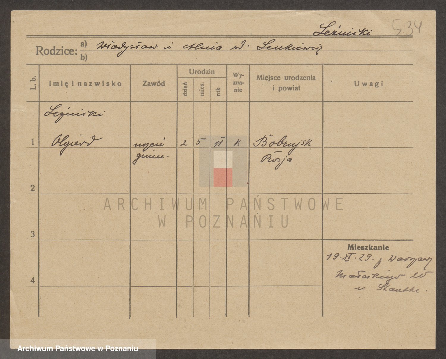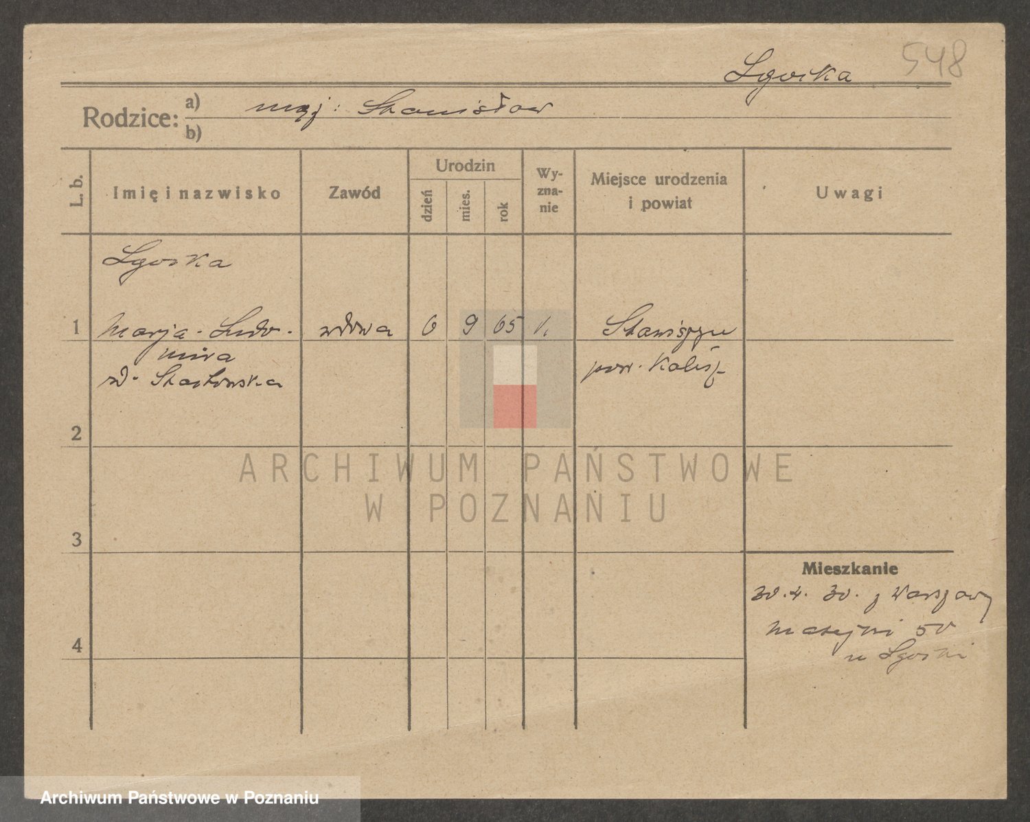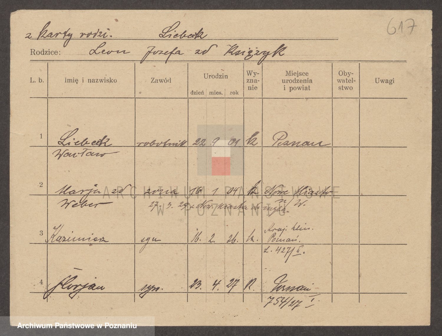 Podgląd karty osobowej dostępny jest po kliknięciu na nazwisko lub ikonkę karty. Można dokonywać powiększenia (ikony na górze) lub przechodzić między kolejnymi skanami (strzałki po bokach).