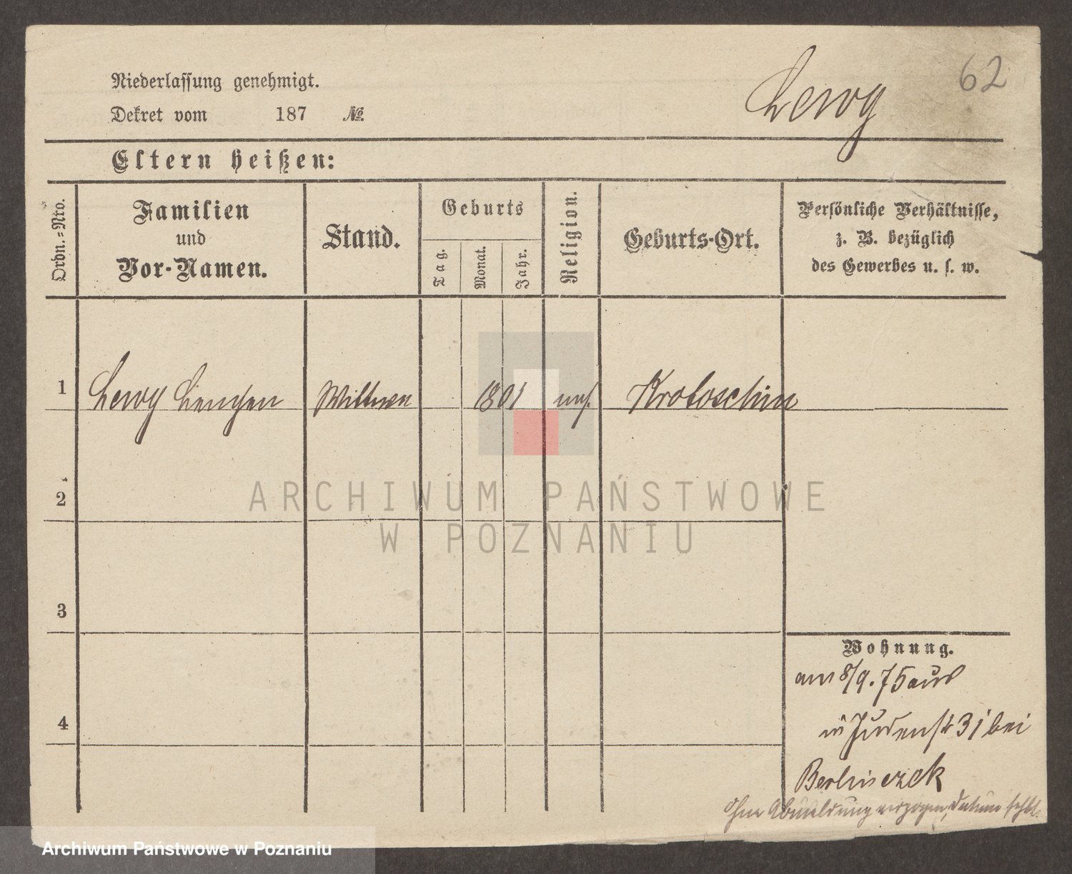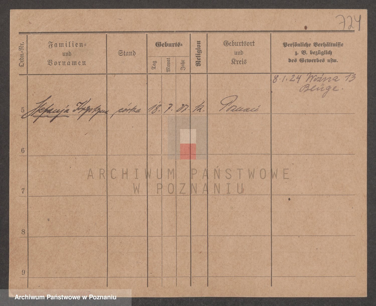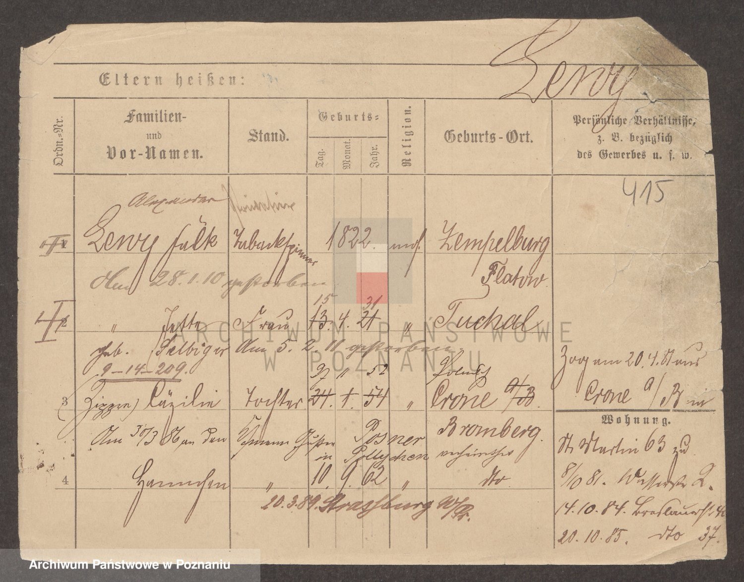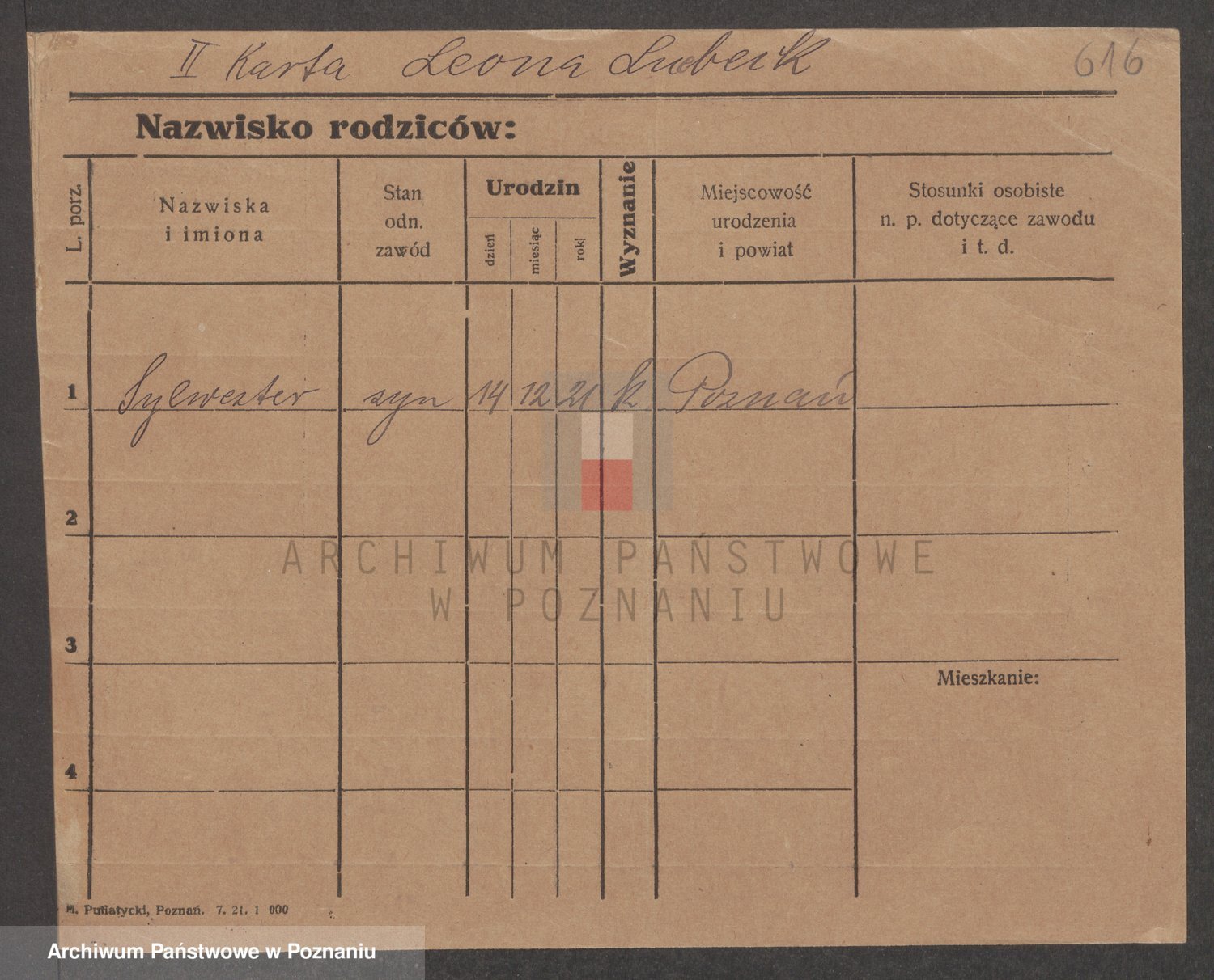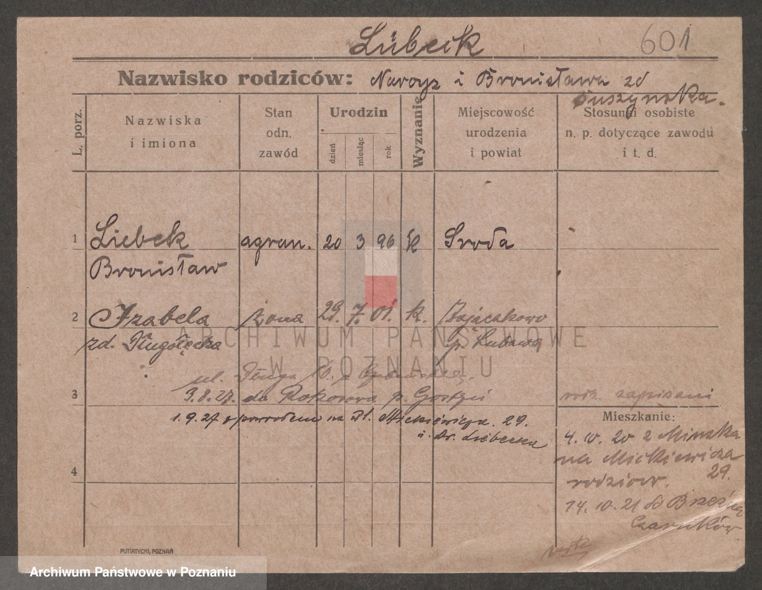 Podgląd karty osobowej dostępny jest po kliknięciu na nazwisko lub ikonkę karty. Można dokonywać powiększenia (ikony na górze) lub przechodzić między kolejnymi skanami (strzałki po bokach).
