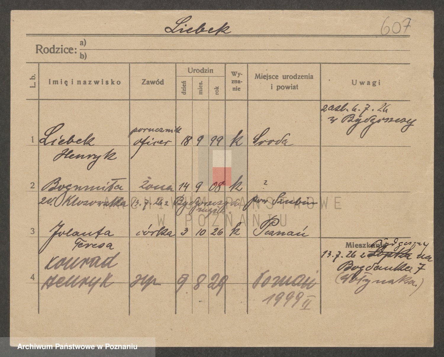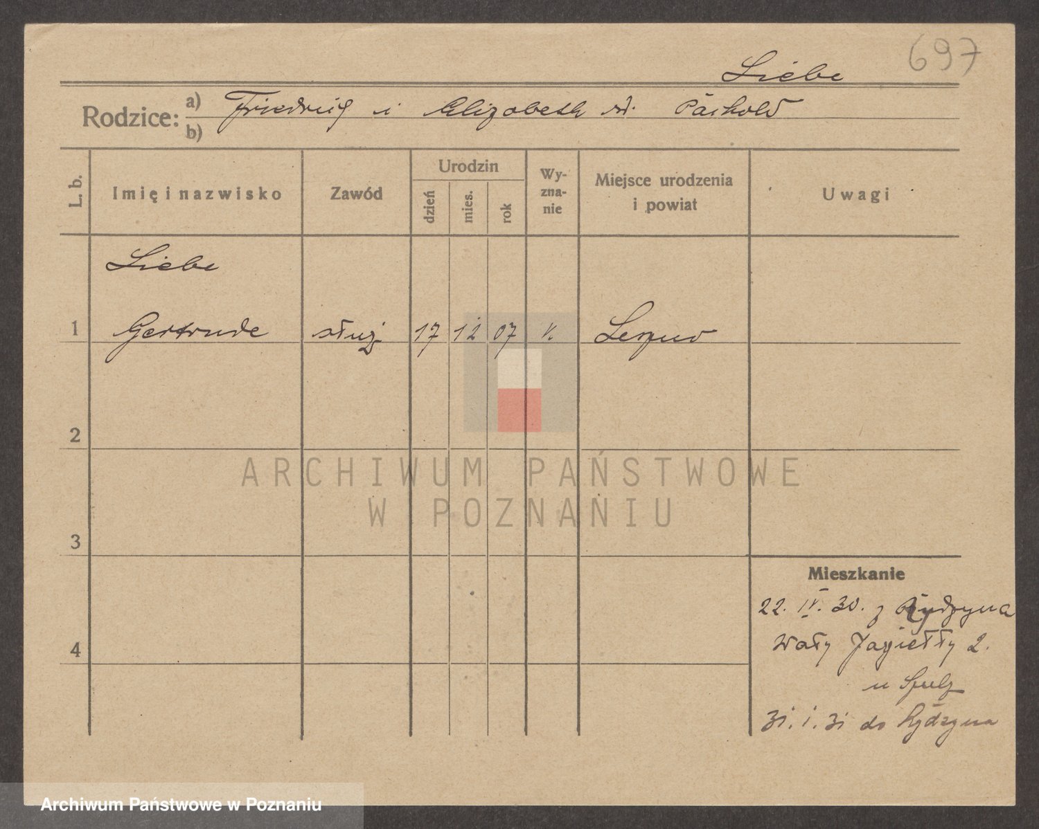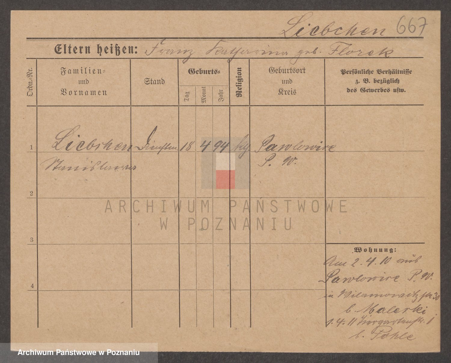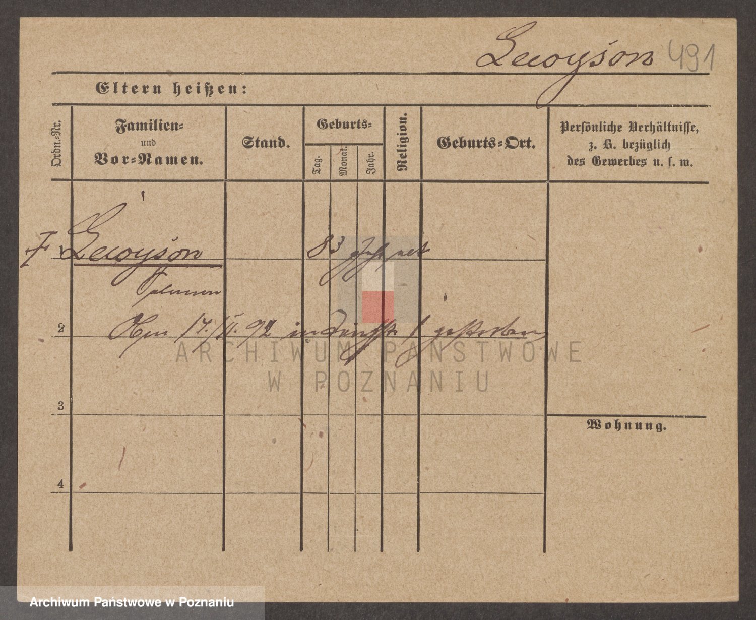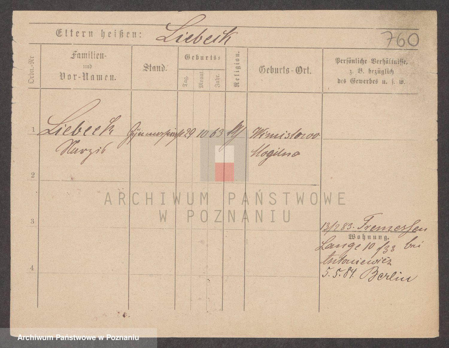 Podgląd karty osobowej dostępny jest po kliknięciu na nazwisko lub ikonkę karty. Można dokonywać powiększenia (ikony na górze) lub przechodzić między kolejnymi skanami (strzałki po bokach).