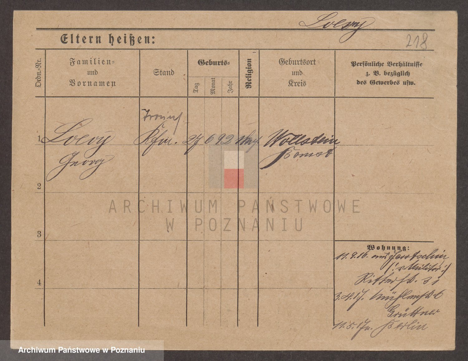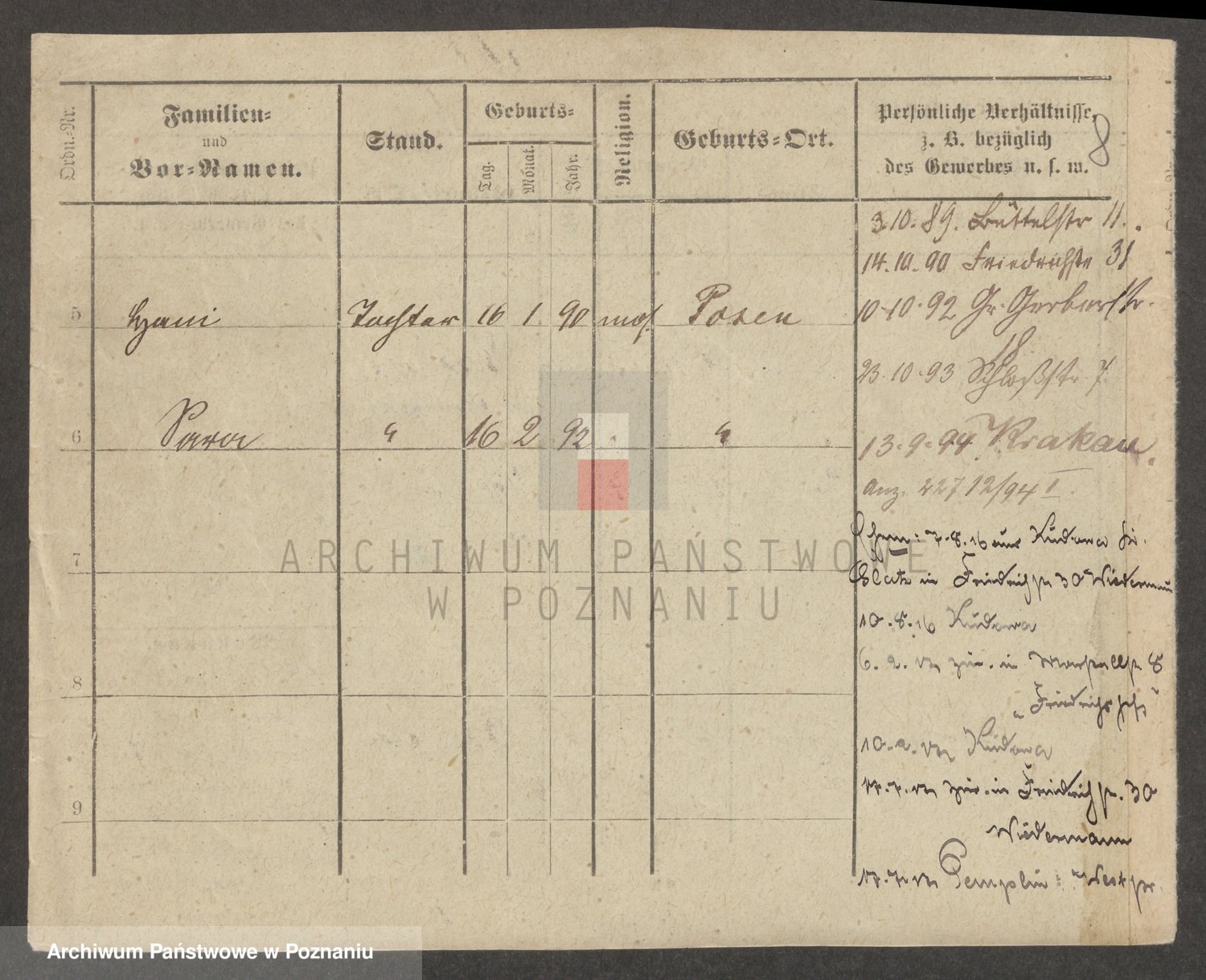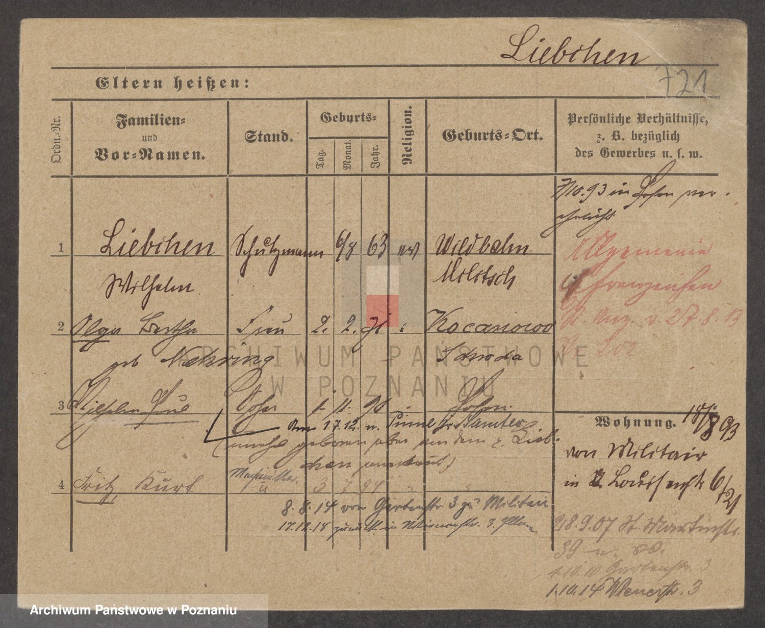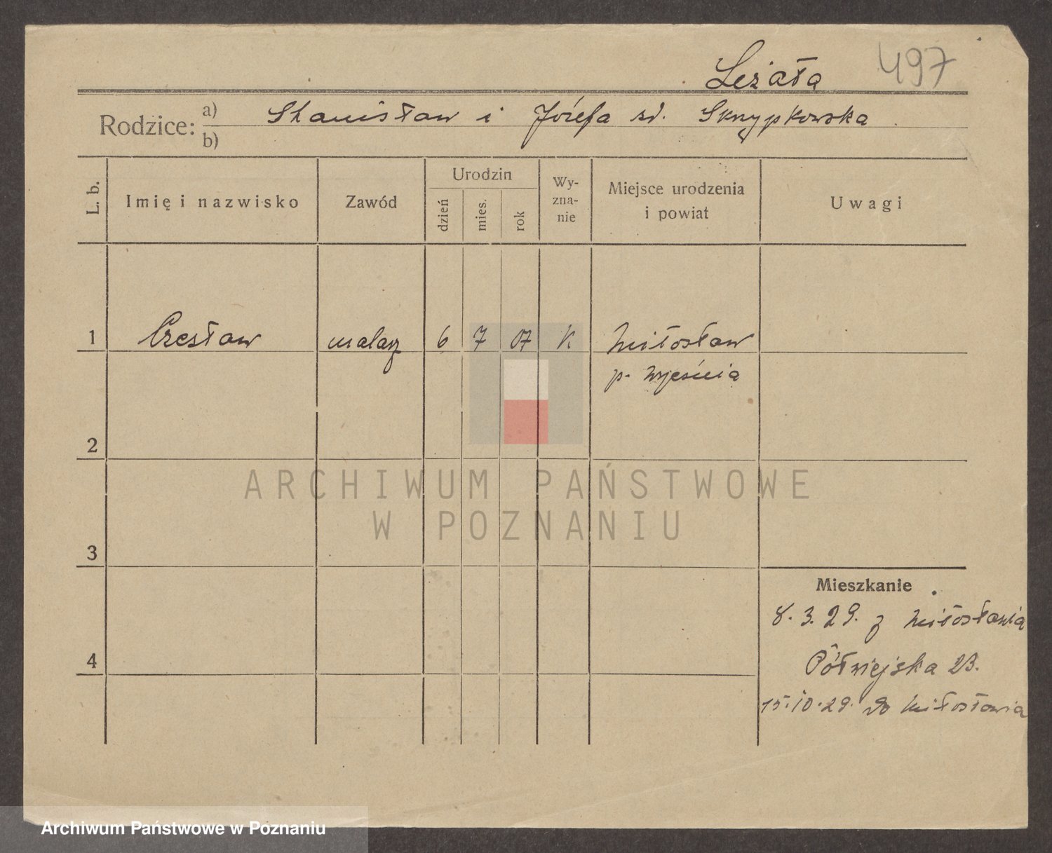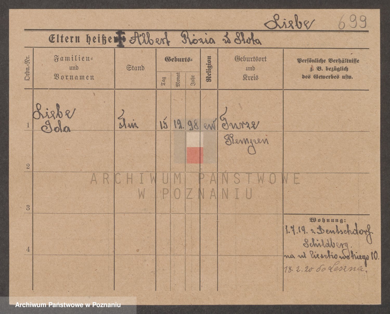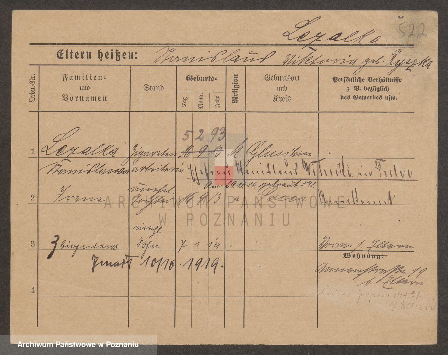 Podgląd karty osobowej dostępny jest po kliknięciu na nazwisko lub ikonkę karty. Można dokonywać powiększenia (ikony na górze) lub przechodzić między kolejnymi skanami (strzałki po bokach).