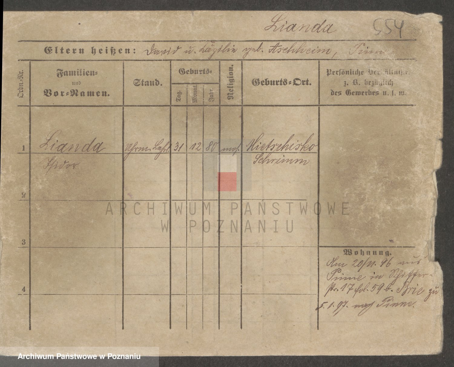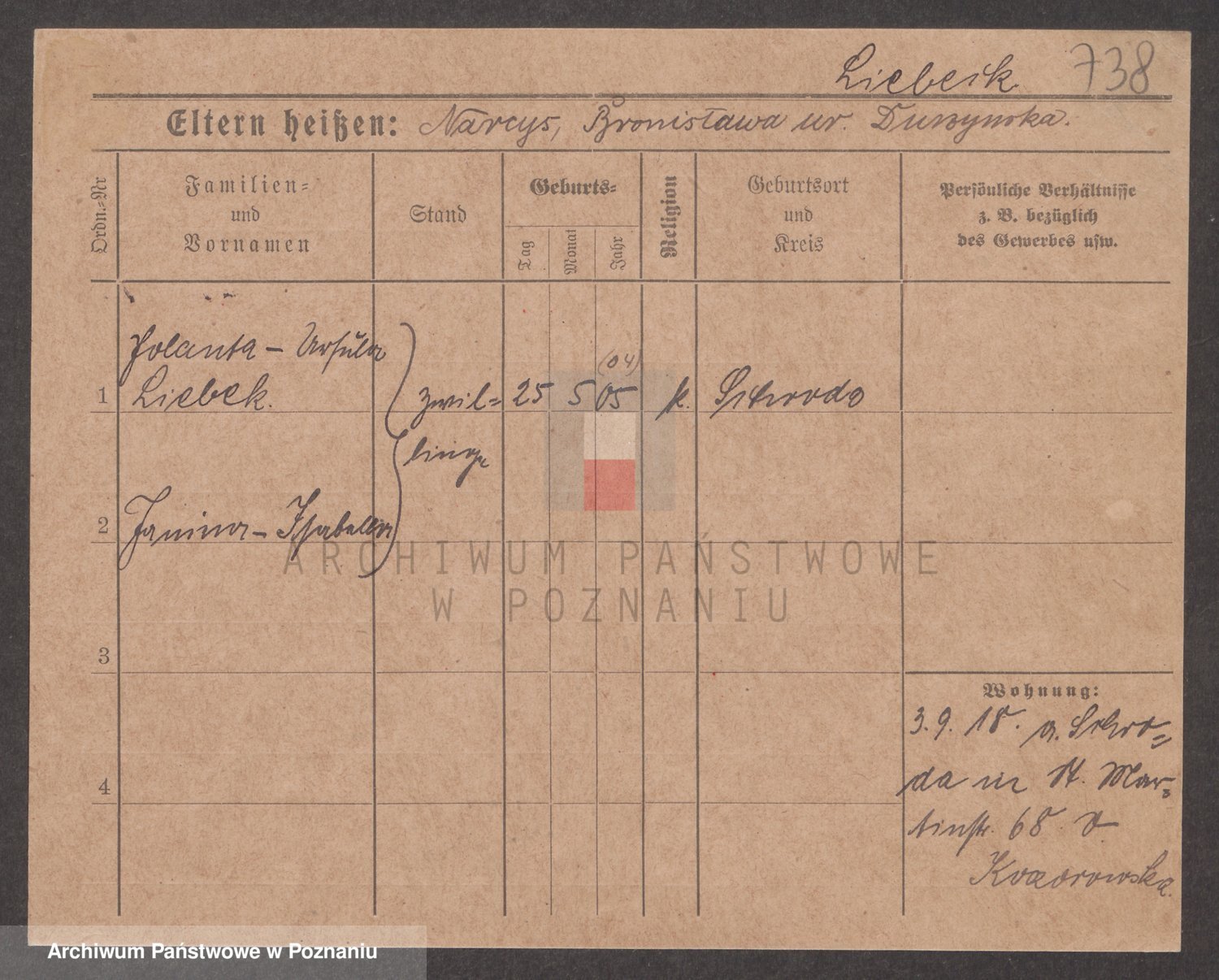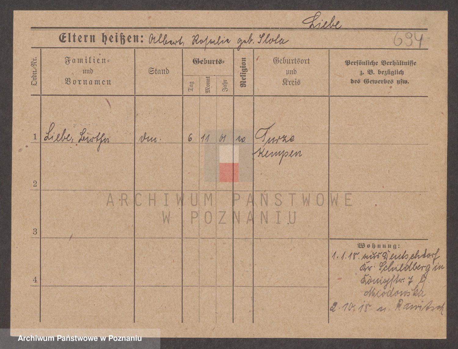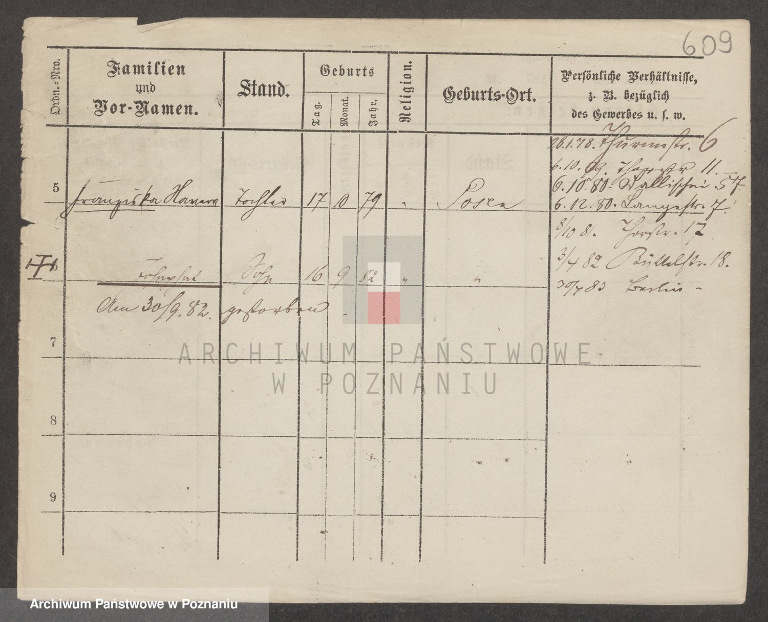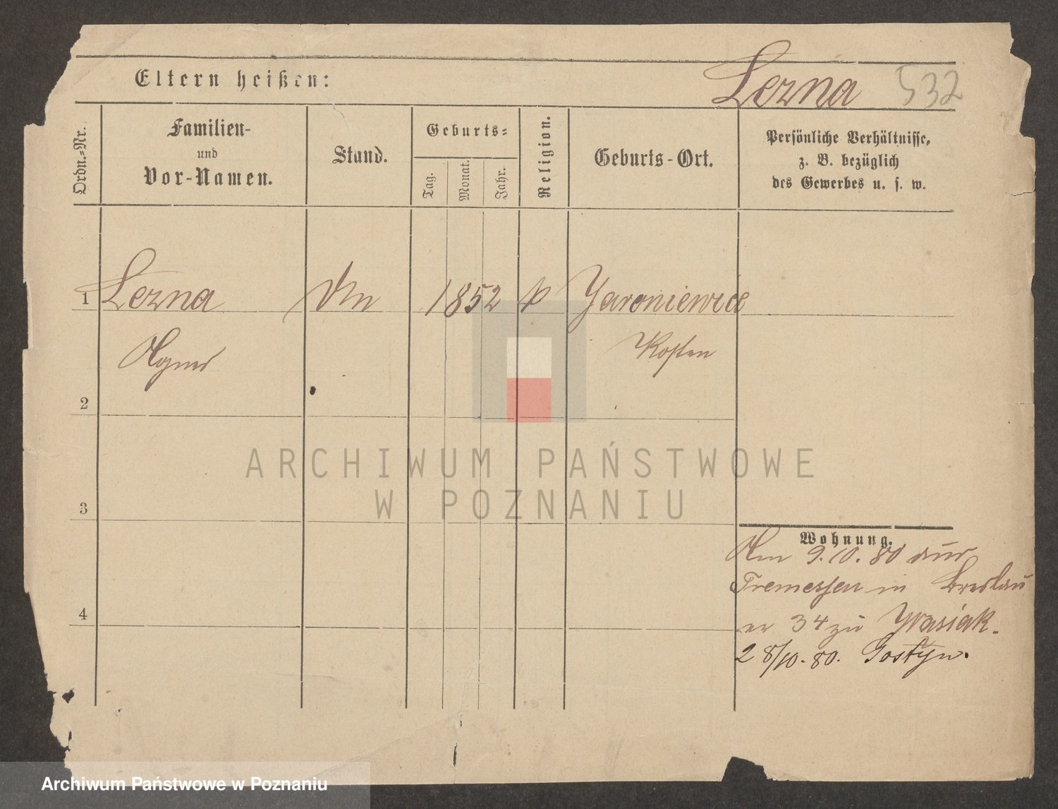 Podgląd karty osobowej dostępny jest po kliknięciu na nazwisko lub ikonkę karty. Można dokonywać powiększenia (ikony na górze) lub przechodzić między kolejnymi skanami (strzałki po bokach).