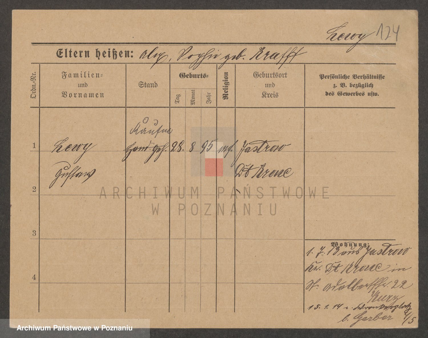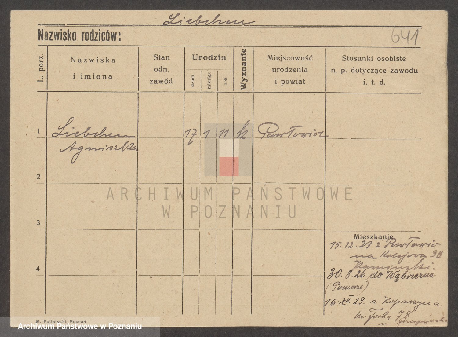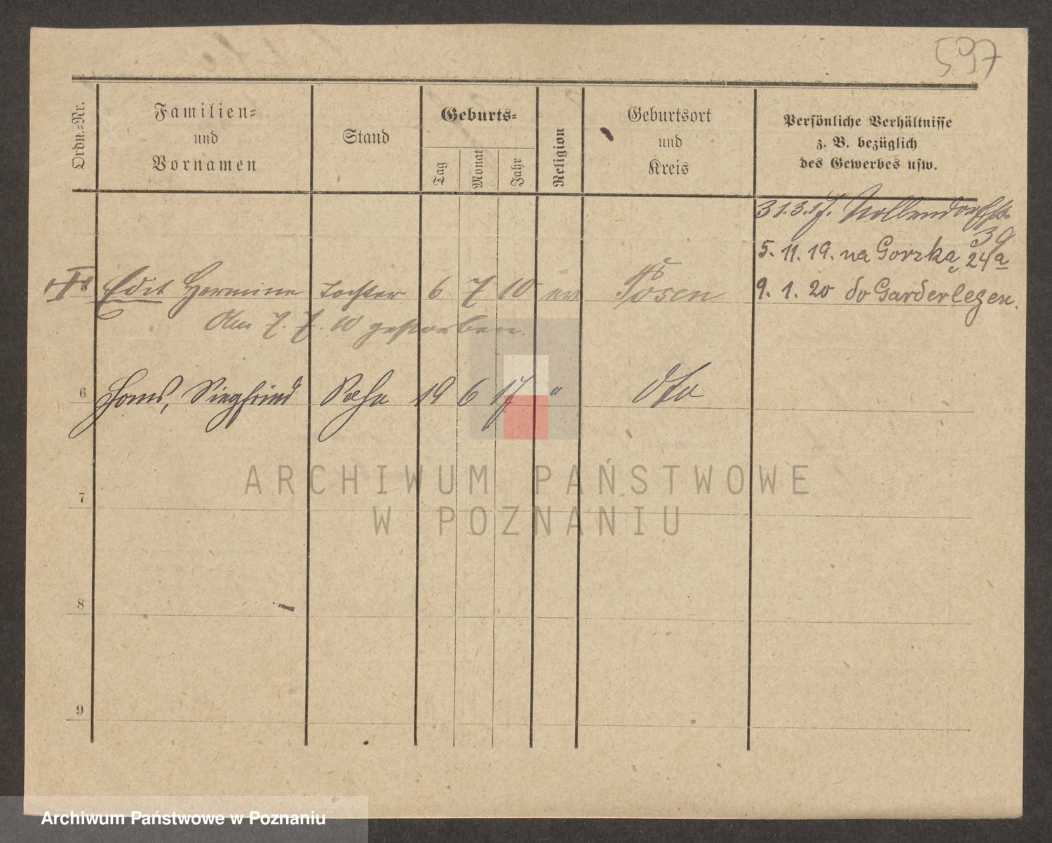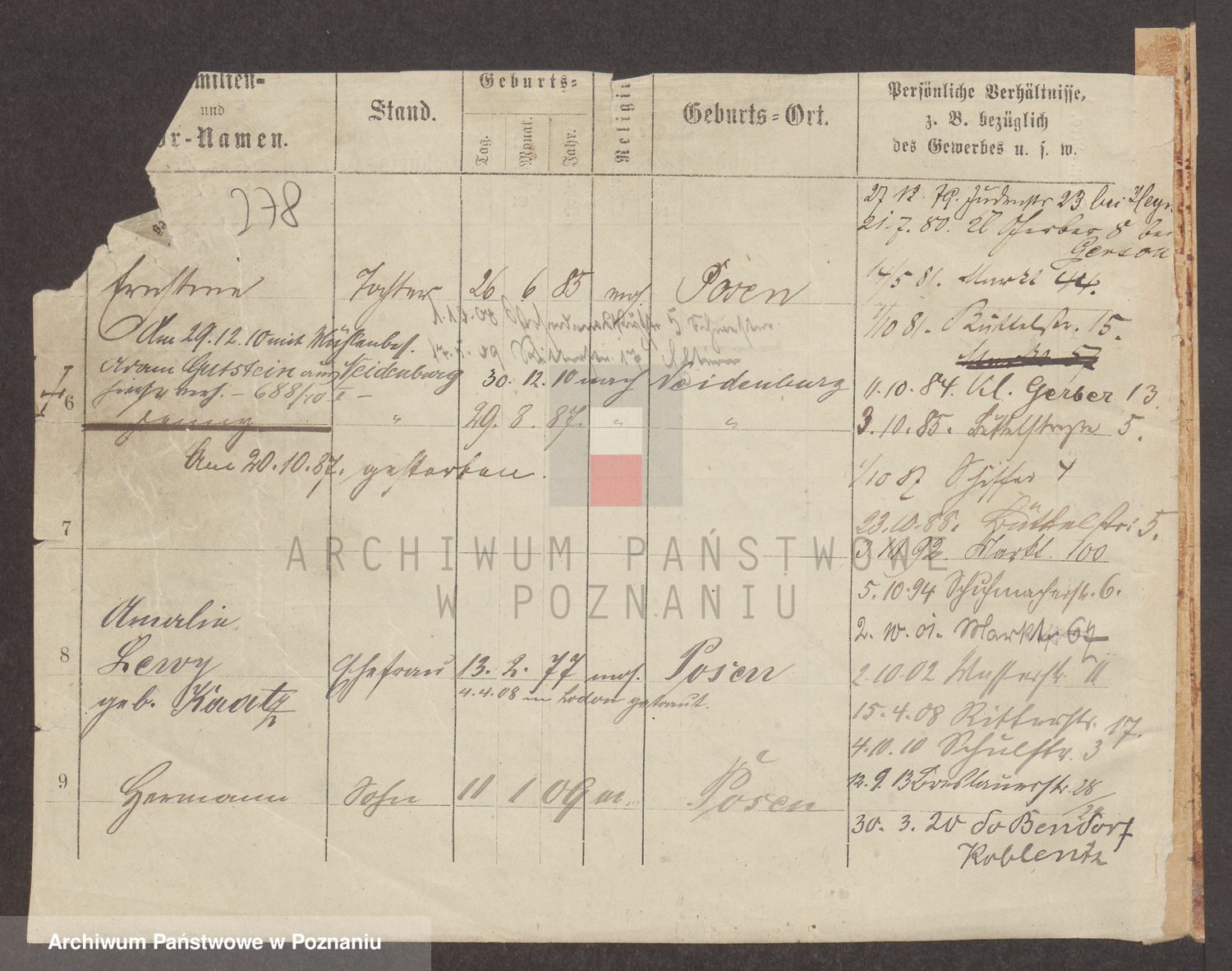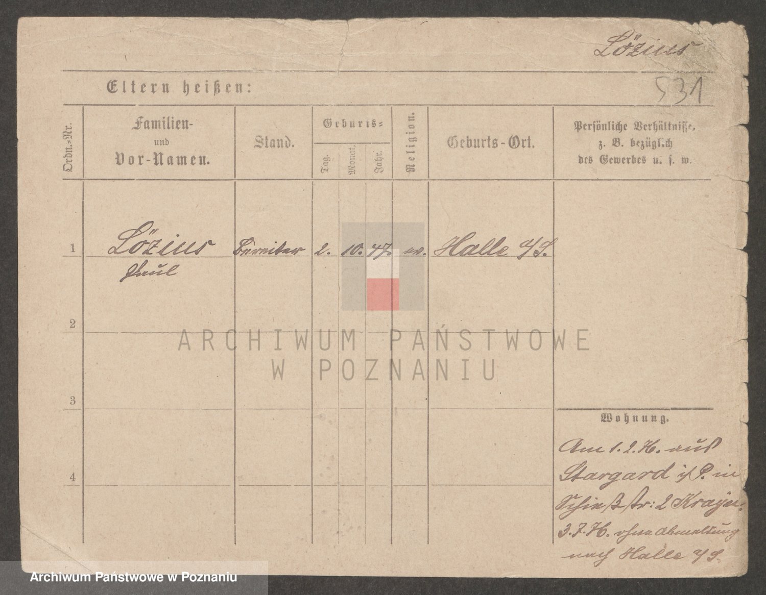Podgląd karty osobowej dostępny jest po kliknięciu na nazwisko lub ikonkę karty. Można dokonywać powiększenia (ikony na górze) lub przechodzić między kolejnymi skanami (strzałki po bokach).