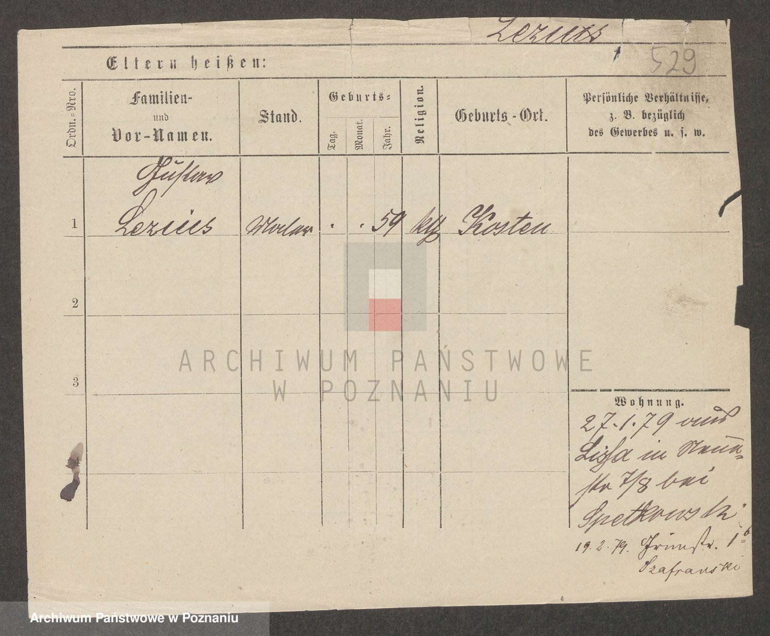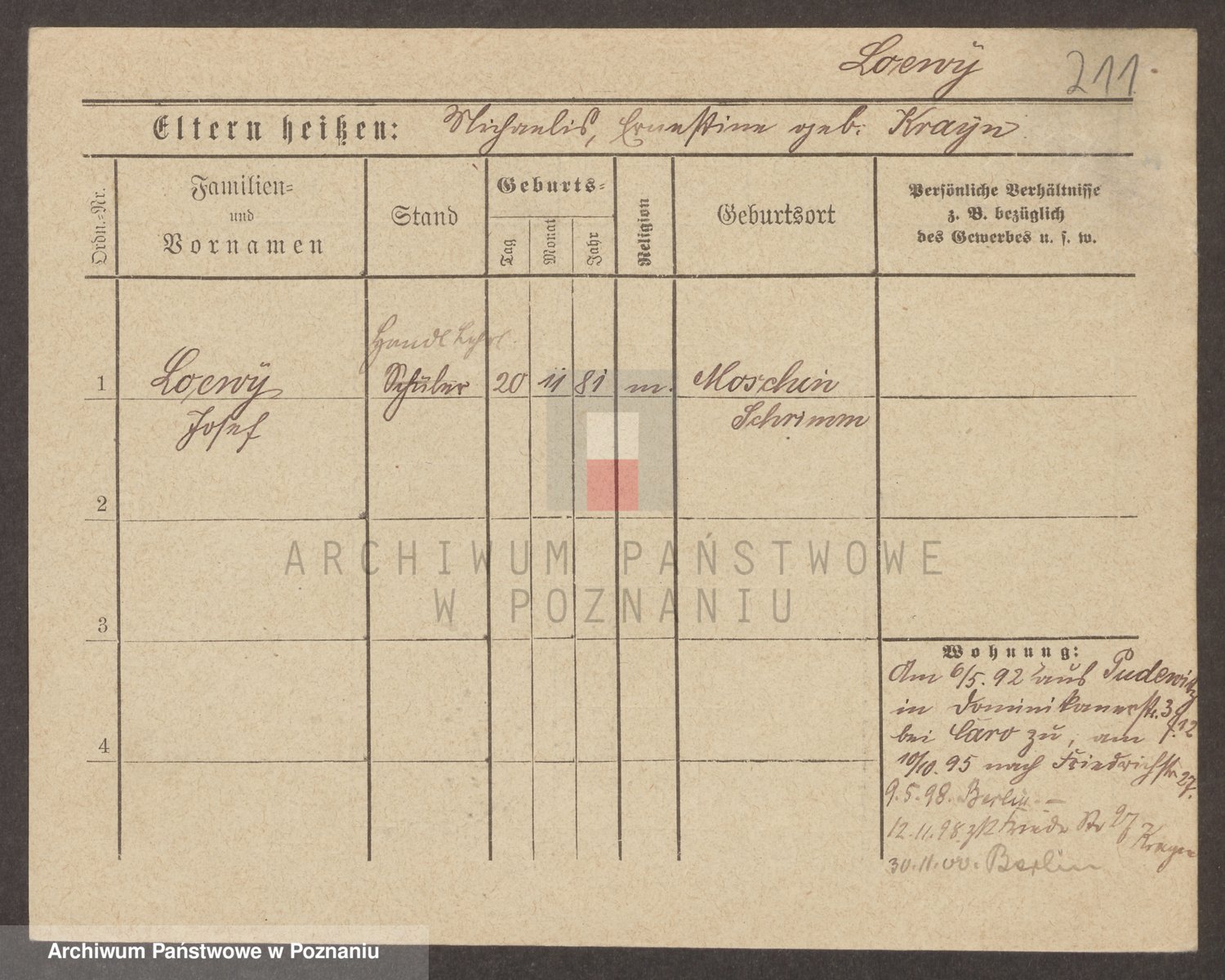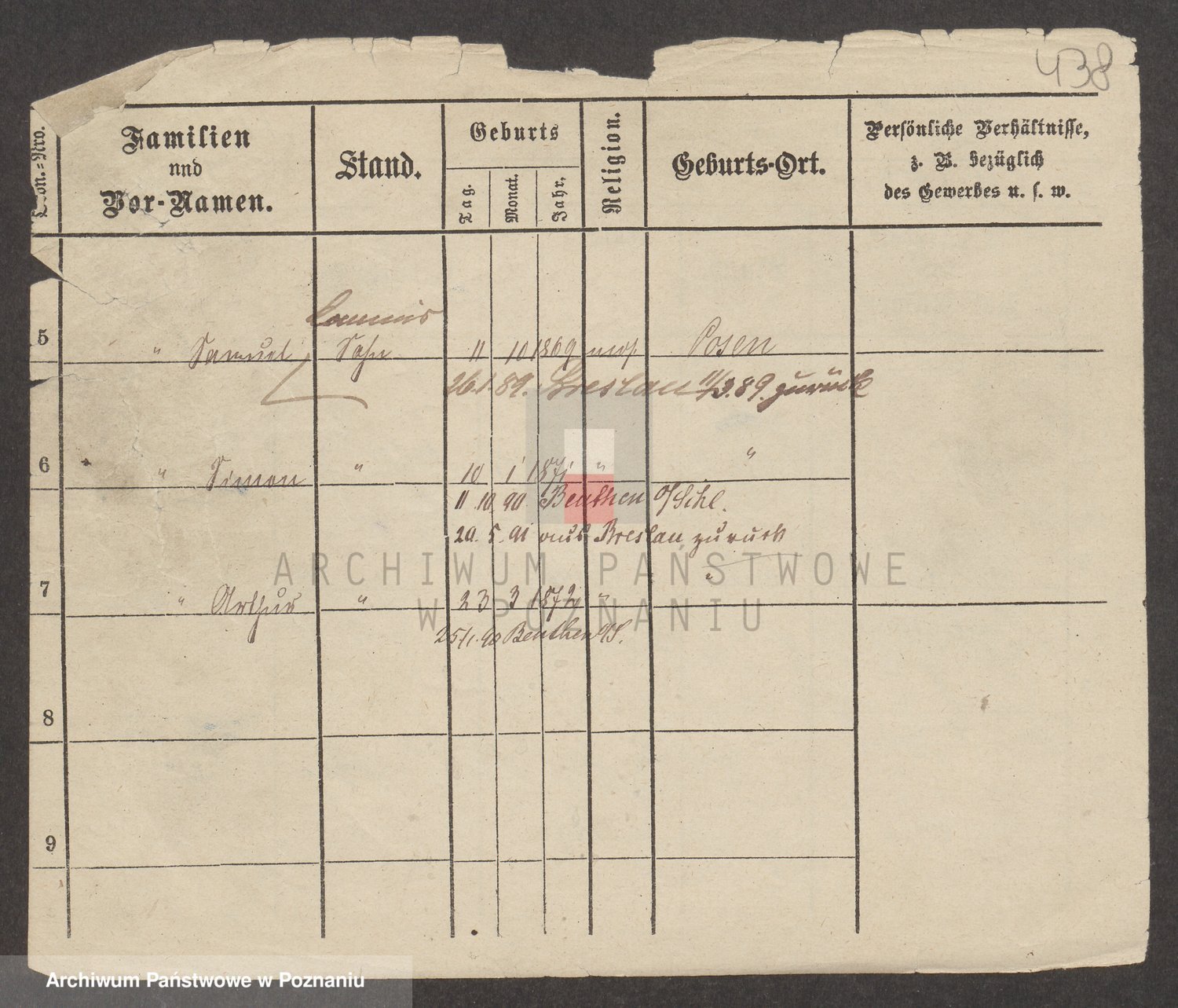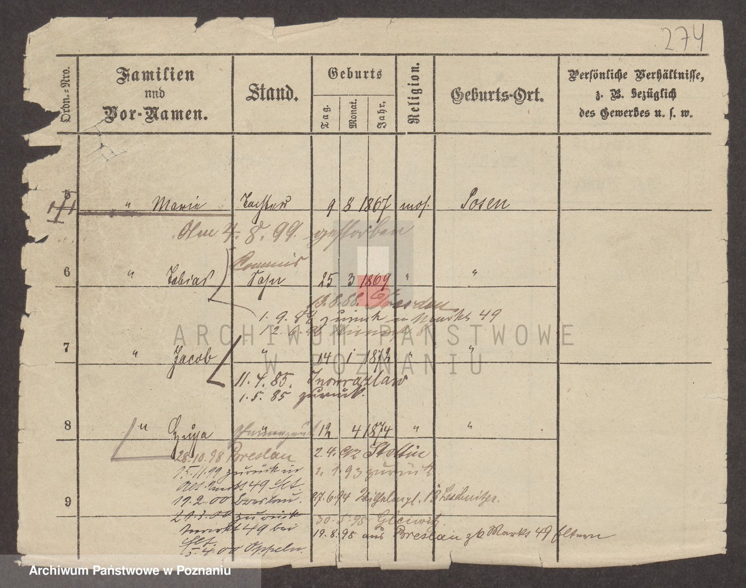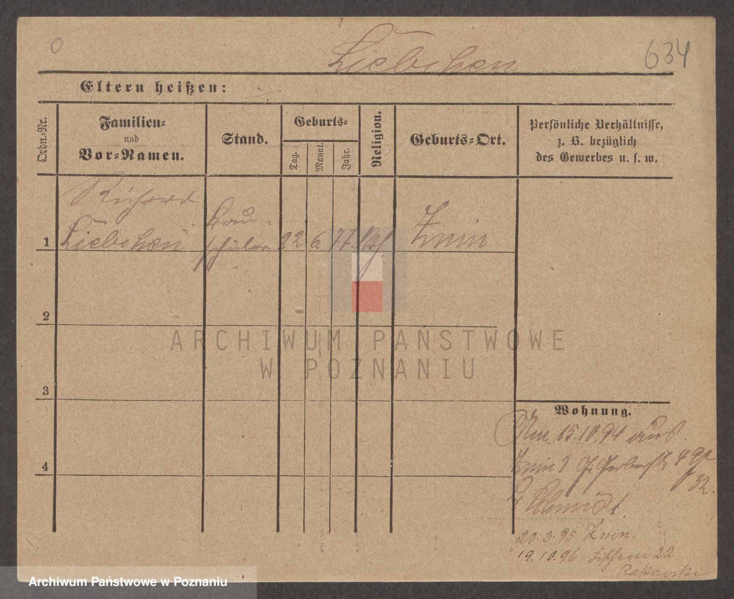 Podgląd karty osobowej dostępny jest po kliknięciu na nazwisko lub ikonkę karty. Można dokonywać powiększenia (ikony na górze) lub przechodzić między kolejnymi skanami (strzałki po bokach).