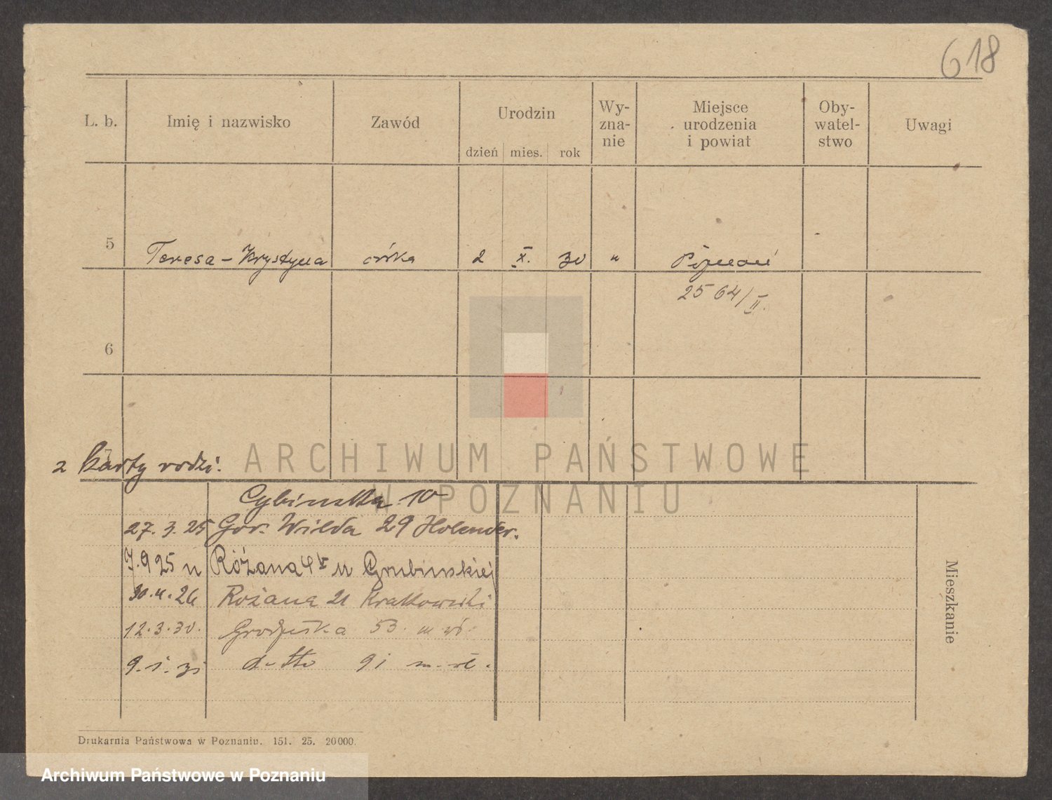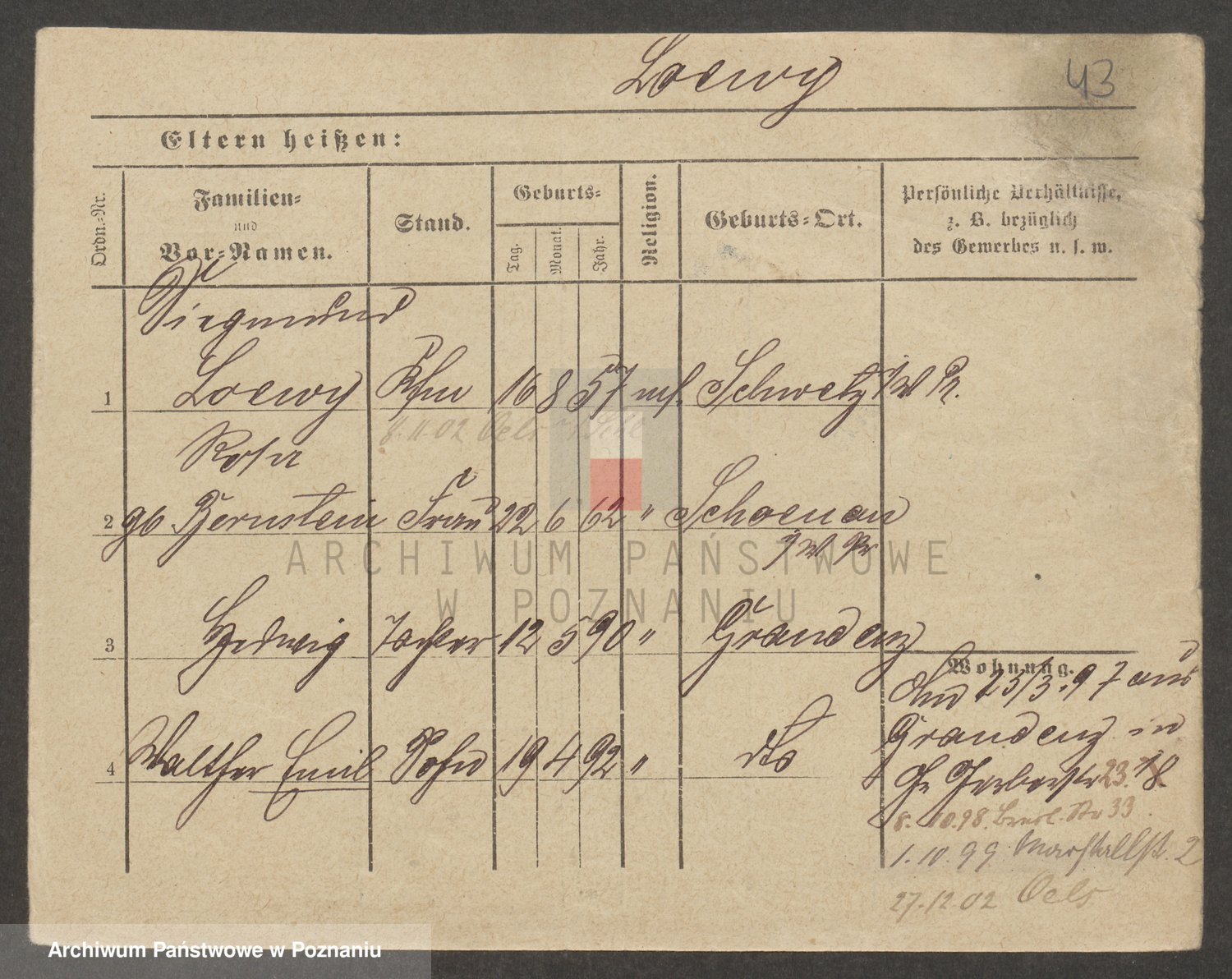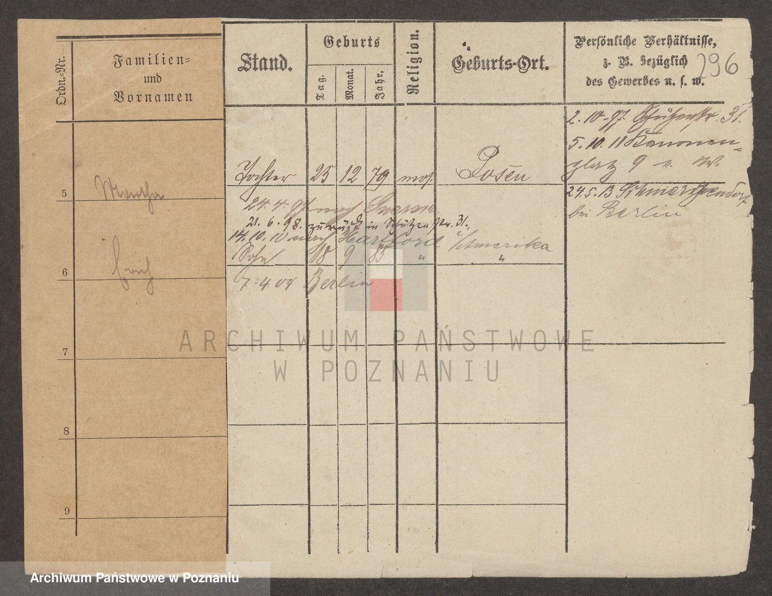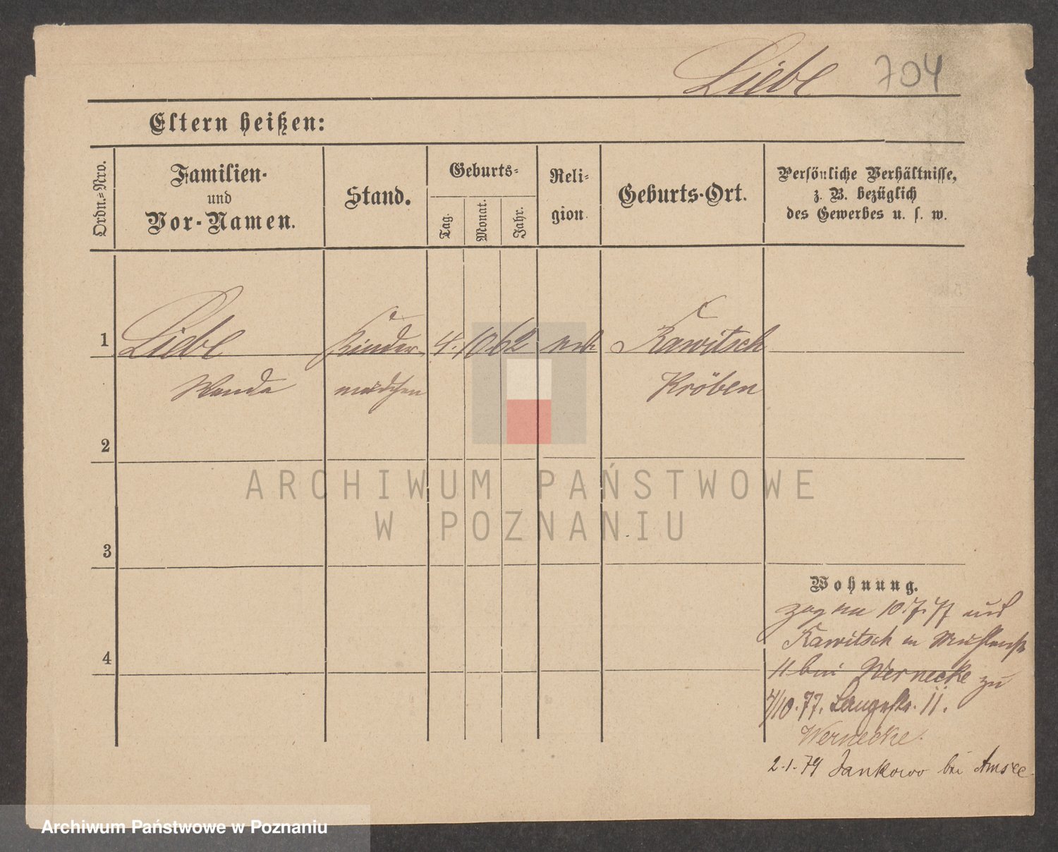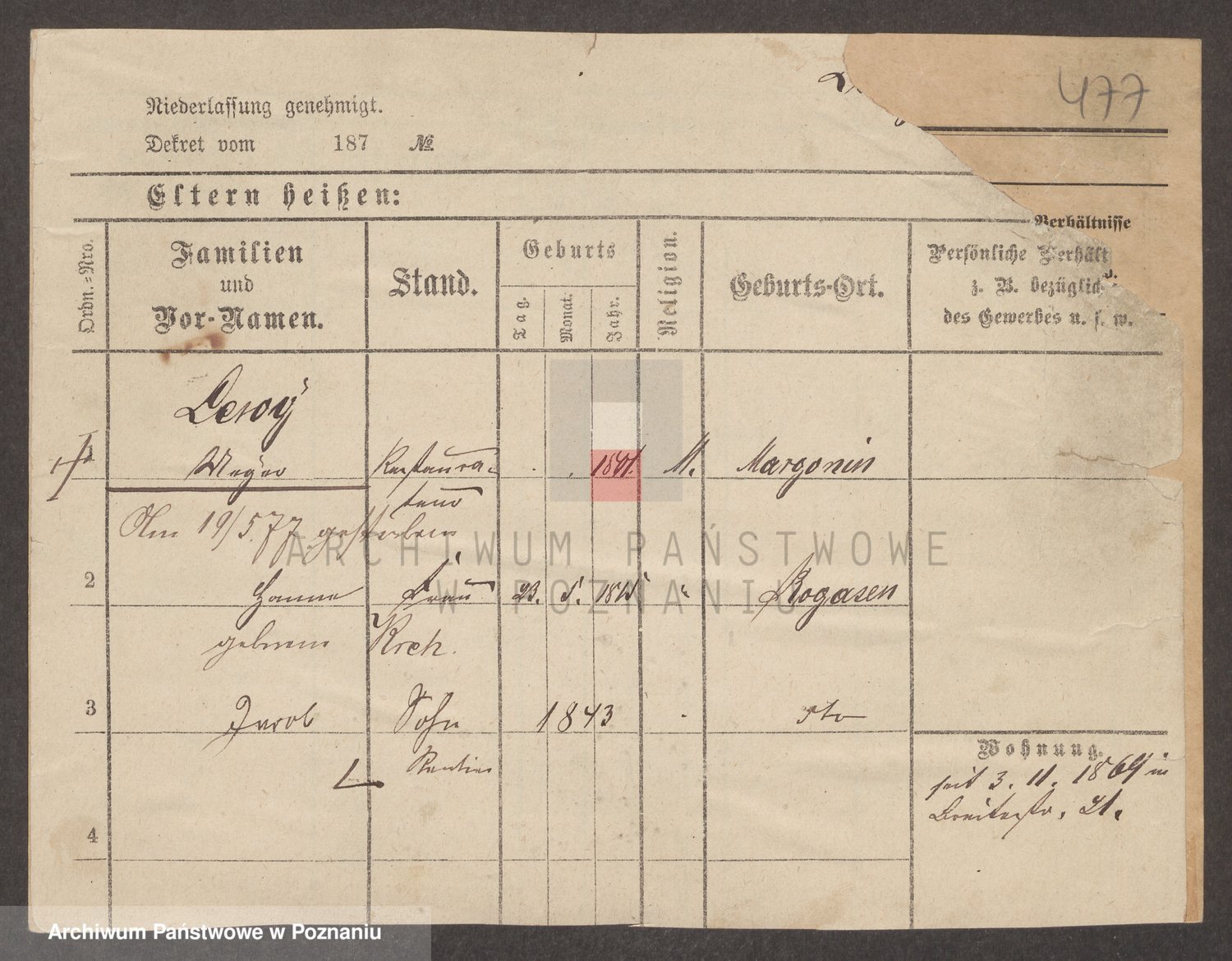 Podgląd karty osobowej dostępny jest po kliknięciu na nazwisko lub ikonkę karty. Można dokonywać powiększenia (ikony na górze) lub przechodzić między kolejnymi skanami (strzałki po bokach).