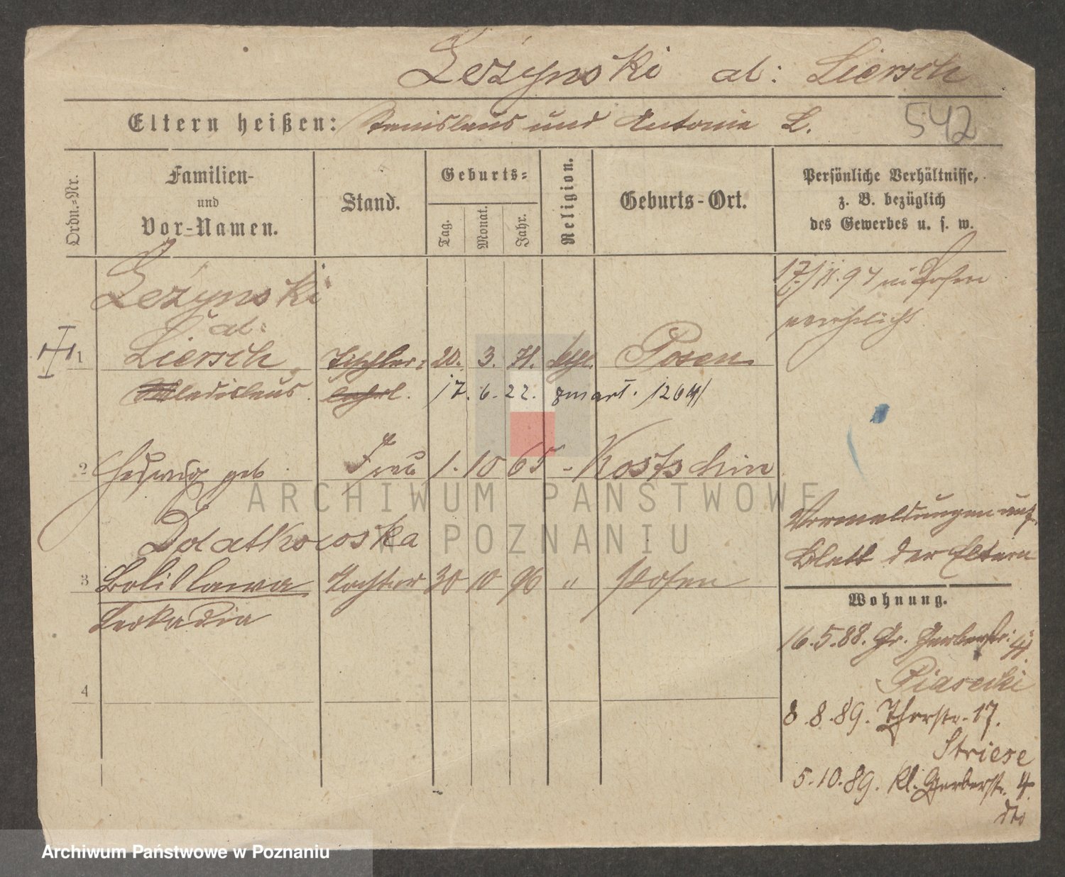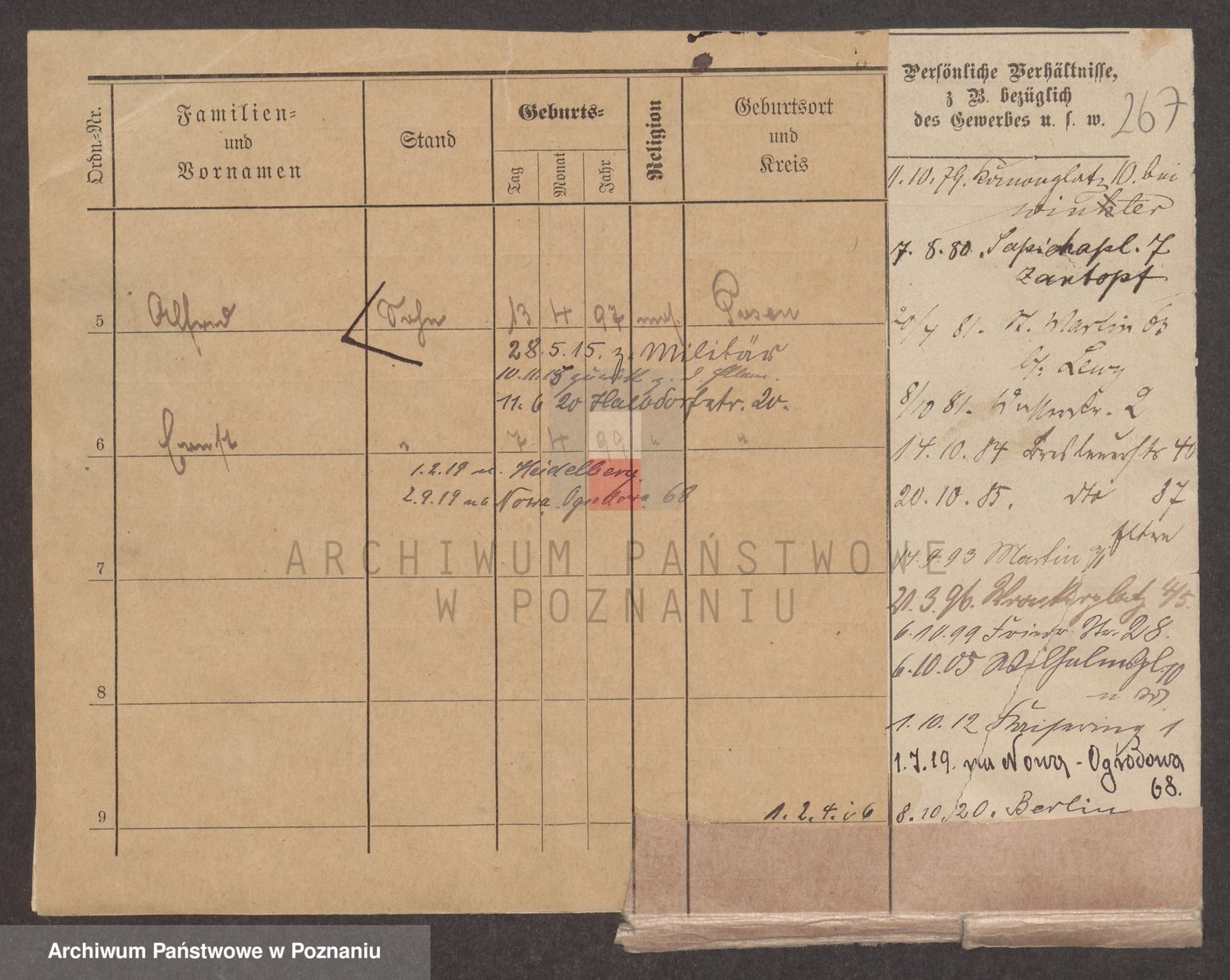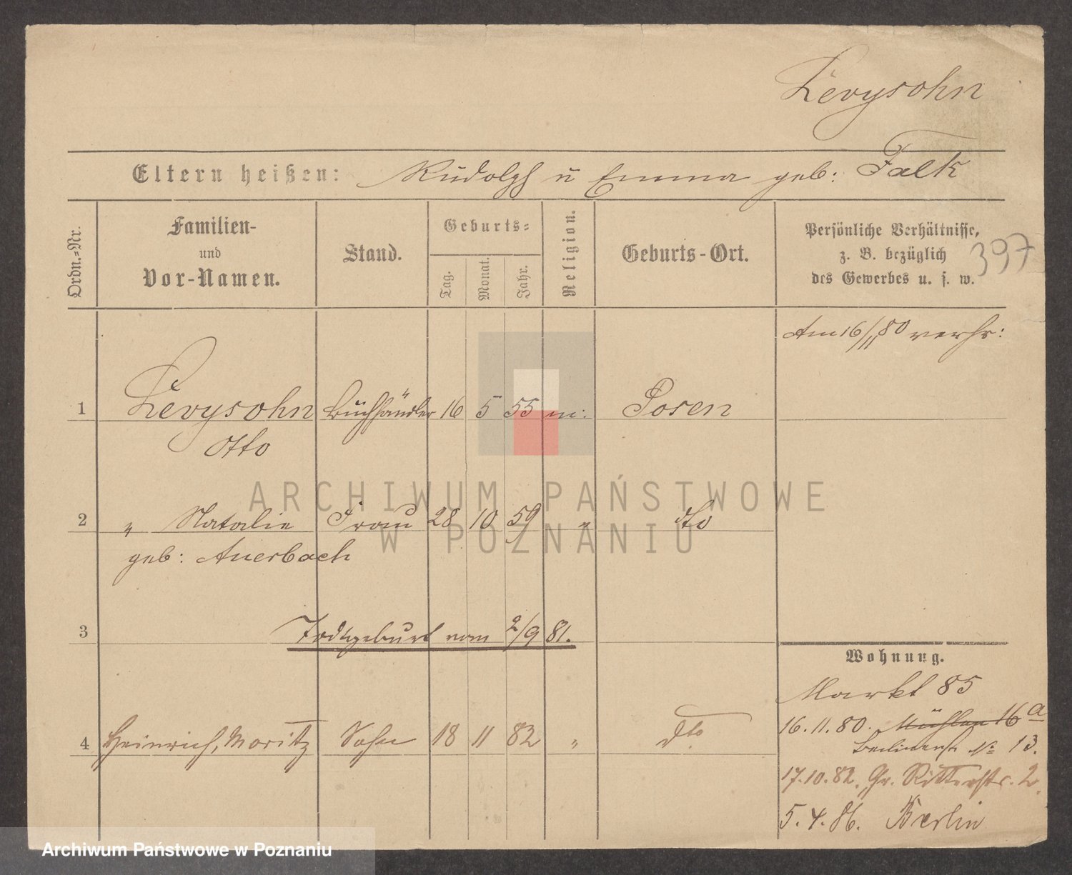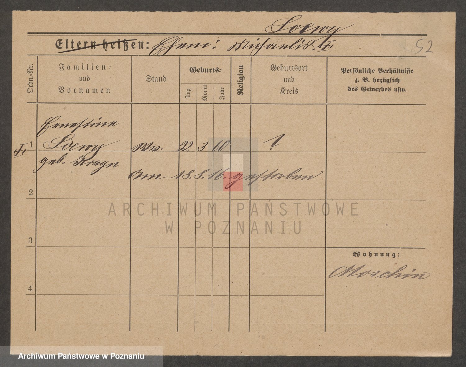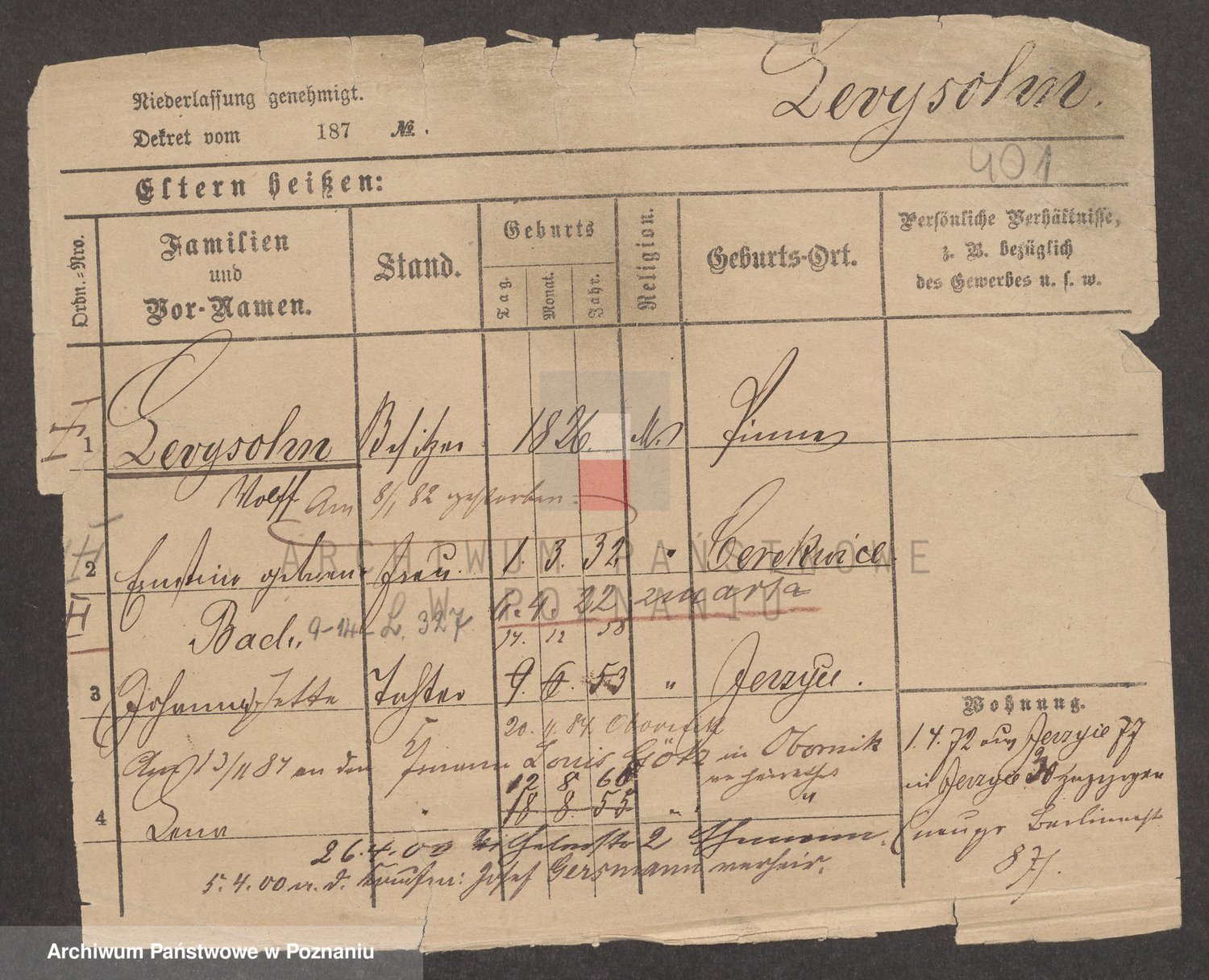 Podgląd karty osobowej dostępny jest po kliknięciu na nazwisko lub ikonkę karty. Można dokonywać powiększenia (ikony na górze) lub przechodzić między kolejnymi skanami (strzałki po bokach).