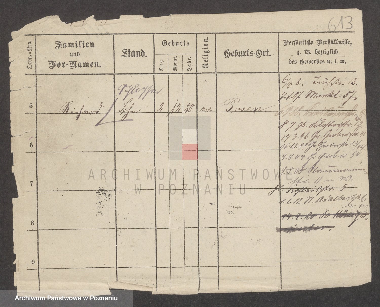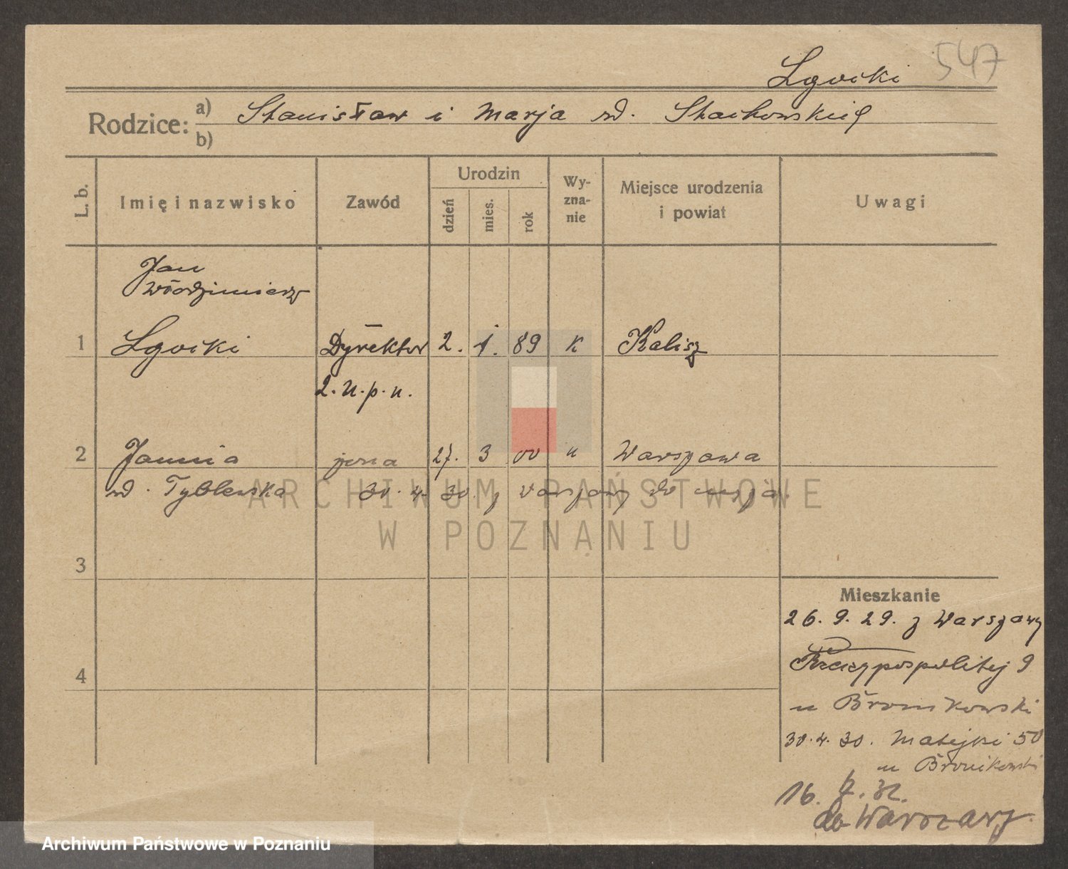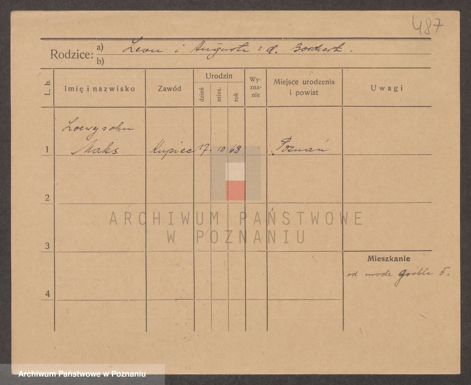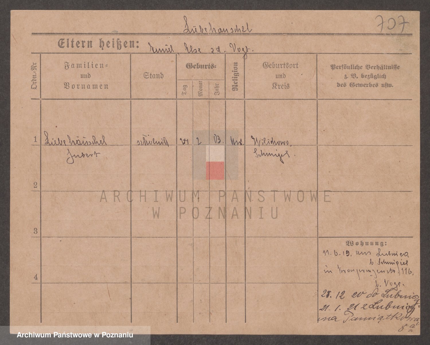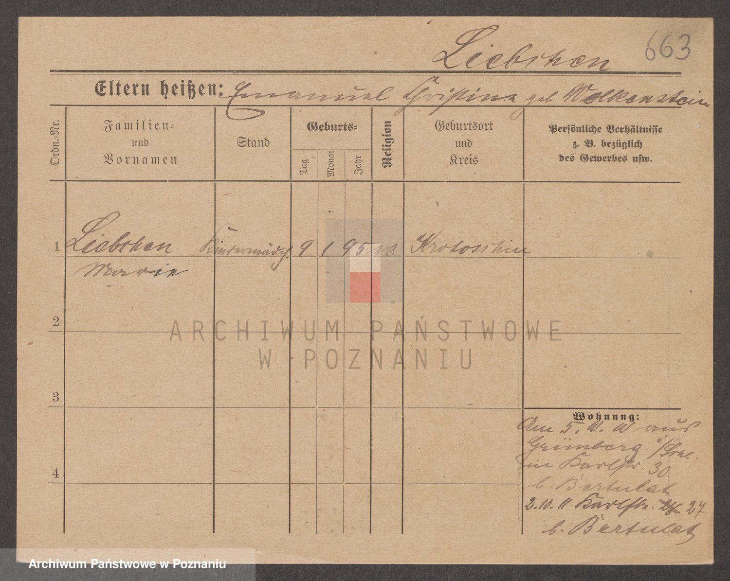 Podgląd karty osobowej dostępny jest po kliknięciu na nazwisko lub ikonkę karty. Można dokonywać powiększenia (ikony na górze) lub przechodzić między kolejnymi skanami (strzałki po bokach).