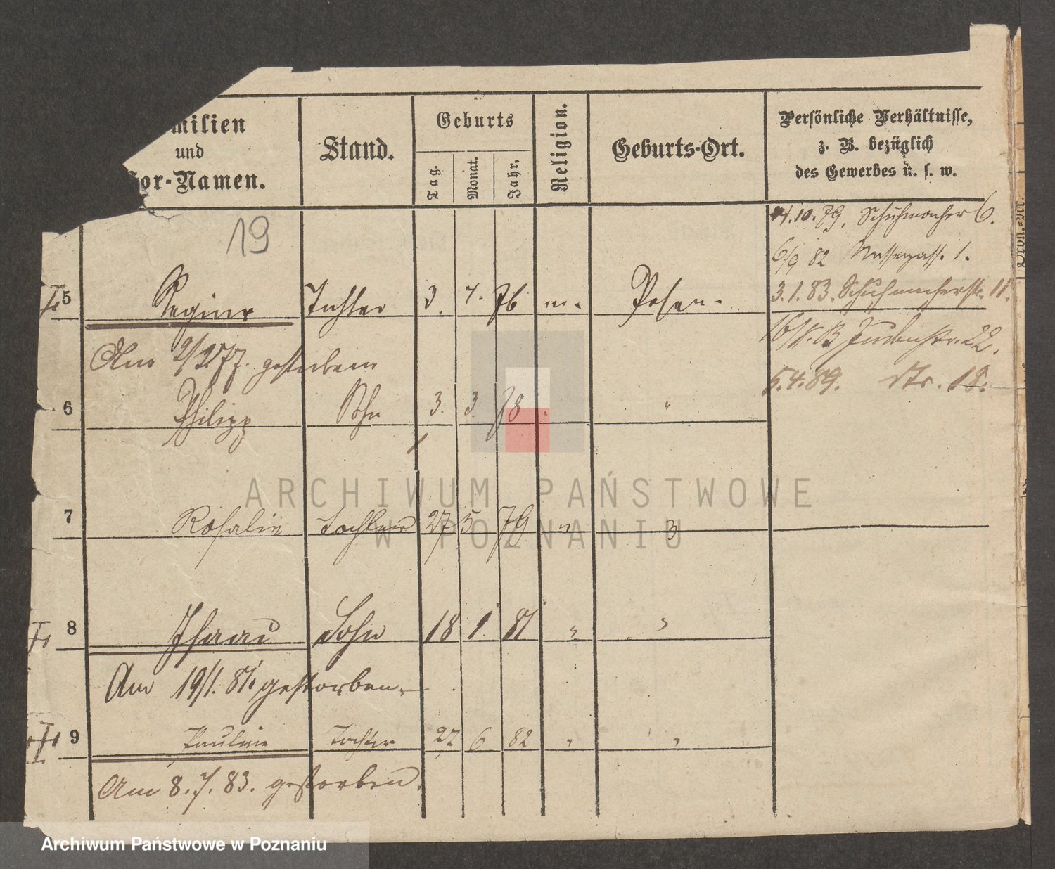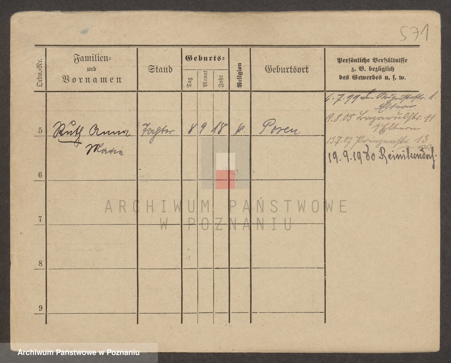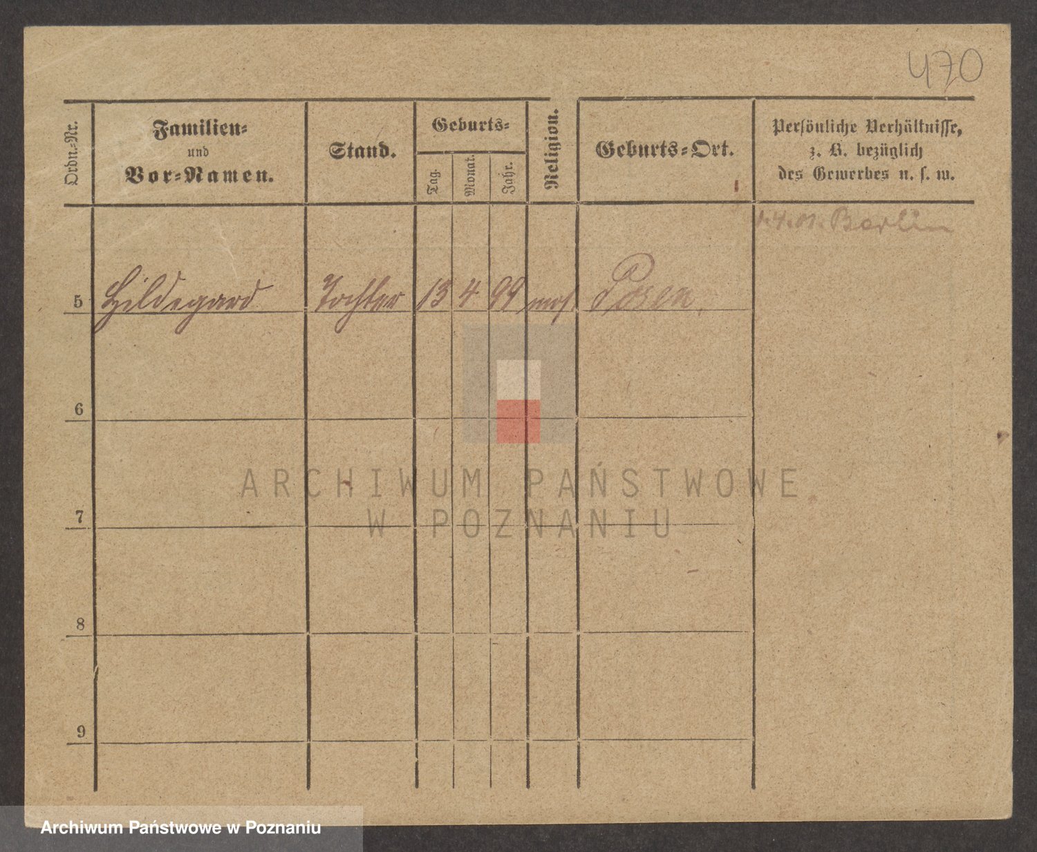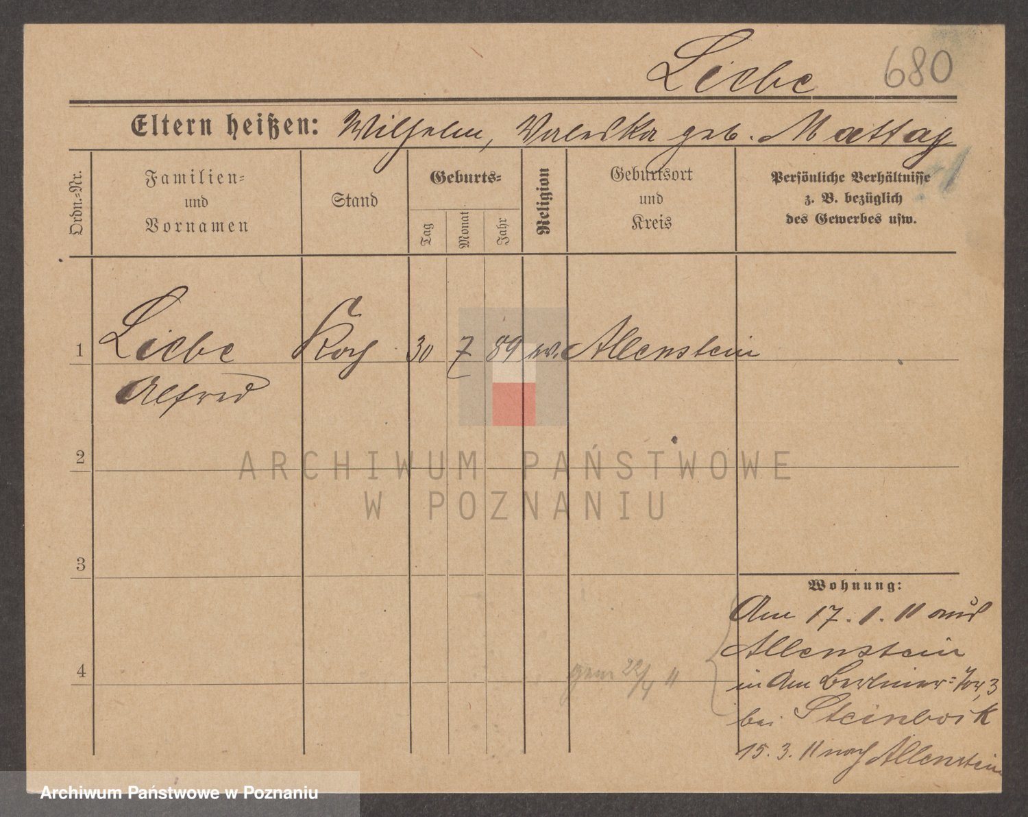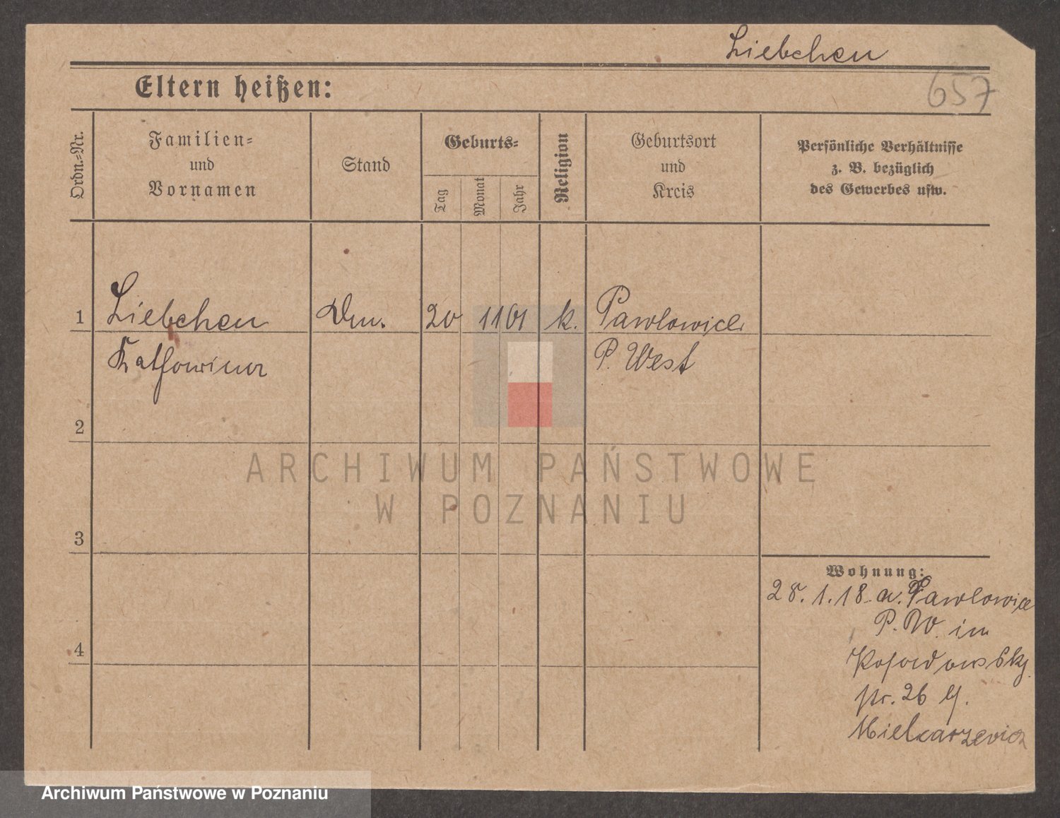 Podgląd karty osobowej dostępny jest po kliknięciu na nazwisko lub ikonkę karty. Można dokonywać powiększenia (ikony na górze) lub przechodzić między kolejnymi skanami (strzałki po bokach).