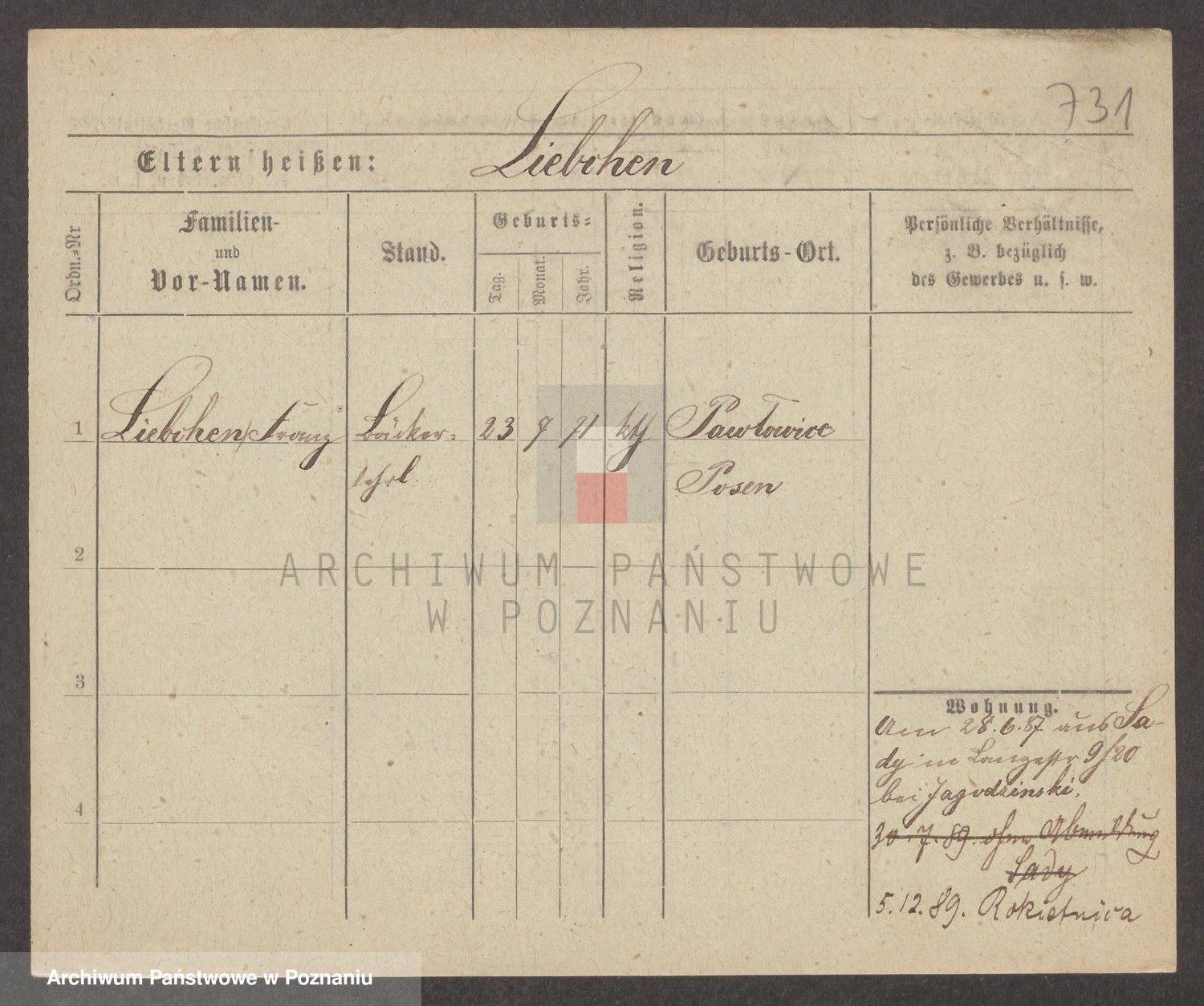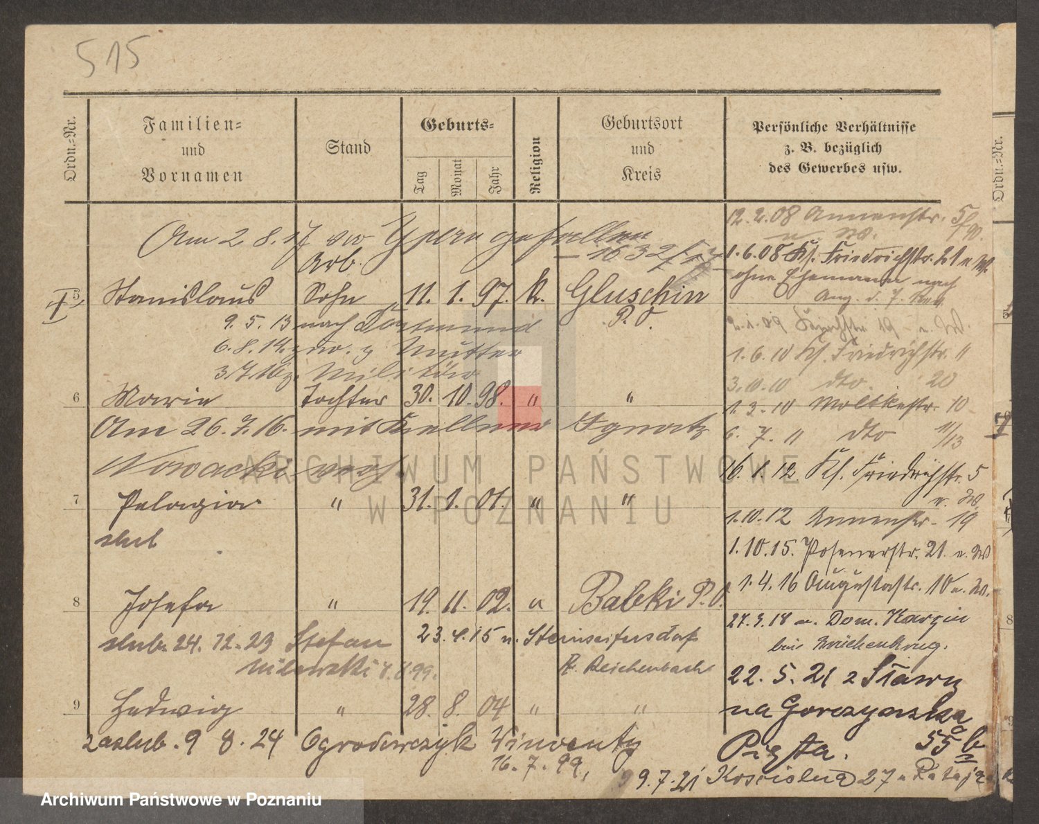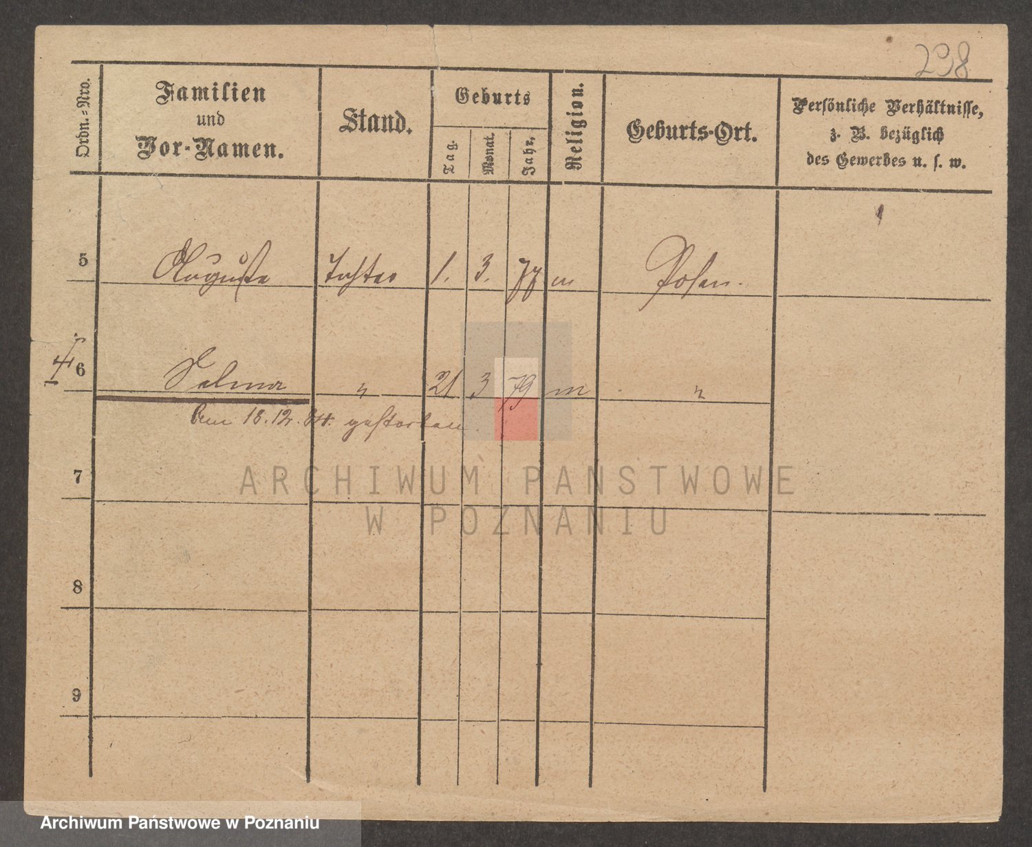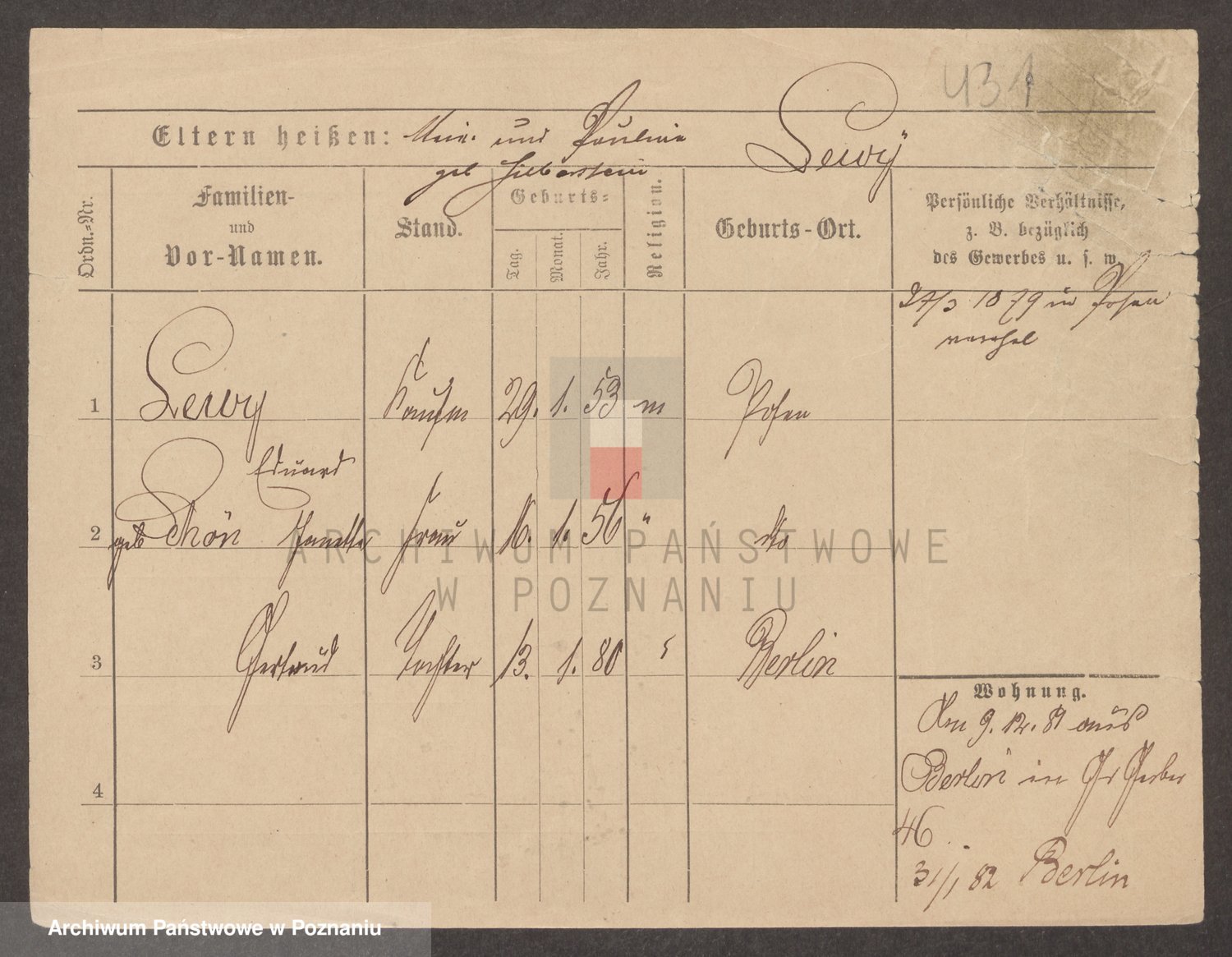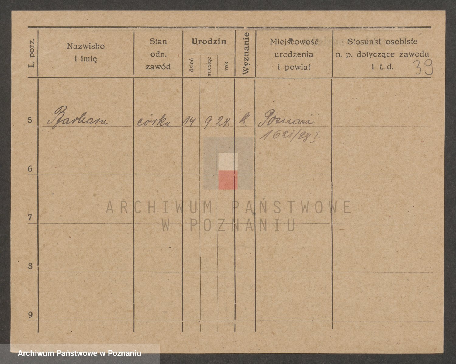 Podgląd karty osobowej dostępny jest po kliknięciu na nazwisko lub ikonkę karty. Można dokonywać powiększenia (ikony na górze) lub przechodzić między kolejnymi skanami (strzałki po bokach).