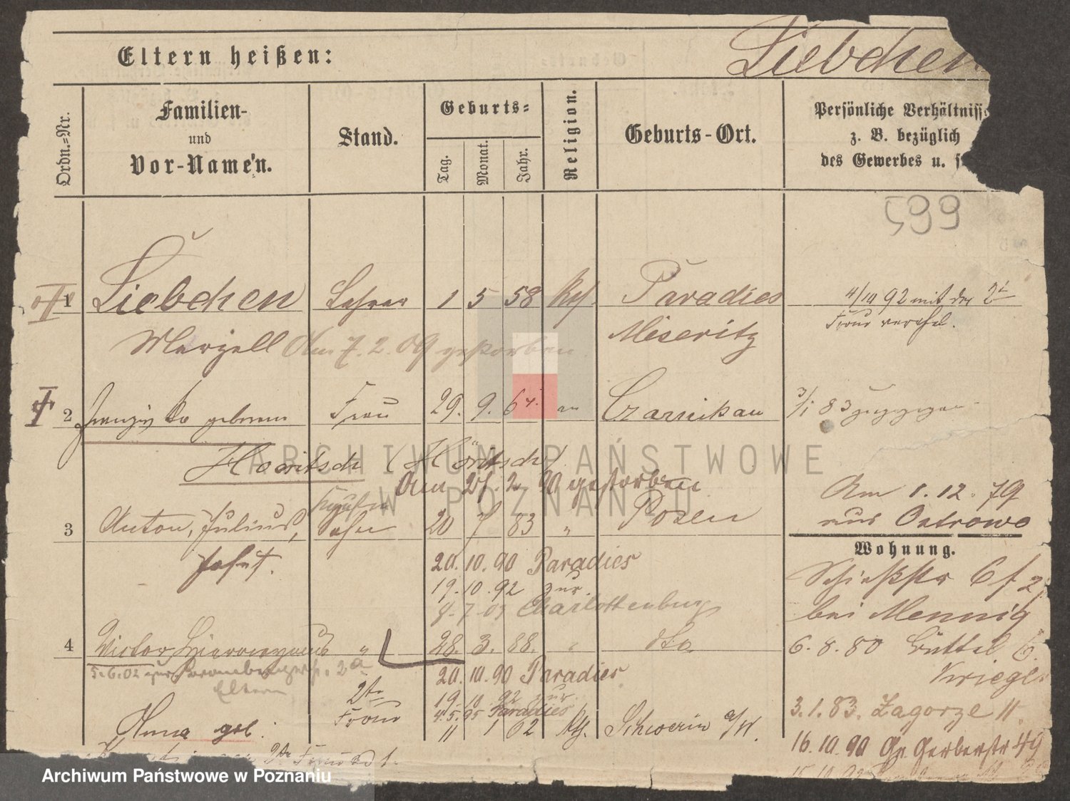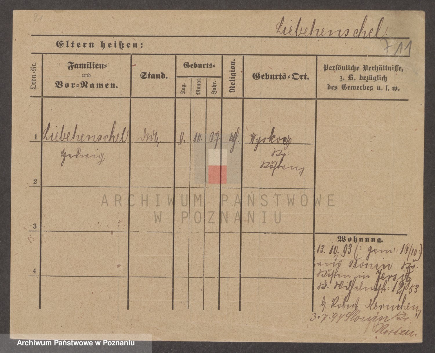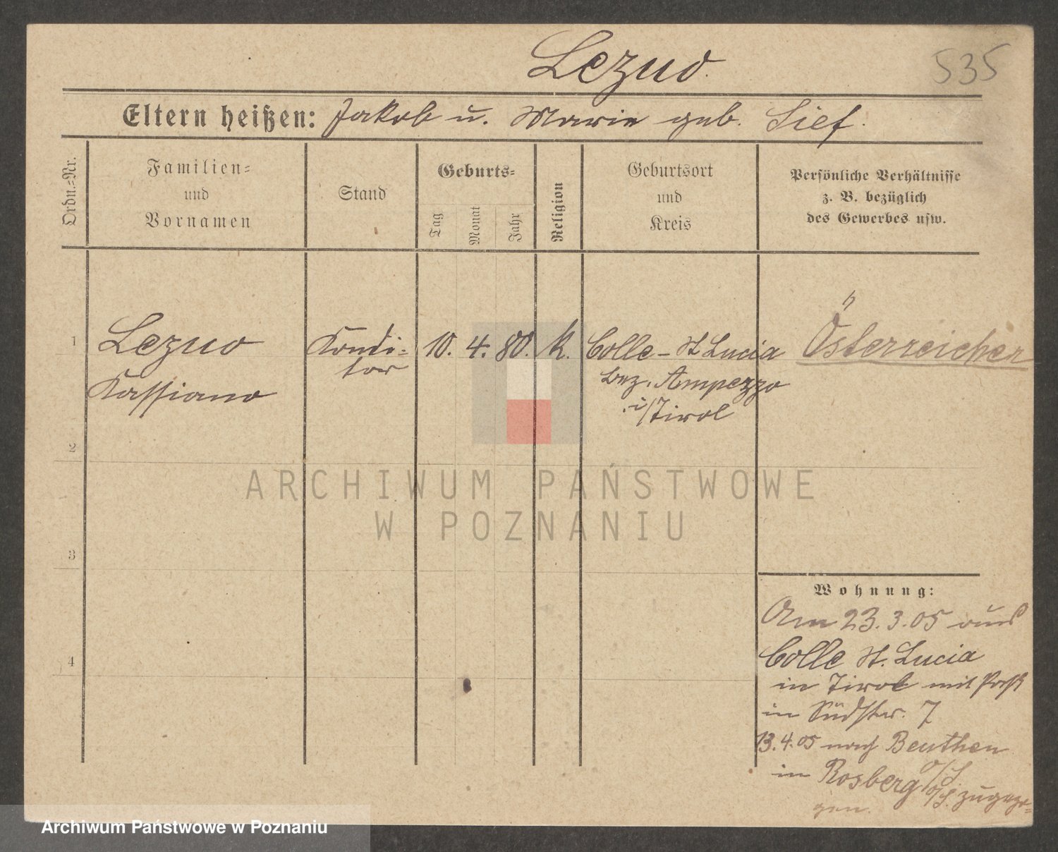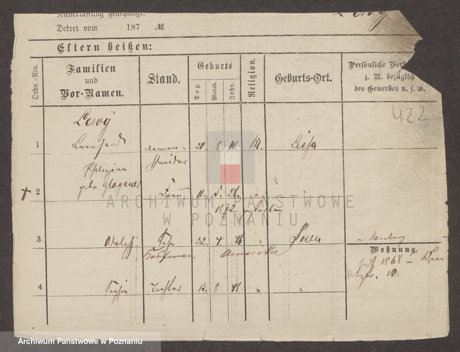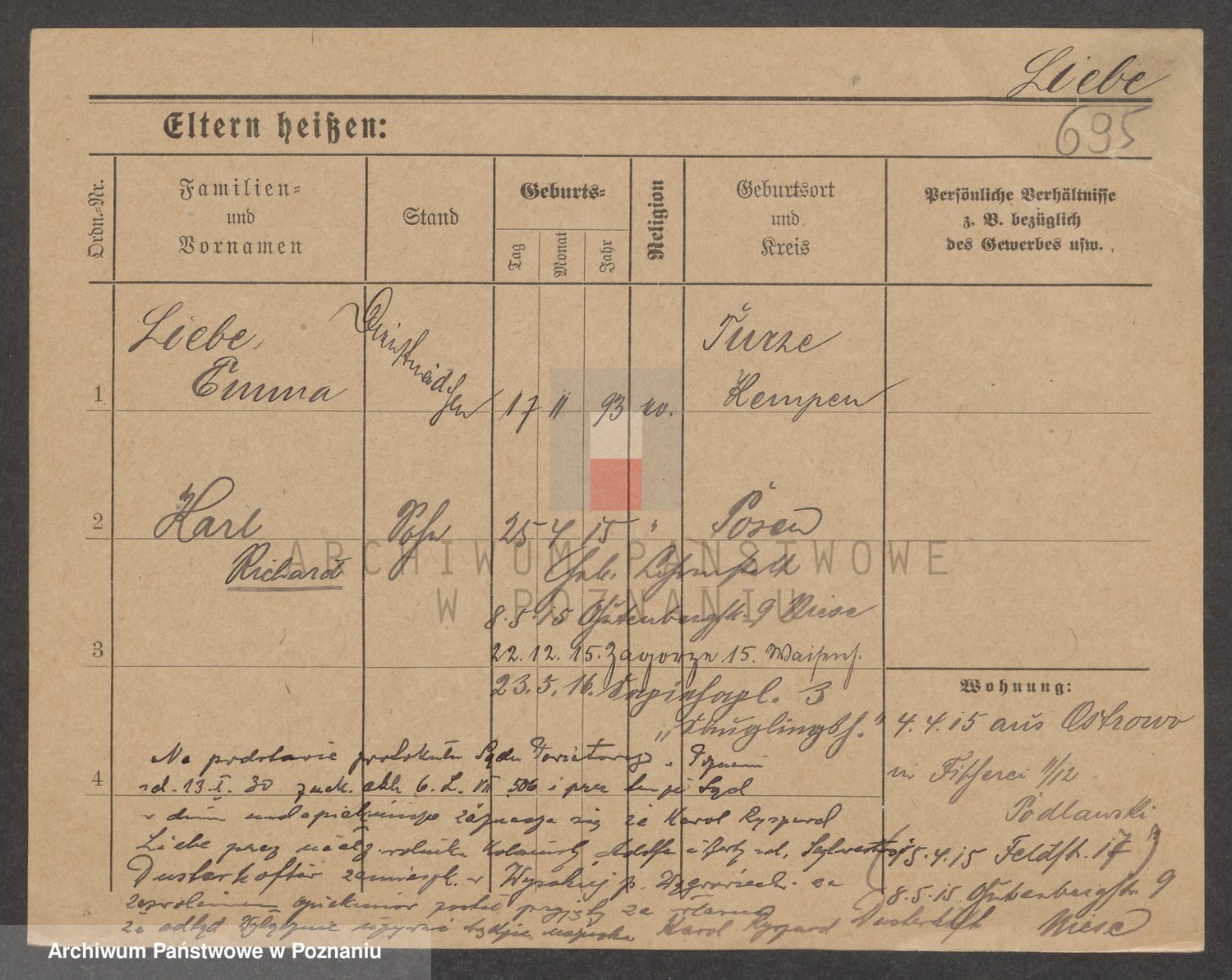 Podgląd karty osobowej dostępny jest po kliknięciu na nazwisko lub ikonkę karty. Można dokonywać powiększenia (ikony na górze) lub przechodzić między kolejnymi skanami (strzałki po bokach).