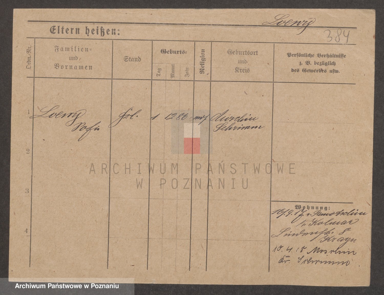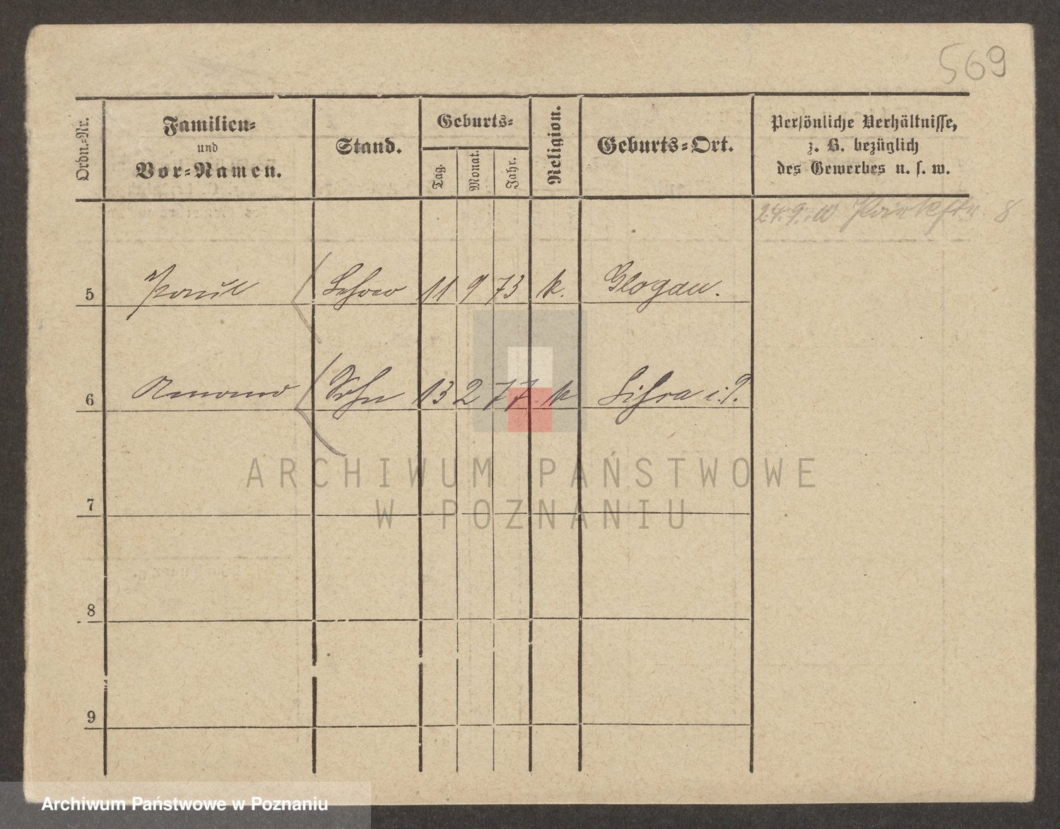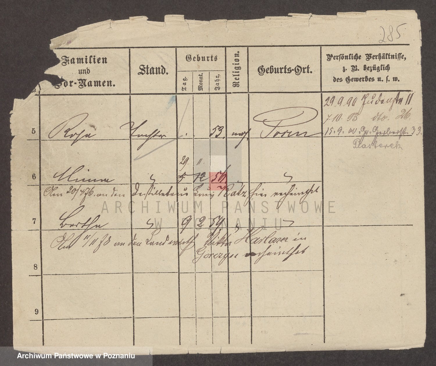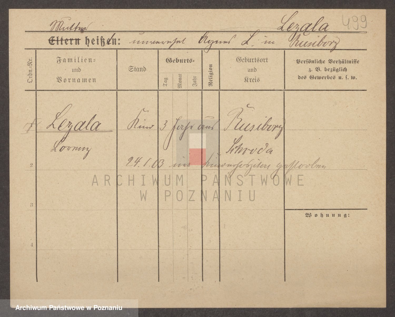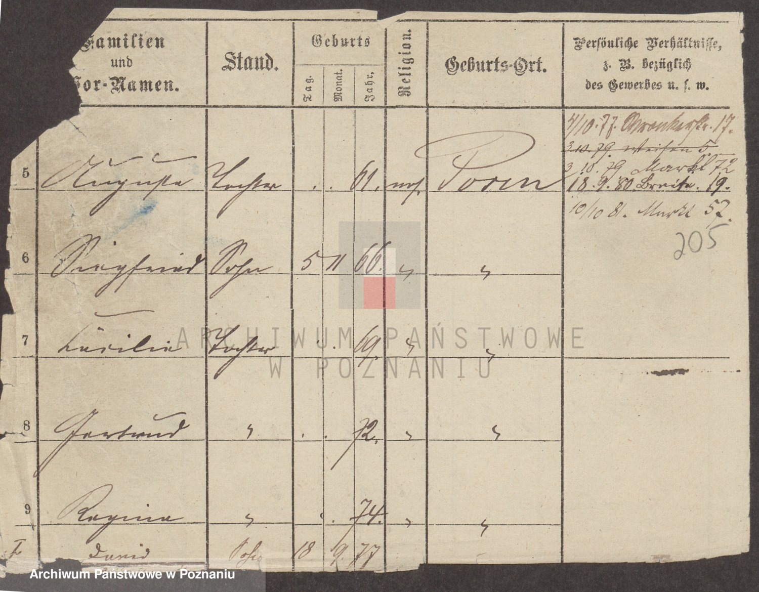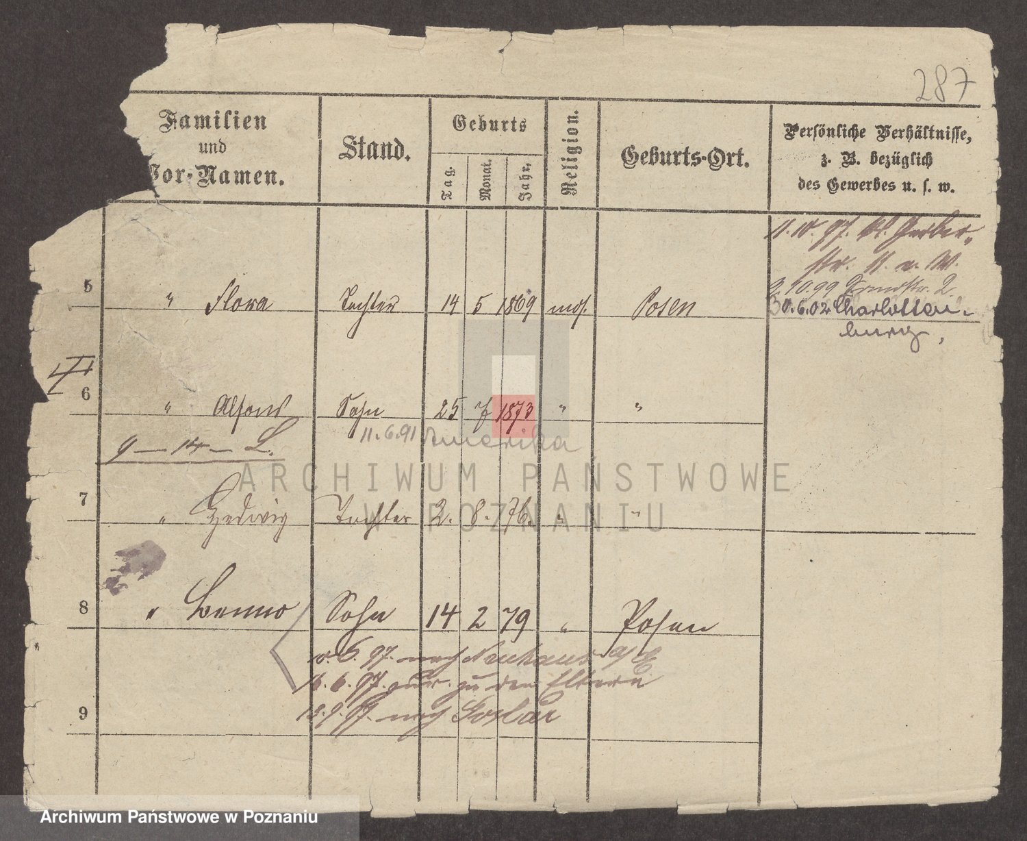 Podgląd karty osobowej dostępny jest po kliknięciu na nazwisko lub ikonkę karty. Można dokonywać powiększenia (ikony na górze) lub przechodzić między kolejnymi skanami (strzałki po bokach).