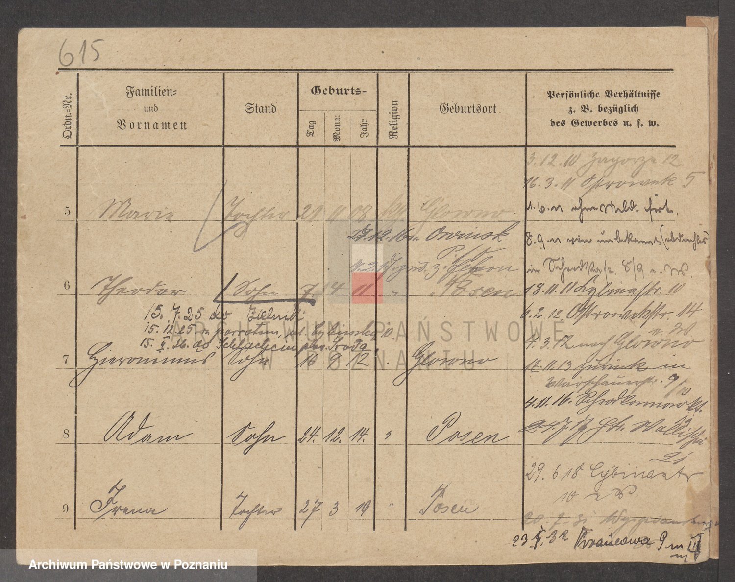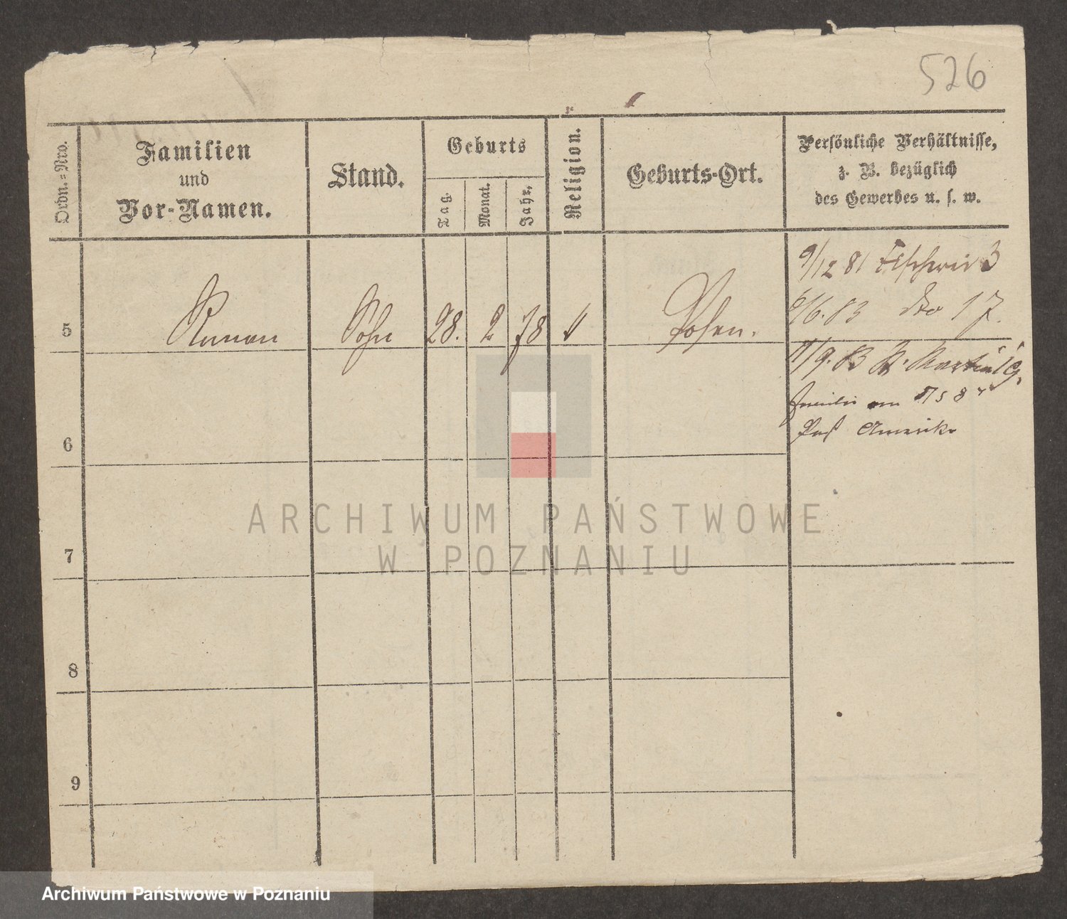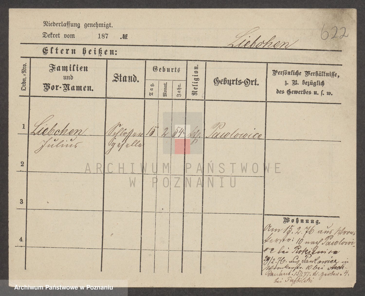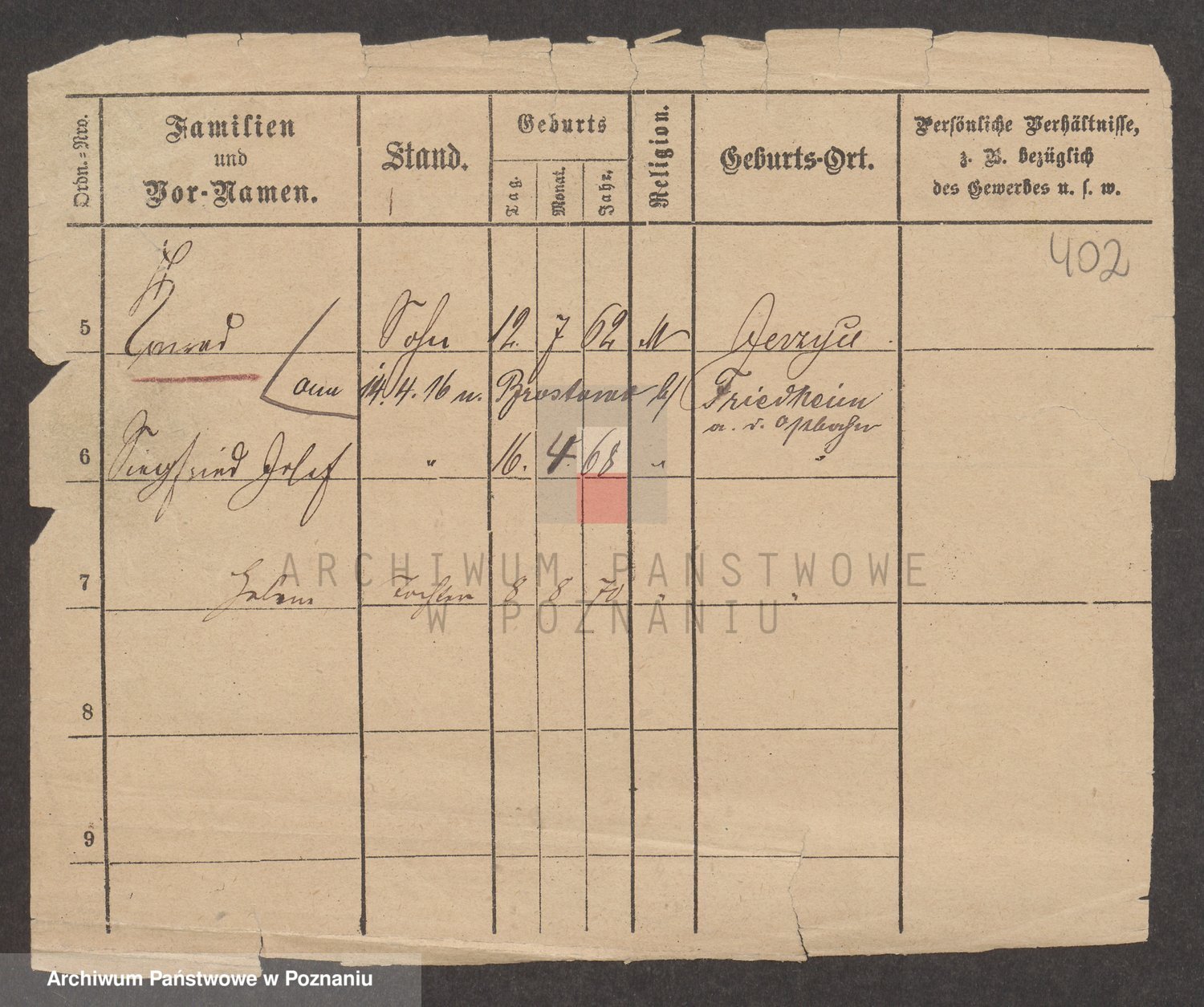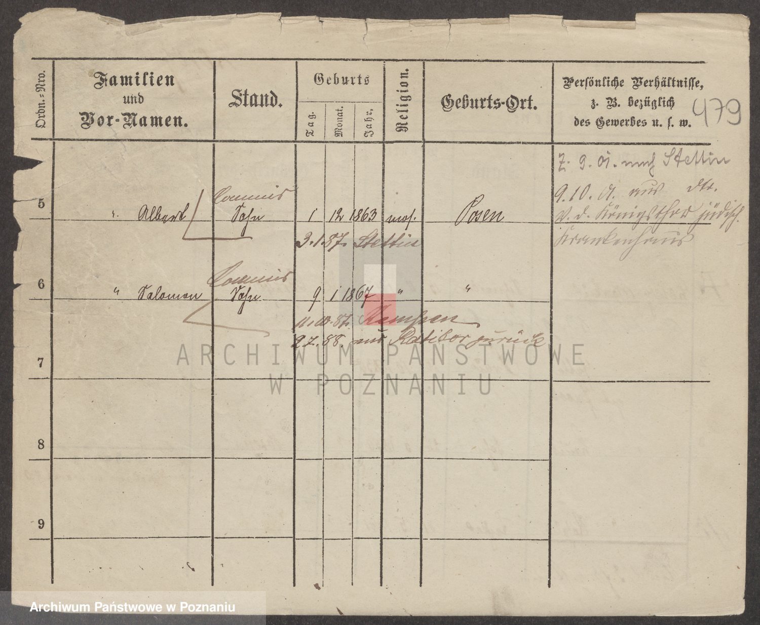 Podgląd karty osobowej dostępny jest po kliknięciu na nazwisko lub ikonkę karty. Można dokonywać powiększenia (ikony na górze) lub przechodzić między kolejnymi skanami (strzałki po bokach).