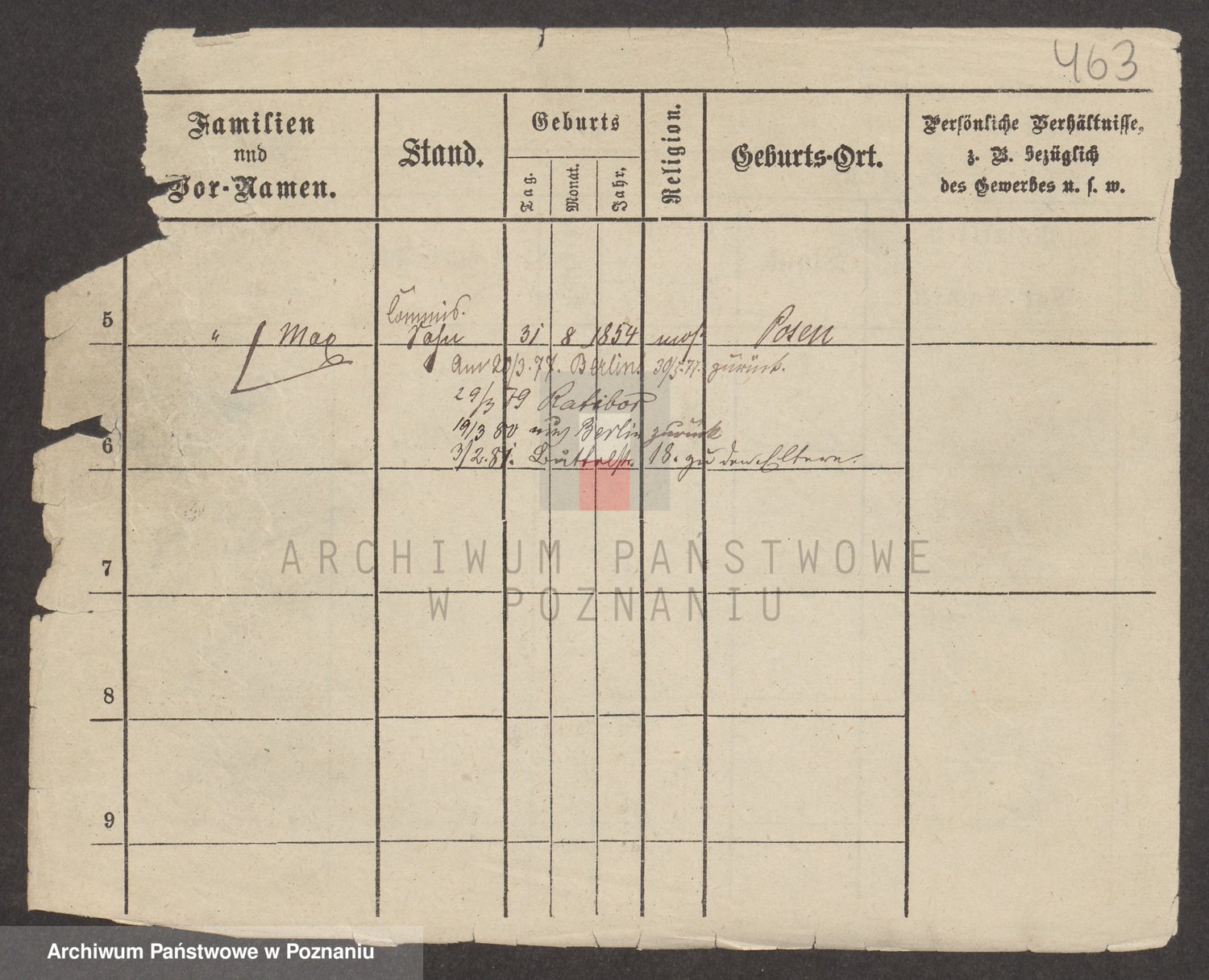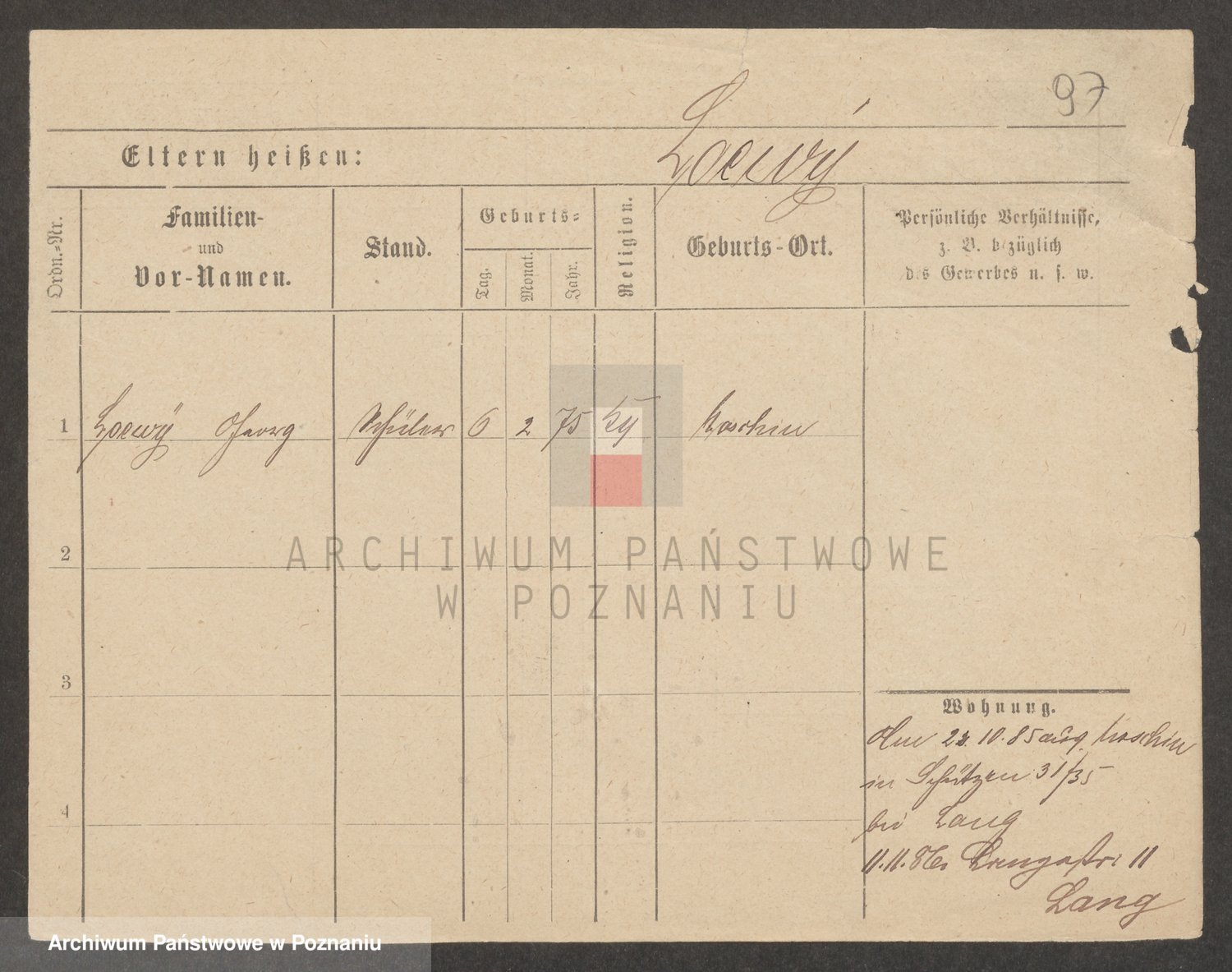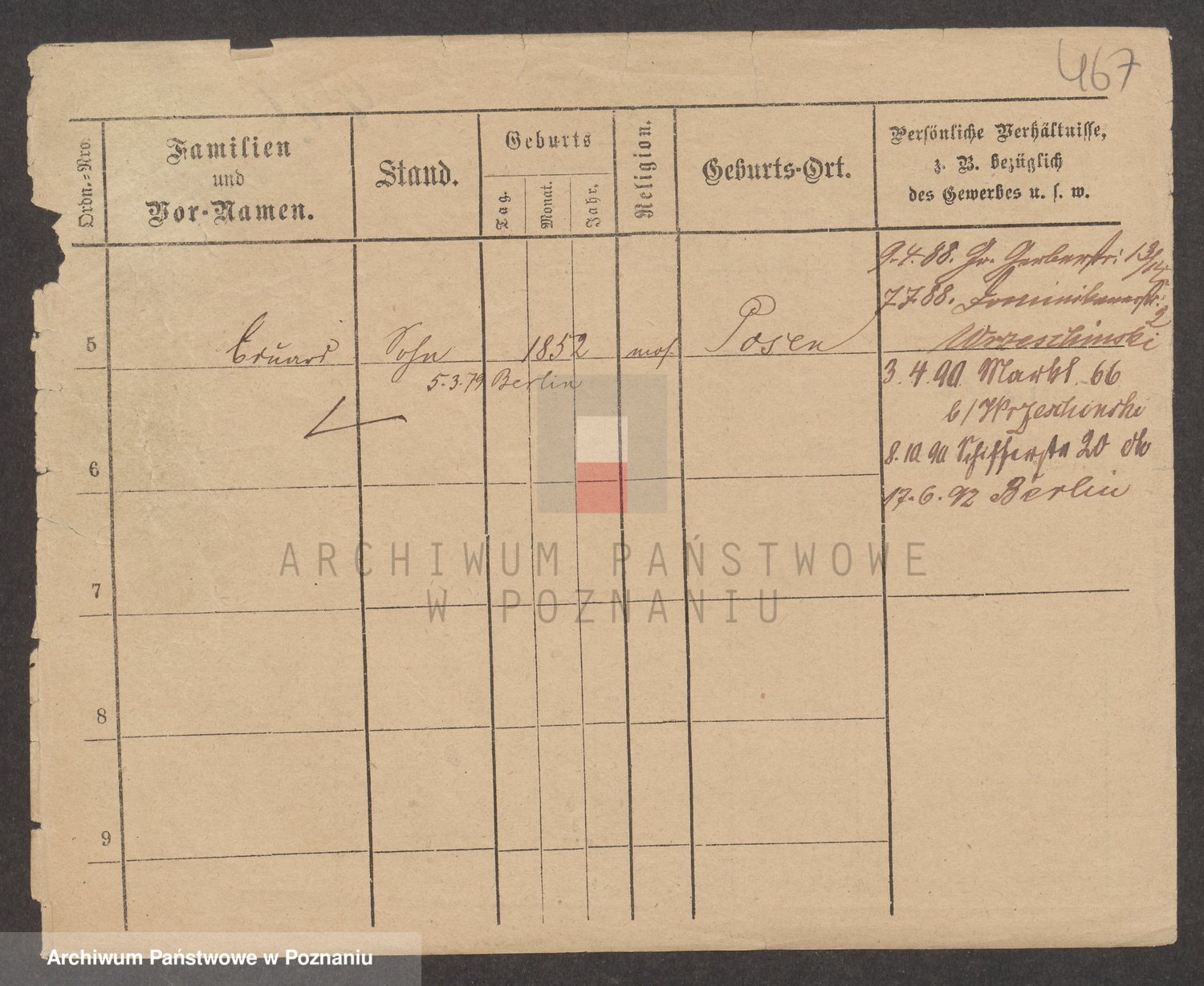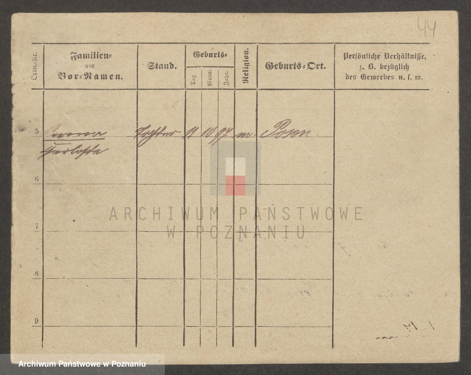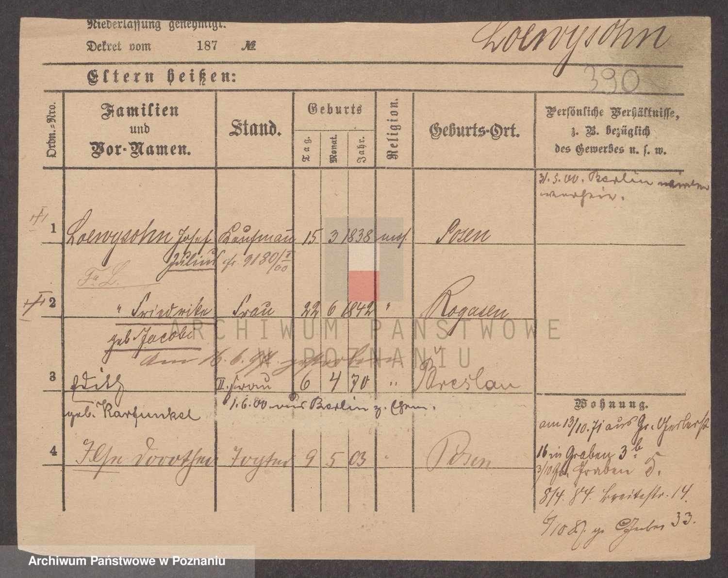 Podgląd karty osobowej dostępny jest po kliknięciu na nazwisko lub ikonkę karty. Można dokonywać powiększenia (ikony na górze) lub przechodzić między kolejnymi skanami (strzałki po bokach).