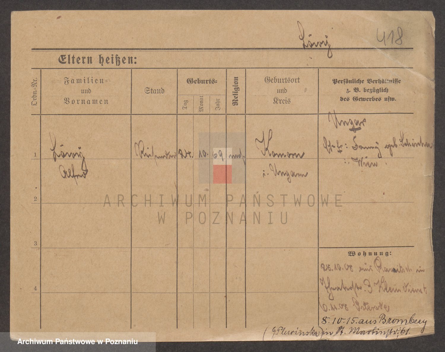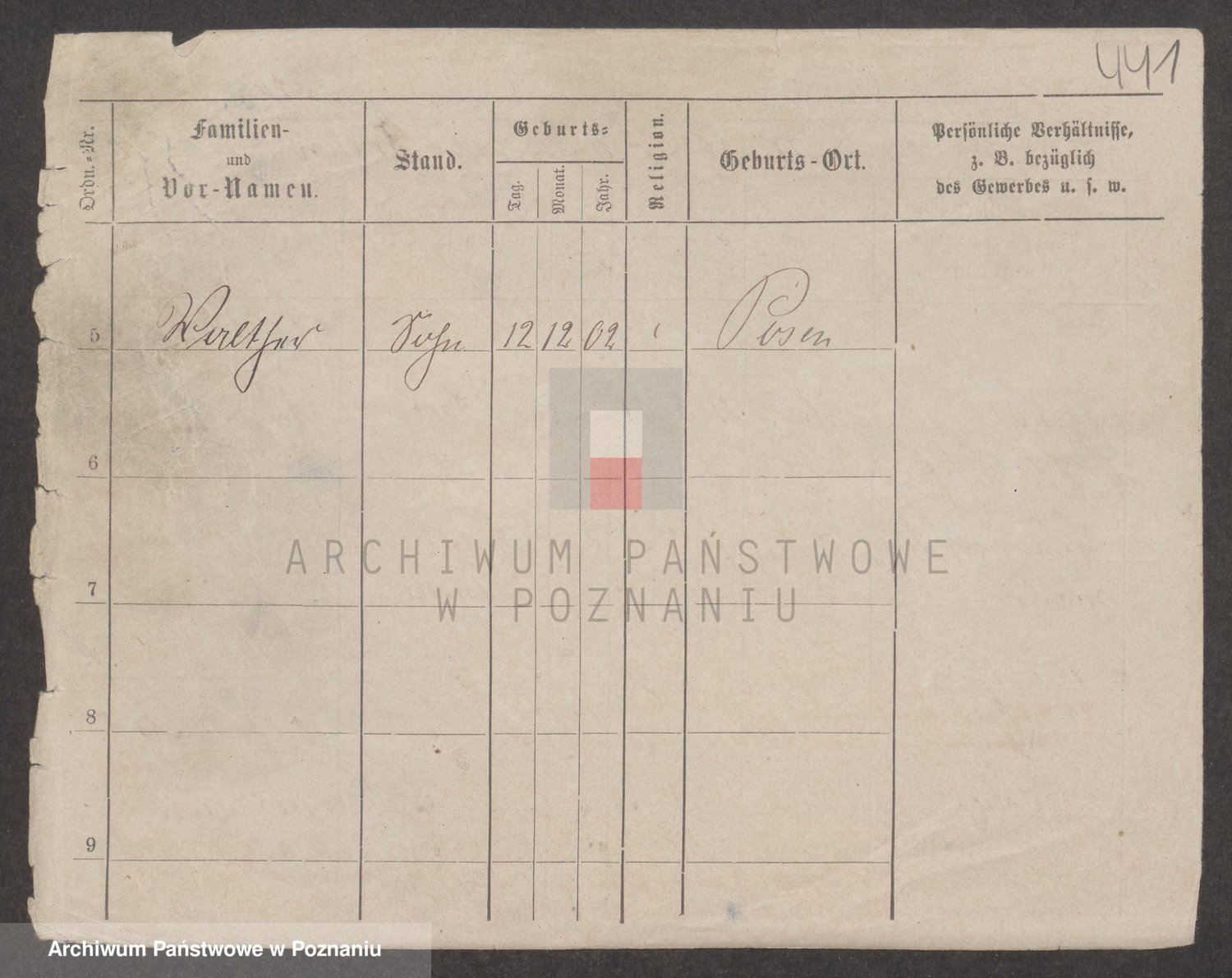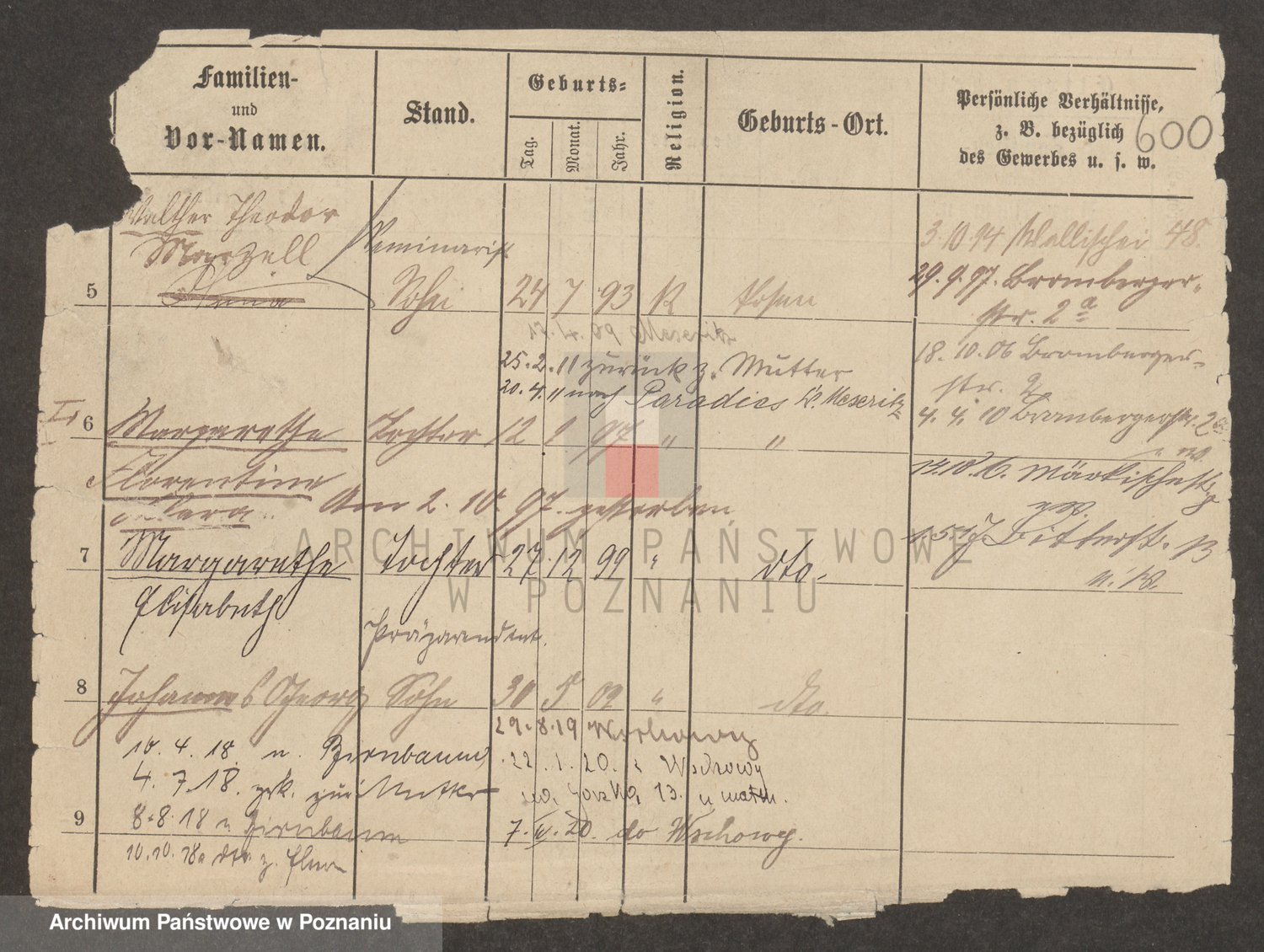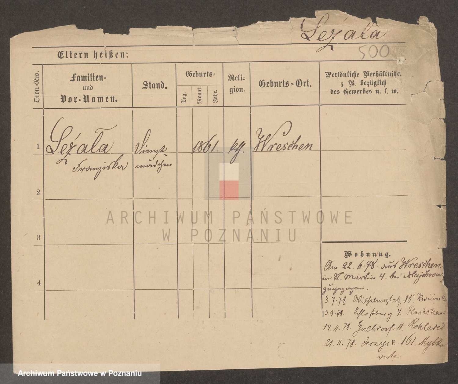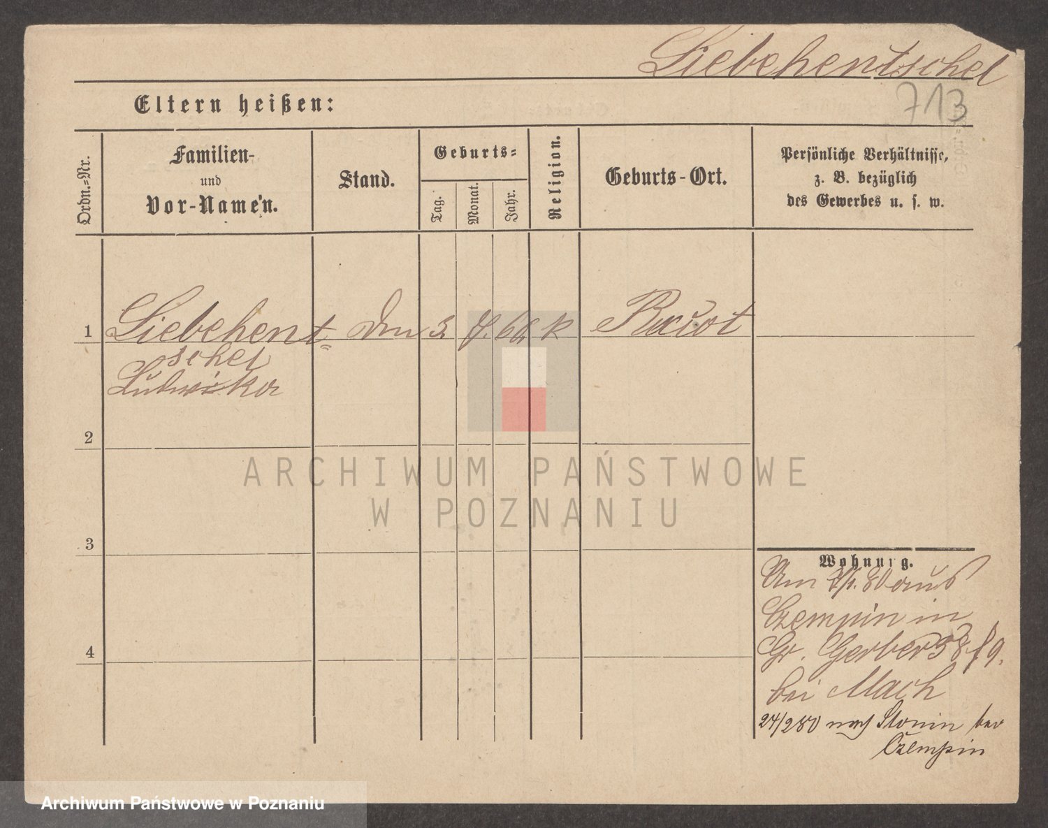 Podgląd karty osobowej dostępny jest po kliknięciu na nazwisko lub ikonkę karty. Można dokonywać powiększenia (ikony na górze) lub przechodzić między kolejnymi skanami (strzałki po bokach).