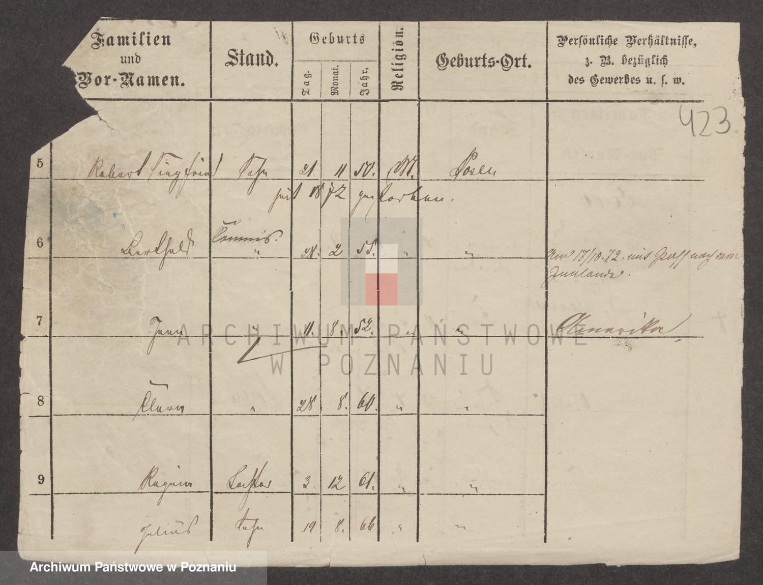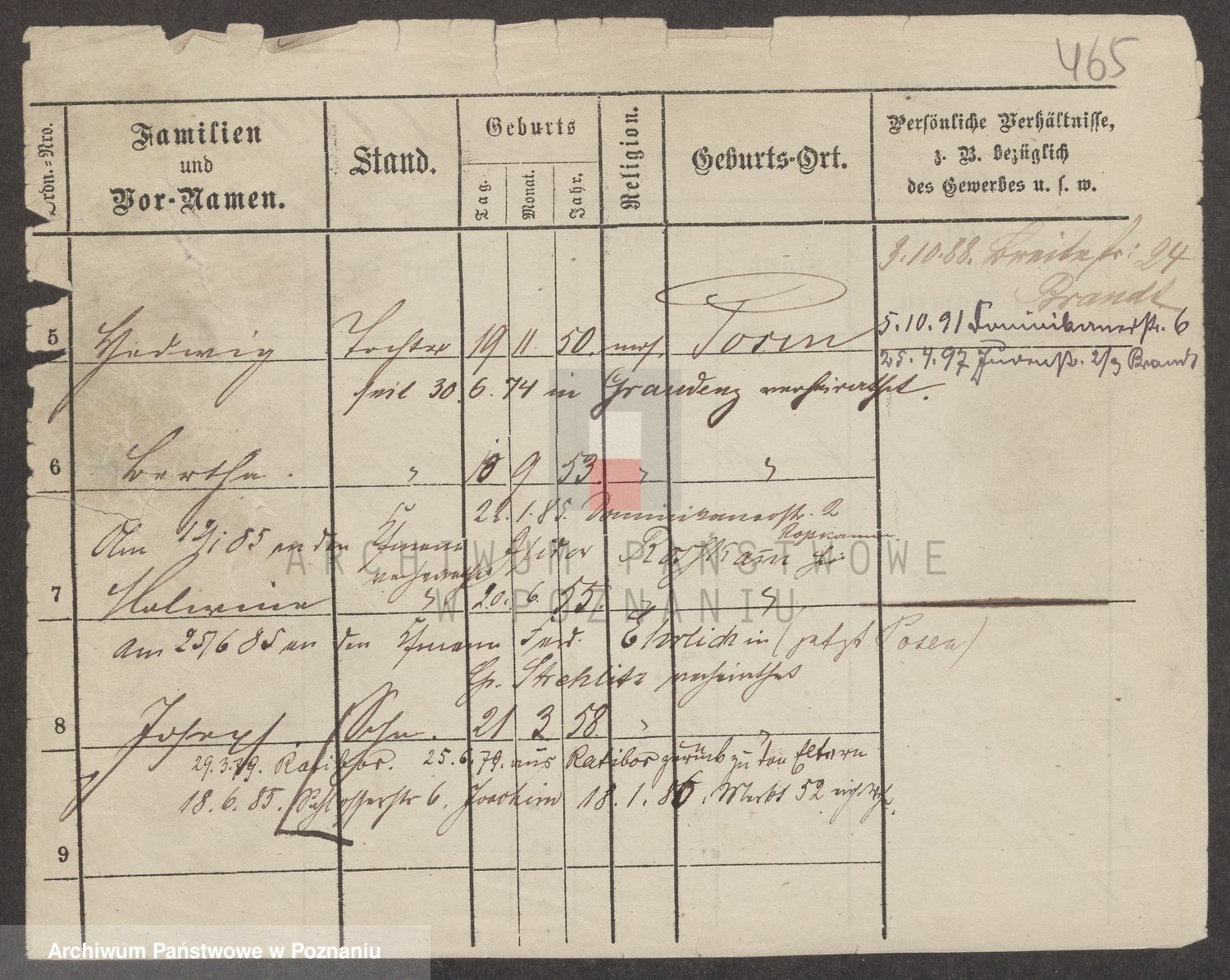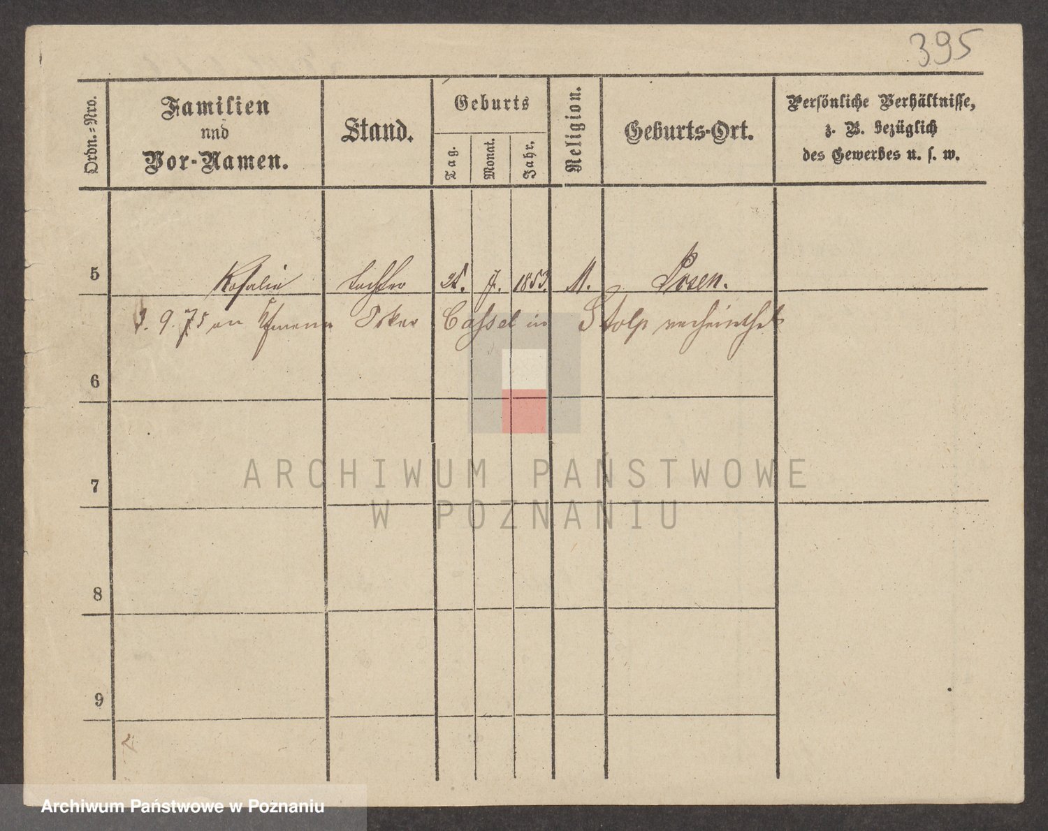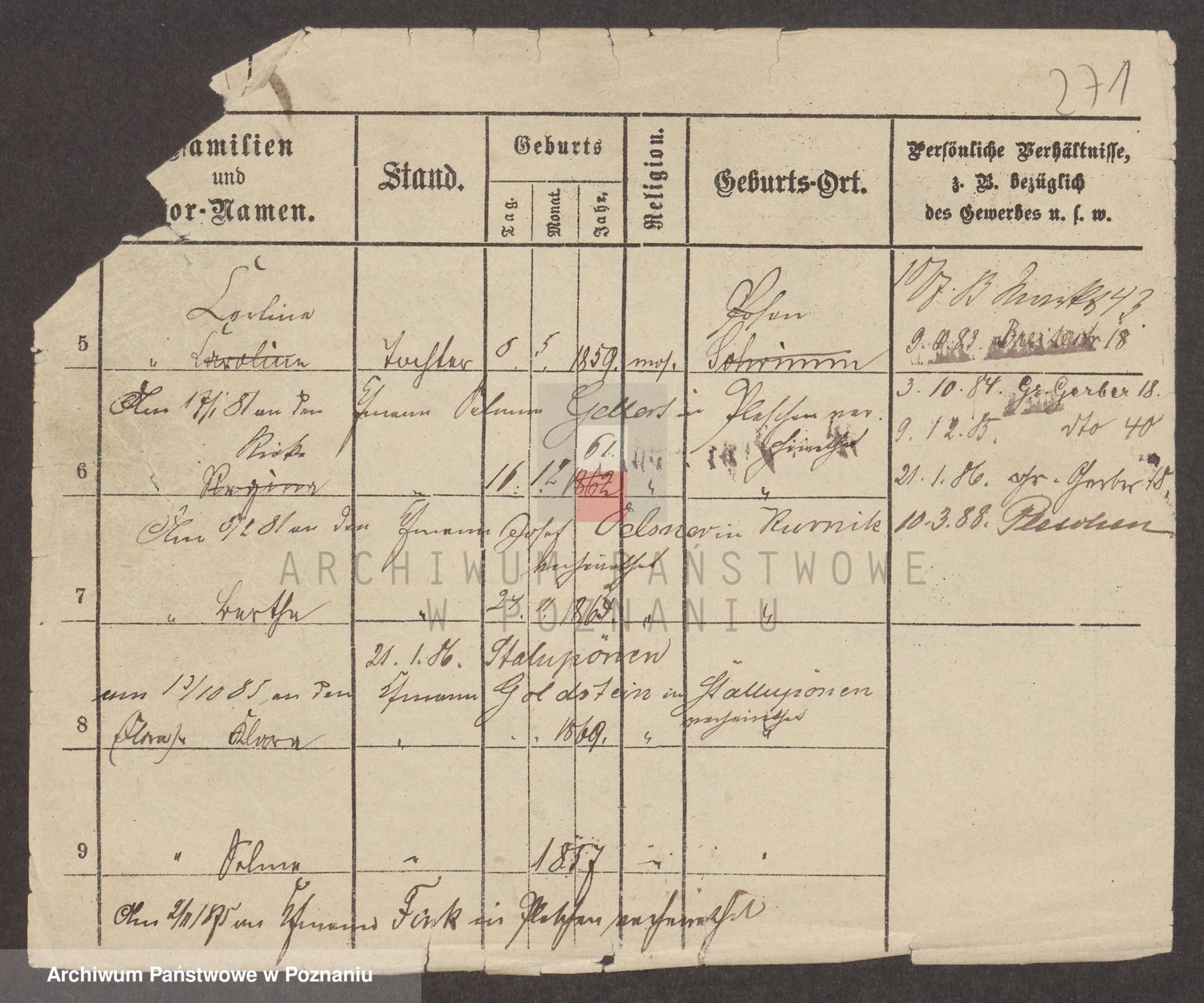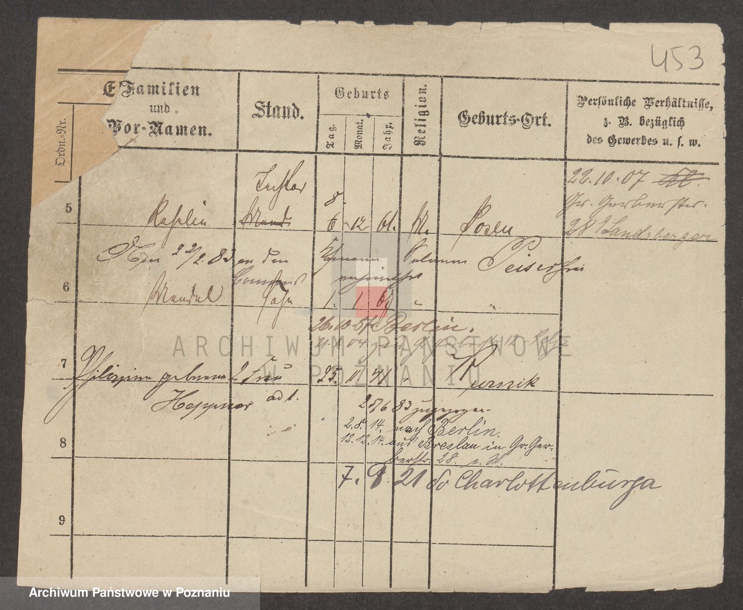 Podgląd karty osobowej dostępny jest po kliknięciu na nazwisko lub ikonkę karty. Można dokonywać powiększenia (ikony na górze) lub przechodzić między kolejnymi skanami (strzałki po bokach).