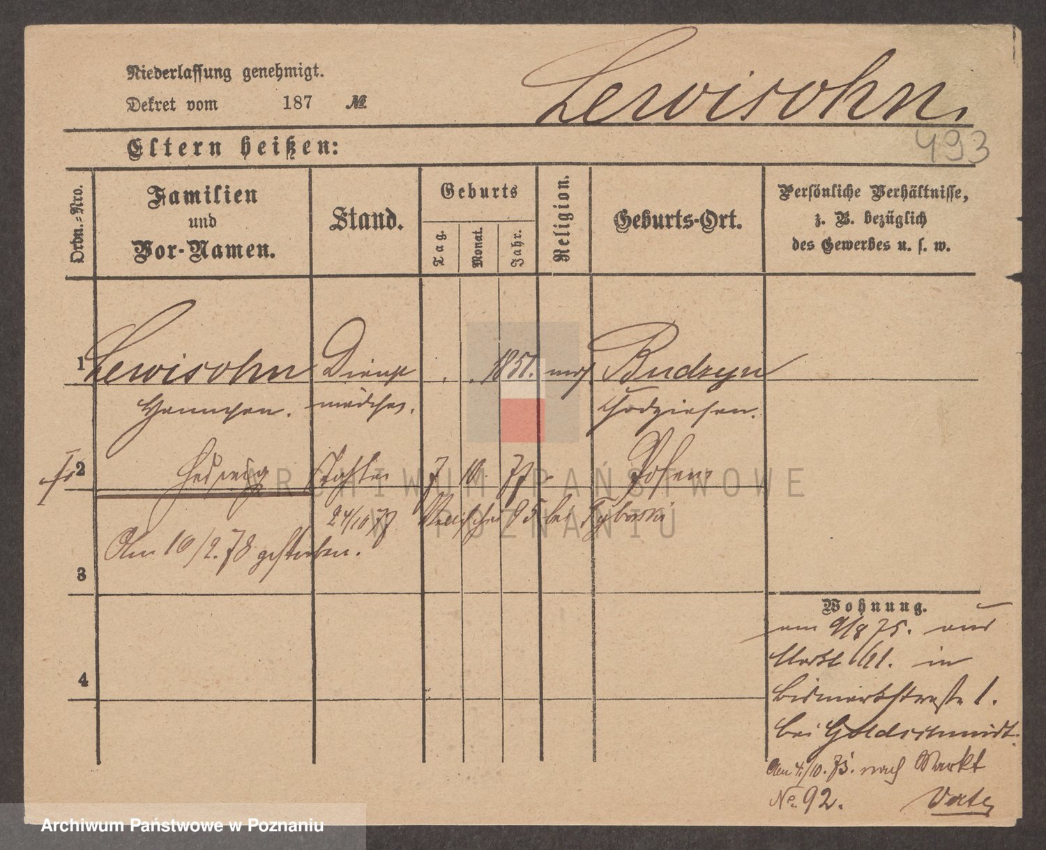 Lewi z.d. Lissak, Heima