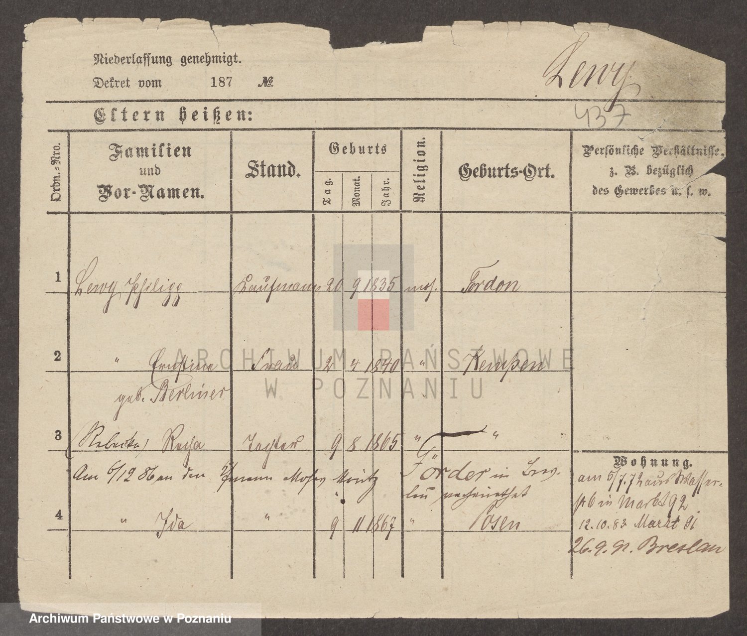 Lewy z.d. Traenkel, Maria