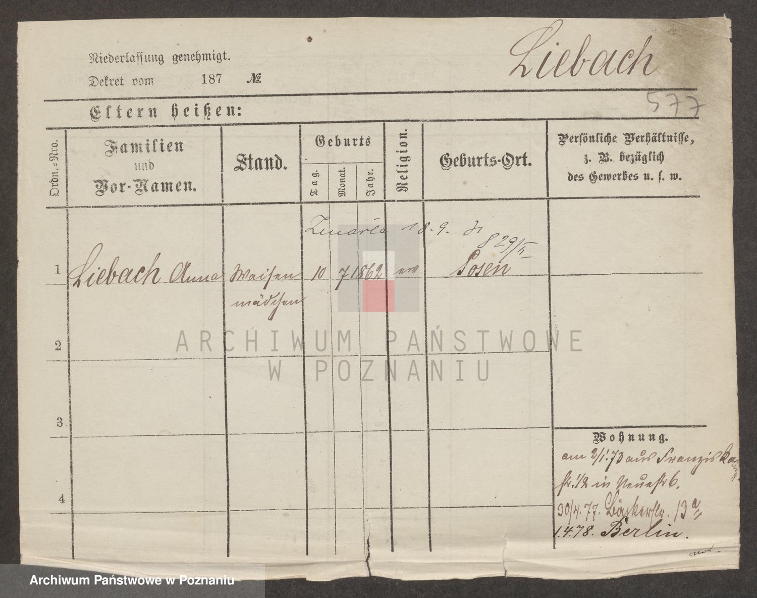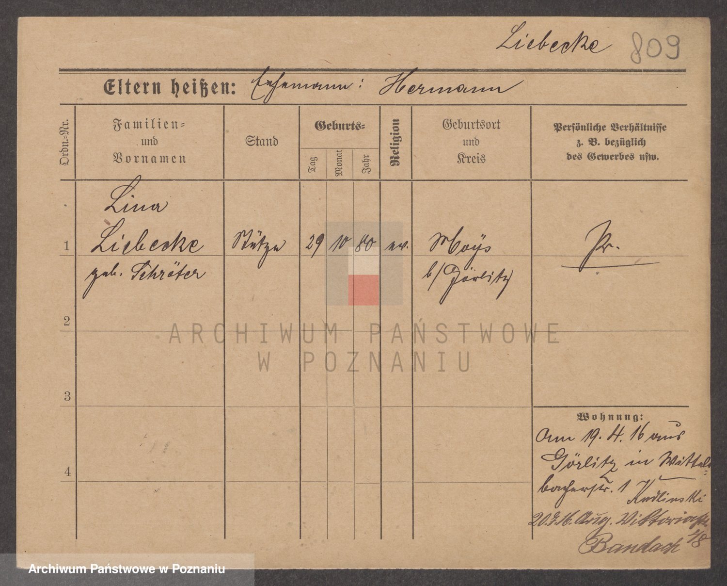 Liebecke z.d. Schräter, Lina