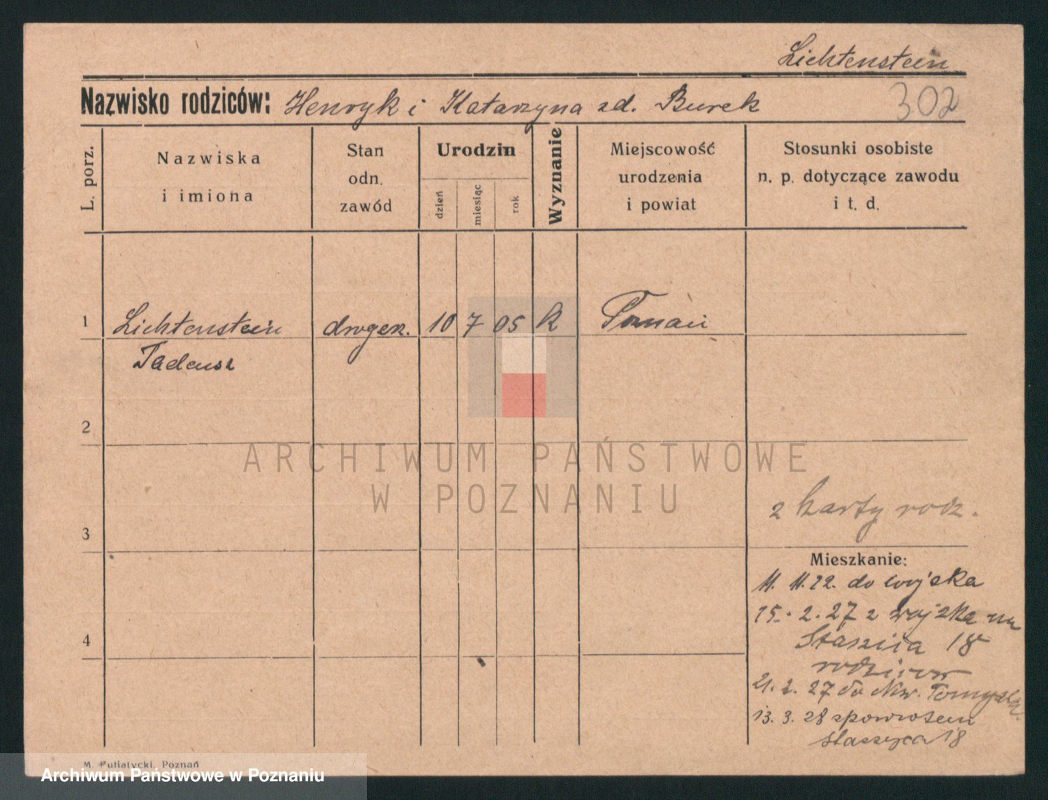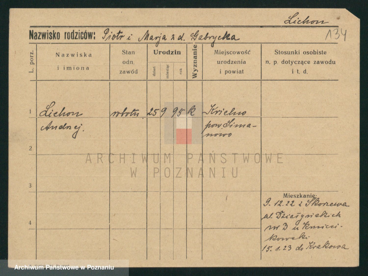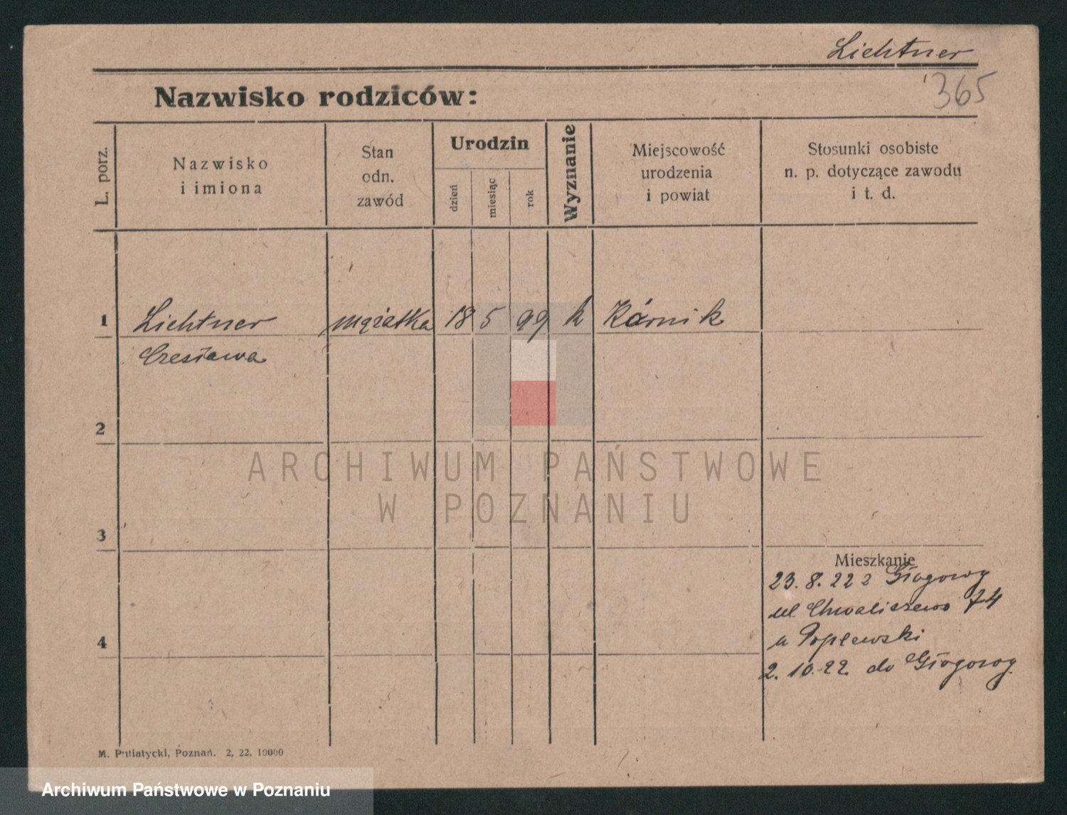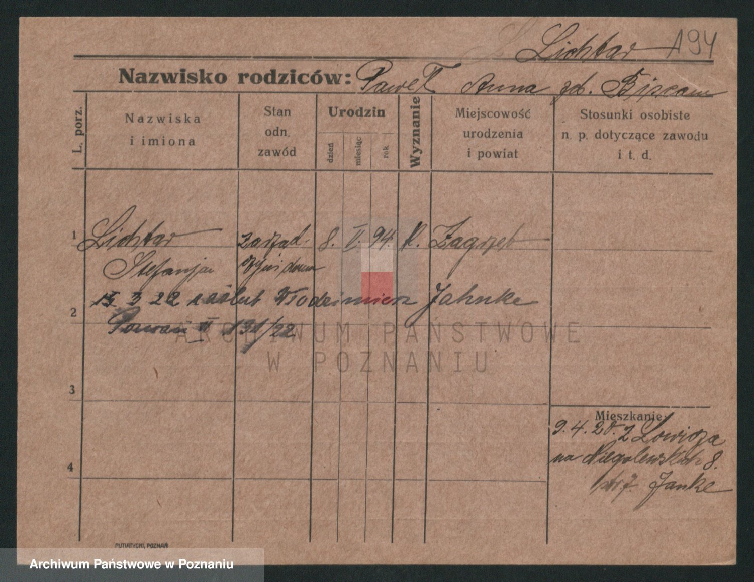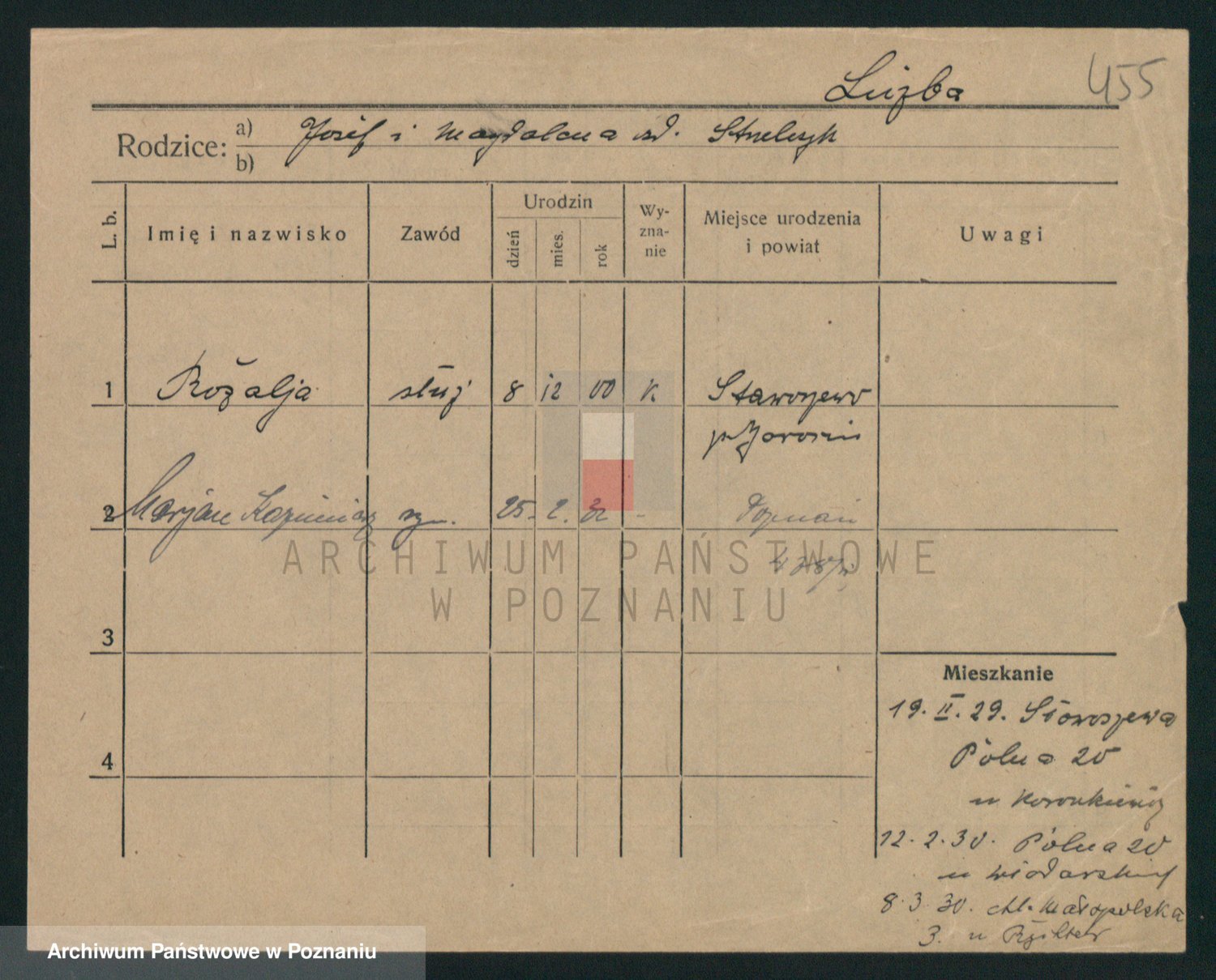 Podgląd karty osobowej dostępny jest po kliknięciu na nazwisko lub ikonkę karty. Można dokonywać powiększenia (ikony na górze) lub przechodzić między kolejnymi skanami (strzałki po bokach).