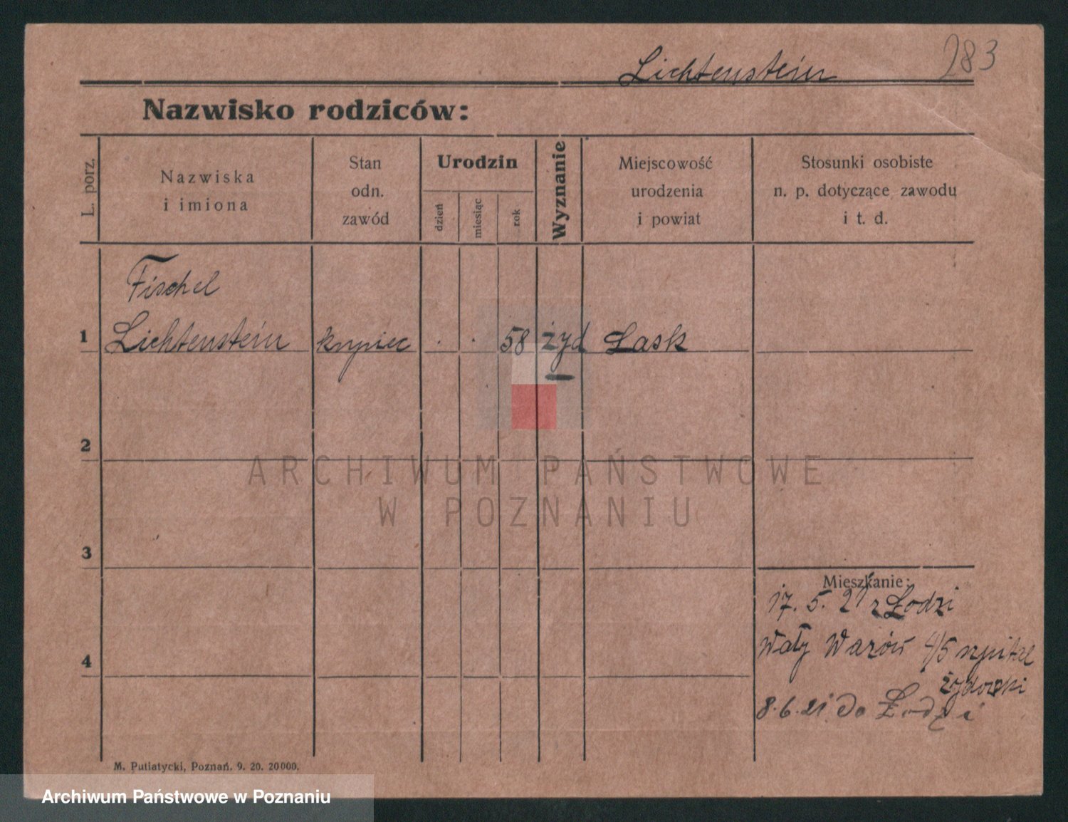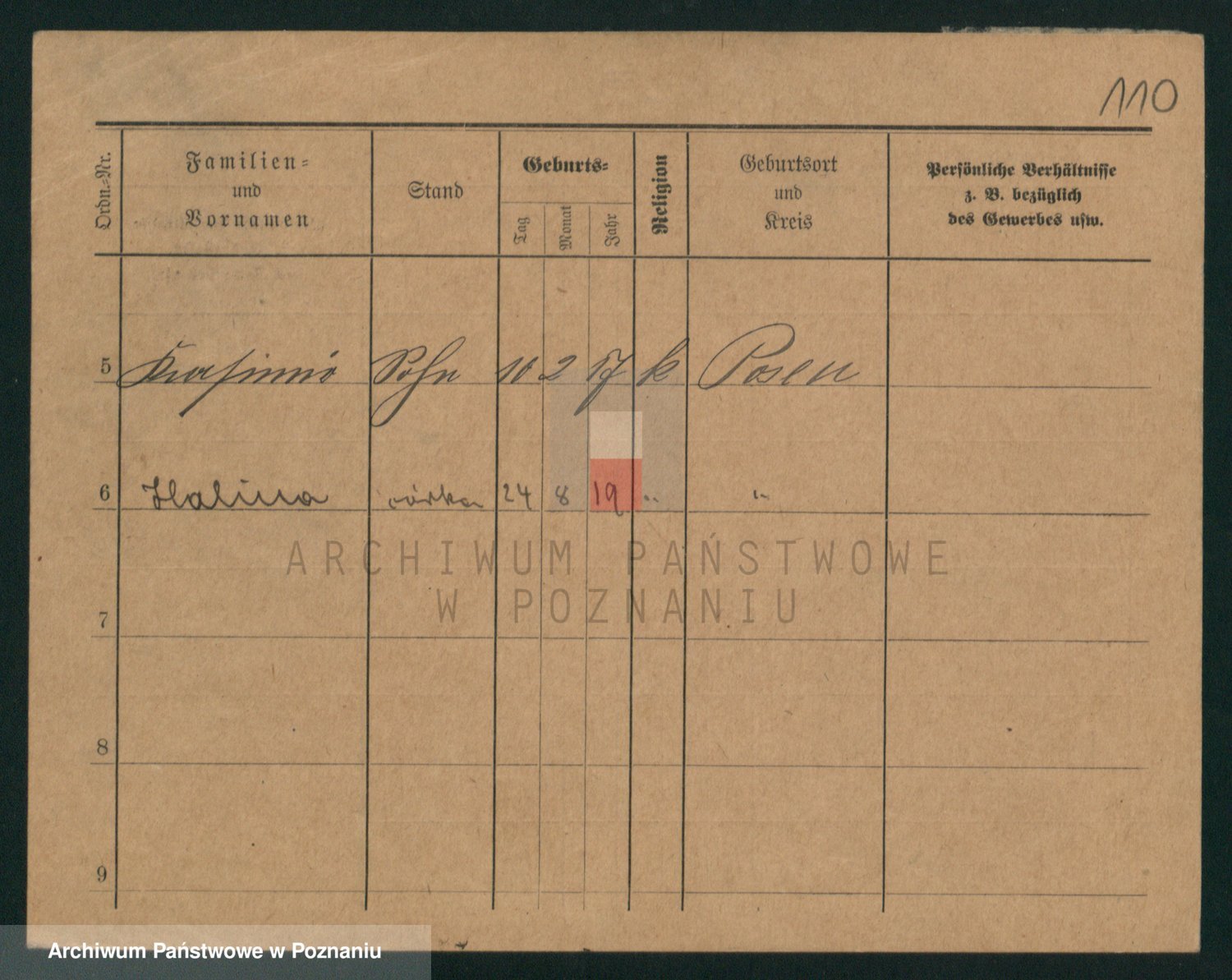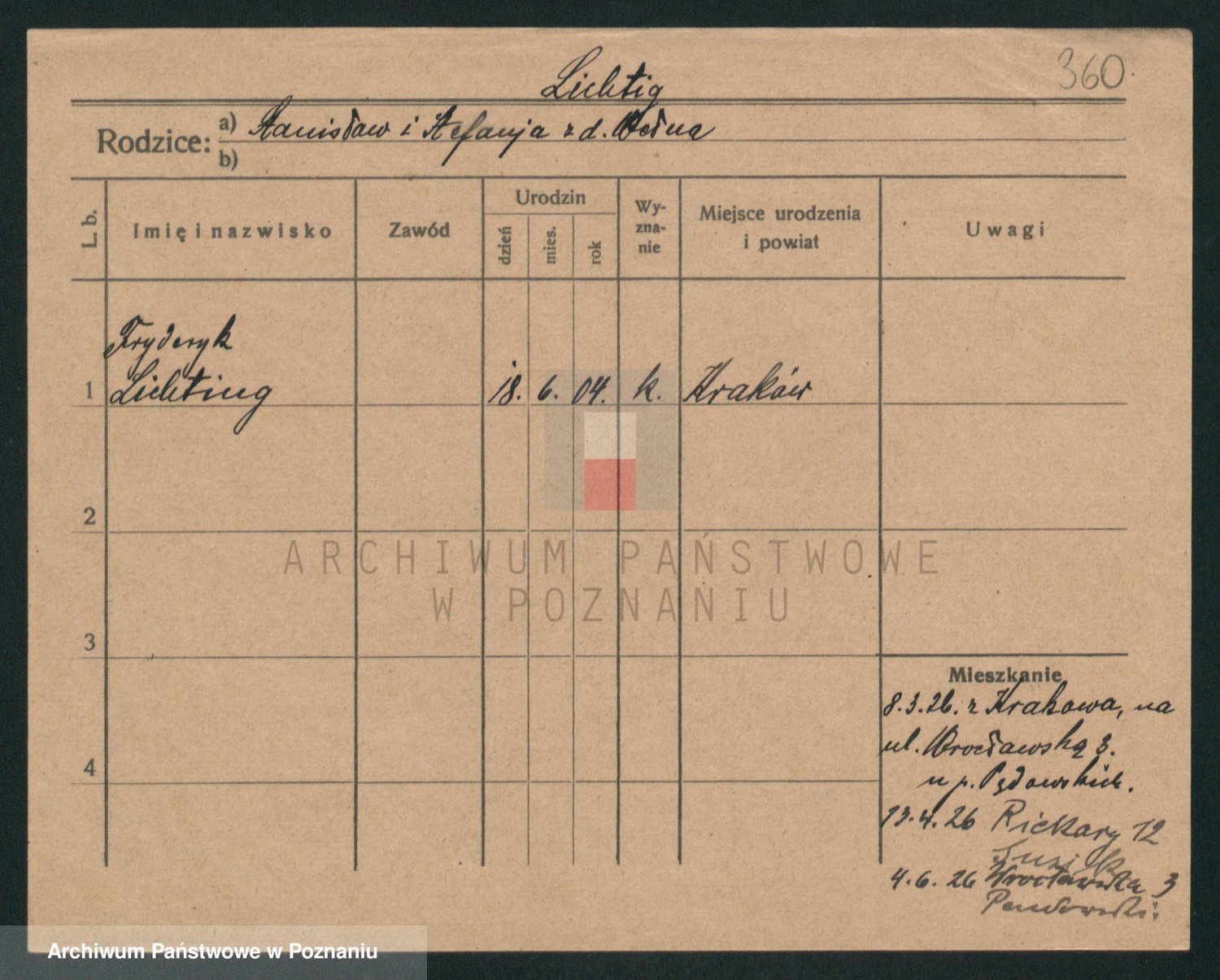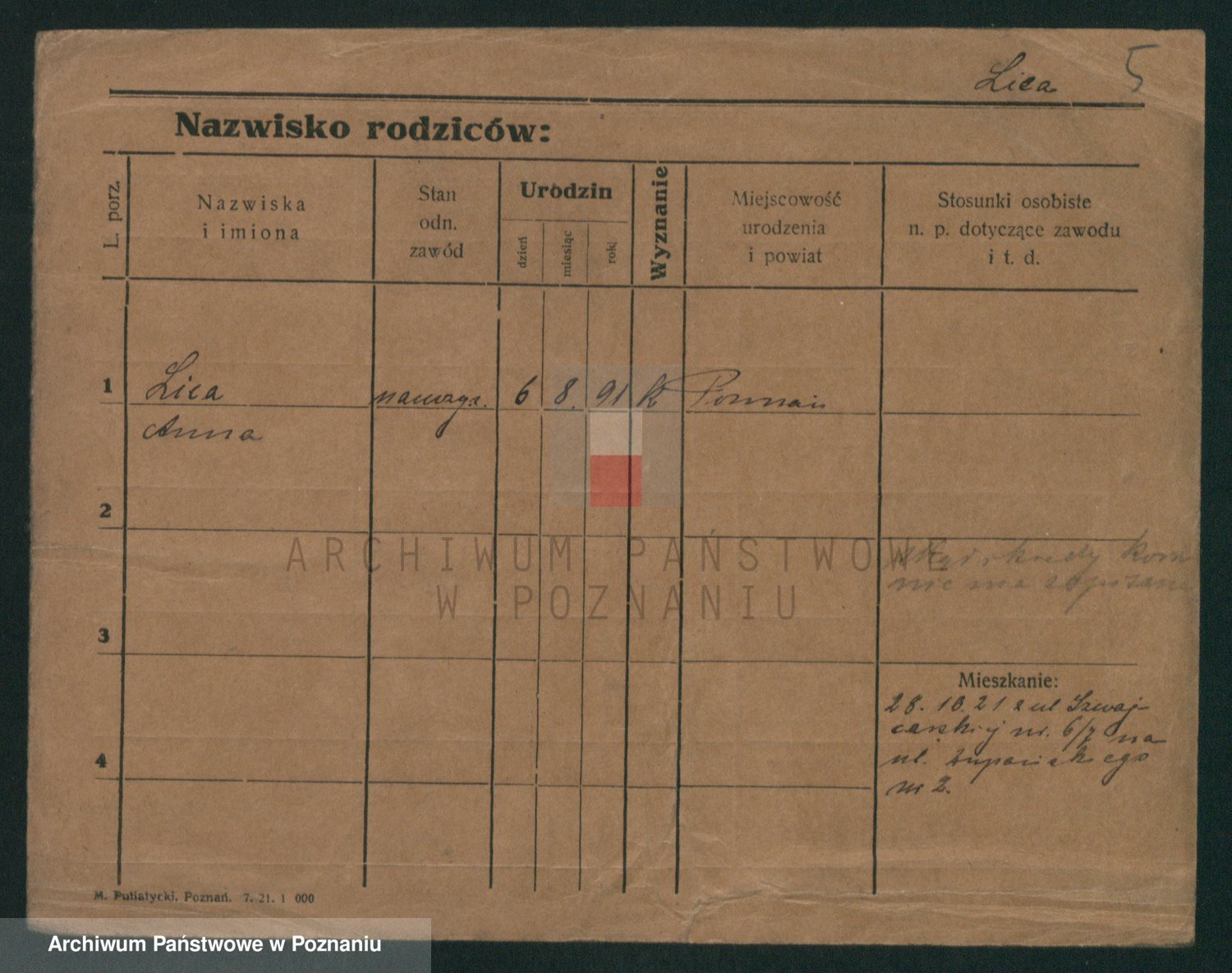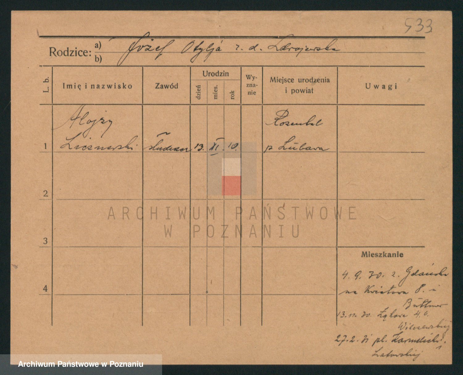 Podgląd karty osobowej dostępny jest po kliknięciu na nazwisko lub ikonkę karty. Można dokonywać powiększenia (ikony na górze) lub przechodzić między kolejnymi skanami (strzałki po bokach).